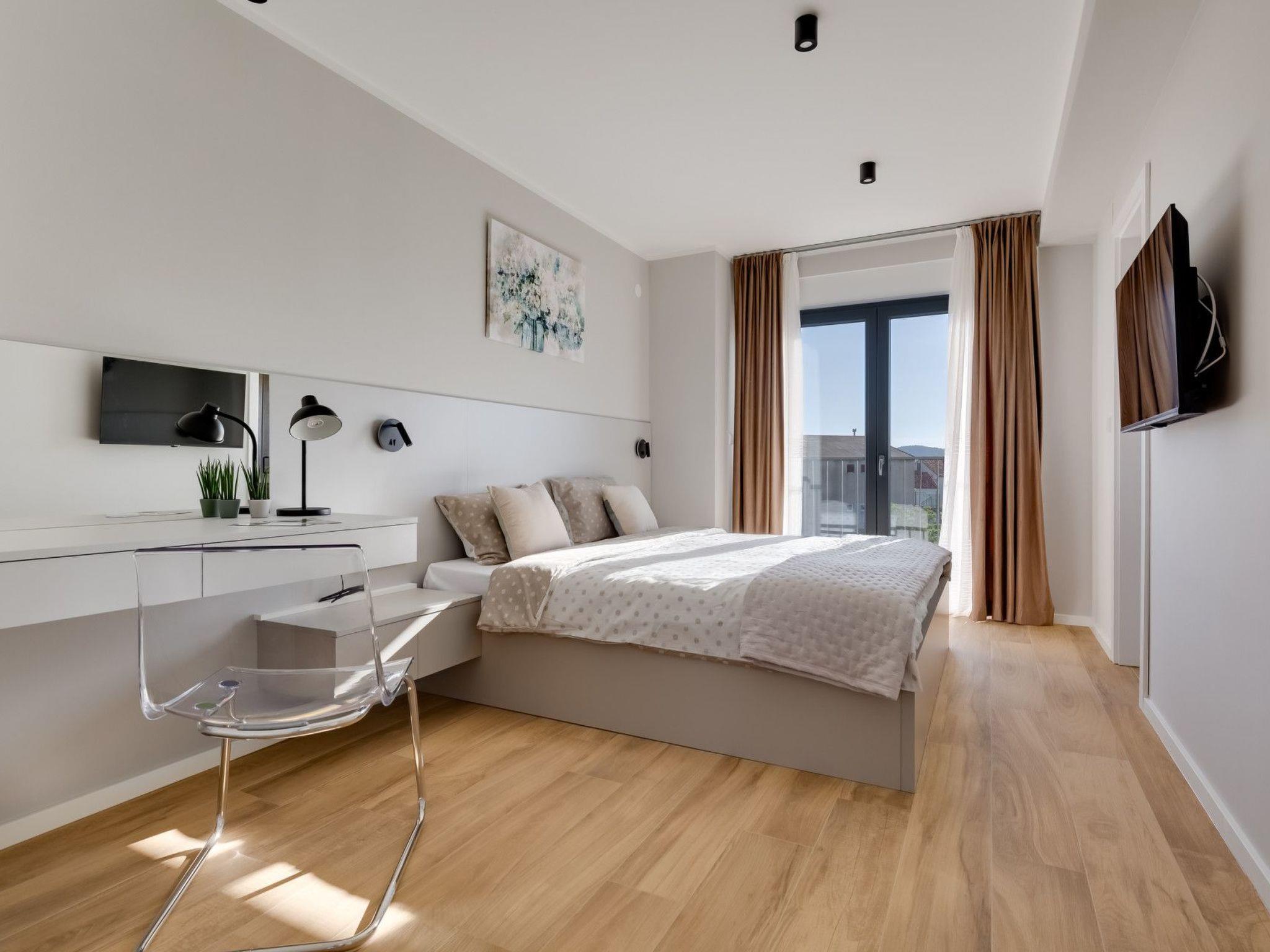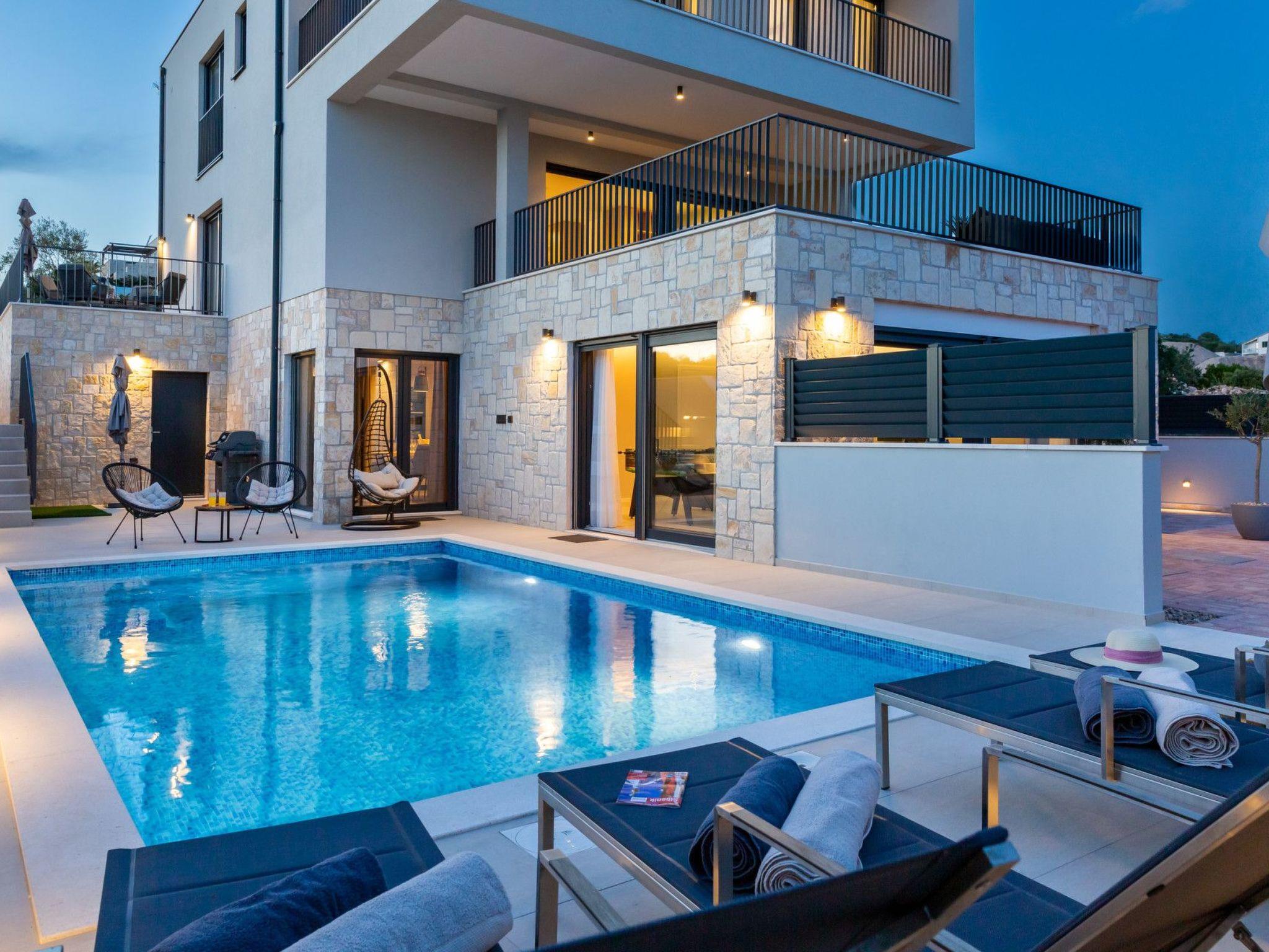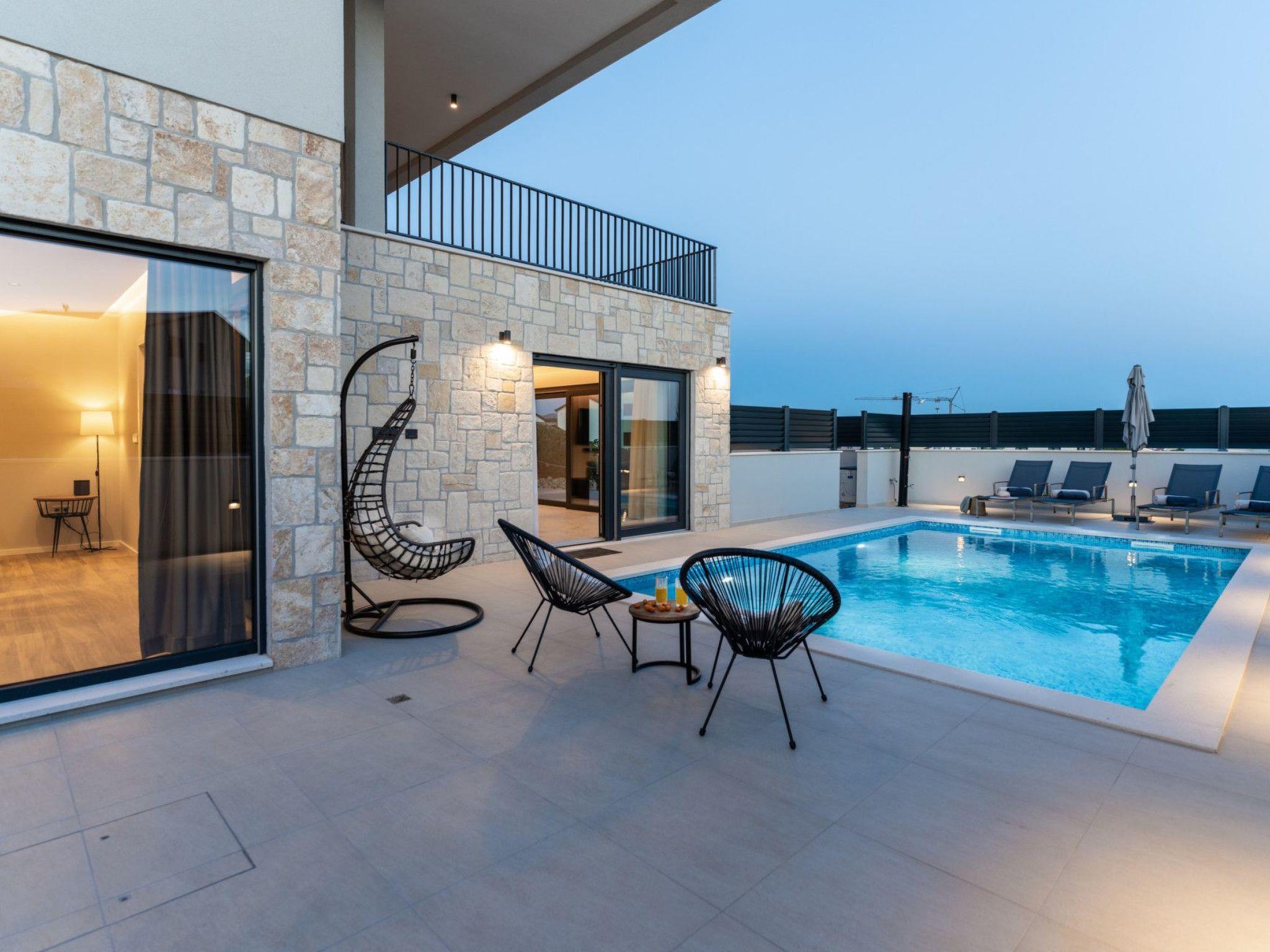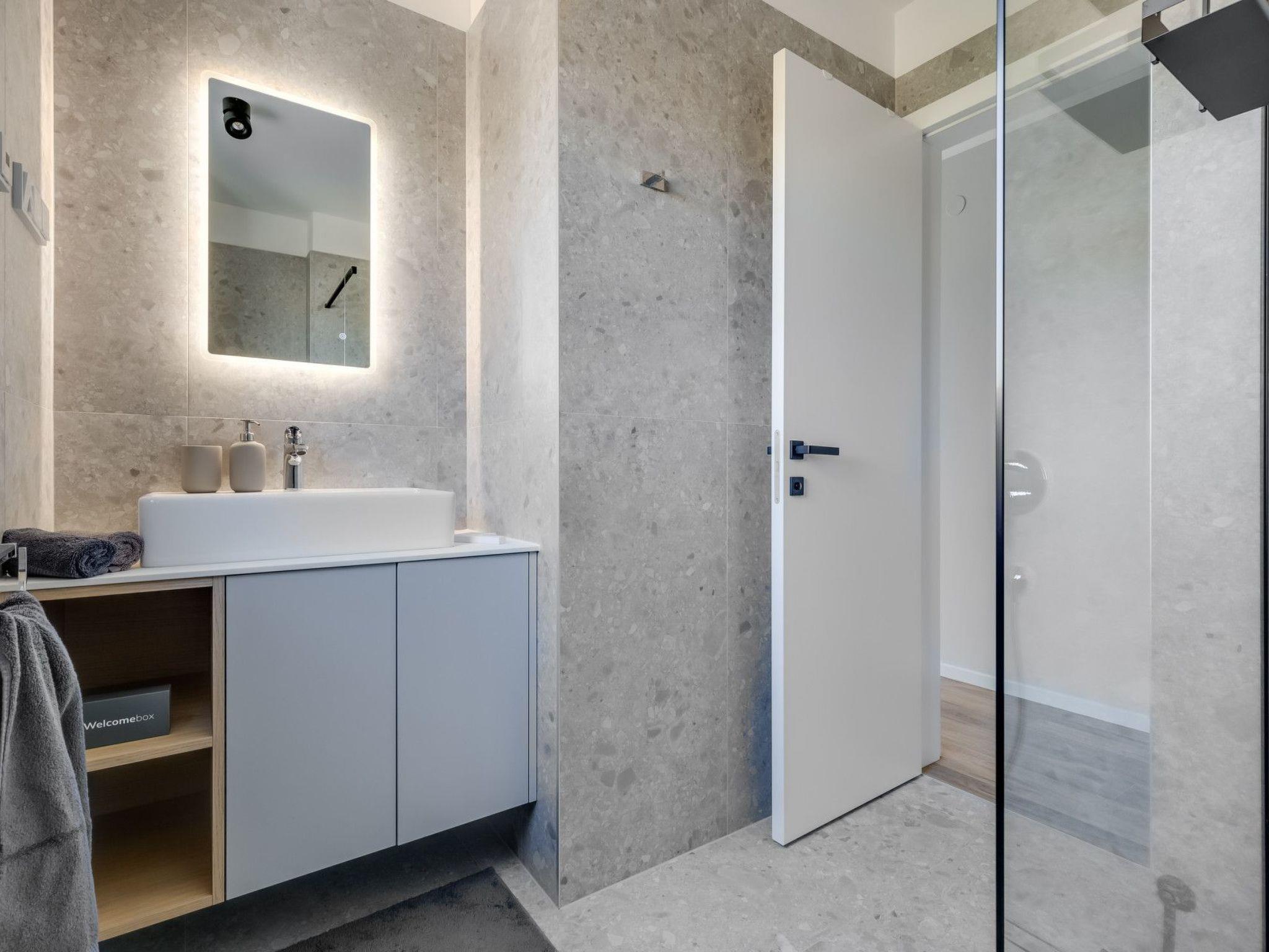 Diese moderne Villa Schönheit besteht aus insgesamt 4 Schlafzimmern mit eigenem Bad und kann maximal 8 Personen beherbergen. Alle Schlafzimmer befinden sich in der zweiten Etage. Zwei Schlafzimmer haben Zugang zum Balkon, von dem aus Sie die inspirierende Aussicht genießen können.