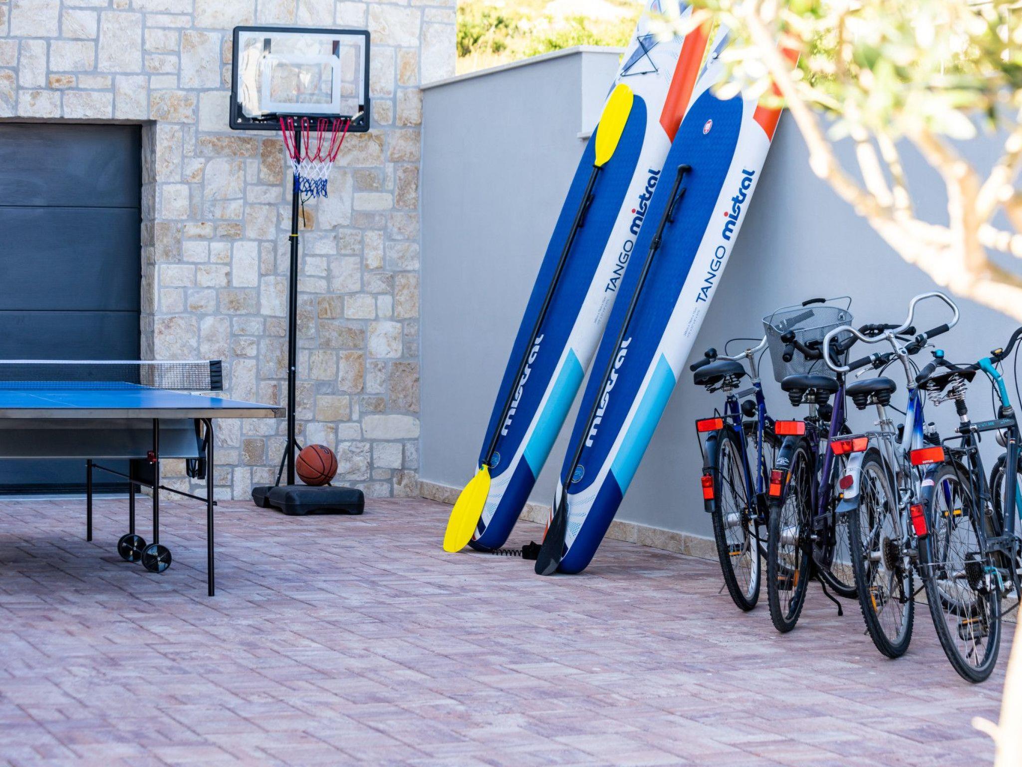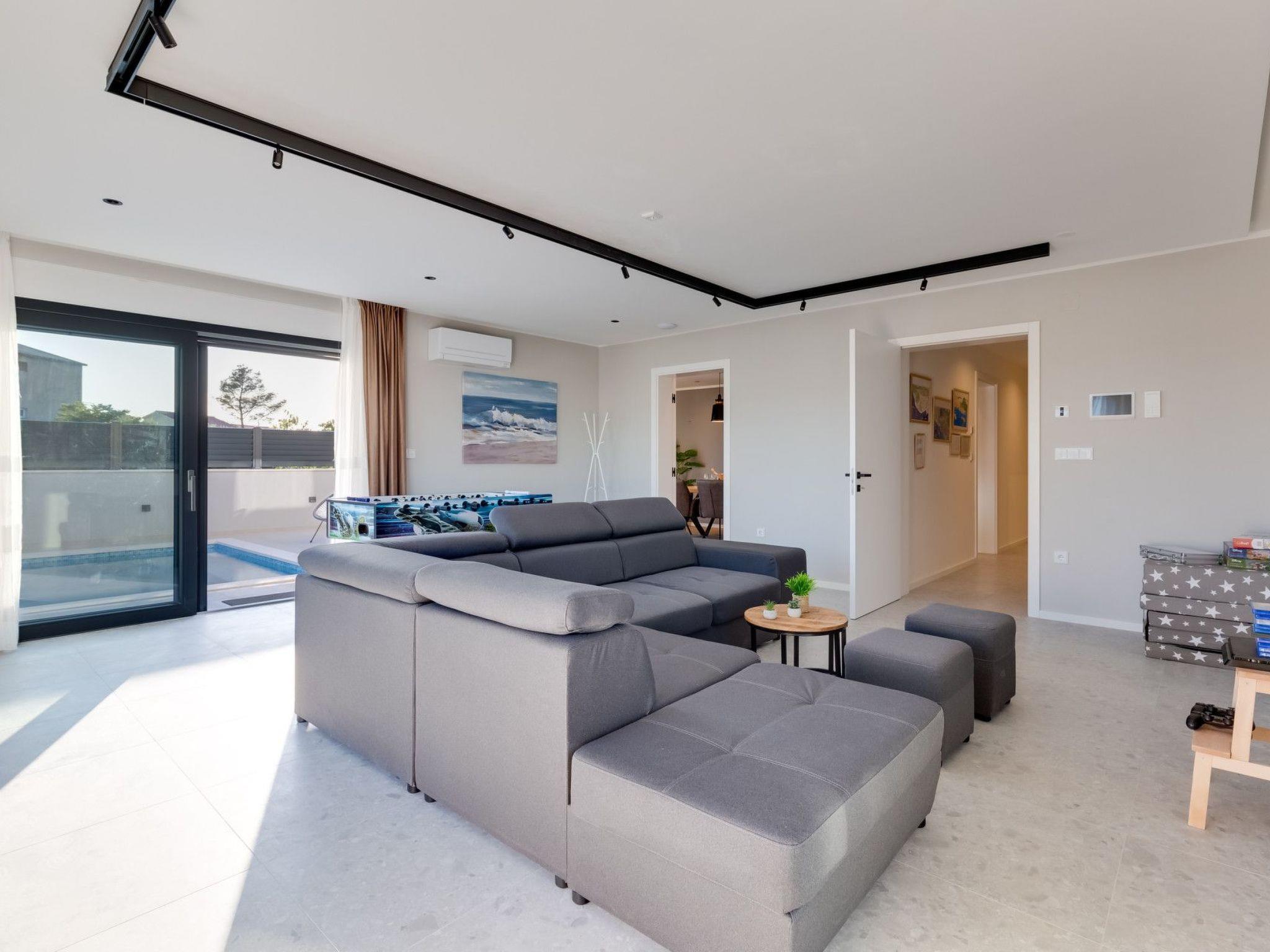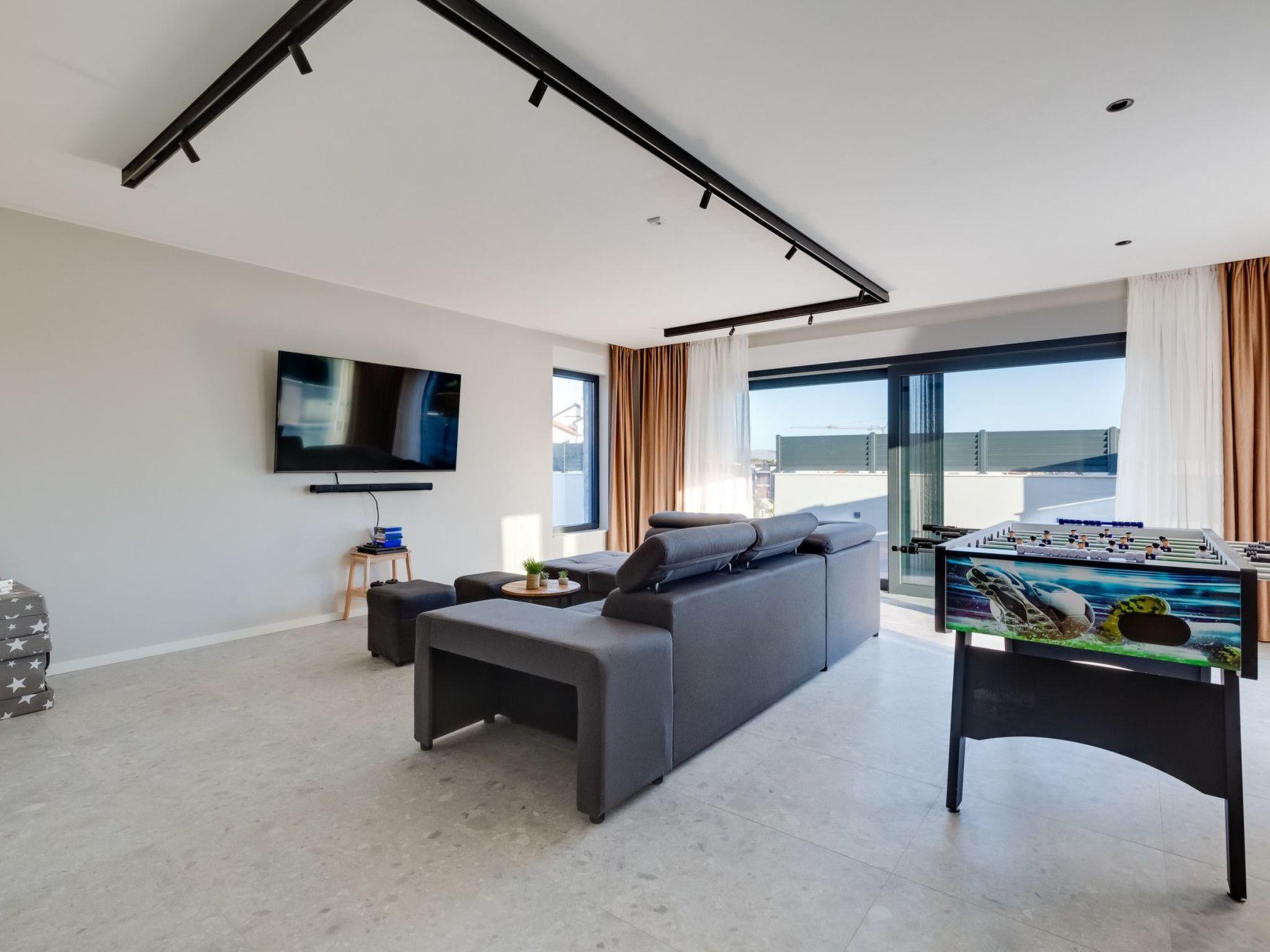 Im Erdgeschoss befindet sich eine voll ausgestattete Küche mit Kamin und Kochinsel sowie ein Esstisch, an dem Sie Ihre Mahlzeiten mit Blick auf den Pool genießen können. Neben der Küche ist das Beste an der Villa sicherlich das Unterhaltungszimmer, das für Ihre Entspannung und Unterhaltung gedacht ist. Es gibt ein Schlafsofa im Wohnzimmer für 2 Kinder.