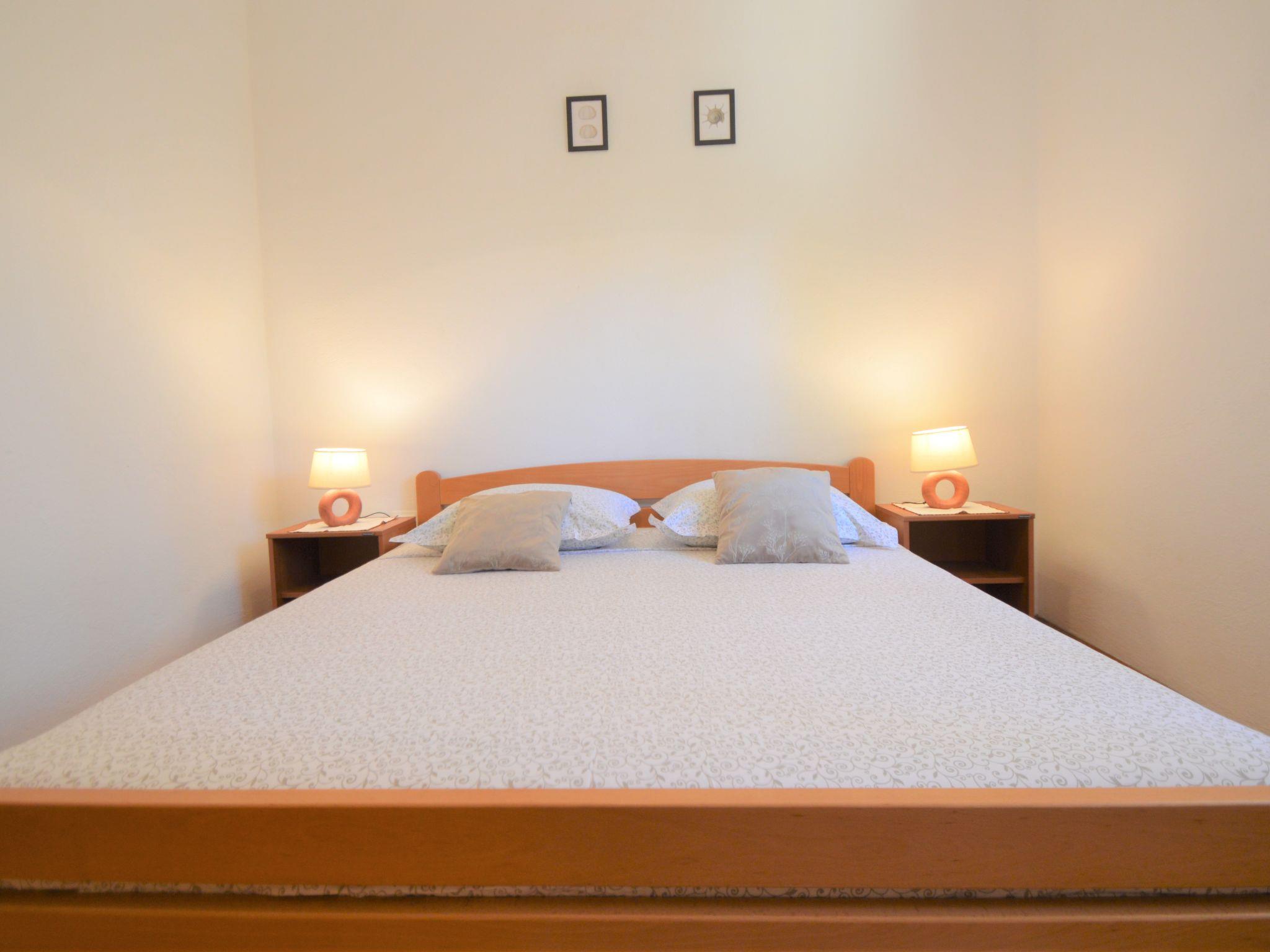 2-Zimmer-Wohnung 50 m2, im Erdgeschoss, Südlage. 1 Zimmer mit 1 franz. Bett (160 cm, Länge 200 cm), Bad/WC. 1 Zimmer mit 1 franz. Bett (180 cm, Länge 200 cm), Bad/WC. Esszimmer 10 m2 mit Sat-TV (Flachbildschirm), Klimaanlage. Ausgang zur Terrasse. Offene Küche (4 Kochplatten, Backofen, Geschirrspüler, Wasserkocher, Tiefkühler, elektrische Kaffeemaschine). Keine Heizmöglichkeit. Terrasse 40 m2. Terrassenmöbel. Zur Verfügung: Waschmaschine, Bügeleisen, Haartrockner. Internet (WLAN, gratis). Maximal 1 Haustier/Hund erlaubt.