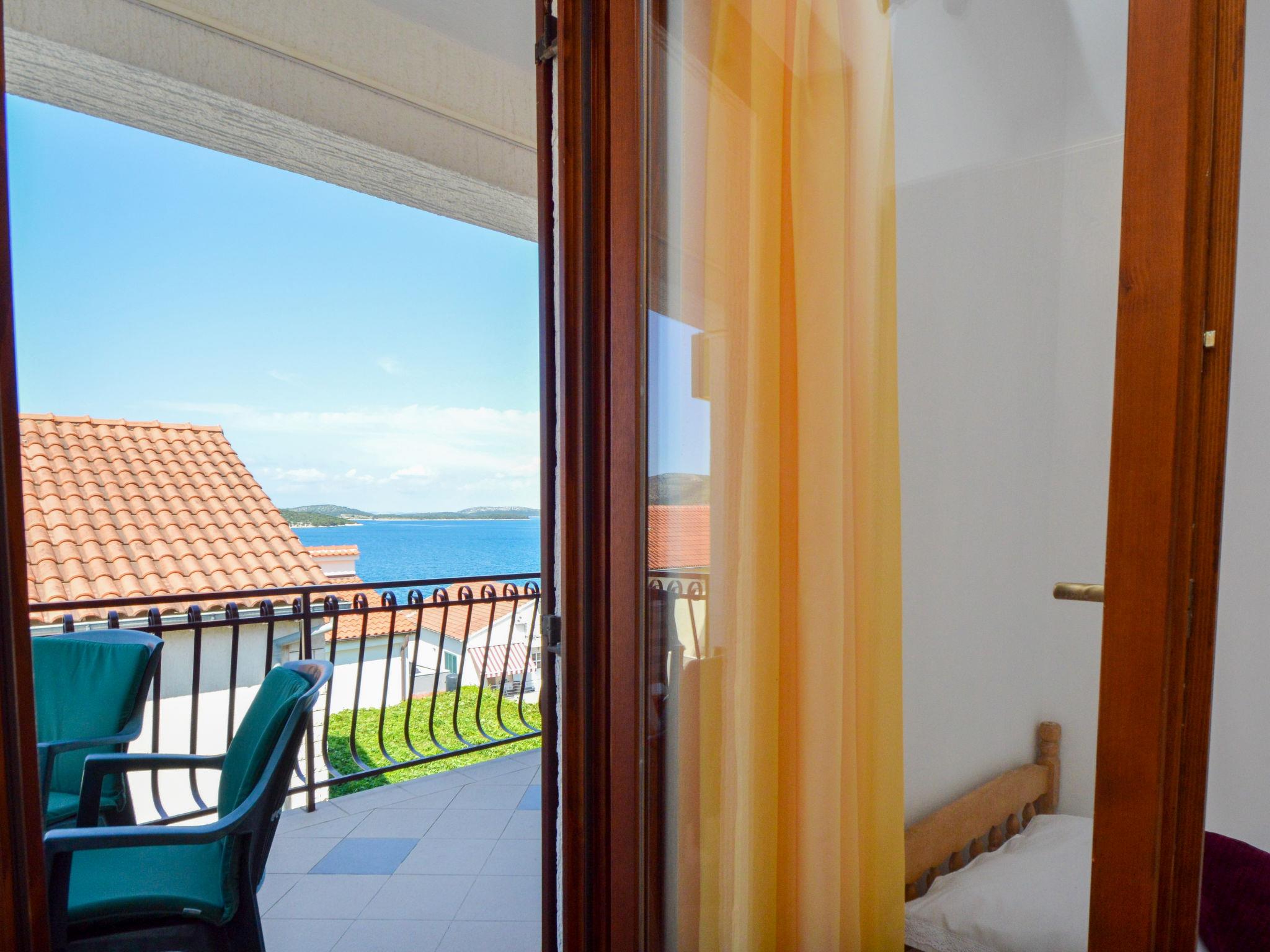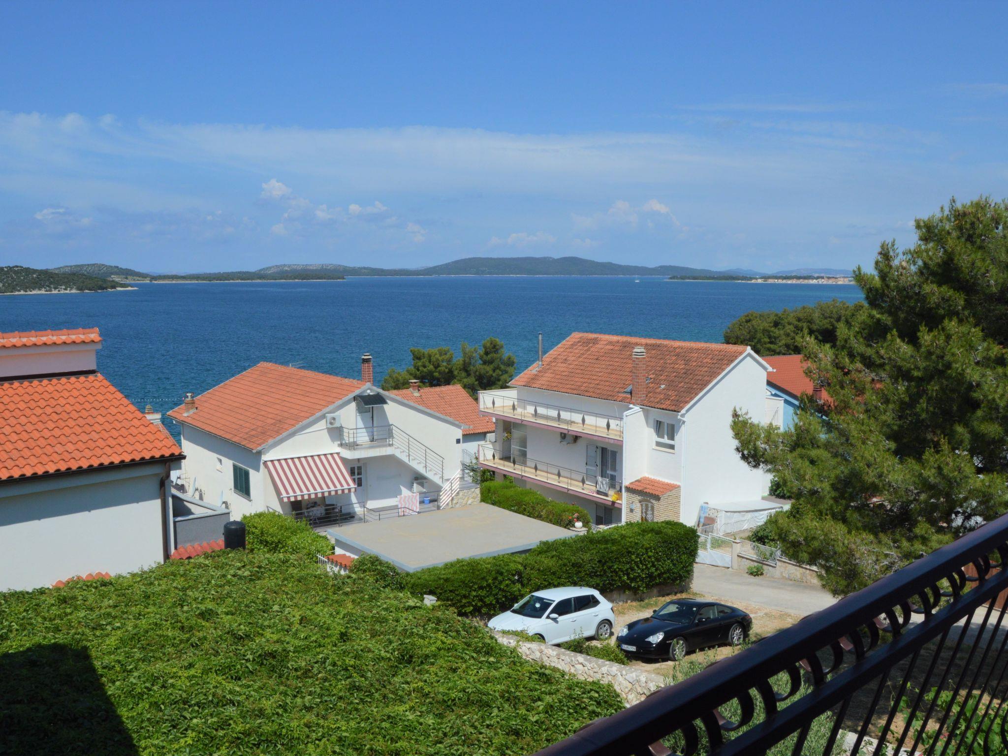 Žaboric 3 km von Brodarica: Mehrfamilienhaus "Rose". 1 km vom Zentrum von Žaboric, sonnige Lage, 100 m vom Meer, 100 m vom Strand. Zur Mitbenutzung: Grundstück 400 m2. Grill. Im Hause: Internetzugang. Parkplatz beim Haus auf dem Grundstück. Einkaufsgeschäft 800 m, Restaurant 1 km, Bushaltestelle 150 m, betonierter Strand 100 m.