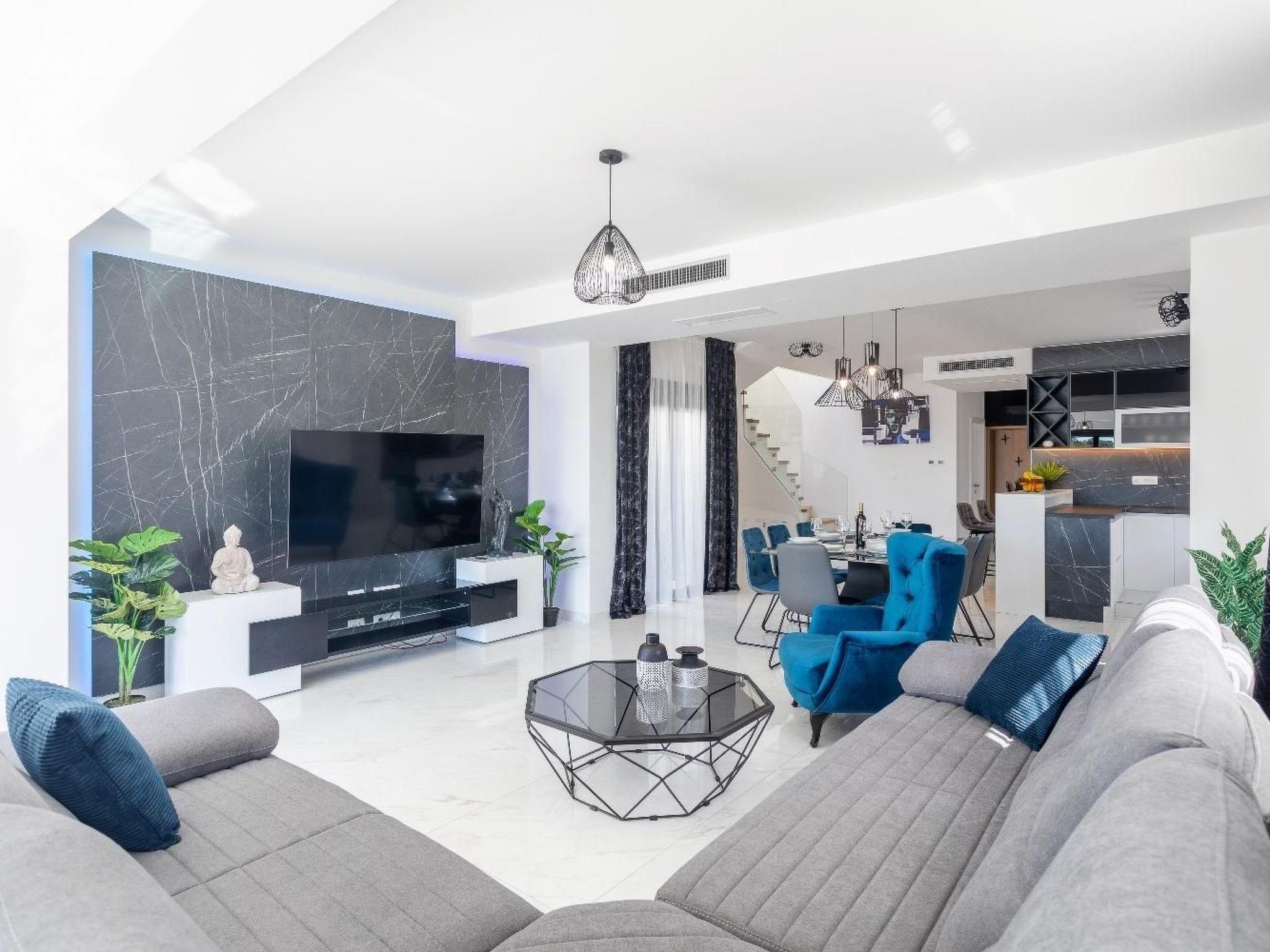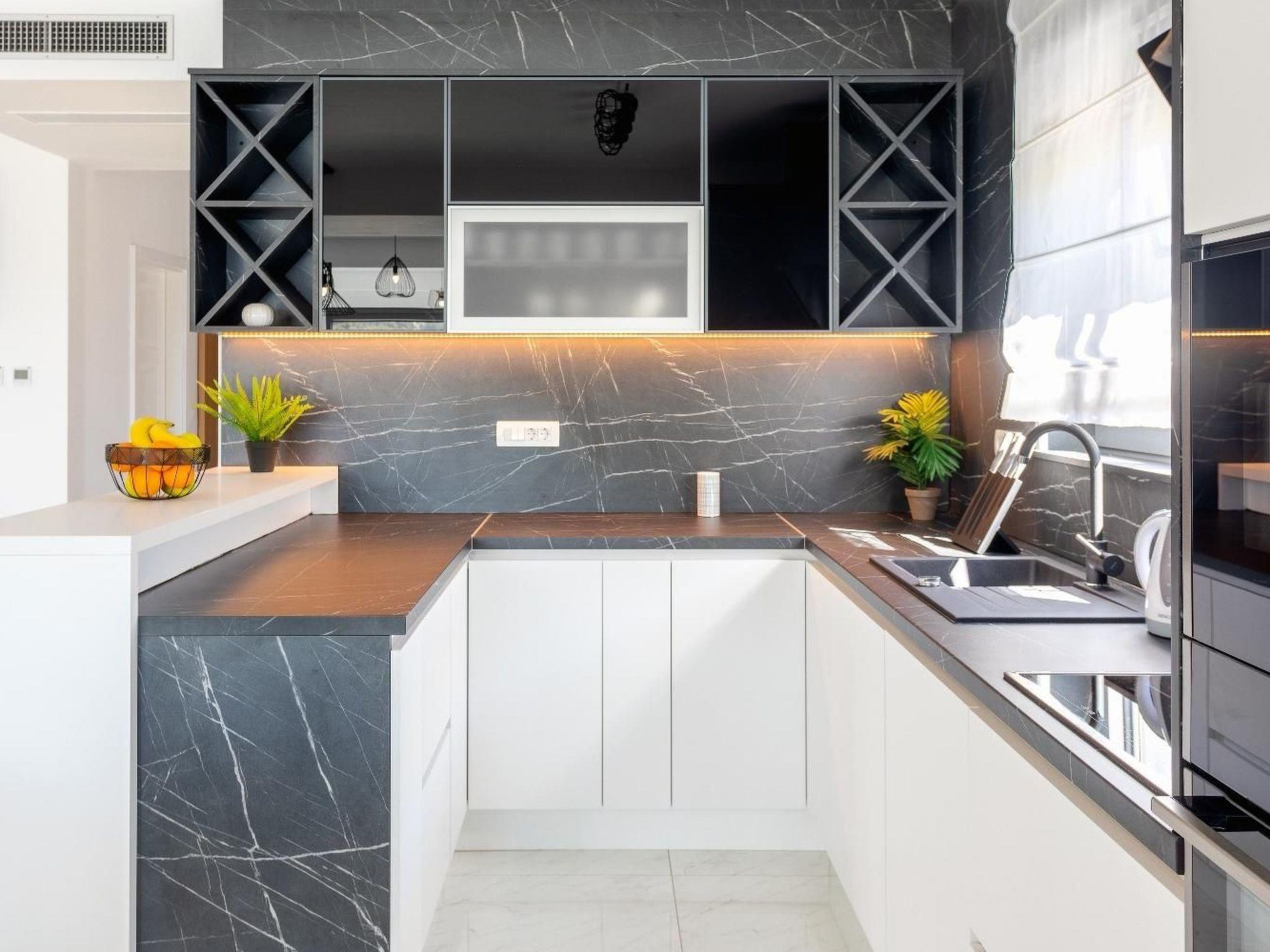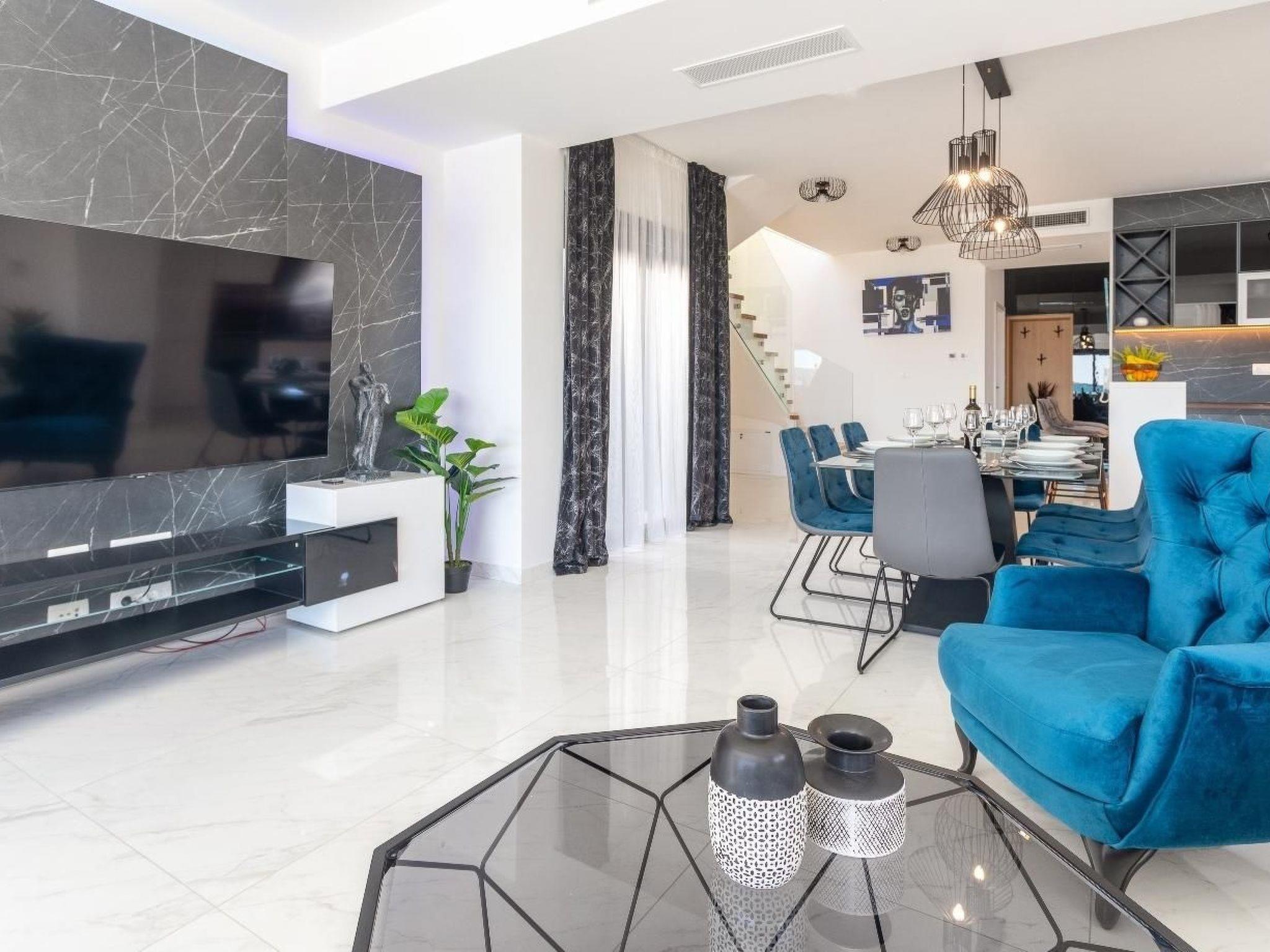 Es gibt 3 wunderschöne Schlafzimmer in der Villa, alle mit eigenem Bad. Die Schlafzimmer haben eine Kapazität für 6 Personen und es gibt ein zusätzliches Schlafsofa für 2 weitere Gäste. Jedes Schlafzimmer hat eine eigene Terrasse mit herrlicher Aussicht. In dem geräumigen Wohnzimmer können Sie sogar arbeiten, aber Sie sollten es nur zum Ausruhen nutzen. Die schöne schwarz-weiße Küche ist voll ausgestattet und direkt daneben befindet sich der überdachte Essbereich. Und wir wissen, dass das traditionelle Willkommenspaket ein Muss ist, das dort auf Sie wartet.