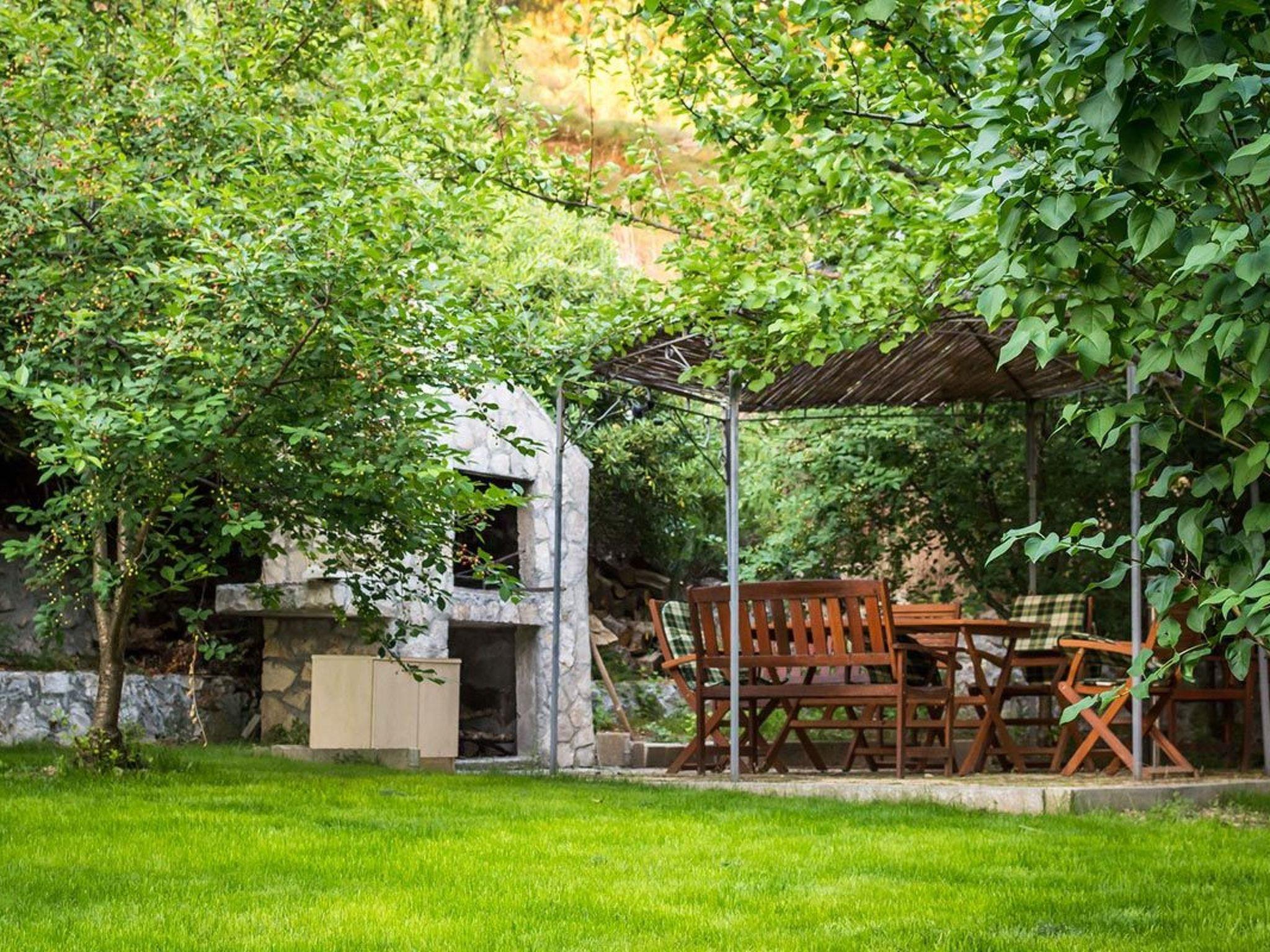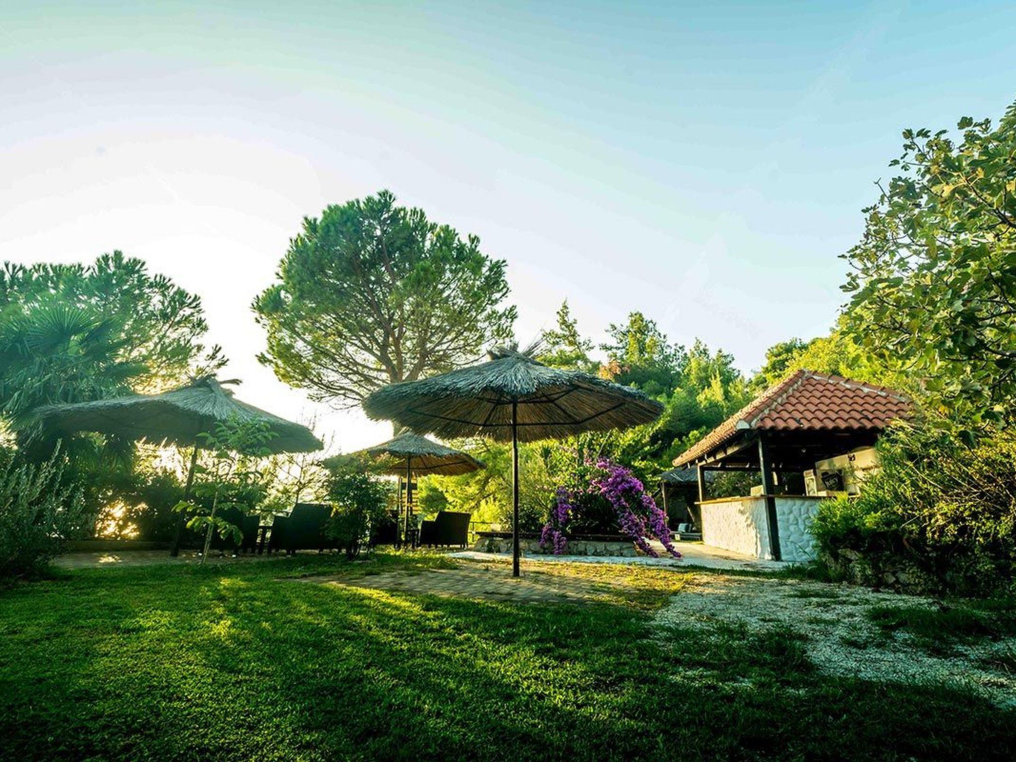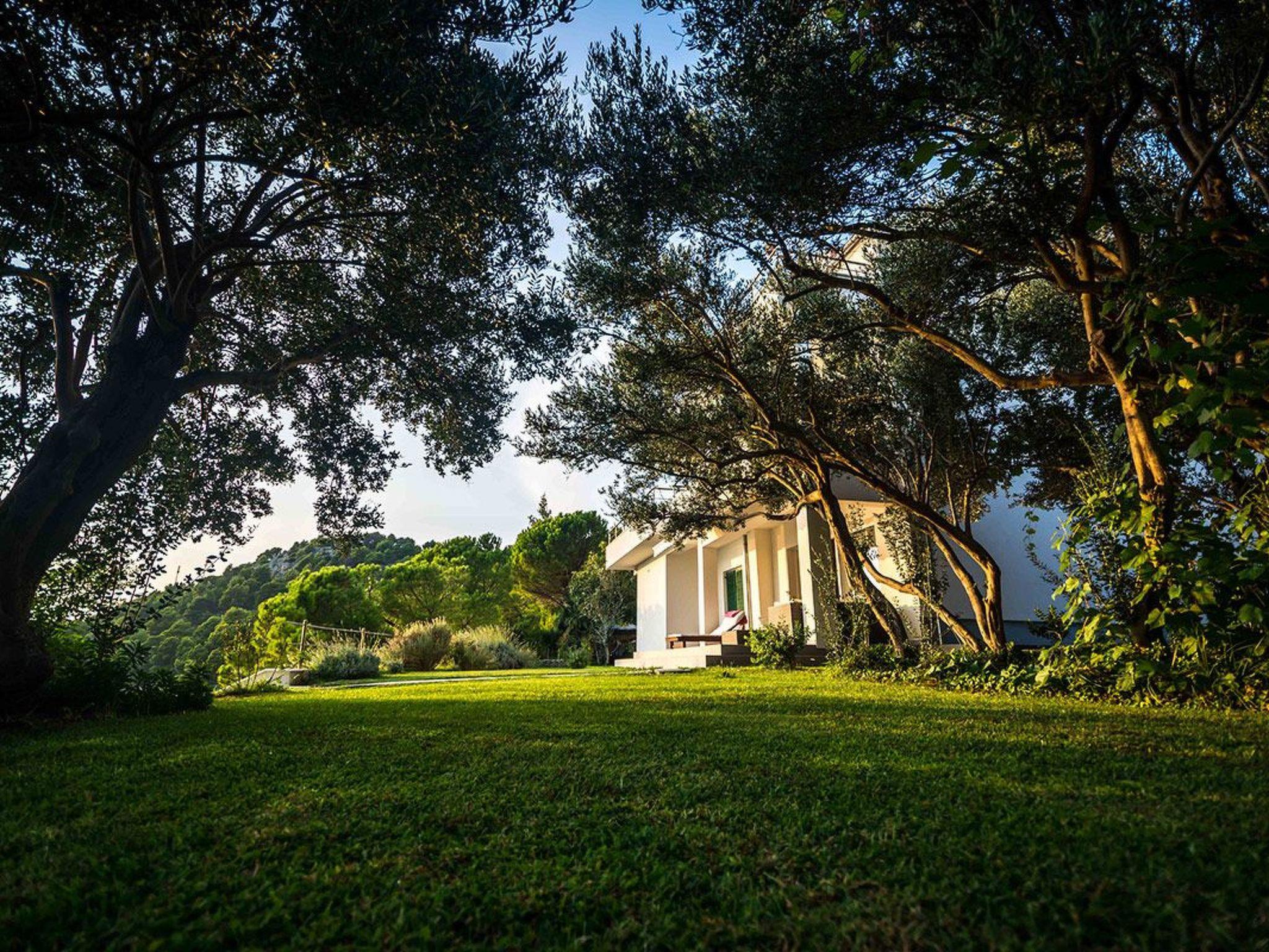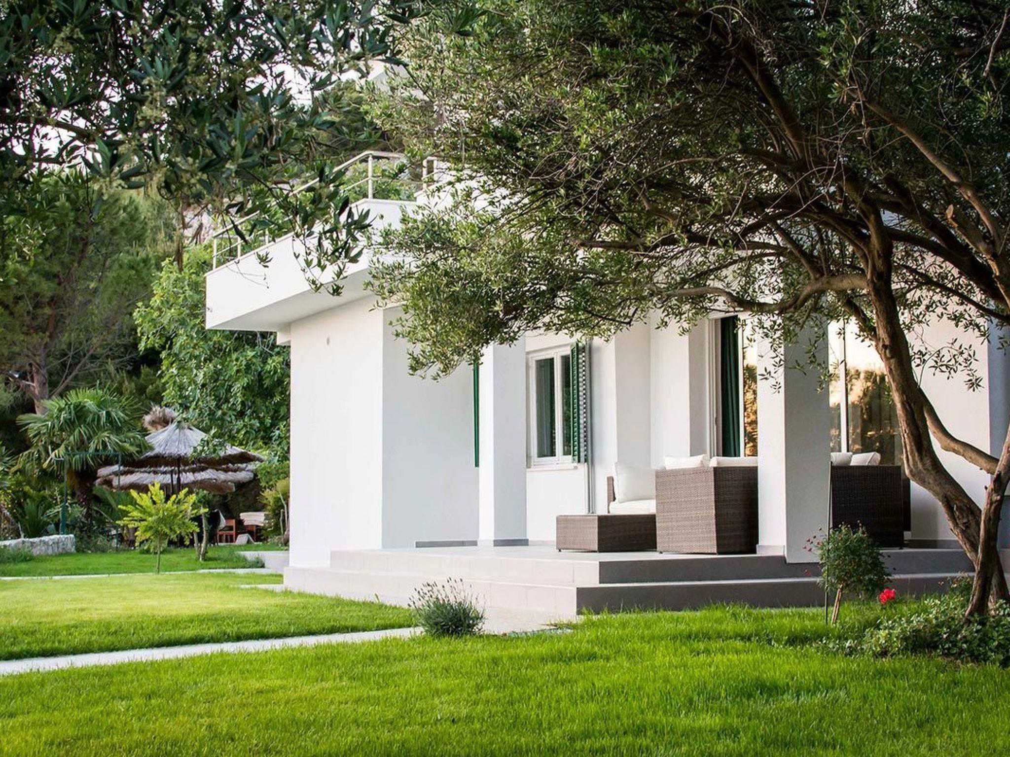 Alles ist von einem 1.500 m2 großen Garten umgeben, der voll von mediterranen Pflanzen und Blumen, autochthonen Kulturen, Oliven, Feigen und verschiedenen Früchten ist, die im Sommer reif werden. Wir möchten auch betonen, dass es keine Café-Bar mehr gibt, die in relativ unmittelbarer Nähe des Hauses war.