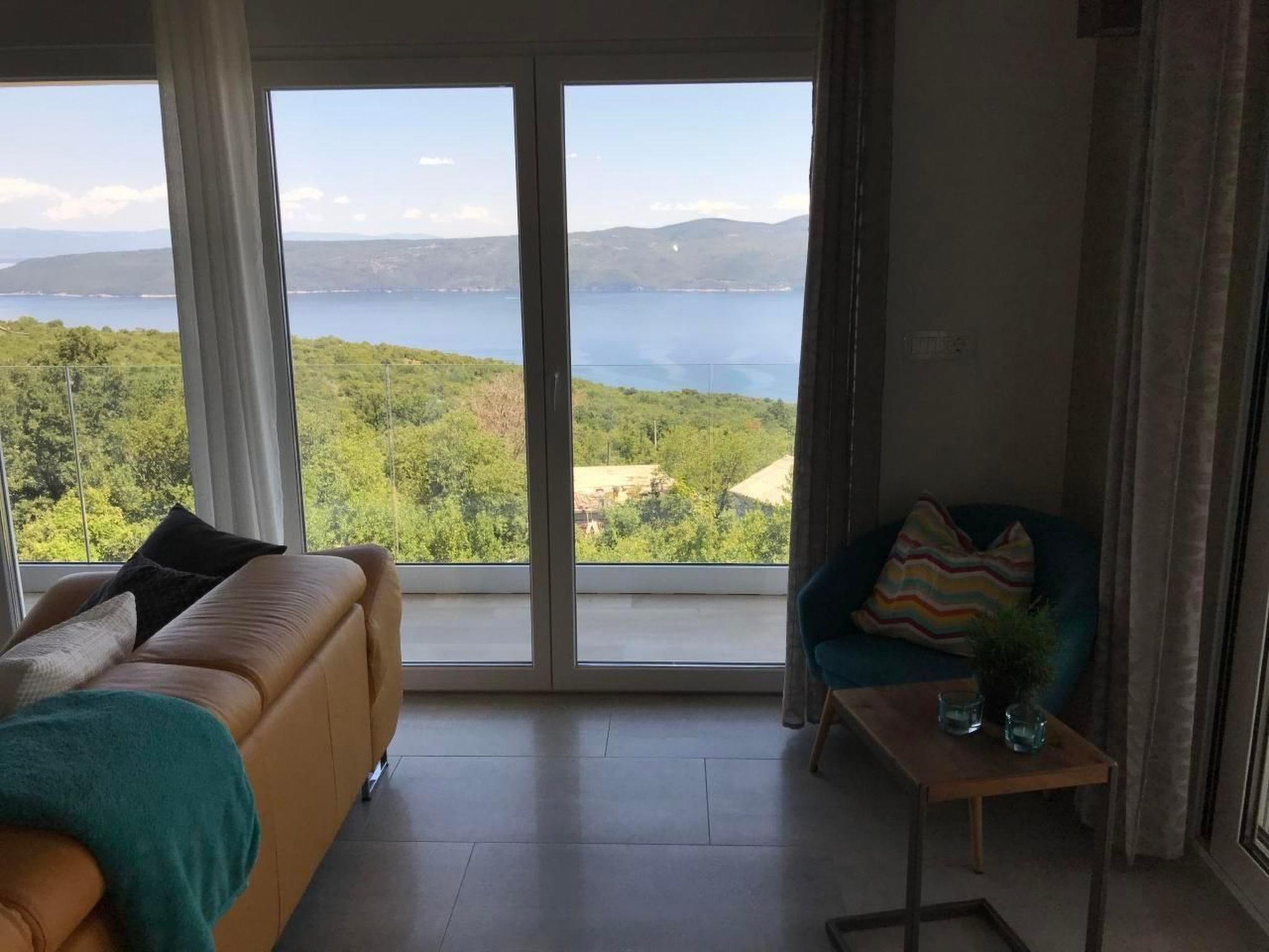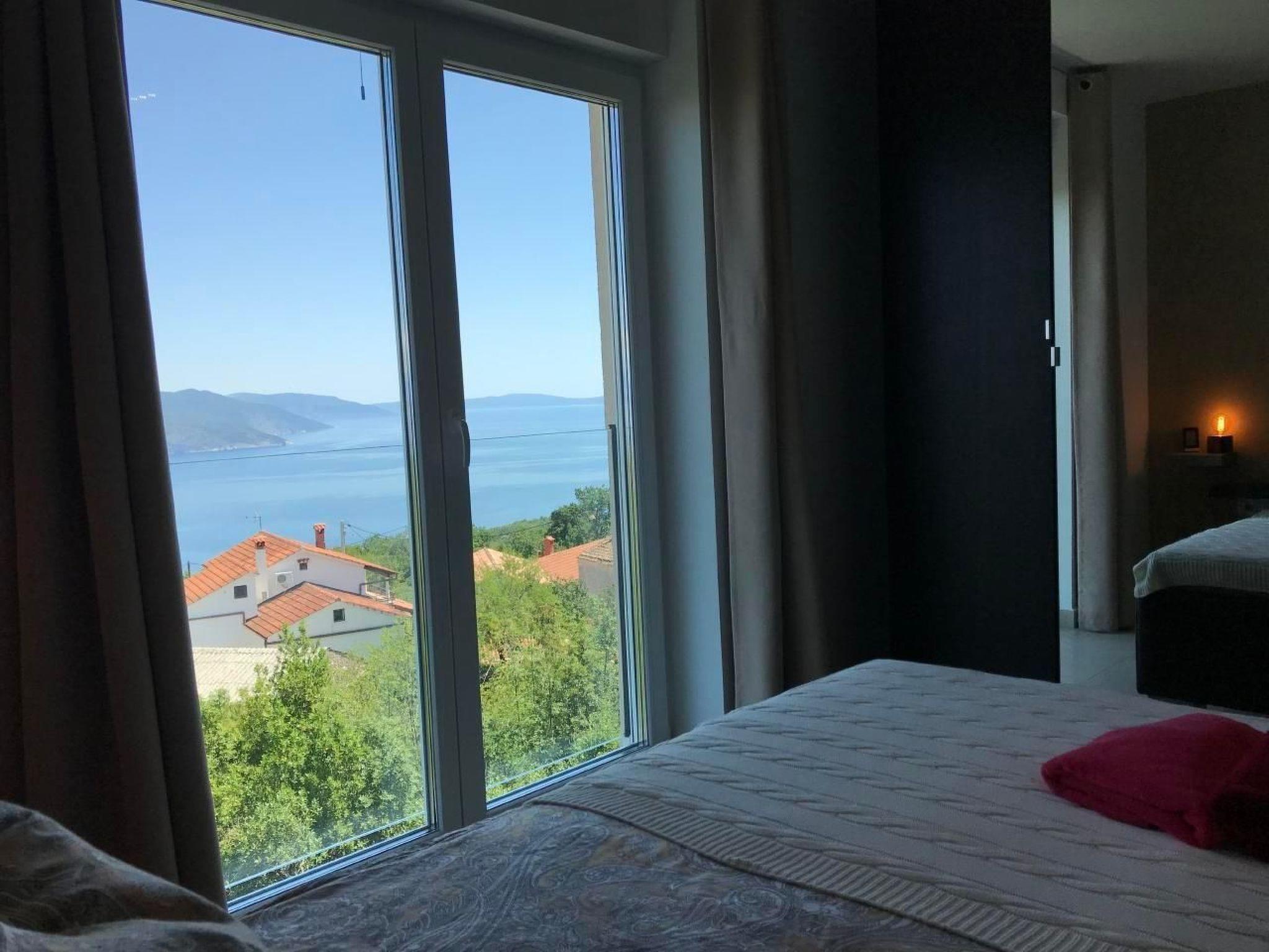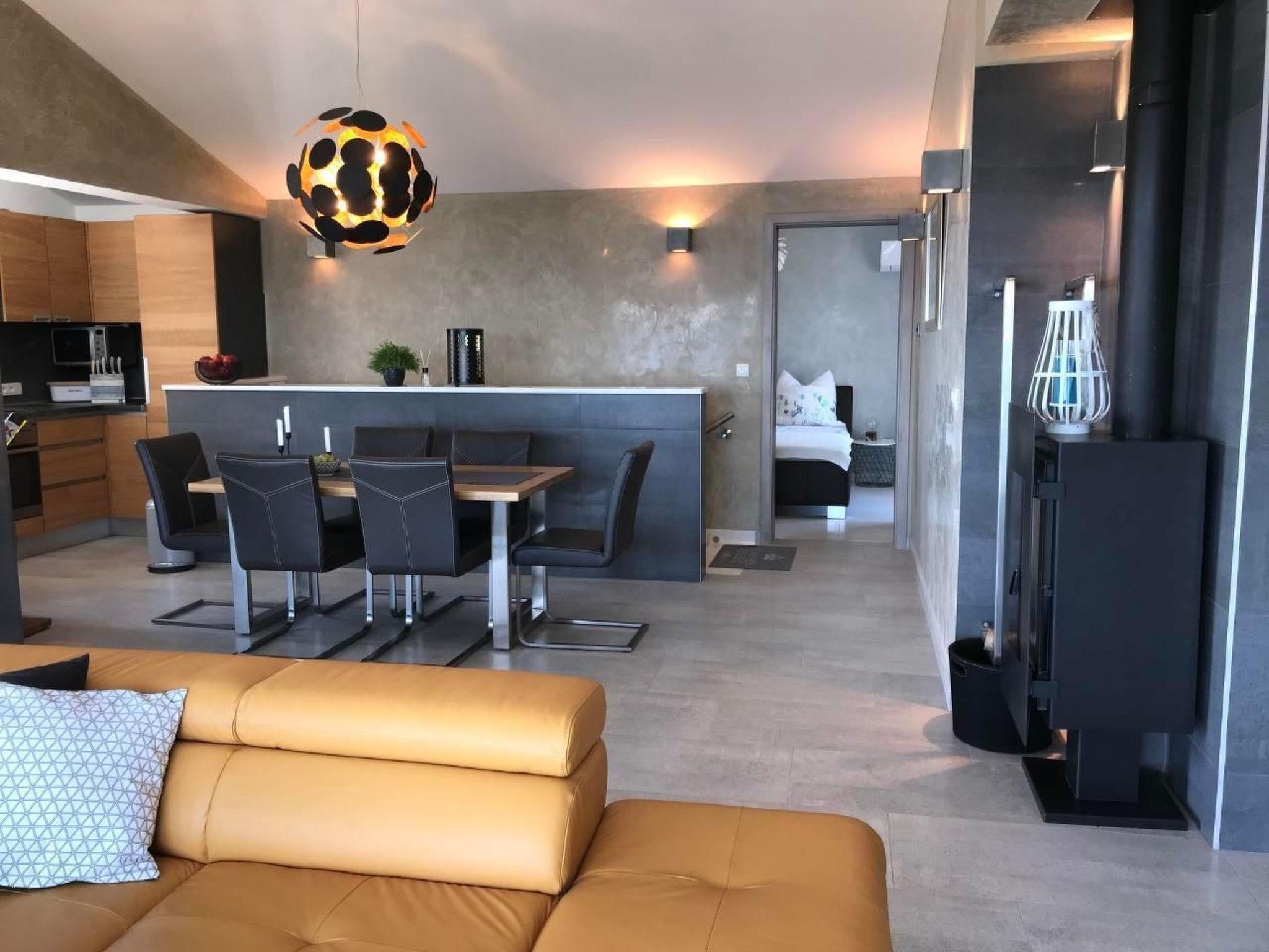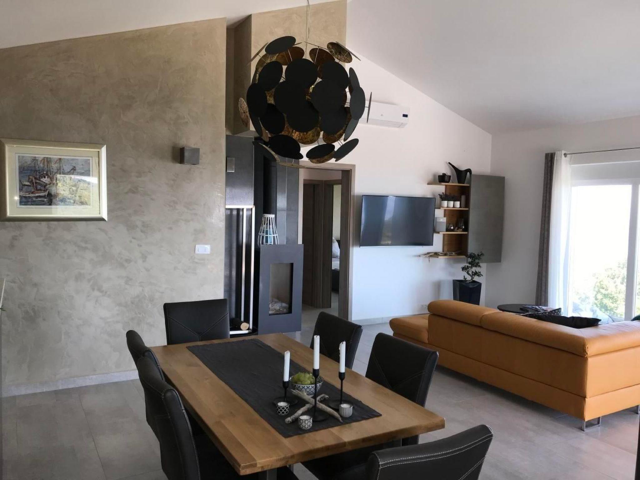 Das Appartement Losinj in der 2018 neu erbauten Villa Istra Panorama befindet sich in der oberen Etage. Von hier aus haben sie eine traumhafte Meeressicht auf die Inseln Raab , Cress und Losinj sowie die Kvarner Bucht. Durch das großzügige Wohnzimmer mit einer 3,5 meter hoher Decke und der großen L-Förmigen überdachten Terasse fühlen sie sich hier wie in einem Penthaus. Einen Aussengrillkamin mit einer angrenzenden Küchenzeile wird sie beim Zubereiten leckerer Grillgerichte begeistern. Der Side by Side Kühlschrank mit Ice Maker und Wasserspender ist nahe der Terasse plaziert und wird sie mit vorzüglichem Wasser aus dem angrenzenden Naturpark Ucka verwöhnen. Am 11 Meter Infinity Pool ,in einer Etage tiefer ,stehen ihre Liegen bereit zum relaxen und erfrischen. Dieses 103 m2 große Appartement mit zwei Schlafzimmer und zwei Bädern ist ideal für 4 Erwachsene . Zwei zusätzliche Schlafgelegenheiten auf der großen Wohnzimmercouch können bei Bedarf auch genutzt werden wie Kinderbetten/Babybetten im Schlaffzimmer. In der kühleren Urlaubszeit haben sie die Möglichkeit die Fussbodenheizung und ein Kaminofenfeuer mit Blick auf das Meer zu erleben. In der Vor und Nachsaison kann auf Wunsch der Pool mit einer Wärmepumpe umweltschonend und effizient beheizt werden. Entspannen, genießen und Energie auftanken ist hier gut möglich.