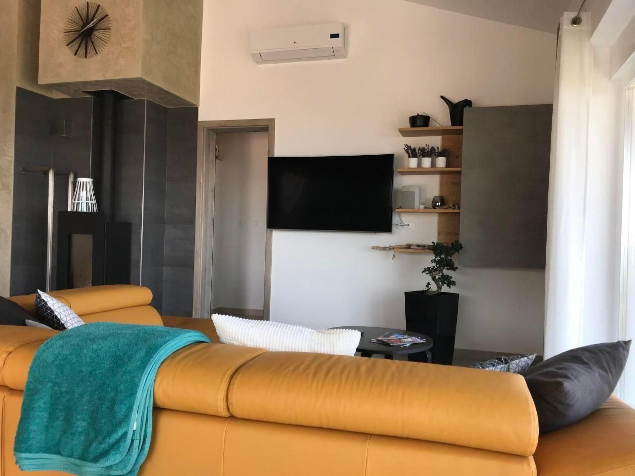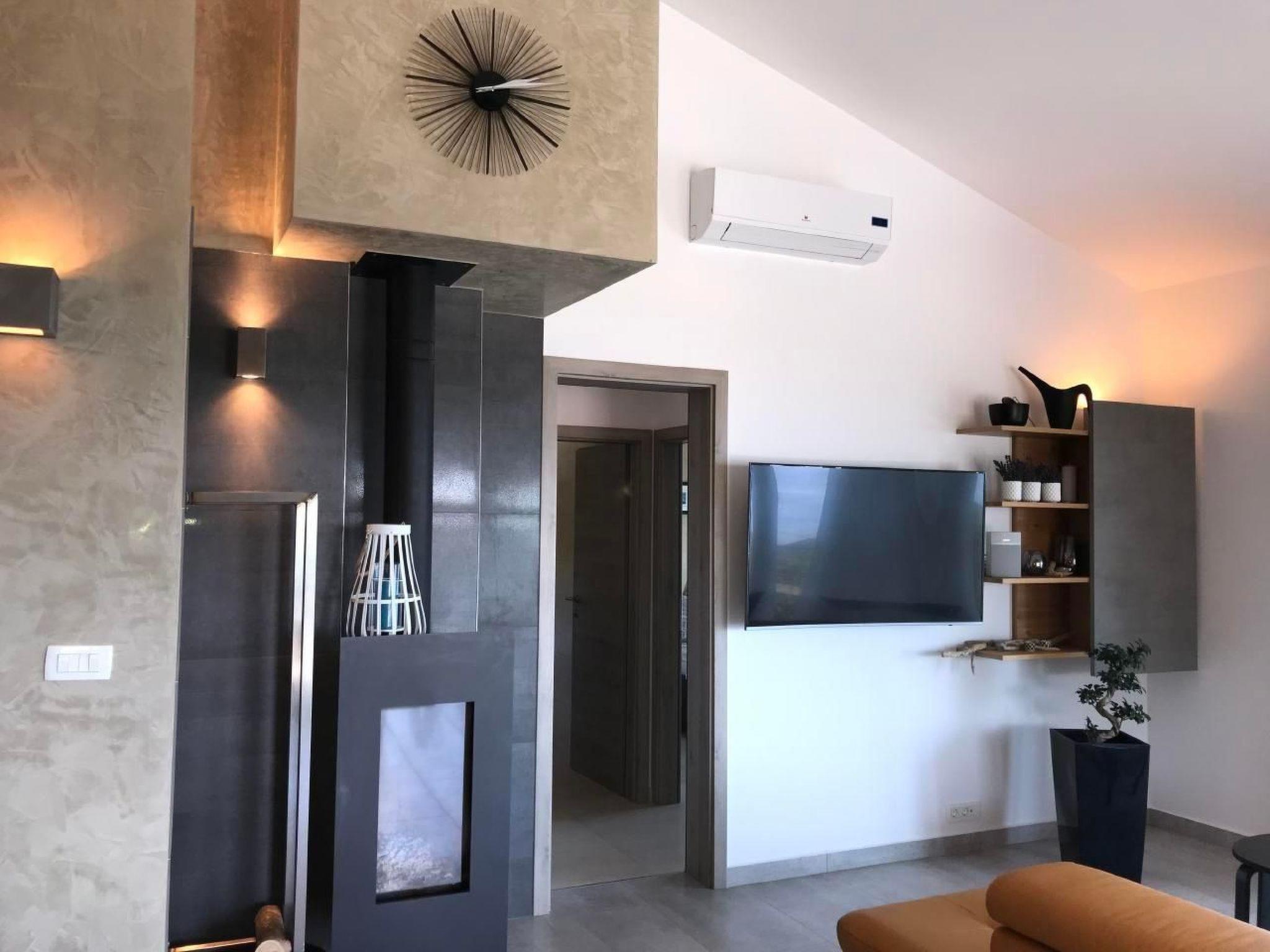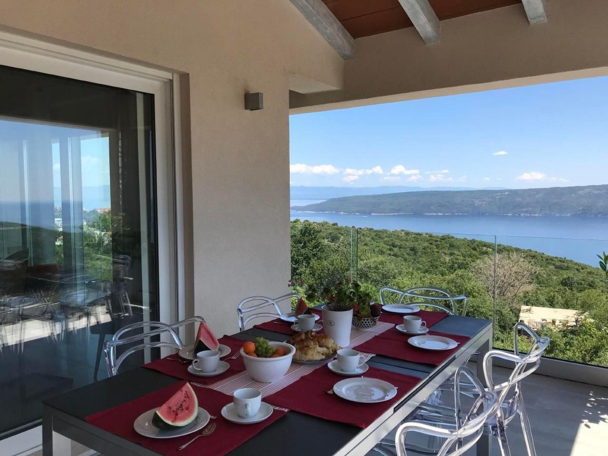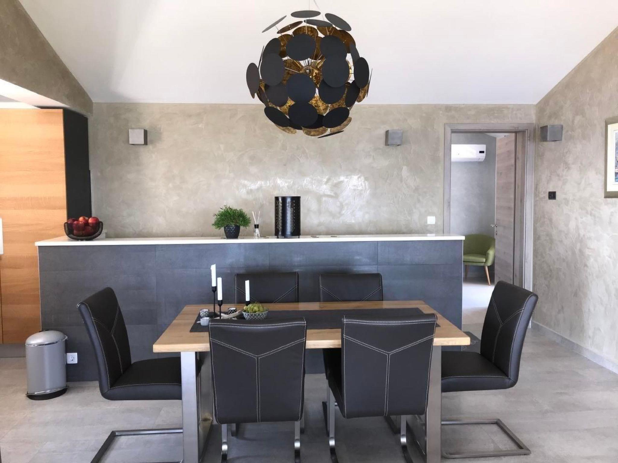 Das Appartement Losinj in der 2018 neu erbauten Villa Istra Panorama befindet sich in der oberen Etage. Von hier aus haben sie eine traumhafte Meeressicht auf die Inseln Raab , Cress und Losinj sowie die Kvarner Bucht. Durch das großzügige Wohnzimmer mit einer 3,5 meter hoher Decke und der großen L-Förmigen überdachten Terasse fühlen sie sich hier wie in einem Penthaus. Einen Aussengrillkamin mit einer angrenzenden Küchenzeile wird sie beim Zubereiten leckerer Grillgerichte begeistern. Der Side by Side Kühlschrank mit Ice Maker und Wasserspender ist nahe der Terasse plaziert und wird sie mit vorzüglichem Wasser aus dem angrenzenden Naturpark Ucka verwöhnen. Am 11 Meter Infinity Pool ,in einer Etage tiefer ,stehen ihre Liegen bereit zum relaxen und erfrischen. Dieses 103 m2 große Appartement mit zwei Schlafzimmer und zwei Bädern ist ideal für 4 Erwachsene . Zwei zusätzliche Schlafgelegenheiten auf der großen Wohnzimmercouch können bei Bedarf auch genutzt werden wie Kinderbetten/Babybetten im Schlaffzimmer. In der kühleren Urlaubszeit haben sie die Möglichkeit die Fussbodenheizung und ein Kaminofenfeuer mit Blick auf das Meer zu erleben. In der Vor und Nachsaison kann auf Wunsch der Pool mit einer Wärmepumpe umweltschonend und effizient beheizt werden. Entspannen, genießen und Energie auftanken ist hier gut möglich.