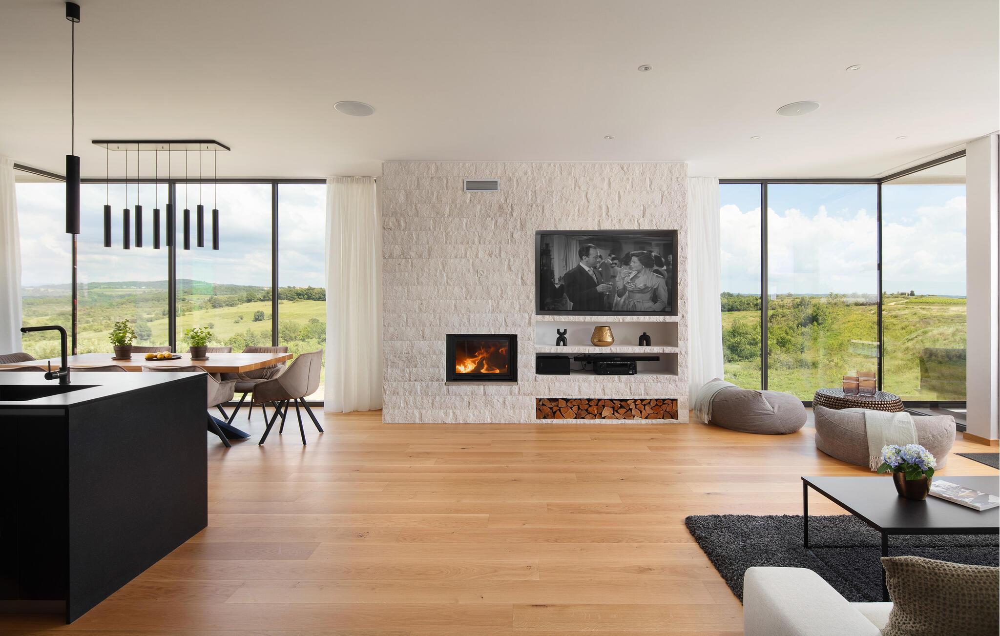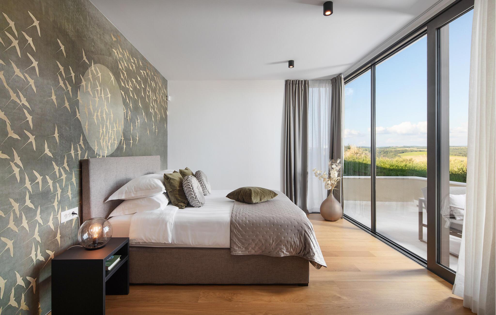 Erleben Sie Luxus pur in diesem modernen, großzügigen Ferienhaus, das mit seiner stilvollen Einrichtung und bodentiefen Fenstern begeistert. Hochwertige Materialien und ein ausgewähltes Design schaffen für Sie ein exklusives Ambiente, das keine Wünsche offenlässt. Die großen Wohnräume öffnen sich zur weiten Landschaft und bieten einen atemberaubenden Blick bis zum Meer. Egal, ob Sie in der modernen Küche zaubern oder auf dem Sofa mit einem knisternden Kaminfeuer entspannen, Sie können hier einfach die Seele baumeln lassen.