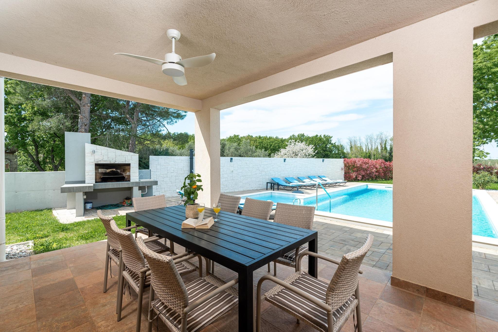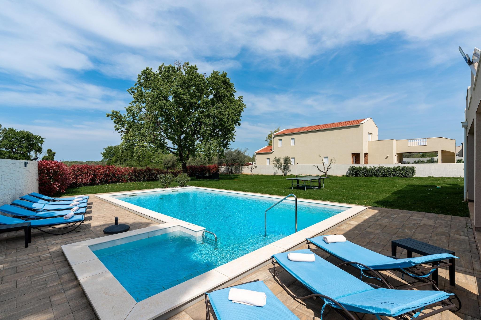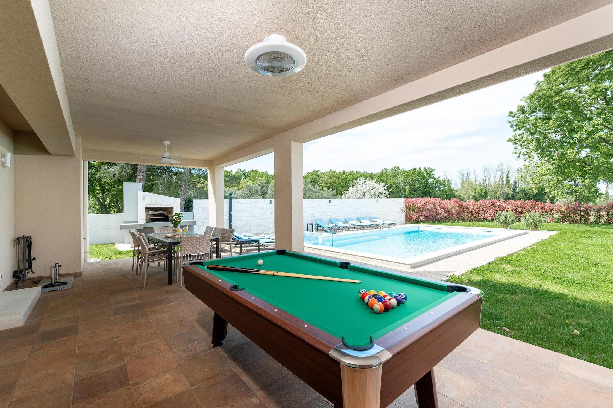 Erleben Sie Luxus und Komfort in unserer atemberaubenden neuen Villa in Istrien, Kroatien. Dieses exquisite Anwesen verfügt über 4 geräumige Schlafzimmer, jedes mit eigenem Bad, die für Entspannung und Privatsphäre konzipiert sind und Platz für bis zu 8 Gäste bieten. Gönnen Sie sich ultimative Entspannung in Ihrem privaten Salzelektrolyse-Swimmingpool, der für Ihren Komfort beheizt werden kann. Dieser umweltfreundliche Pool ist sanft zur Haut und schont die Umwelt. Genießen Sie eine Sauna mit zusätzlicher Dusche und Toilette für Ihren Komfort und sorgen Sie für ein luxuriöses Erlebnis während Ihres Aufenthalts in der Villa. Bereiten Sie köstliche Mahlzeiten in der voll ausgestatteten Küche zu oder entspannen Sie im stilvollen Wohnzimmer, das reichlich Platz für Unterhaltung bietet. Nutzen Sie außerdem den Grillbereich im Freien, der sich perfekt zum Grillen herzhafter Gerichte und für unvergessliche kulinarische Erlebnisse unter dem istrischen Himmel eignet. Betreten Sie die Außenterrasse und tauchen Sie ein in die Schönheit der Natur im riesigen Garten, der die Villa umgibt. Nehmen Sie an freundschaftlichen Wettkämpfen mit Ihren Lieben teil und genießen Sie Annehmlichkeiten wie Tischtennis, Tischfußball und Billard für endlosen Spaß.