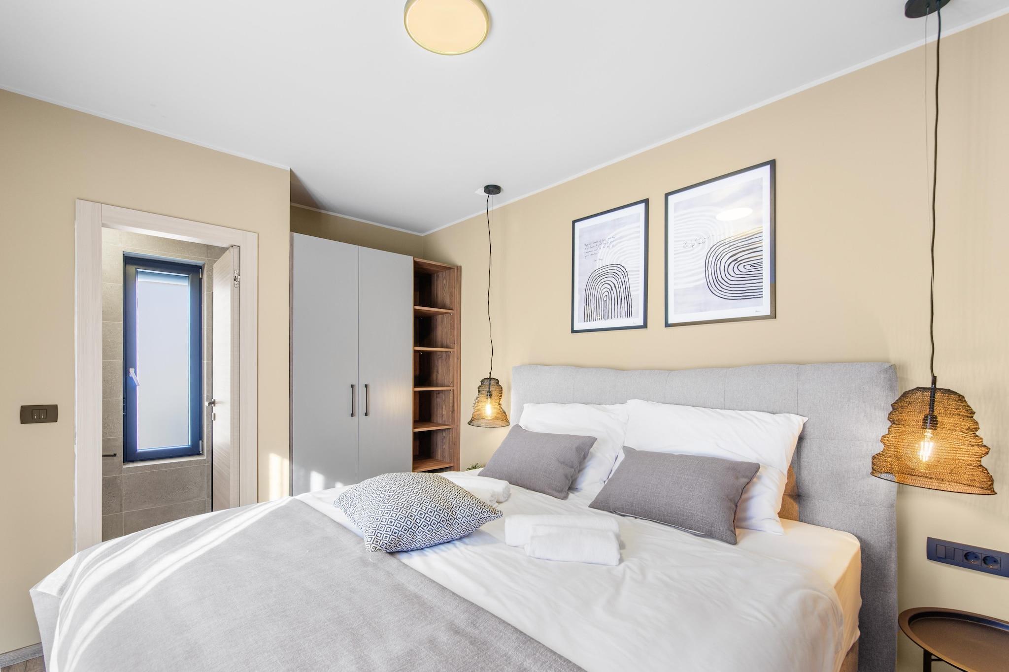 Dieses luxuriöse Erdgeschossapartment in der wunderschönen Villa ist der perfekte Rückzugsort für eine Familie oder eine Gruppe von Freunden. Das Apartment verfügt über 2 Schlafzimmer, 2 Badezimmer, eine voll ausgestattete Küche und ein gemütliches Wohnzimmer. Betreten Sie die einladende Terrasse mit einem erfrischenden Swimmingpool, der sich perfekt zum Entspannen in der Sonne oder zum Essen im Freien eignet. Diese Apartments bieten Platz für bis zu 5 Personen und einen komfortablen und bequemen Aufenthalt nur 150 Meter vom Meer und 500 Meter vom Strand entfernt. Dieses charmante Apartment ist ideal gelegen, nur 100 Meter vom Geschäft und der Strandcafé-Bar entfernt. Darüber hinaus finden Sie in einem praktischen Umkreis von 800 Metern mehrere Restaurants, die ein abwechslungsreiches kulinarisches Erlebnis in Reichweite bieten. Erleben Sie eine Mischung aus Komfort und Eleganz in diesem stilvollen Apartment, das für einen unvergesslichen Urlaub am Meer konzipiert wurde