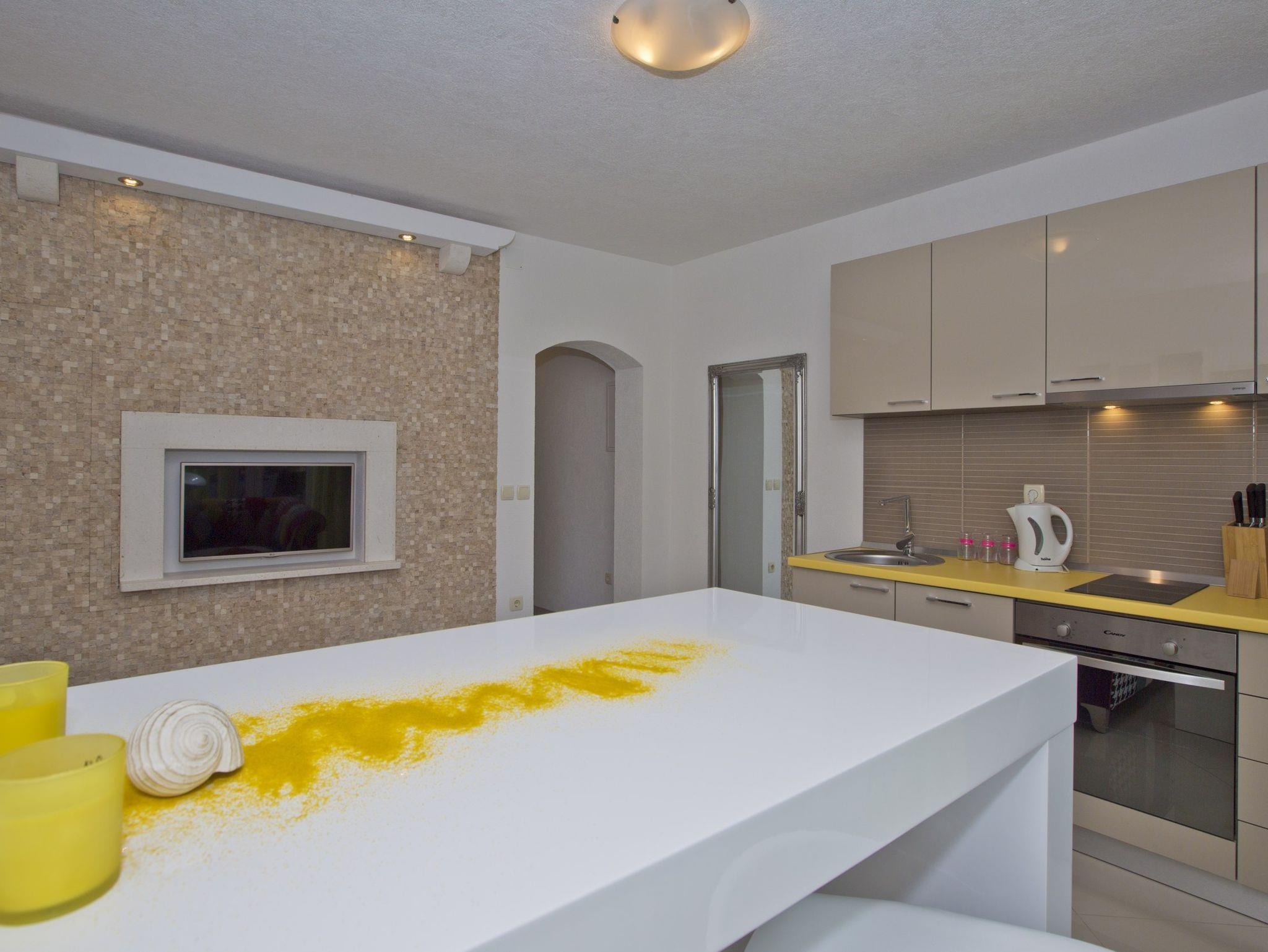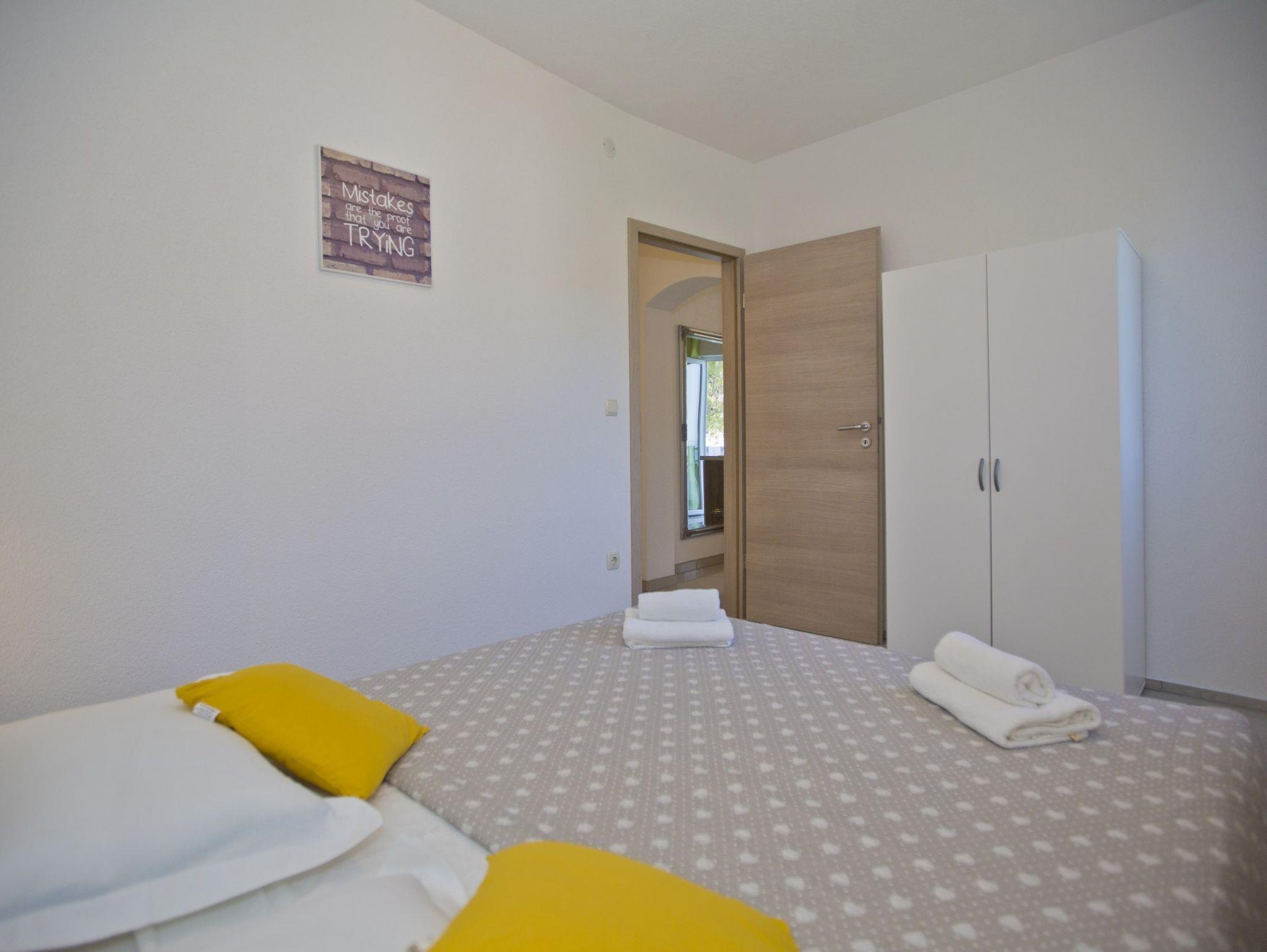 Ferienwohnung bietet Platz für 2 Gäste. Die Betten sind in Schlafzimmern, die es 1 gibt, innerhalb einer Gesamtfläche von 29m2, angeordnet. Die Gäste haben einen eigenen Balkon zur Verfügung, auf der sie in warmen Sommernächten genießen können. Das Apartment bietet Meerblick. Es ist erlaubt, Speisen auf dem Gemeinschafts-Grill vorzubereiten. IM PREIS INBEGRIFFEN: Kurtaxe, Endreinigung, Klimatisierung, Parkplatz, Internet, Bootsanlegeplatz, Bügeleisen, Föhn, Sonnenschirm, Liegestühle. VERBINDLICHE ZUSÄTZLICHE KOSTEN: Aufzahlung für Kurzaufenthalte (prozentualer Zuschlag pro Nächtigungsanzahl: 30% - 1, 20% - 2, 10% - 3). Die Verfügbarkeit zusätzlicher Dienstleistungen in Ihrem reservierten Termin und die Preise derselben (falls nicht aufgeführt) müssen im Voraus überprüft werden. Zusätzliche Dienstleistungen die in der Zahlungsaufforderung nicht aufgeführt sind werden direkt beim Vermieter bezahlt, angenommen der Gast nutzt auch diese.