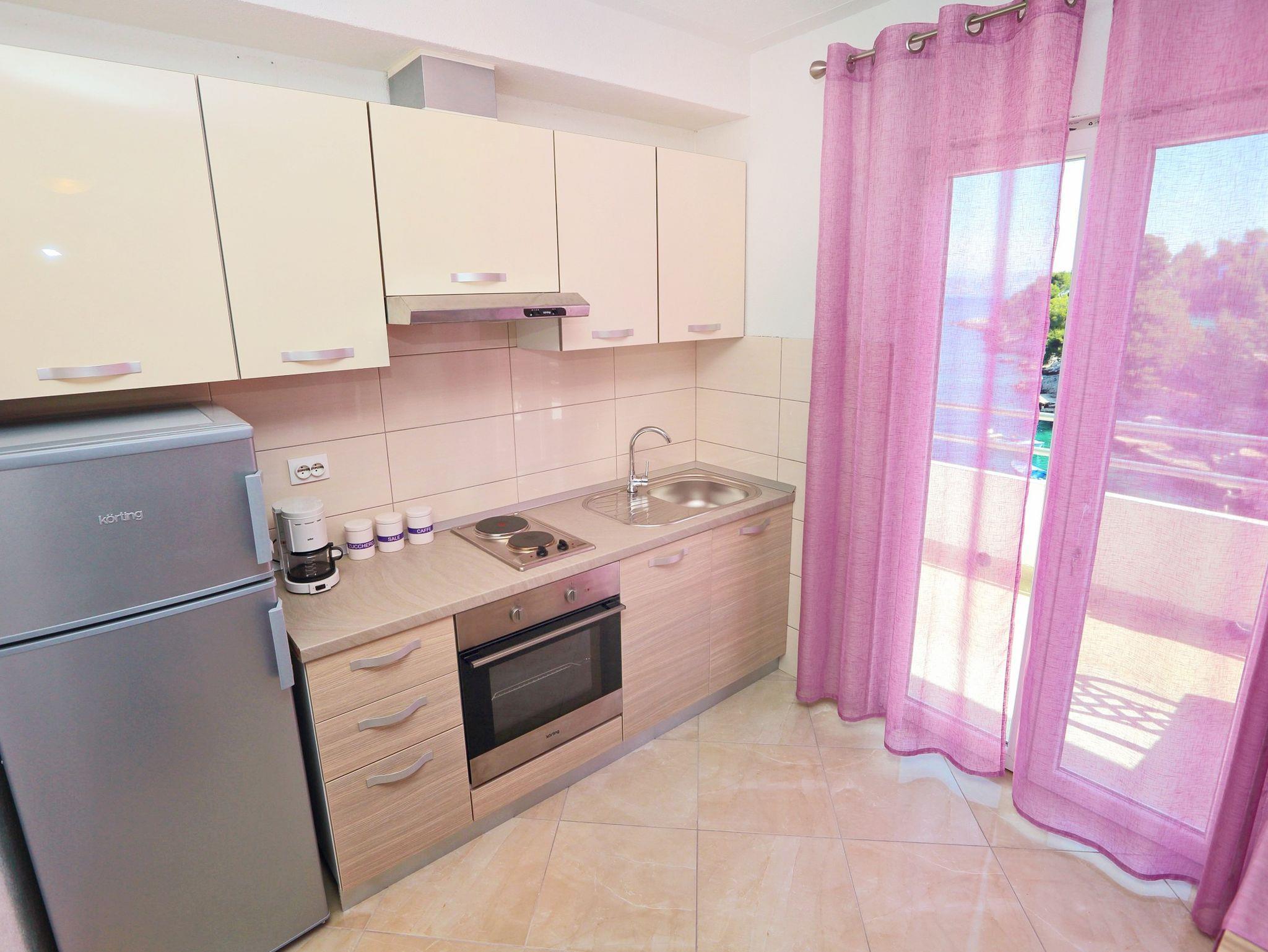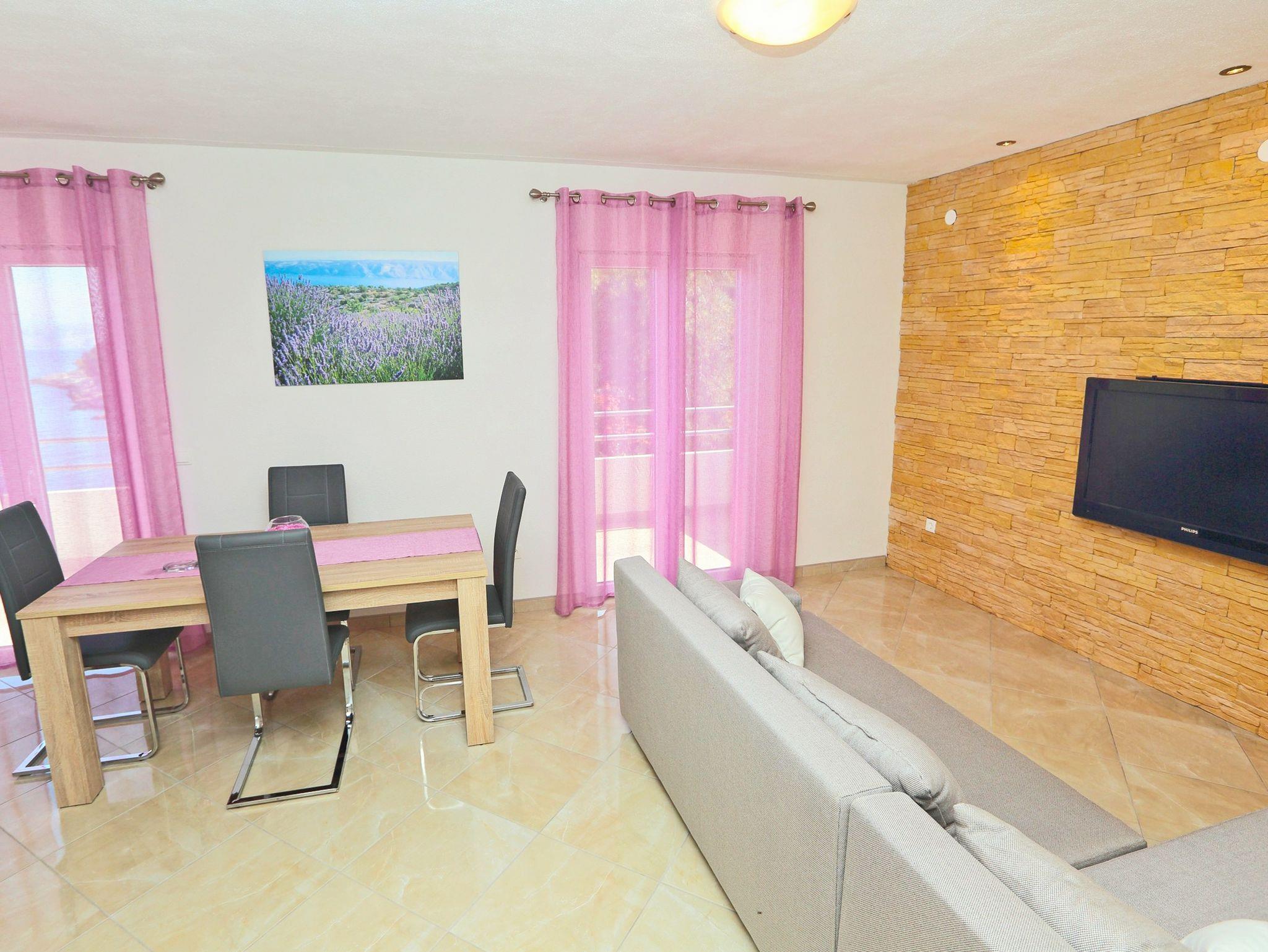 Ferienwohnung bietet Platz für 4 Gäste. Die Betten sind in Schlafzimmern, die es 2 gibt, innerhalb einer Gesamtfläche von 52m2, angeordnet. Die Gäste haben eine eigene Terrasse zur Verfügung, auf der sie in warmen Sommernächten genießen können. Das Apartment bietet Meerblick. Es ist erlaubt, Speisen auf dem Gemeinschafts-Grill vorzubereiten. IM PREIS INBEGRIFFEN: Kurtaxe, Endreinigung, Klimatisierung, Parkplatz, Internet, Bootsanlegeplatz, Bügeleisen, Föhn, Sonnenschirm, Liegestühle. VERBINDLICHE ZUSÄTZLICHE KOSTEN: Aufzahlung für Kurzaufenthalte (prozentualer Zuschlag pro Nächtigungsanzahl: 30% - 1, 20% - 2, 10% - 3). Die Verfügbarkeit zusätzlicher Dienstleistungen in Ihrem reservierten Termin und die Preise derselben (falls nicht aufgeführt) müssen im Voraus überprüft werden. Zusätzliche Dienstleistungen die in der Zahlungsaufforderung nicht aufgeführt sind werden direkt beim Vermieter bezahlt, angenommen der Gast nutzt auch diese.