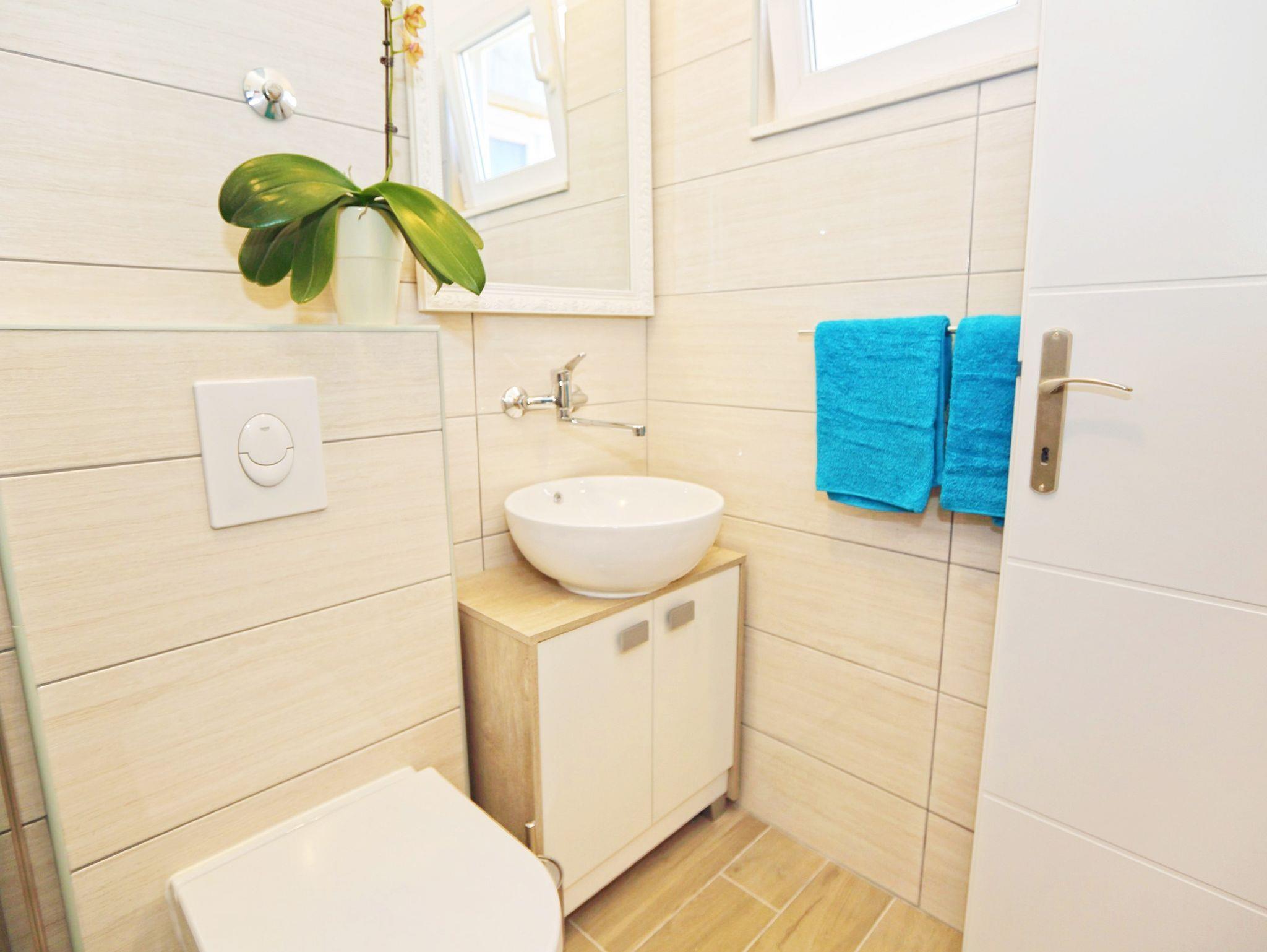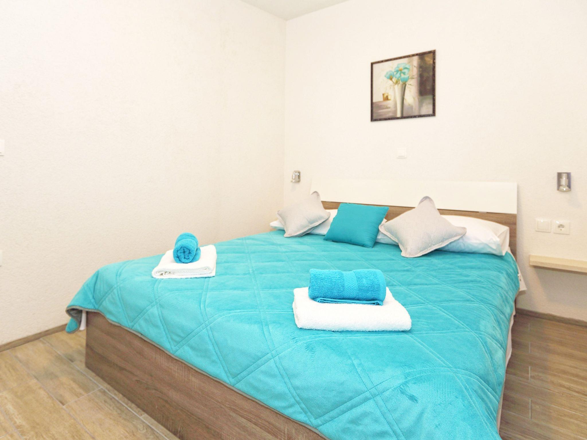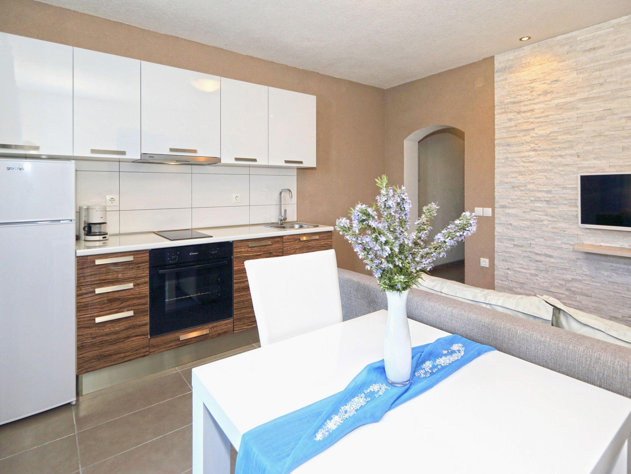 Ferienwohnung bietet Platz für 3 Gäste. Die Betten sind in Schlafzimmern, die es 1 gibt, und in Wohnzimmer, innerhalb einer Gesamtfläche von 29m2, angeordnet. Die Gäste haben einen eigenen Balkon zur Verfügung, auf der sie in warmen Sommernächten genießen können. Das Apartment bietet Meerblick. Es ist erlaubt, Speisen auf dem Gemeinschafts-Grill vorzubereiten. IM PREIS INBEGRIFFEN: Kurtaxe, Endreinigung, Klimatisierung, Parkplatz, Internet, Bootsanlegeplatz, Bügeleisen, Föhn, Sonnenschirm, Liegestühle. VERBINDLICHE ZUSÄTZLICHE KOSTEN: Aufzahlung für Kurzaufenthalte (prozentualer Zuschlag pro Nächtigungsanzahl: 30% - 1, 20% - 2, 10% - 3). Die Verfügbarkeit zusätzlicher Dienstleistungen in Ihrem reservierten Termin und die Preise derselben (falls nicht aufgeführt) müssen im Voraus überprüft werden. Zusätzliche Dienstleistungen die in der Zahlungsaufforderung nicht aufgeführt sind werden direkt beim Vermieter bezahlt, angenommen der Gast nutzt auch diese.