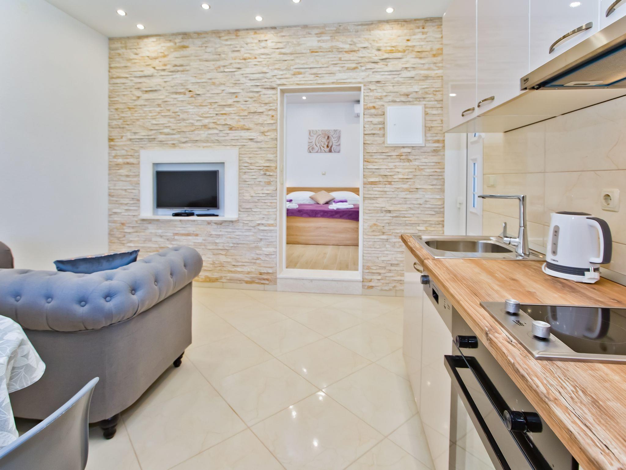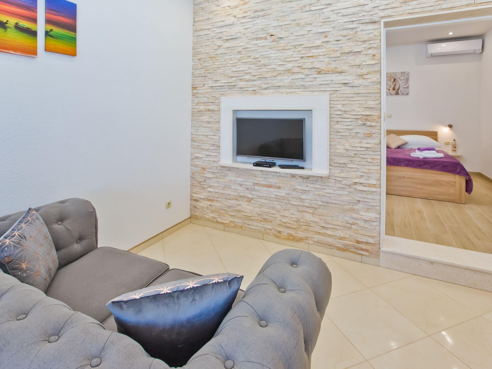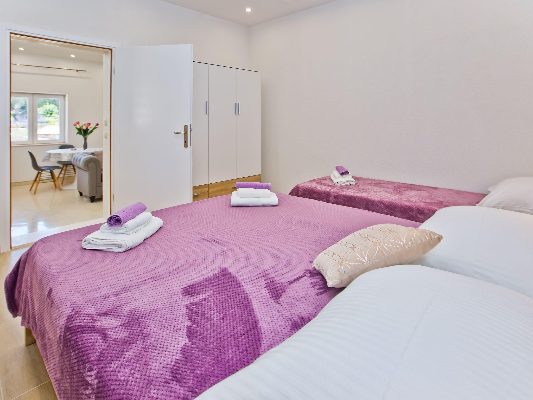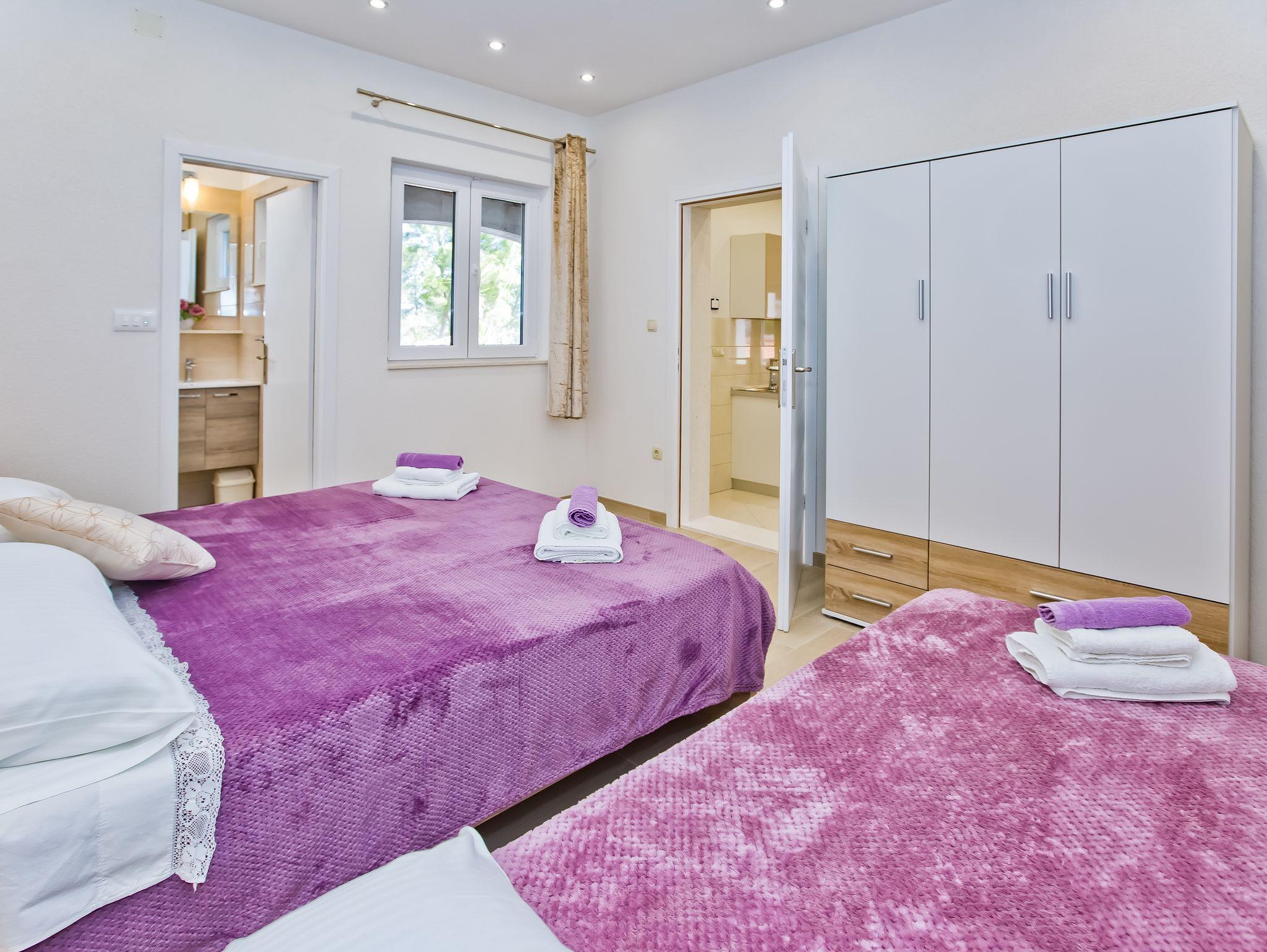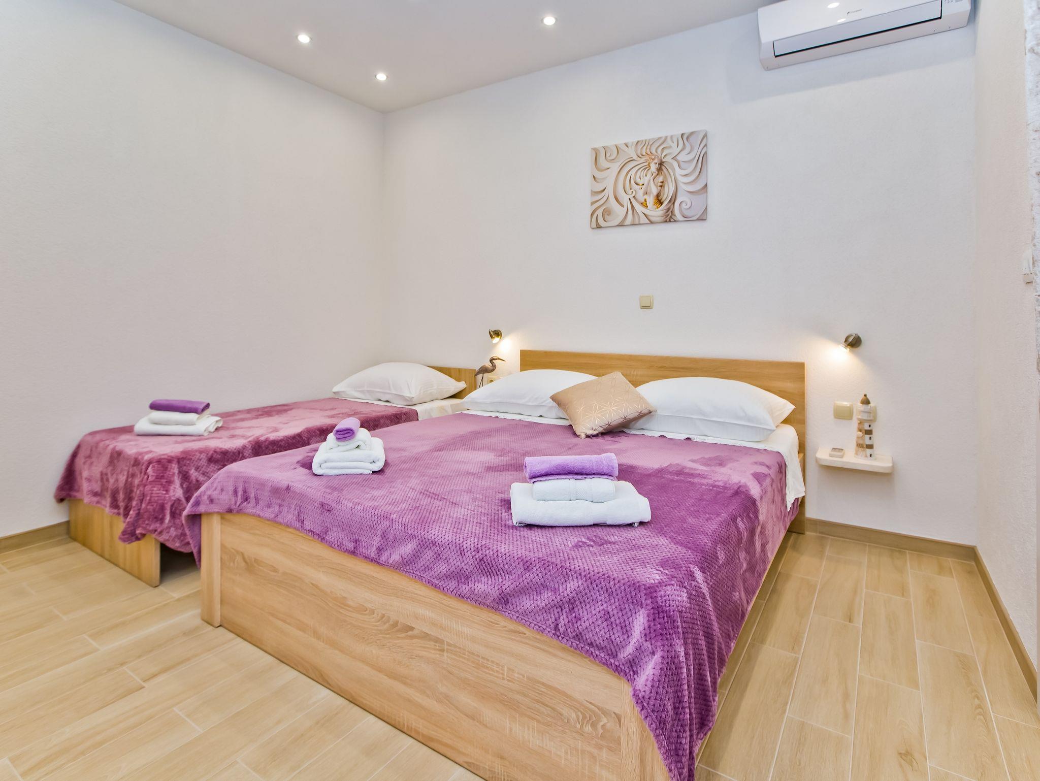 Ferienwohnung bietet Platz für 3 Gäste. Die Betten sind in Schlafzimmern, die es 1 gibt, innerhalb einer Gesamtfläche von 30m2, angeordnet. Die Gäste haben eine eigene Terrasse zur Verfügung, auf der sie in warmen Sommernächten genießen können. Das Apartment bietet Meerblick. Es ist erlaubt, Speisen auf dem Gemeinschafts-Grill vorzubereiten. IM PREIS INBEGRIFFEN: Kurtaxe, Endreinigung, Klimatisierung, Parkplatz, Internet, Bootsanlegeplatz, Bügeleisen, Föhn, Sonnenschirm, Liegestühle. VERBINDLICHE ZUSÄTZLICHE KOSTEN: Aufzahlung für Kurzaufenthalte (prozentualer Zuschlag pro Nächtigungsanzahl: 30% - 1, 20% - 2, 10% - 3). Die Verfügbarkeit zusätzlicher Dienstleistungen in Ihrem reservierten Termin und die Preise derselben (falls nicht aufgeführt) müssen im Voraus überprüft werden. Zusätzliche Dienstleistungen die in der Zahlungsaufforderung nicht aufgeführt sind werden direkt beim Vermieter bezahlt, angenommen der Gast nutzt auch diese.