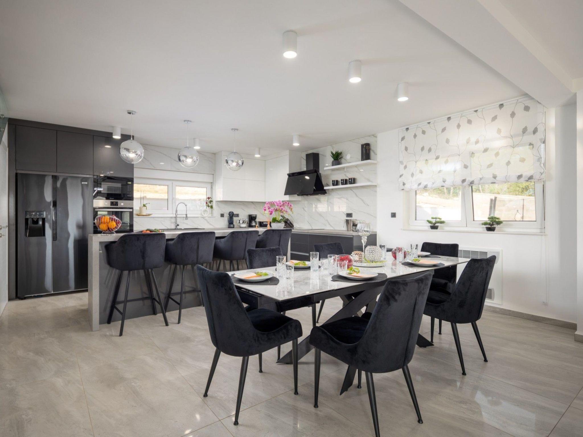 Das Innere der Villa Bura ist so gestaltet, dass es allen Ansprüchen gerecht wird. Ausgestattet mit Klimaanlage und Fußbodenheizung sorgt die Villa für Ihren Komfort, egal zu welcher Jahreszeit. Jedes der vier geräumigen Schlafzimmer verspricht erholsame Nächte, ergänzt durch drei gut ausgestattete Bäder, die Ihren Aufenthalt mit Privatsphäre und Komfort bereichern. Die hochmoderne Küche der Villa mit Geschirrspüler, Kaffeemaschine und Wasserkocher macht die Zubereitung von Mahlzeiten zum Kinderspiel. Außerdem stehen den Gästen eine Waschmaschine und ein Wäschetrockner zur Verfügung, so dass sie sich wie zu Hause fühlen können.