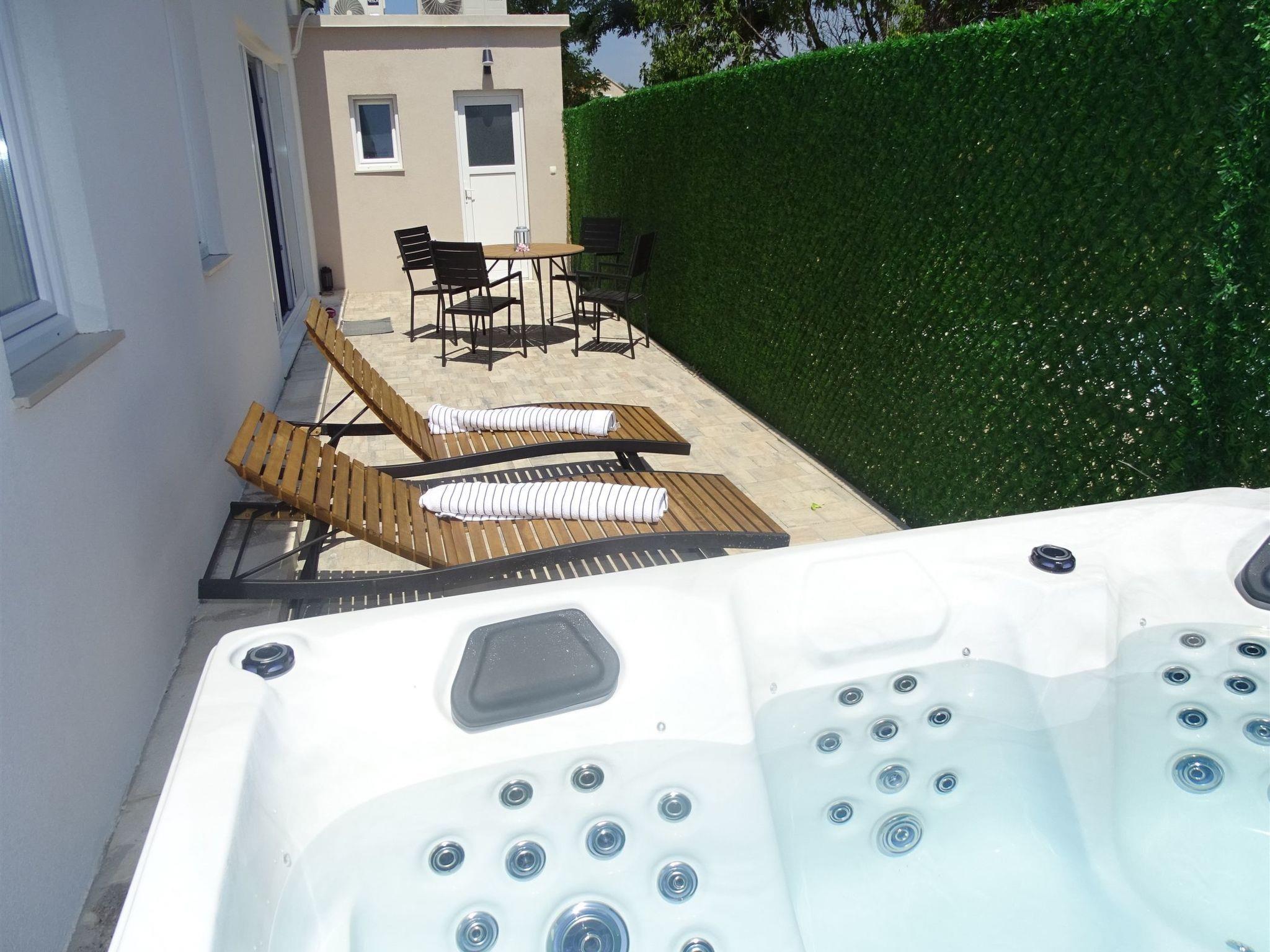 Der Außenbereich des Objekts steht den Erwartungen in nichts nach. Der Garten, der zur alleinigen Nutzung reserviert ist, bietet einen privaten Rückzugsort in der Natur, wo die Gäste sich entspannen und die friedliche Umgebung genießen können. Zu den Highlights gehört ein Whirlpool im Freien, in dem man sich unter freiem Himmel entspannen und verjüngen kann - der perfekte Rahmen, um sich nach einem Tag voller Entdeckungen zu erholen oder einfach nur die sanfte Brise der dalmatinischen Abende zu genießen.