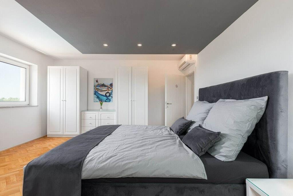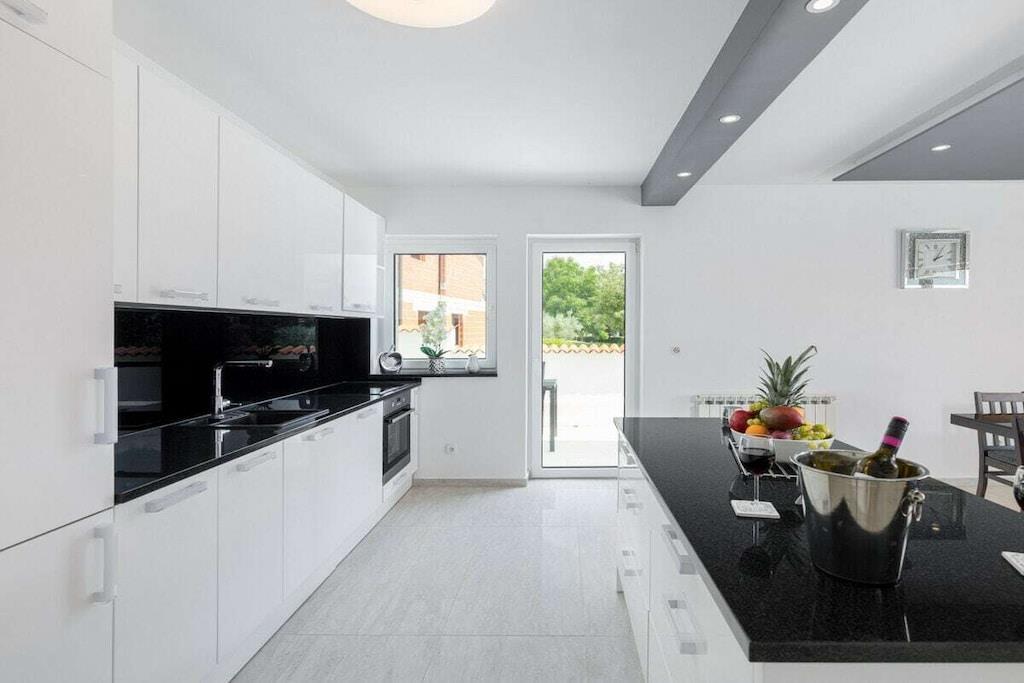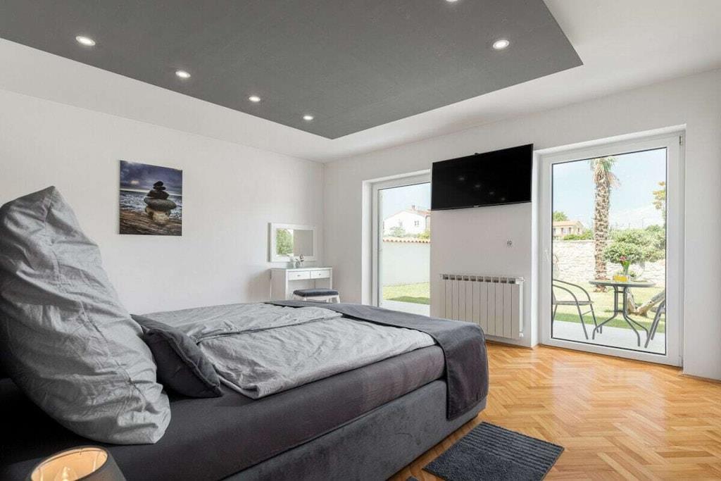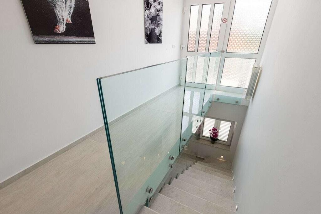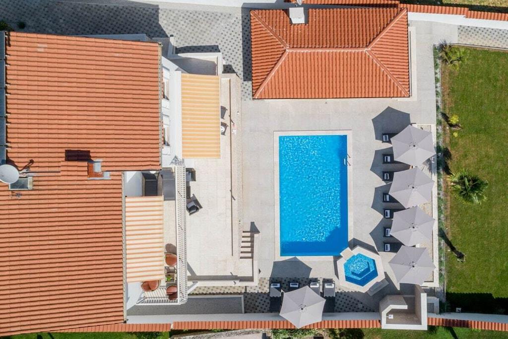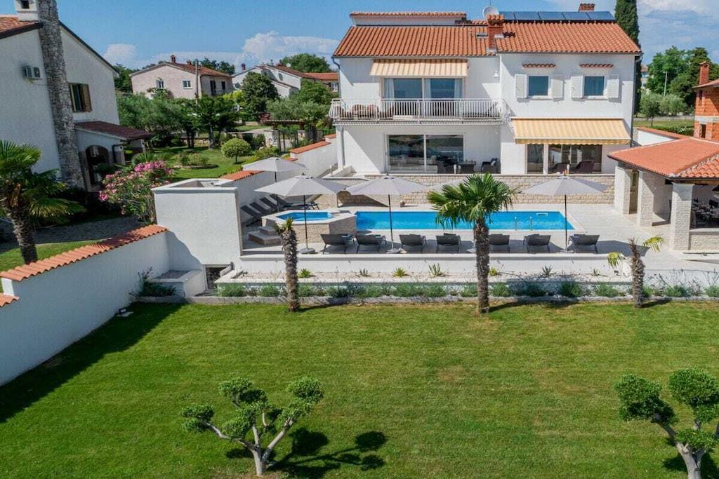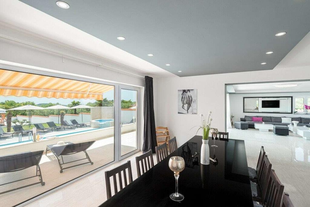 Die Villa ist modern, geschmackvoll und mit Liebe zum Detail eingerichtet. Sie besteht aus 6 Schlafzimmern und 5 Badezimmern. Im Erdgeschoss gibt es einen großen Wohnbereich mit Blick auf den Pool und die Terrasse, einen geräumigen Essbereich, eine Küche, zwei Doppelschlafzimmer, eines davon mit Bad en suite,. Auf der ersten Etage gibt es 4 Schlafzimmer, jedes mit Dusche en suite, von denen eines mit einem Whirlpool und einem kleinen Fitnessraum ausgestattet ist und das andere mit einer Sauna. Draußen gibt es einen großen Garten, einen Whirlpool, eine geräumige, voll ausgestattete Außenküche mit großem Tisch und Stühlen.