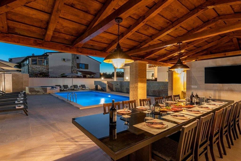 , , Wohnzimmer(, TV, Esstisch, Klimaanlage), Küche(Kochplatte, Wasserkocher, Toaster, Kaffeemaschine, Backofen, Spülmaschine, Kühlschrank), Schlafzimmer(, , Doppelbett, Doppelbett, Doppelbett, Doppelbett, Doppelbett, Doppelbett, Klimaanlage), Schlafzimmer(, , Doppelbett, Doppelbett, Doppelbett, Doppelbett, Doppelbett, Doppelbett, Klimaanlage), Schlafzimmer(, , Doppelbett, Doppelbett, Doppelbett, Doppelbett, Doppelbett, Doppelbett, Klimaanlage), Schlafzimmer(, , Doppelbett, Doppelbett, Doppelbett, Doppelbett, Doppelbett, Doppelbett, Klimaanlage), Schlafzimmer(, , Doppelbett, Doppelbett, Doppelbett, Doppelbett, Doppelbett, Doppelbett, Klimaanlage), Schlafzimmer(, , Doppelbett, Doppelbett, Doppelbett, Doppelbett, Doppelbett, Doppelbett, Klimaanlage), Badezimmer(, Toilette, Badewanne, Dusche, Waschbecken, Föhn), Badezimmer(, Toilette, Badewanne, Dusche, Waschbecken, Föhn), Badezimmer(, Toilette, Badewanne, Dusche, Waschbecken, Föhn), Badezimmer(, Toilette, Badewanne, Dusche, Waschbecken, Föhn), Badezimmer(, Toilette, Badewanne, Dusche, Waschbecken, Föhn), Badezimmer(, Toilette, Badewanne, Dusche, Waschbecken, Föhn), Badezimmer(, Toilette, Badewanne, Dusche, Waschbecken, Föhn), guest toilet(, Toilette, Waschbecken), guest toilet(, Toilette, Waschbecken), Ruheraum(, Sauna, Hottub, Pool), Internet, Internet, Erste-Hilfe-Station, Waschmaschine, Balkon(Gartenmöbel, Liegen), Heizung, Terrasse(, TV, Gartenmöbel, Liegen, Pool), Garten(, outdoor shower, Zentraler Grill, Liegewiese, Liegen, Pool, Gartenhaus), Parkplatz, Bügelbrett, Bügeleisen