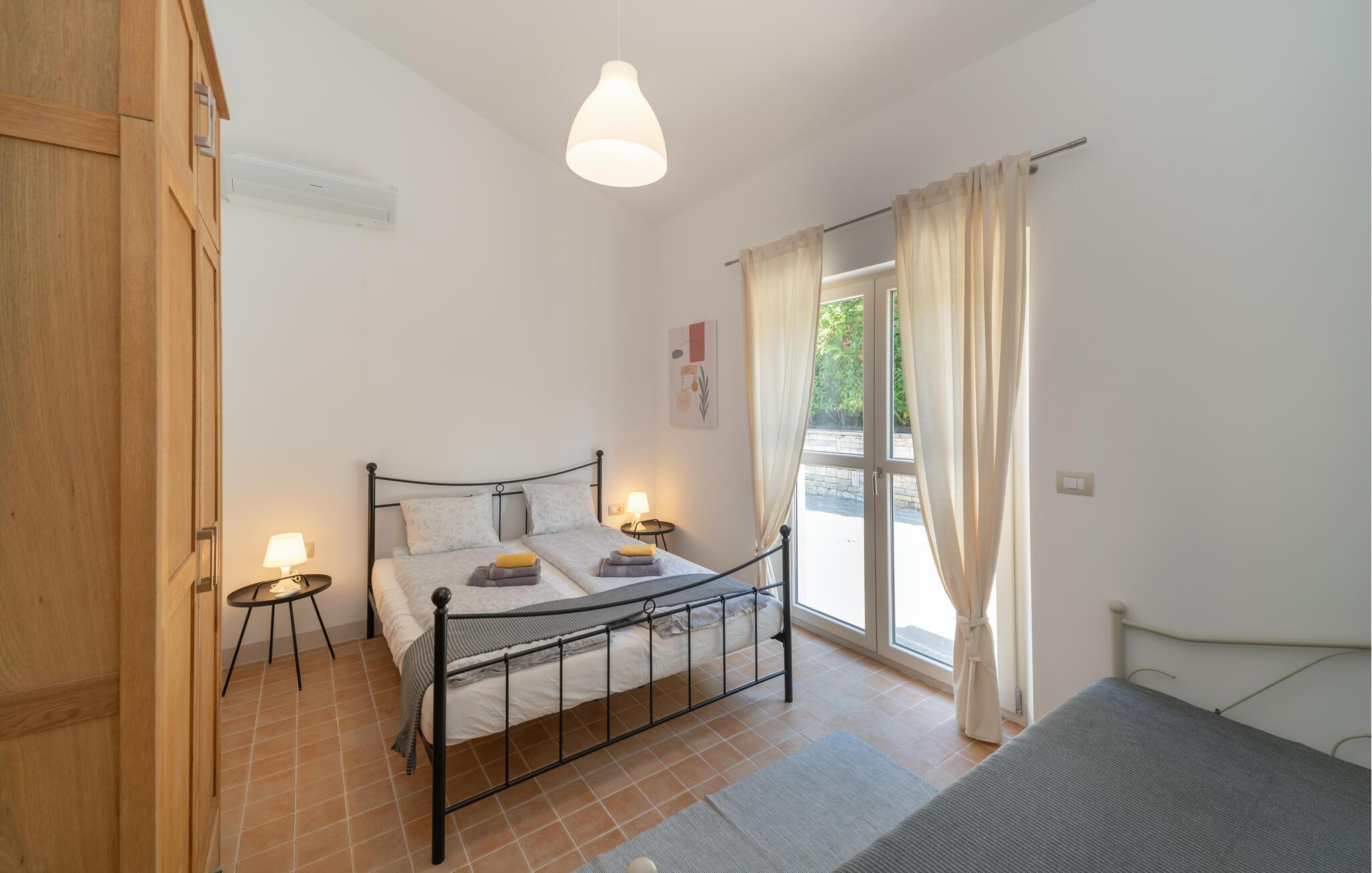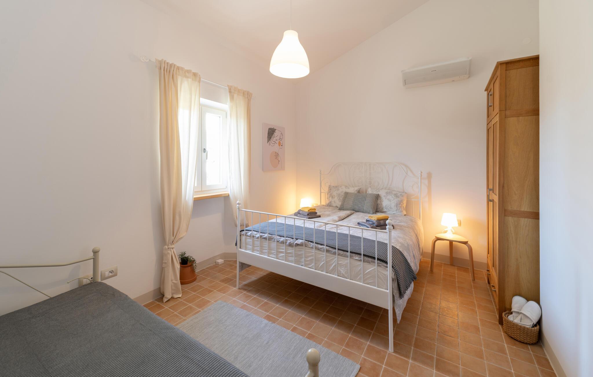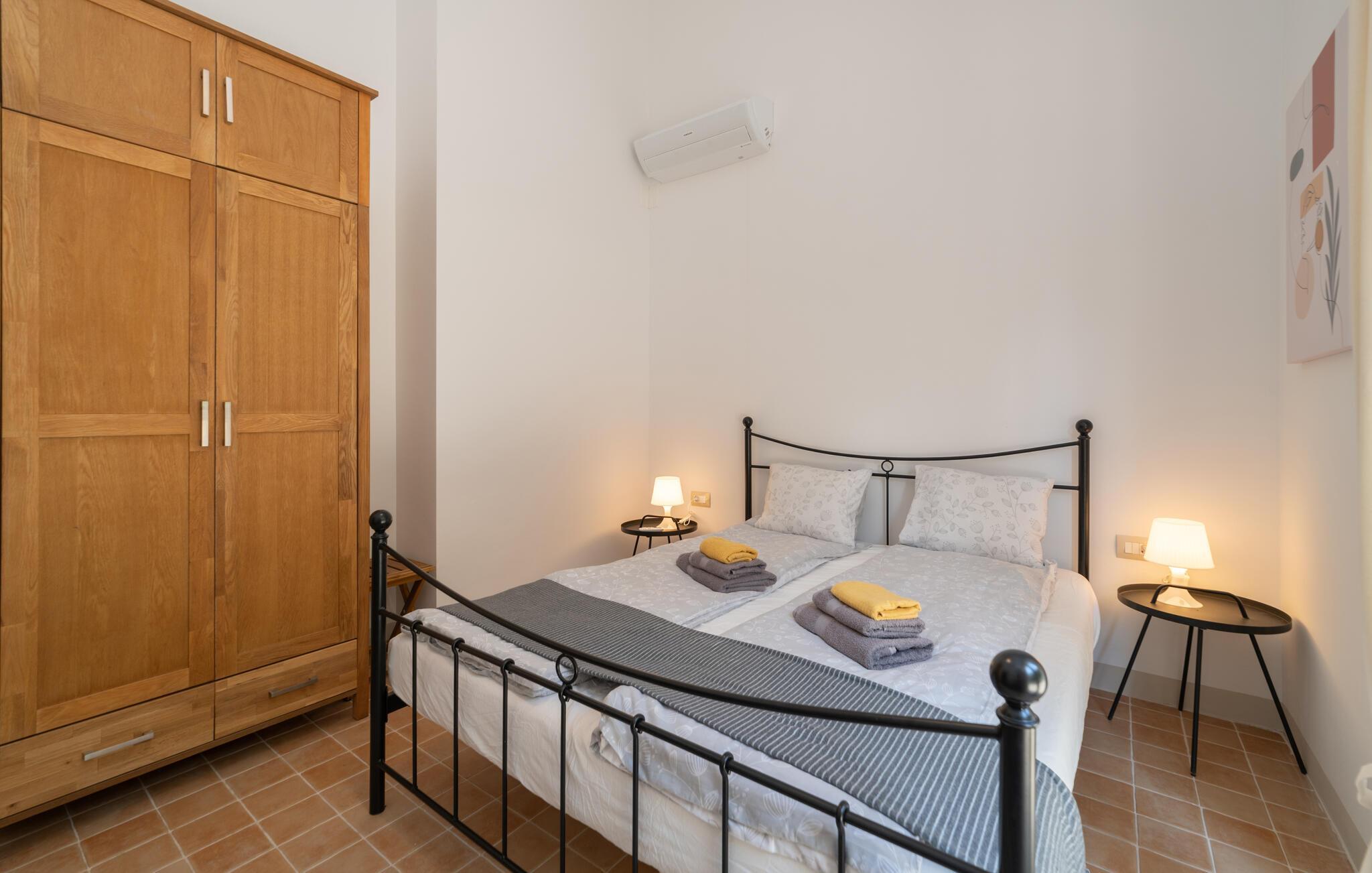 Schlafzimmer 1m2 (nr. 1) - 2 Schlafmöglichkeiten. (Doppelbett(en)). 1 Schlafmöglichkeit. (Schlafsofa,Matratze,Sonstiges).