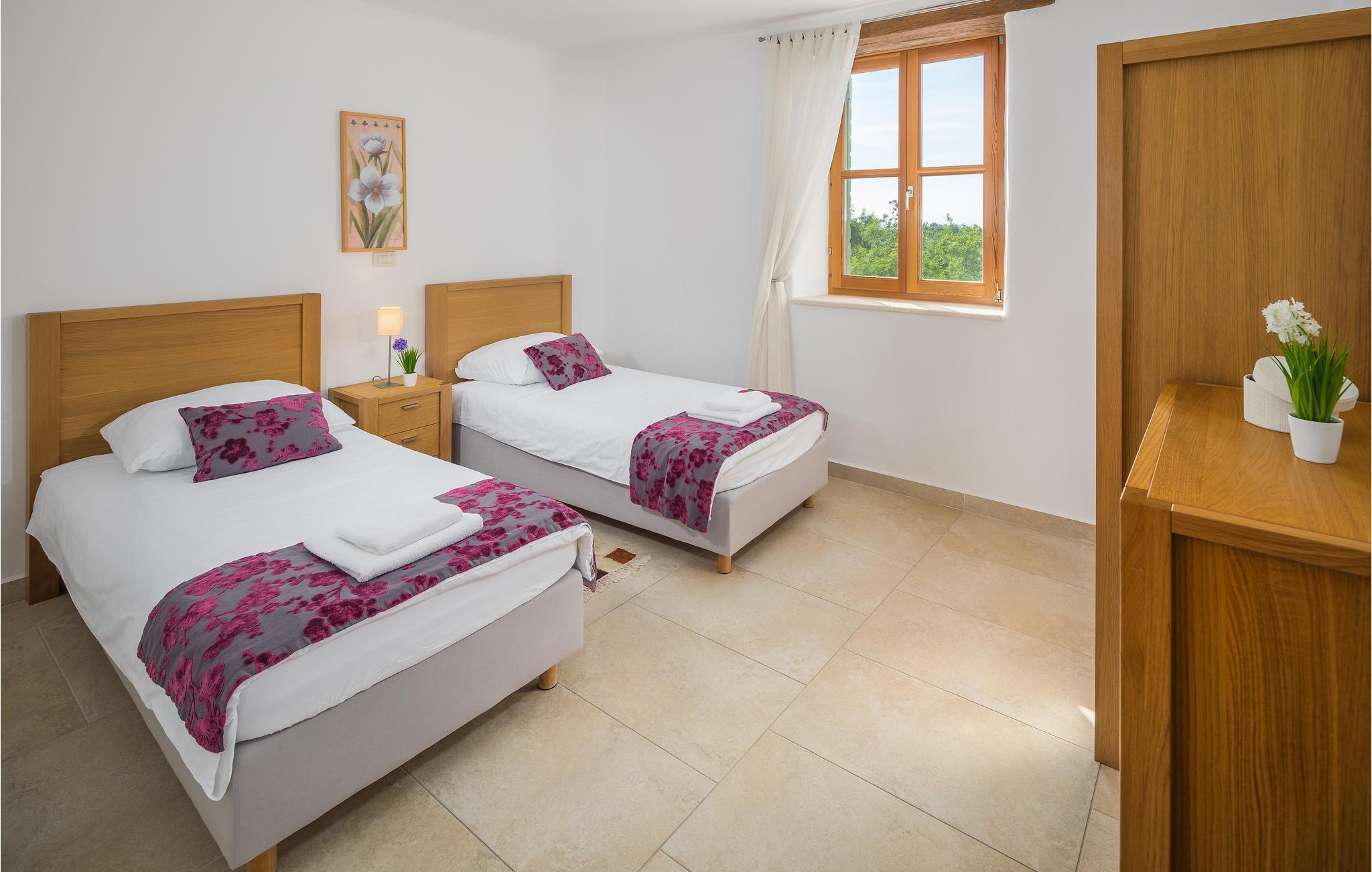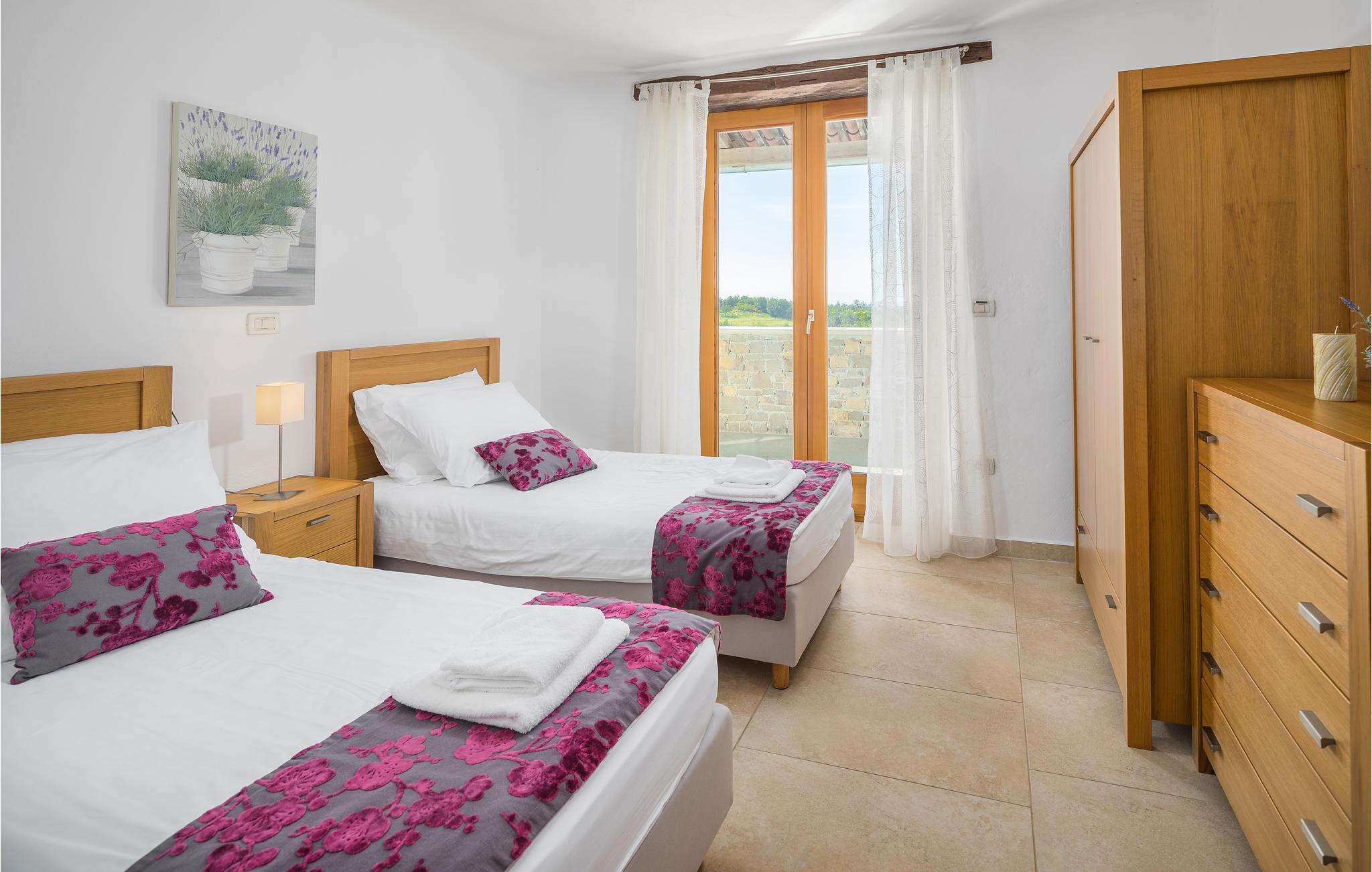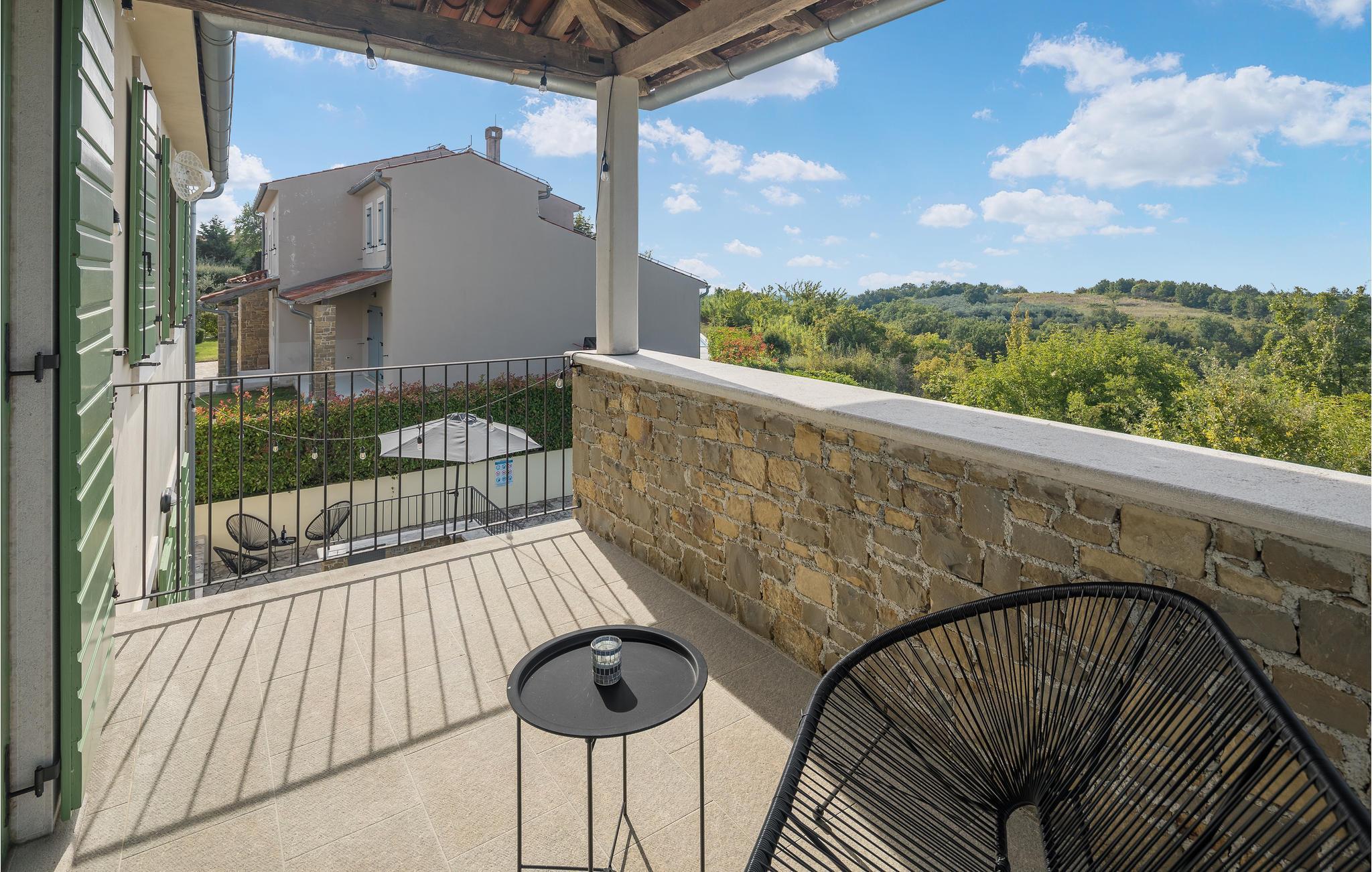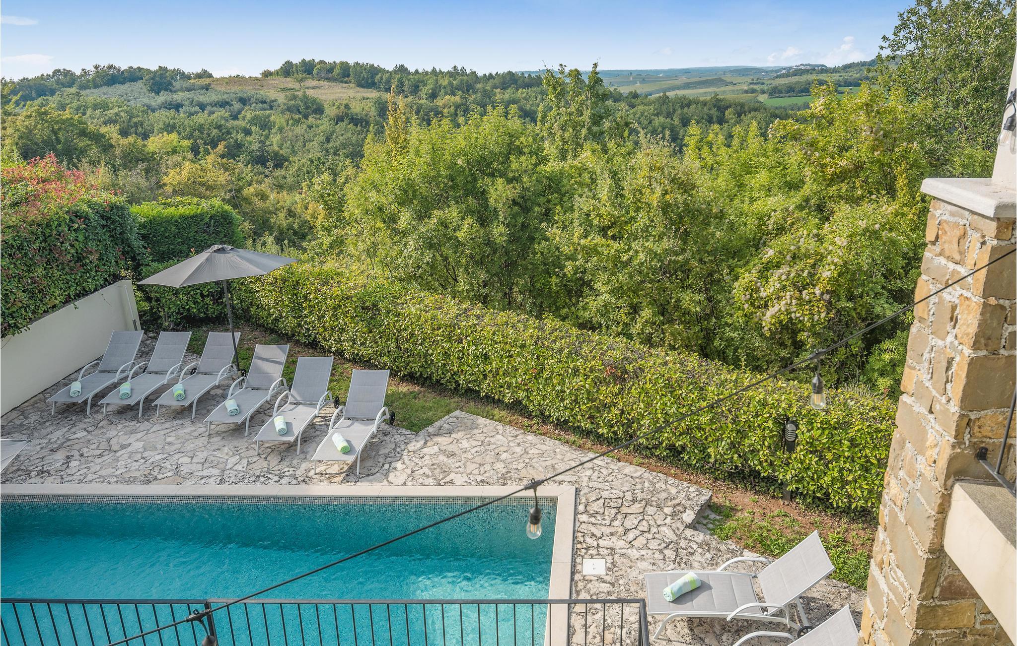 Dieses Ferienhaus wurde vor kurzem neu gebaut, es befindet sich in einer hügeligen, für ihren Weinanbau bekannten Landschaft. Die Villa ist geschmackvoll und modern, ideal um hier zu entspannen und sich wohl zu fühlen. Das große, komfortable Wohnzimmer lädt zum Verweilen ein. Auf der Terrasse können Sie das Frühstück genießen, während Ihr Blick über die Landschaft wandert und Sie den Tag, der vor Ihnen steht, planen. Vor dem Haus liegt ein Swimmingpool der zum Tummeln im köstlichen Nass einlädt. In der näheren Umgebung können Sie Rad fahren und Wandern. Wenn Sie ein bisschen mehr vom Land sehen möchten, machen Sie sich auf den Weg nach Groznjan, das u. a. für das Jazz Festival und Kunstausstellungen bekannt ist. Sie werden von den süßen, schmalen Gassen der Altstadt verzaubert sein! Nehmen Sie sich die Zeit in einem der urigen, gemütlichen Restaurants einzukehren und einige lokale Spezialitäten zu probieren.