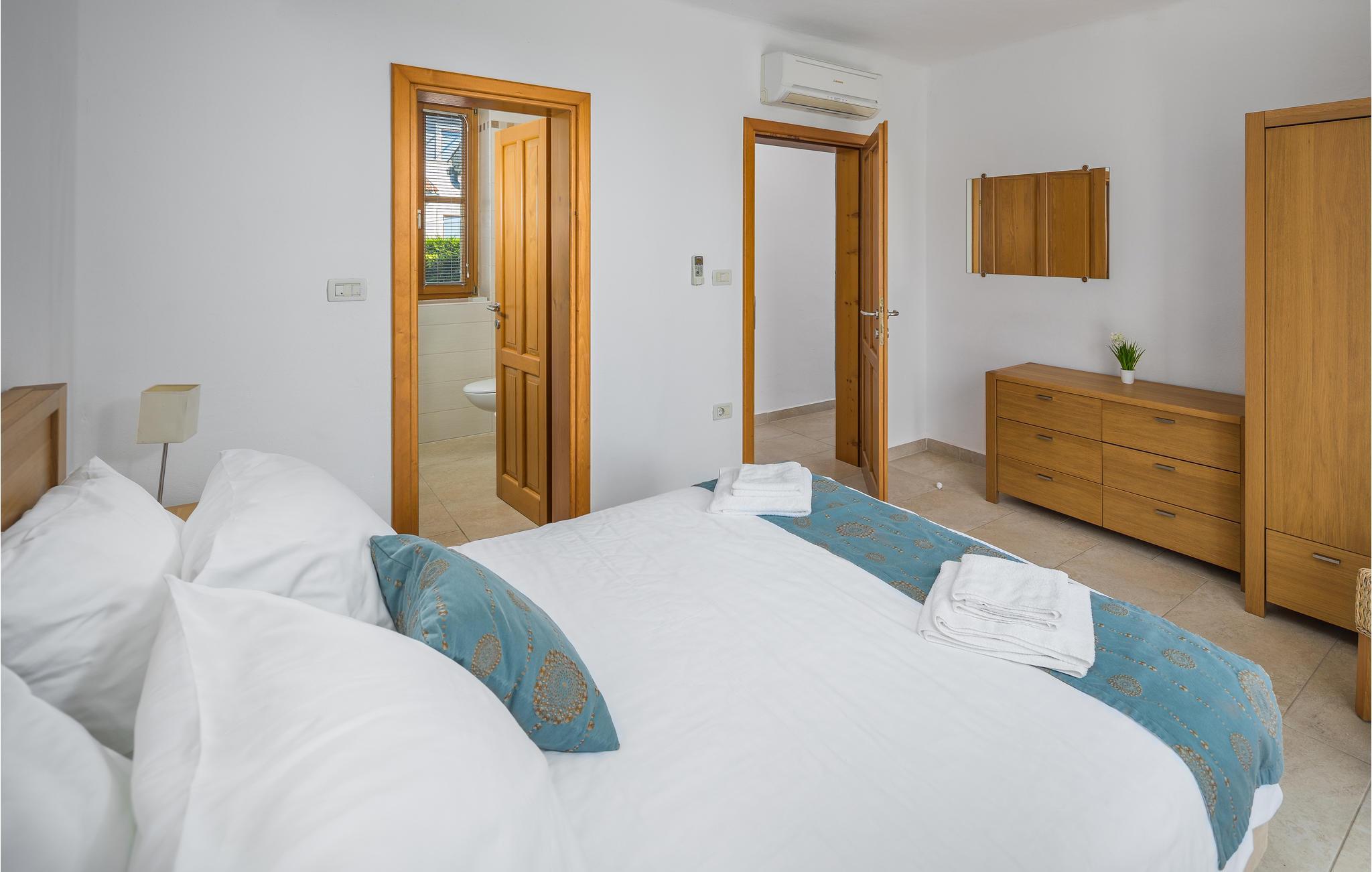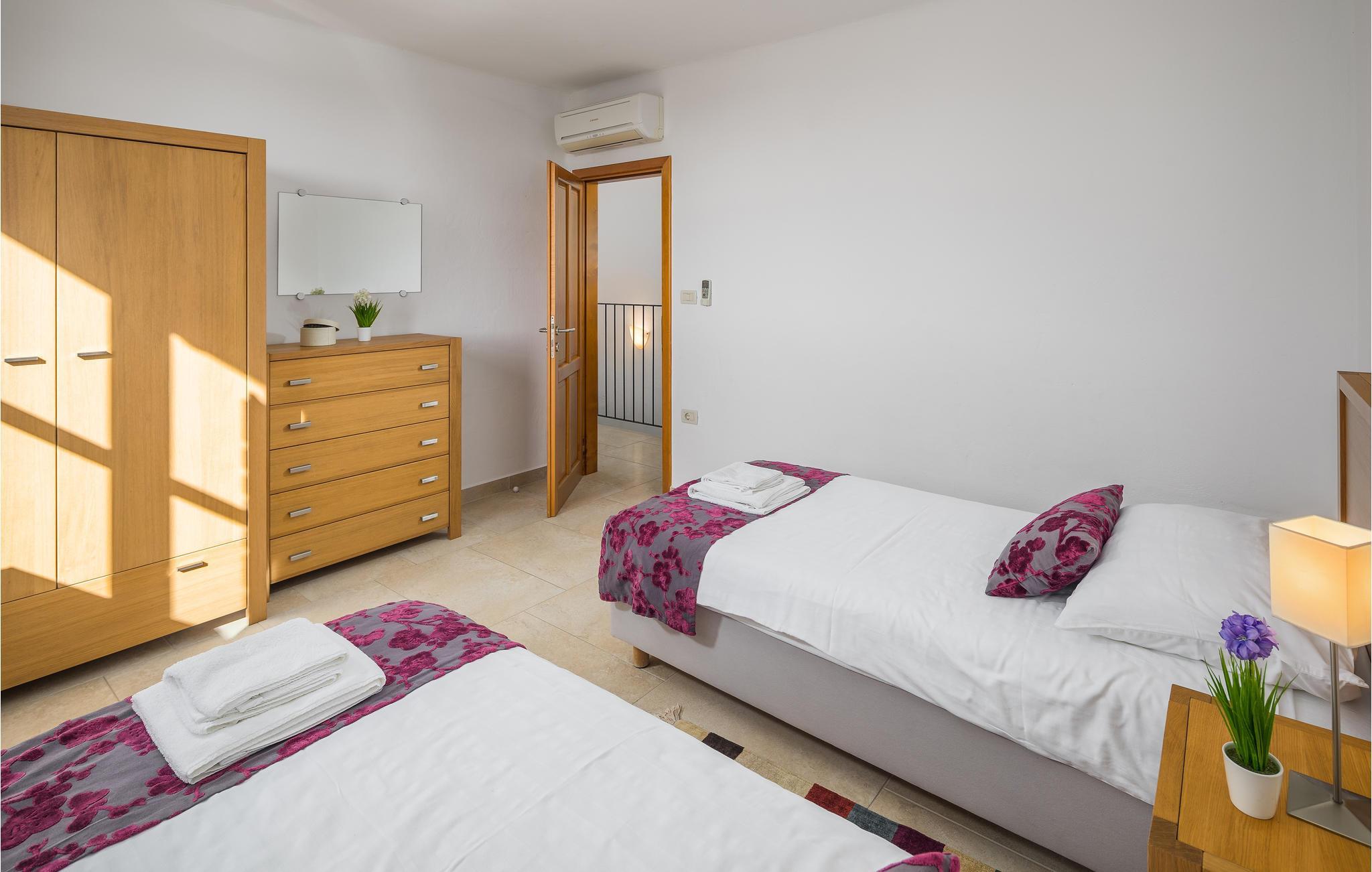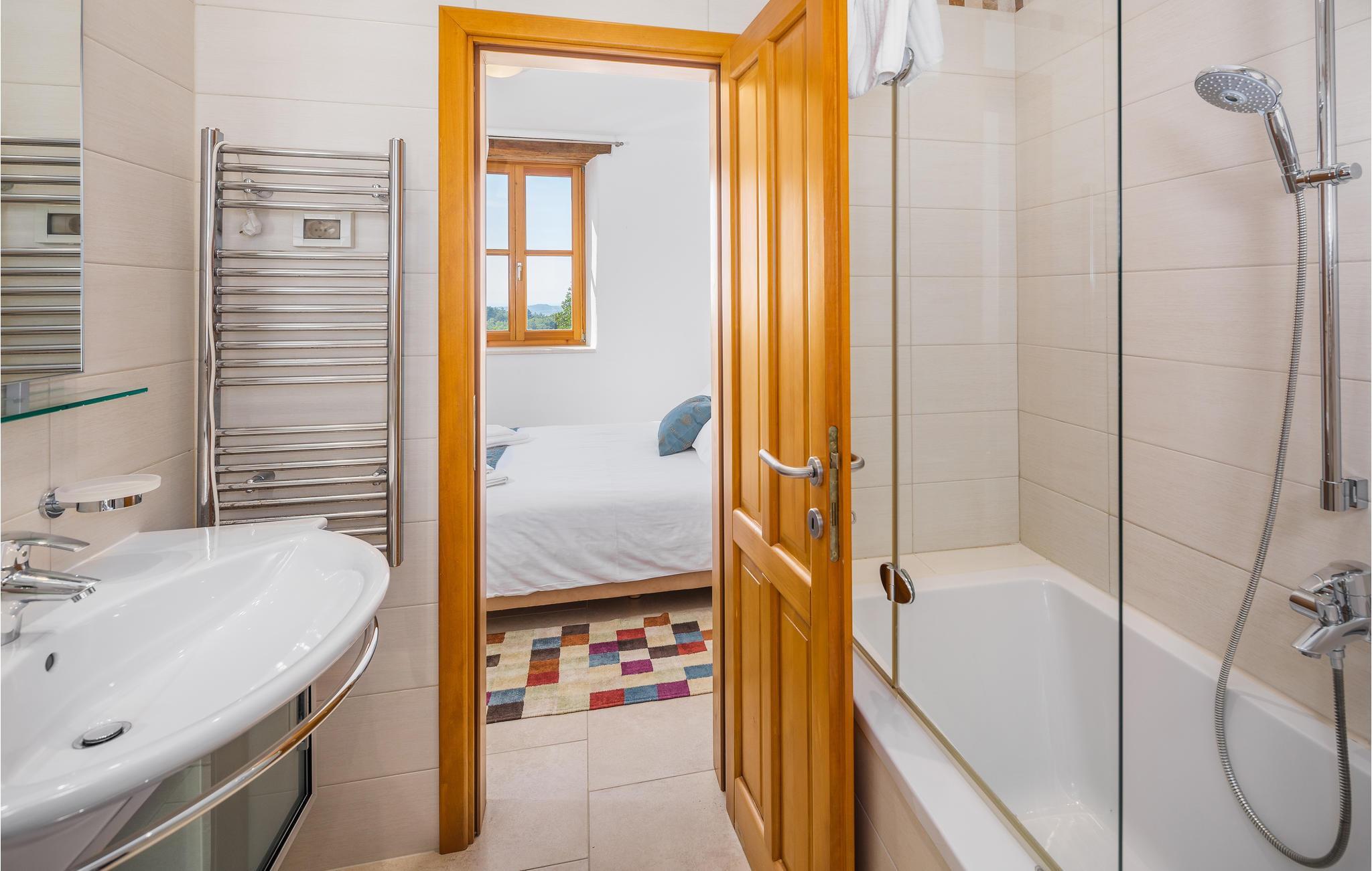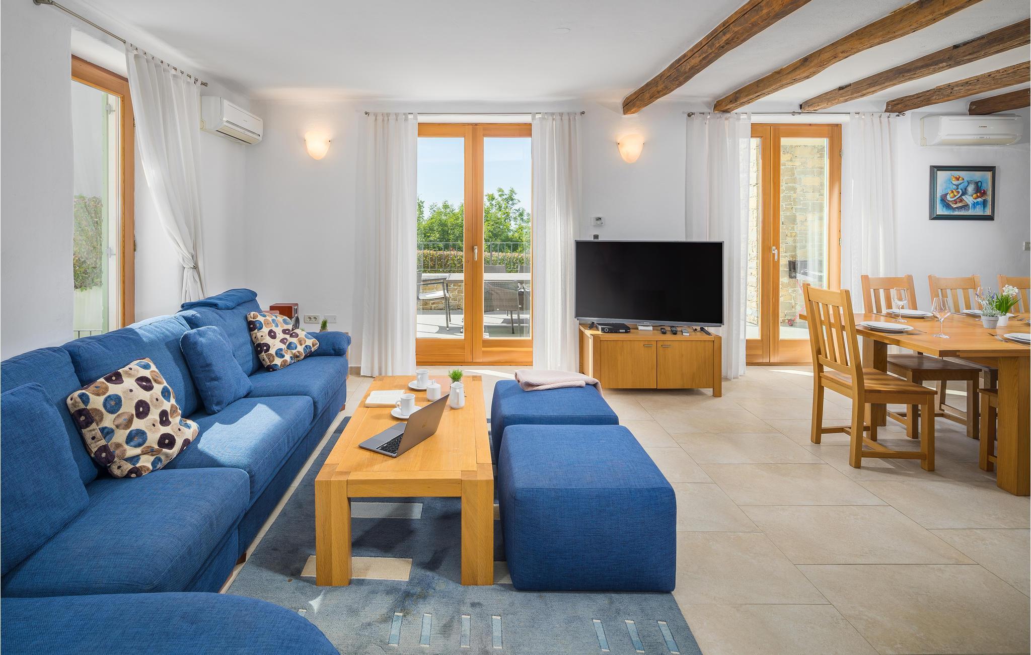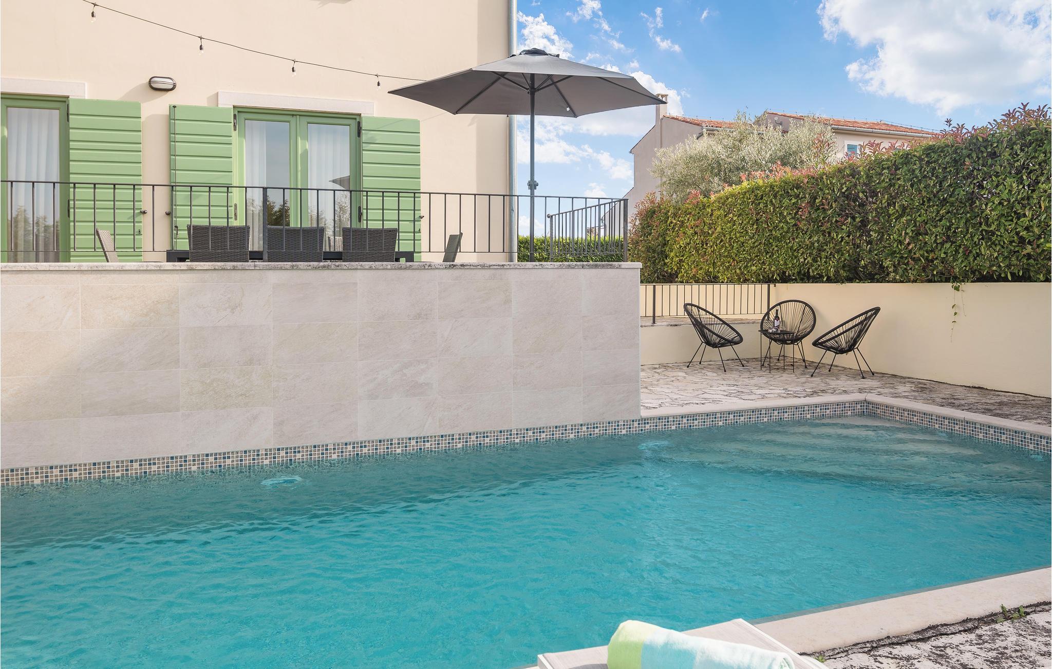 Dieses Ferienhaus wurde vor kurzem neu gebaut, es befindet sich in einer hügeligen, für ihren Weinanbau bekannten Landschaft. Die Villa ist geschmackvoll und modern, ideal um hier zu entspannen und sich wohl zu fühlen. Das große, komfortable Wohnzimmer lädt zum Verweilen ein. Auf der Terrasse können Sie das Frühstück genießen, während Ihr Blick über die Landschaft wandert und Sie den Tag, der vor Ihnen steht, planen. Vor dem Haus liegt ein Swimmingpool der zum Tummeln im köstlichen Nass einlädt. In der näheren Umgebung können Sie Rad fahren und Wandern. Wenn Sie ein bisschen mehr vom Land sehen möchten, machen Sie sich auf den Weg nach Groznjan, das u. a. für das Jazz Festival und Kunstausstellungen bekannt ist. Sie werden von den süßen, schmalen Gassen der Altstadt verzaubert sein! Nehmen Sie sich die Zeit in einem der urigen, gemütlichen Restaurants einzukehren und einige lokale Spezialitäten zu probieren.
