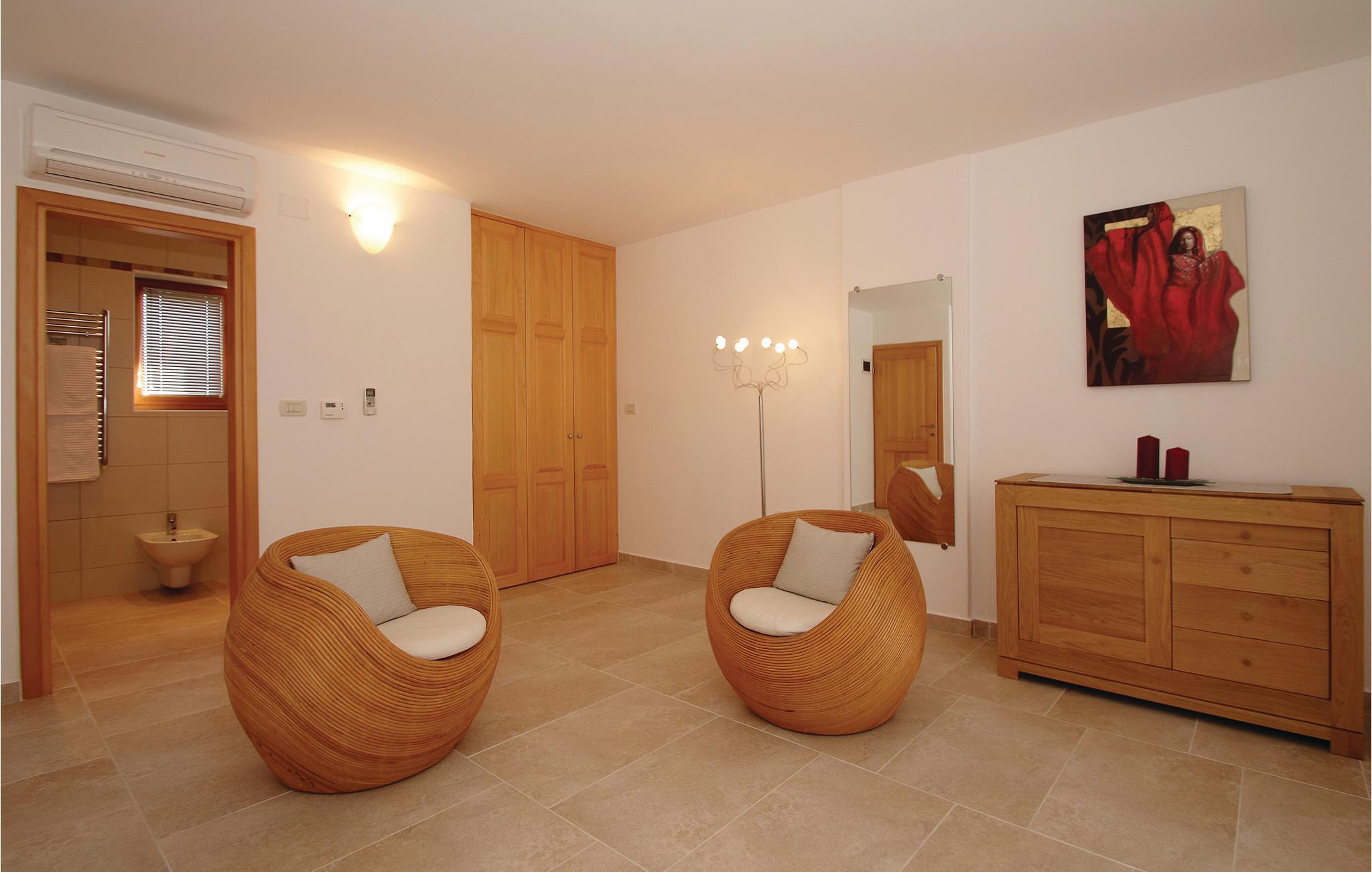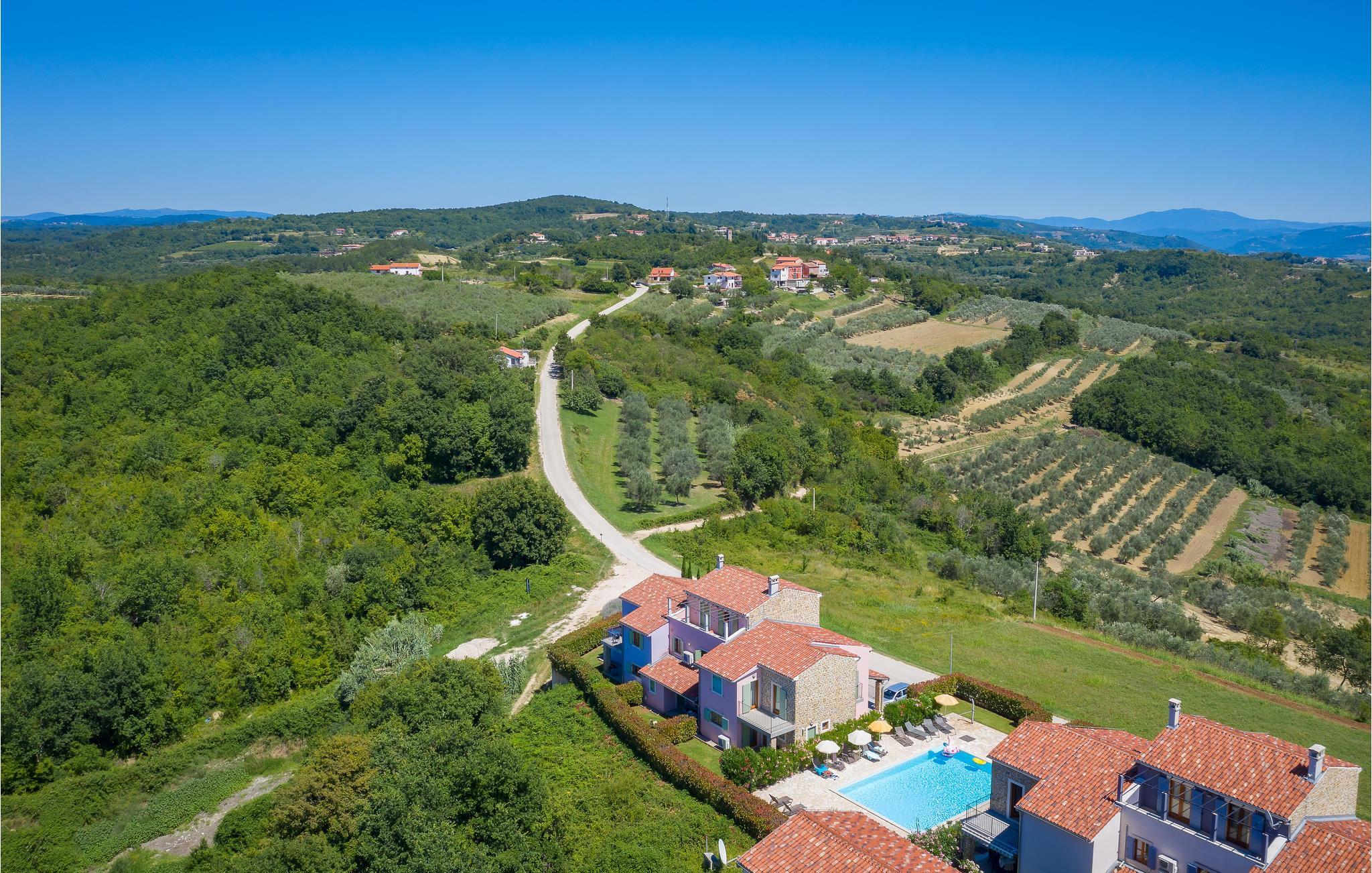 Dieses schöne Reihenhaus befindet sich in der Nähe der Stadt Buje, bekannt für sein ausgezeichnetes Olivenöl und dem Fahrradweg Parenzana. Die Zimmer erstrecken sich über das Erdgeschoss und den ersten Stock und eignen sich besonders für mehrere Familien oder Freunde, die zusammen den Urlaub verbringen, aber dennoch etwas Privatsphäre behalten möchten. Küche und Wohnzimmer liegen im Erdgeschoss; das Wohnzimmer verfügt über eine Glaswand, durch die Sie einen wunderschönen Blick über die Landschaft genießen können. Der Wohnbereich ist mit der überdachten Terrasse verbunden. Alle Räume sind mit einfachen und modernen Möbeln ausgestattet. Das Ferienhaus, sowie die anliegenden Ferienhäuser, verfügen über einen eigenen geschlossenen Garten. Der große Außenpool hingegen steht auf einem separaten Grundstück zur gemeinsamen Benutzung für die Gäste aus allen drei Häusern parat. Auf dem Grundstück befinden sich zwei Parkplätze.Die Stadt Porec lohnt es sich zu besuchen. Dort warten schöne Strande, gute Restaurants und viele interessante Veranstaltungen auf Sie. Die Region bietet ideale Voraussetzung für Fahrradtouren. Auch sehr interessant ist die Cave Baredine zu besuchen. Entdecken Sie die kleinen, mittelalterlichen Städte in der Gegend wie Motovun, wo Ende Juli das jährliche, internationale Filmfestival stattfindet oder Hum, die als die kleinste Stadt der Welt gilt. Fahren Sie entlang der Weinstraße und probieren Sie köstliche, lokal produzierte Weine und entdecken Sie, wie lecker Prsut, ein geräucherter Schinken, oder Trüffel schmecken, die in vielen Konobas angeboten werden.
