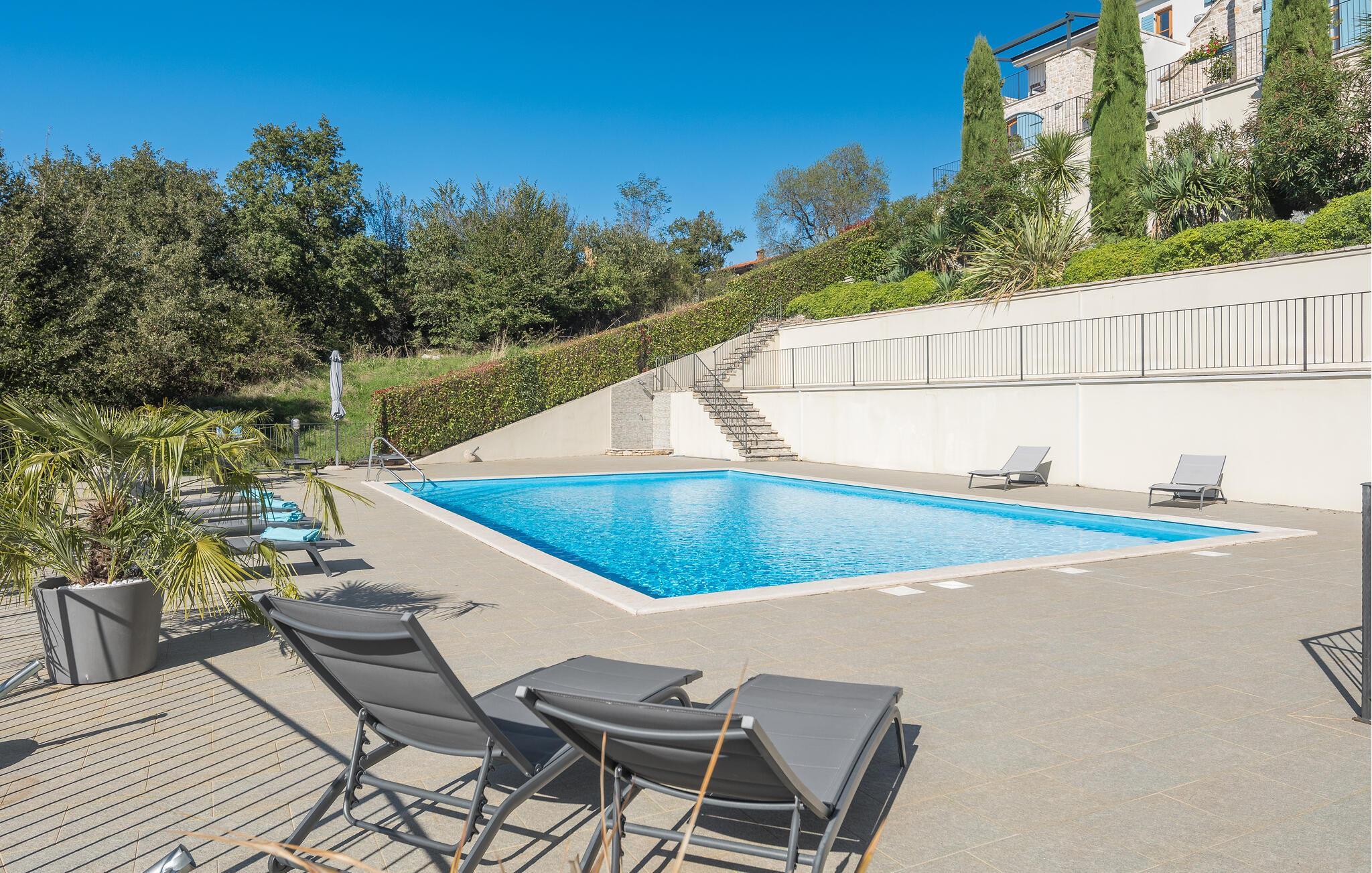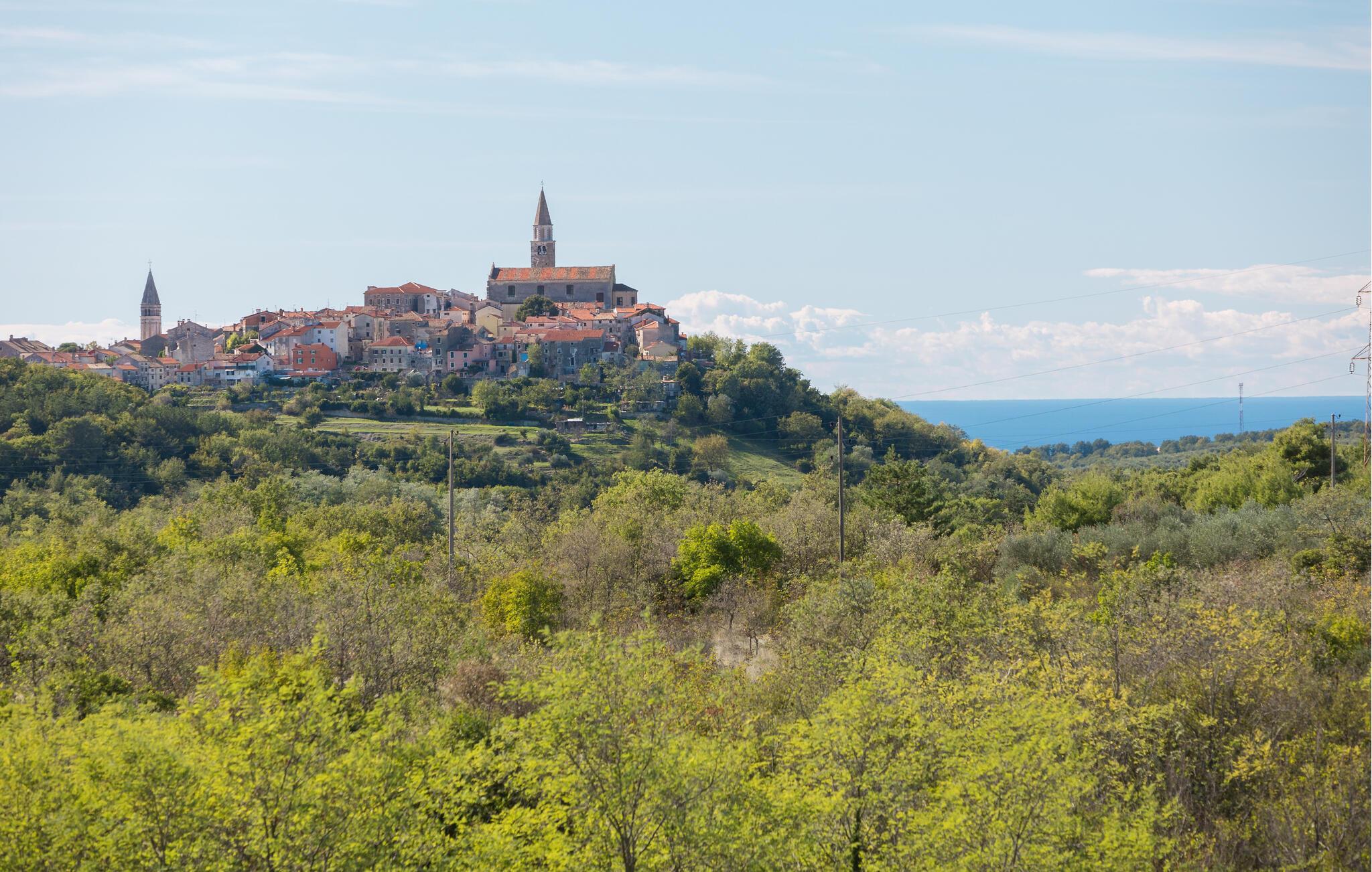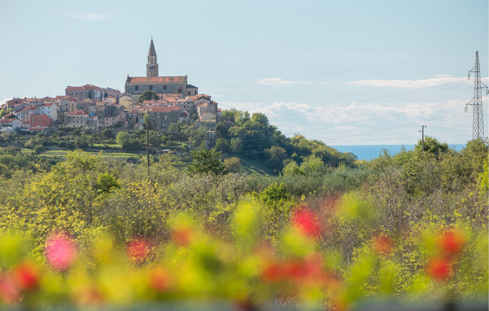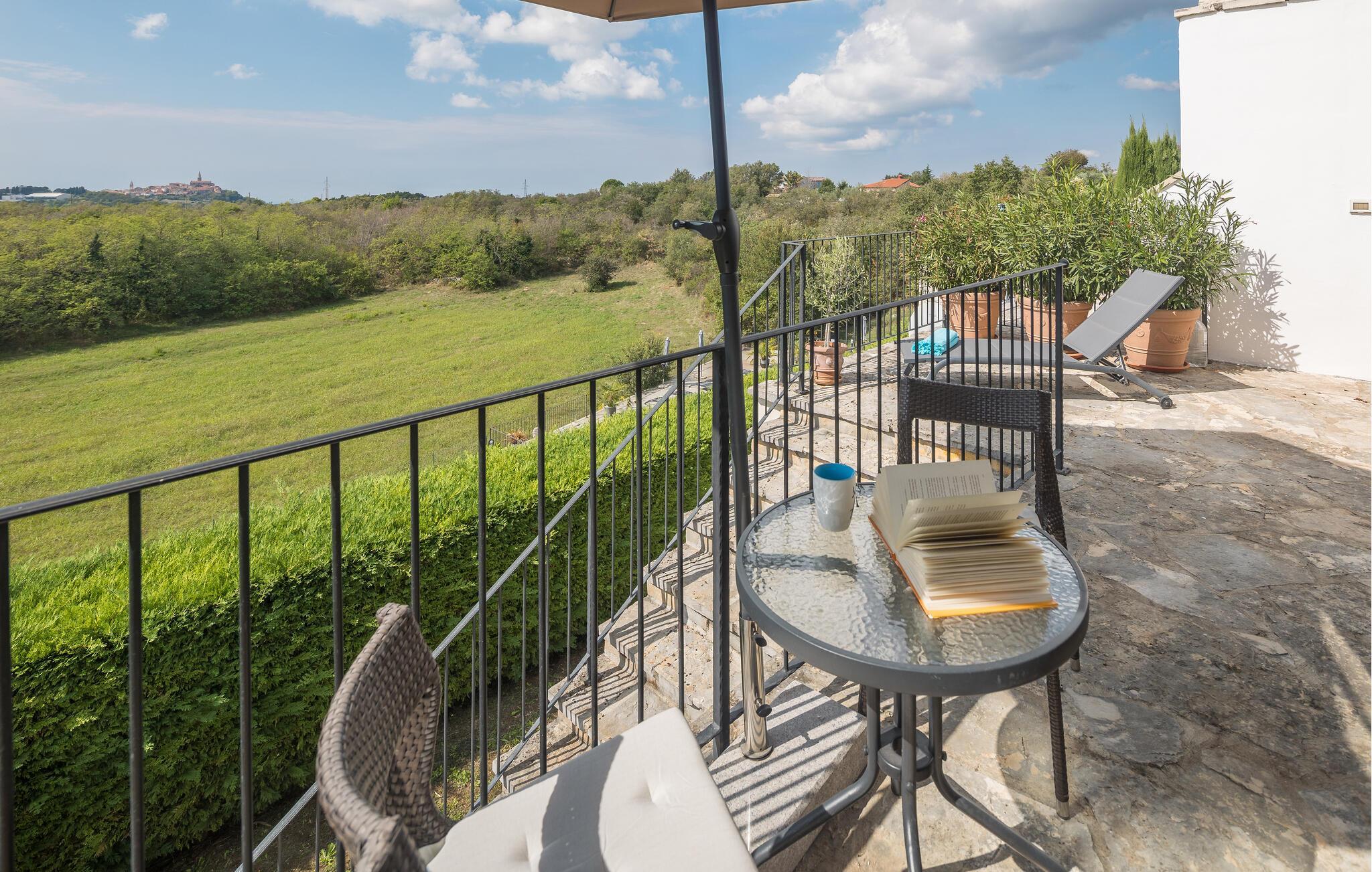 Im kleinen Dorf Bibali, nahe der Stadt Buje, befindet sich diese hübsche und moderne, zweistöckige Ferienwohnung. Mit modernen und bequemen Möbeln eingerichtet, ist sie ein Traum für jeden, der Ruhe und Entspannung, aber auch das gewisse Etwas im Urlaub sucht. Die Wohnung liegt in der Villa mit vier weiteren Ferienwohnungen, die auch vermietet werden. Die Schlafzimmer liegen im Erdgeschoss, während die Küche, das Wohn- und Esszimmer im Obergeschoss angebracht sind. Im gemeinsamen Garten erwartet Sie der Außenpool der für Abkühlung und Spaß sorgt. Die reiche, umliegende Natur wird ihnen das Gefühl geben, als seien Sie mitten in den grünen Bergen, während Sie sich hier nur zwanzig Minuten Autofahrt von den schönen Stränden Umags entfernt befinden. Der Ort Buje iegt im Norden Istriens, von der Adria aus 10 Kilometer in Richtung Landesinneres. Durch seine herausragende Lage oben auf dem Hügel ist er von weit her sichtbar. Von hier aus eröffnet sich der Blick über die gesamte Gegend. Um die Terassen herum breiten sich ringsum Olivenhaine und Weinberge aus. Im Frühling haben Sie hier die Gelegenheit, Ihren eigenen wilden Spargel zu pflücken. Wenn Sie ihn mit Eiern zubereiten, dann wird daraus das traditionelle, istrischen Gericht Fritaja. Sollten Sie der internationalen Küche überdrüssig sein, empfehlen wir Ihnen, einen 'Agrotourismus' zu besuchen. Hier wird Ihnen ausschließlich Bodenständiges geboten - es dürfen nämlich in solchen Betrieben nur Produkte aus der eigenen Erzeugung serviert werden. Noch vor wenigen Jahren tauschten nur einige hartgesottenen Abenteurer die blauen Wellen des Meeres gegen die grünen Hügel des Hinterlandes. Der Reiz, den das als kroatische Toskana bekannte Hinterland ausstrahlt, zieht immer mehr Menschen in seinen Bann: die hügelige Landschaft, elegante Zypressen, urige Steinhäuser und uralte Bergdörfer.