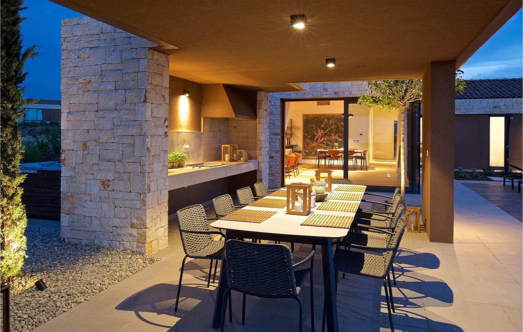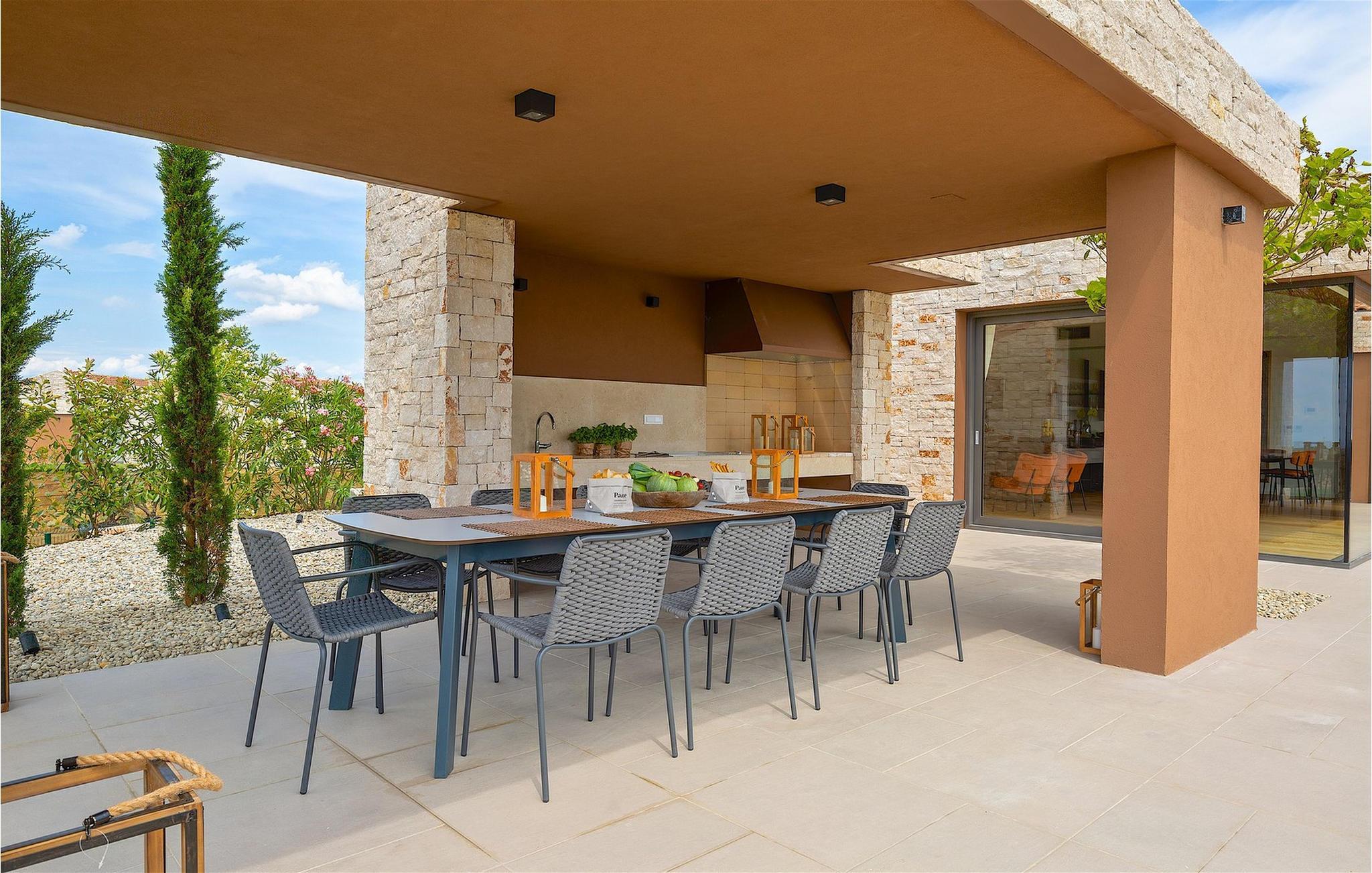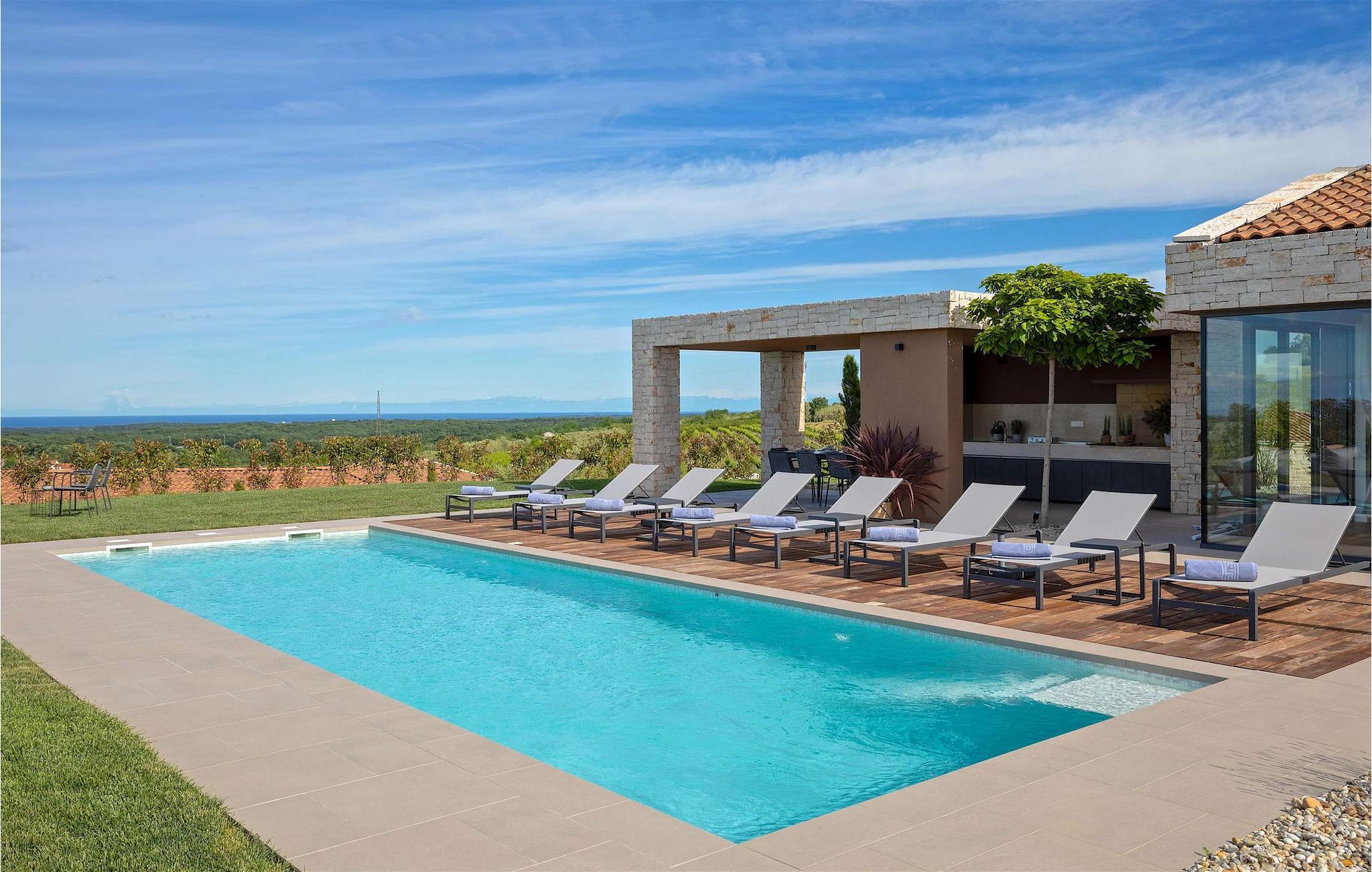 Die moderne Villa Terra Bianca liegt im malerischen Dorf Verteneglio im Nordwesten der zauberhaft schönen Halbinsel Istrien. Hier haben Sie die Möglichkeit, die Schönheiten des ländlichen Istriens, die endlosen Olivenhaine und Weinberge zu genießen, während die Nähe von Novigrad, Rovinj und Porec einen unvergesslichen Urlaub garantiert. Villa Terra Bianca verfügt über 4 geräumige Schlafzimmer, von denen zwei mit Doppelbetten und zwei mit zwei Einzelbetten ausgestattet sind, die zu einem Doppelbett zusammengestellt werden können. Jedes Schlafzimmer ist klimatisiert und verfügt über Sat-TV sowie ein eigenes Badezimmer mit ebenerdiger Dusche. Das Open-Space-Konzept macht die Villa äußerst komfortabel, um Zeit mit Freunden und Familie zu verbringen. Zu Ihrer Verfügung stehen Ihnen eine voll ausgestattete Küche mit Essbereich und ein schönes, luftiges Wohnzimmer. Das Innere der Villa ist voller interessanter Details, die zur entspannten Atmosphäre des gesamten Raums beitragen. Der 2000 m2 große Garten verfügt über einen schönen Swimmingpool (40 m2), in dem Sie sich erfrischen können, während Ihnen 10 bequeme Sonnenliegen zum Sonnenbaden zur Verfügung stehen. Genießen Sie an warmen Sommerabenden die Zubereitung von Speisen auf dem Gasgrill im Freien oder entspannen Sie sich in der Sauna oder im Whirlpool. Das Unterhaltungsangebot der Villa umfasst 4 Fahrräder, Tischtennisausrüstung und einen Kinderspielplatz für die jüngsten Gäste. Insgesamt stehen Ihnen 5 private Parkplätze zur Verfügung. Verbringen Sie Ihren Urlaub in der fantastischen Villa Terra Bianca und erkunden Sie die Schönheit Istriens. Atemberaubende Landschaften und Denkmäler, Strände, die ideal für Familien mit Kindern sind, sowie ein reichhaltiges Angebot an Restaurants und Bars warten darauf, erkundet zu werden. Gegen Aufpreis bieten wir Ihnen einen persönlichen Kochservice, Zimmermädchen, Gärtner, Personal Trainer, Masseur und Yoga-Trainer, organisierten Transport vom und zum Flughafen, Bootsfahrten und Tagesausflüge, Tagesausflüge zu Olivenhainen und Weingütern und vieles mehr Natürlich, Trüffelsuche. Eine Poolheizung ist auf Anfrage gegen einen Aufpreis verfügbar, der vor Ort zu zahlen ist.