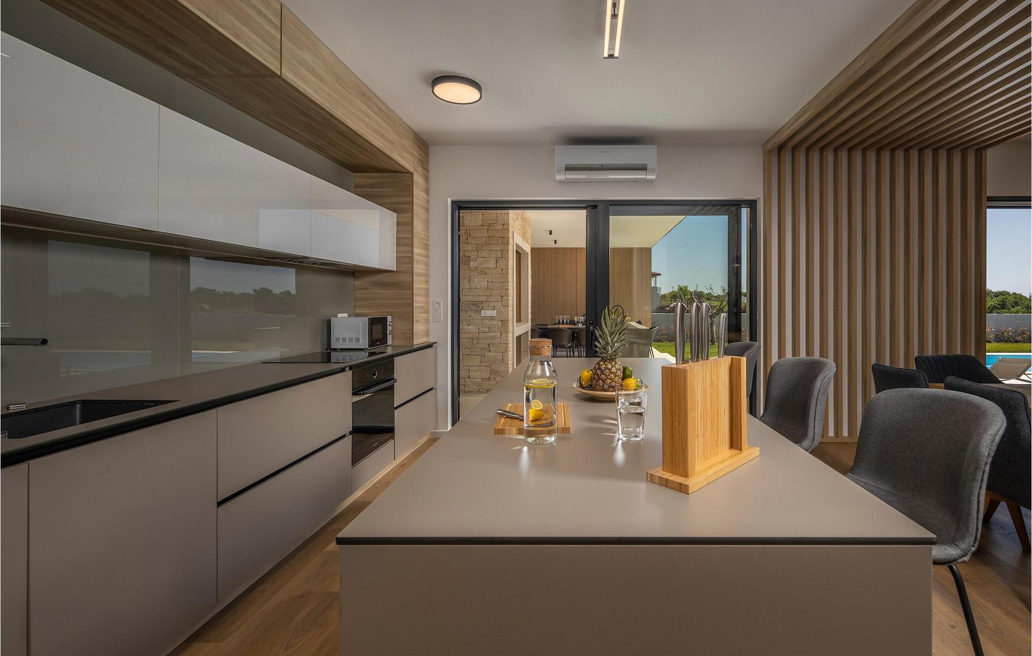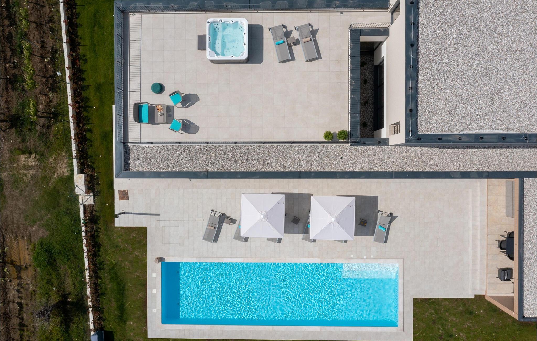 Die wunderschöne Villa La Reina Brtonigla liegt in einer malerischen Stadt im nordwestlichen Teil Istriens. Der moderne Baustil, das minimalistische Innendesign und das ästhetisch ansprechende Äußere dieser Villa machen Ihren Urlaub zu einer echten Luxusoase. Die Villa liegt an einem ruhigen Ort voller Grün und Natur, abseits vom Lärm und der Hektik der Stadt. Die maximale Kapazität der Villa beträgt 13 Personen und die Villa verfügt über insgesamt 5 Luxuszimmer mit eigenem Bad. Drei Zimmer verfügen über Doppelbetten und die anderen beiden Zimmer über jeweils zwei Einzelbetten. Außerdem gibt es ein Schlafsofa und zwei Zustellbetten. Zwei Zimmer befinden sich im Obergeschoss und drei weitere Schlafzimmer im Erdgeschoss. Im Obergeschoss befinden sich zwei geräumige Terrassen mit Whirlpool, auf denen Sie ruhige Abende genießen und den Sonnenuntergang beobachten können. Das Erdgeschoss der Villa verfügt über eine moderne Küche, ein geräumiges Esszimmer, ein luftiges Wohnzimmer und zwei zusätzliche Toiletten. Auf der großen Terrasse der Villa befindet sich ein wunderschöner Hydromassage-Pool von 60 m² und einer Tiefe von 1,35 m, umgeben von 8 Liegestühlen. Zum Poolzubehör gehört die Heizung, allerdings gegen Aufpreis. Im Innenhof der Villa gibt es eine Sommerterrasse mit Esstisch und Grill, wo Sie typisch istrische Spezialitäten zubereiten können. Zu den weiteren Einrichtungen der Villa gehören ein Trampolin und ein Kinderspielplatz, Fahrräder, Darts oder Badminton, an denen die Kleinsten sicherlich Freude haben werden. Neben dem bereits erwähnten Whirlpool verfügt die Villa auch über eine Sauna, die sich im Erdgeschoss der Villa befindet. Im Innenhof der Villa gibt es drei Parkplätze und zwei zusätzliche Plätze außerhalb des Innenhofs. Villa La Reina Brtonigla ist Teil eines größeren Komplexes aus drei Villen. Sie wird als separate Villa vermietet, bildet aber zusammen mit den benachbarten Schwestervillen Primavera und Estate einen modernen Komplex, der insgesamt 33 Gästen Unterkunft bietet. Die nebeneinander liegenden Villen sind eine ideale Wahl für große Gruppen und Familien, die den perfekten Urlaub inmitten unberührter Natur genießen möchten. Alle drei Villen sind in ihrer Aufteilung sehr ähnlich, ausgestattet mit einer schönen Terrasse mit Pool, zusätzlichen Einrichtungen wie Fahrrädern oder Whirlpools. Villa Estate und Villa Primavera liegen nebeneinander, verfügen jeweils über 4 Zimmer und sind für maximal 10 Personen geeignet, während die größere und etwas weiter entfernte Villa La Reina Brtonigla über 5 Zimmer und eine maximale Kapazität für 13 Personen verfügt . Brtonigla bietet eine Handvoll interessanter Inhalte, die Ihren Urlaub mit Aktivitäten wie Weintouren, Olivenöltouren oder Trüffeljagdtouren füllen werden. Istrien ist bekannt für sein außergewöhnlich hochwertiges gastronomisches Angebot und eine lange Tradition im Anbau und der Verarbeitung von Weinreben und Oliven. Trüffel sind eine weitere teure gastronomische Besonderheit Istriens, und die Standorte dieses unterirdischen Juwels befinden sich in Zentralistrien, im Motovun-Wald. Besuchen Sie unbedingt die umliegenden Sehenswürdigkeiten wie die Mramornica-Höhle in der Nähe von Brtonigla. Die Höhle wird erstmals in den Aufzeichnungen von Albert Fortis erwähnt, einem berühmten italienischen Reiseschriftsteller aus dem 18. Jahrhundert. Die Temperatur der Höhle beträgt konstant 14 Grad, weshalb sie als Lager für Barriquefässer dient, in denen hochwertige istrische Weine reifen. Für alle, die lieber kulturelle und historische Denkmäler erkunden möchten, gibt es an der Küste zahlreiche Sehenswürdigkeiten und historische Städte wie Umag oder Porec, die viele monumentale Gebäude aus der Antike verbergen. Im Landesinneren Istriens finden Sie auch das malerische Motovun, eine mittelalterliche Stadt, deren versteckte Gassen viele Geheimnisse des magischen Istriens offenbaren. Gönnen Sie sich die Erlebnisse Istriens und genießen Sie den Luxus der Villa La Reina Brtonigla, den Luxus, den Sie verdienen. Eine Poolheizung ist gegen eine zusätzliche Gebühr verfügbar, die vor Ort zu zahlen ist. Haustiere sind in dieser Unterkunft nach Ermessen des Eigentümers und gegen eine Gebühr gestattet. Bitte beachten Sie, dass diese Unterkunft Jugendgruppen nur gegen Zahlung einer erstattbaren Kaution von 1000 EUR akzeptiert. Eine Jugendgruppe in dieser Unterkunft besteht aus Personen im Alter von 27 Jahren oder jünger. Wenn Sie eine Jugendgruppe sind, werden Sie bei der Ankunft gebeten, die Kaution zu hinterlegen. Alle Beträge, die zur Behebung von Schäden an der Unterkunft erforderlich sind, die Sie während Ihres Aufenthalts verursacht haben, werden von der Kaution abgezogen und anschließend an Sie zurückerstattet.