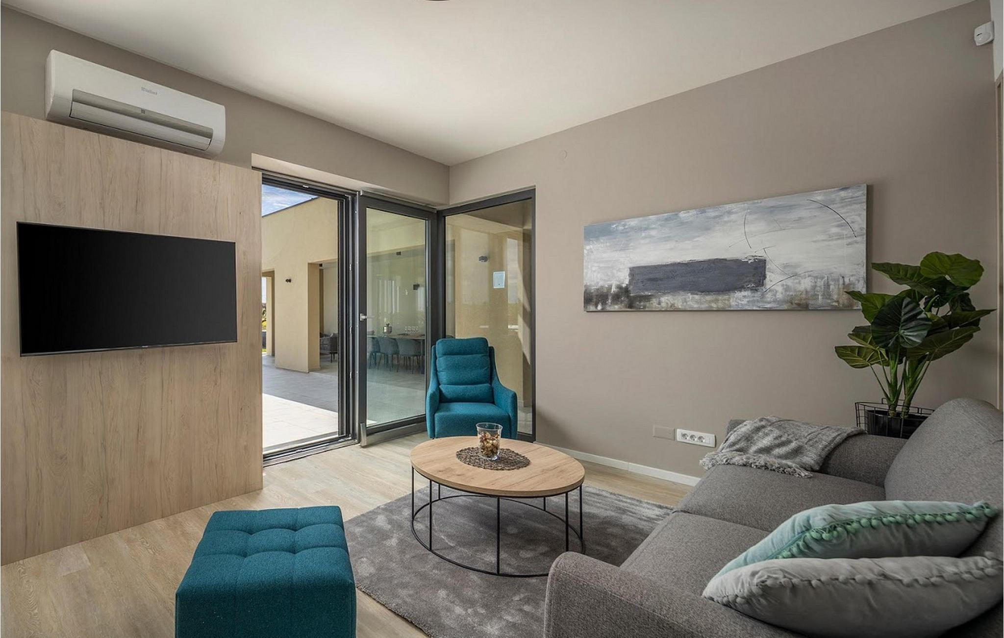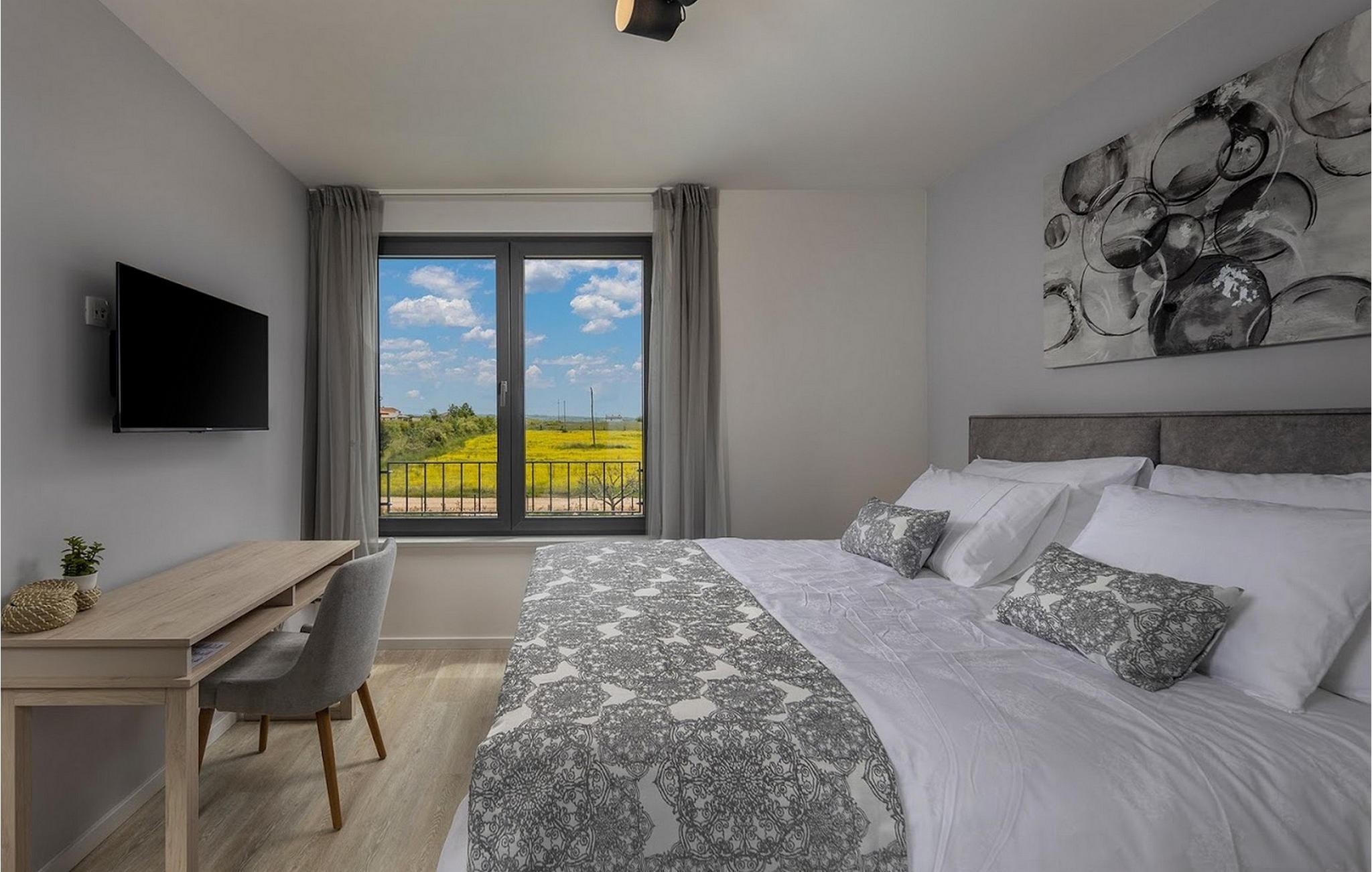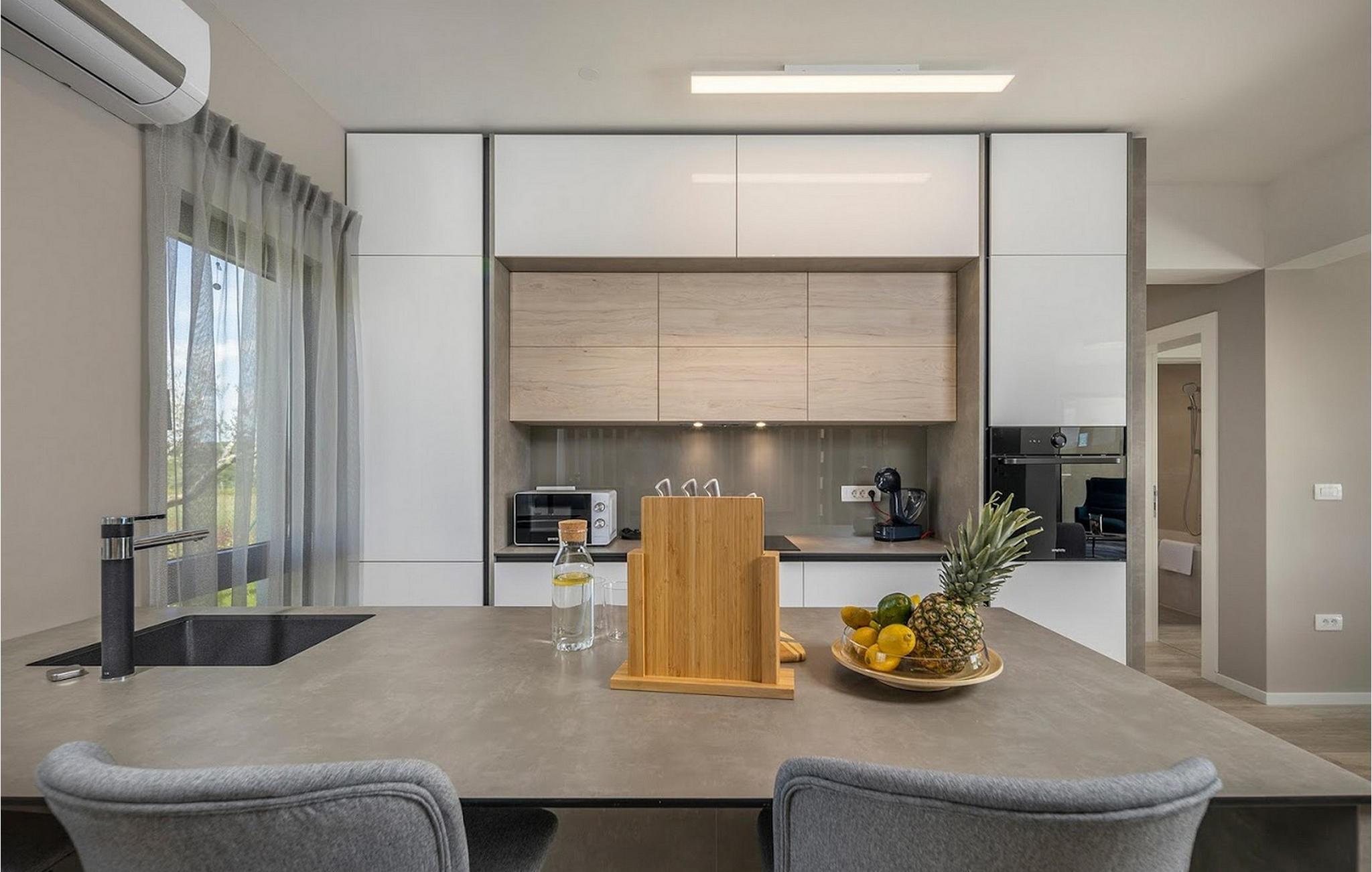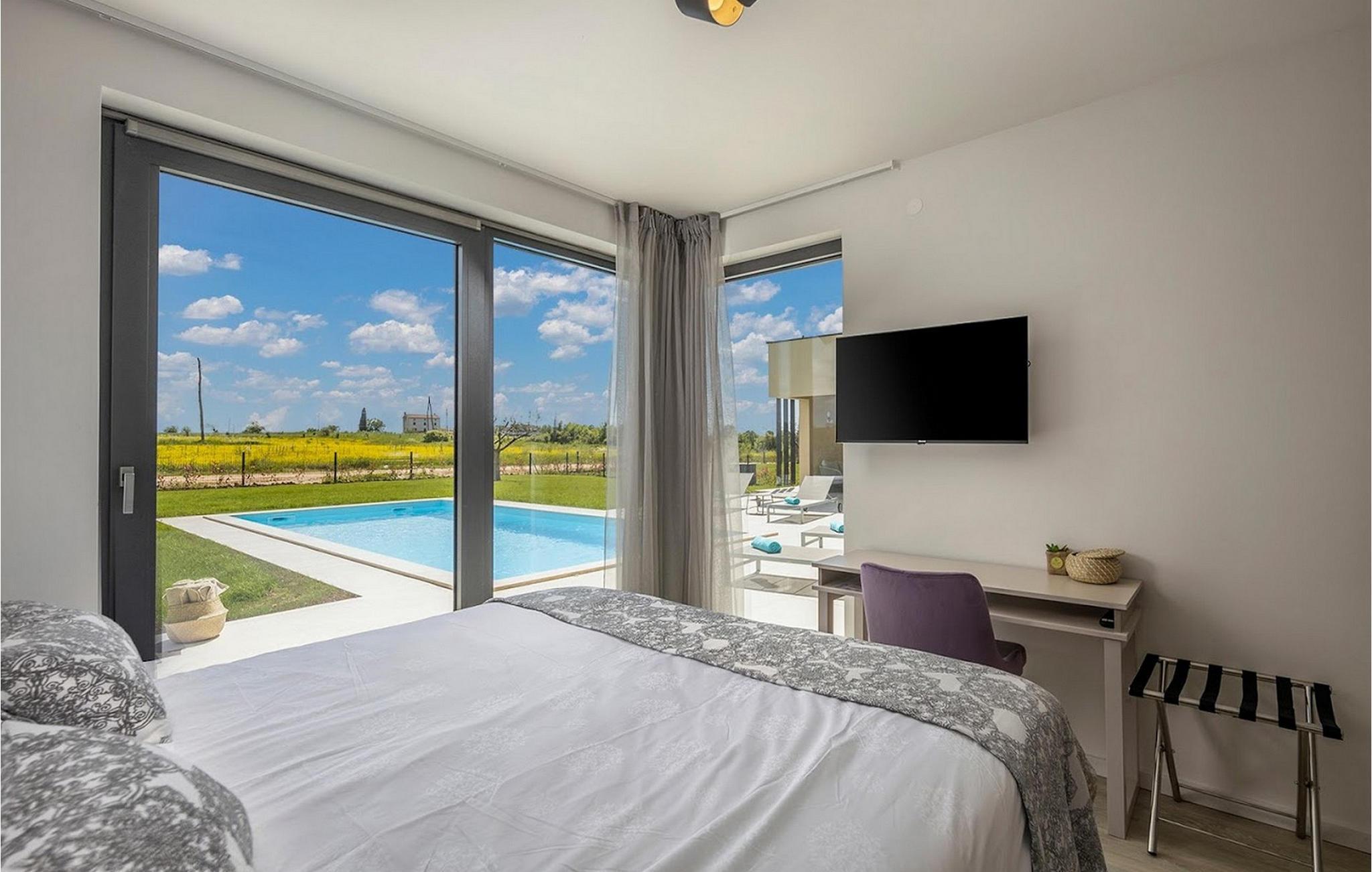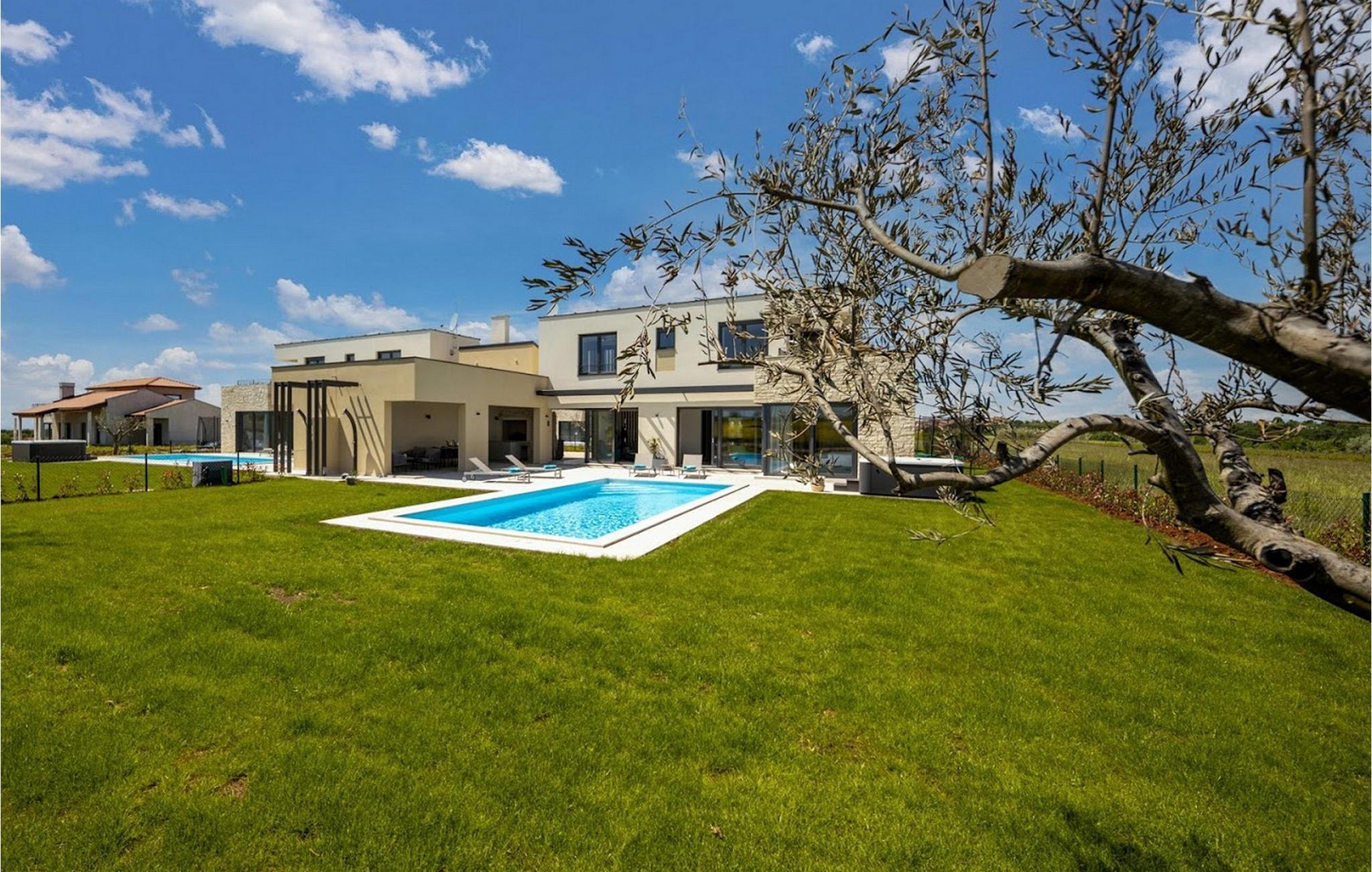 Das schöne, moderne Villa Estate befindet sich in einem kleinen Dorf Brtonigla im nordwestlichen Teil der Halbinsel Istrien. Umgeben von unberührter Natur ist diese Villa eine wahre Oase der Ruhe, die Ihren Urlaub zum Vergnügen machen wird. Die Villa bietet Platz für insgesamt 10 Personen und verfügt über 4 Schlafzimmer mit eigenem Bad. Im Obergeschoss der Villa befinden sich 3 Schlafzimmer und im Erdgeschoss ein weiteres Schlafzimmer. Im ersten Stock der Villa gibt es außerdem zwei Terrassen, auf denen Sie schöne und entspannende Momente genießen können. Im Erdgeschoss der Villa befinden sich eine moderne Küche, ein Esszimmer und ein geräumiges Wohnzimmer. Auf der großzügigen Terrasse der Villa befindet sich ein wunderschöner beheizter Pool von 40m2 und einer Tiefe von 1,35 m. Rund um den Pool stehen 6 Liegestühle bereit, auf denen Sie die Sommersonne genießen können. Im Innenhof der Villa gibt es auch eine Sommerküche sowie einen Tisch und Grill im Freien. Im Innenhof der Villa finden Sie einen Kinderspielplatz mit Trampolin und Fahrrädern, außerdem verfügt die Villa über zusätzliche Einrichtungen wie Whirlpool, Darts oder Badminton. Im Innenhof der Villa stehen Ihnen zwei Parkplätze zur Verfügung. Villa Estate ist Teil eines größeren Komplexes aus drei Villen. Sie wird als separate Villa vermietet, bildet aber zusammen mit den benachbarten Schwestervillen Primavera und La Reina Brtonigla einen modernen Komplex, der insgesamt 33 Gästen Unterkunft bietet. Die nebeneinander liegenden Villen sind eine ideale Wahl für große Gruppen und Familien, die den perfekten Urlaub inmitten unberührter Natur genießen möchten. Alle drei Villen sind in ihrer Aufteilung sehr ähnlich, ausgestattet mit einer schönen Terrasse mit Pool, zusätzlichen Einrichtungen wie Fahrrädern oder Whirlpools. Villa Estate und Villa Primavera liegen nebeneinander, verfügen jeweils über 4 Zimmer und sind für maximal 10 Personen geeignet, während die größere und etwas weiter entfernte Villa La Reina Brtonigla über 5 Zimmer und eine maximale Kapazität für 13 Personen verfügt . In Brtonigla werden Sie sicherlich zahlreiche Aktivitäten in der Natur oder das interessante kulturelle und gastronomische Angebot Istriens genießen. Verpassen Sie nicht, einige der Spezialitäten Istriens zu probieren, wie zum Beispiel den teuren Trüffel, einen unterirdischen Wildpilz, der im Motovun-Wald im Zentrum Istriens wächst. Neben Trüffeln ist Istrien auch für sein außergewöhnlich hochwertiges Wein- und Olivenölangebot bekannt und liegt damit vor Europameistern wie Spanien oder Frankreich. In Istrien stoßen Sie auf zahlreiche Weinberge und Weinstraßen, deren Landschaft, die Schönheit der Natur und die jahrhundertealte Kultur des Weinanbaus niemanden gleichgültig lassen. In Brtonigla finden in den Sommermonaten verschiedene Festivals statt, die dem reichen öno-gastronomischen Angebot Istriens gewidmet sind. Verpassen Sie nicht, das Festival der Schokolade und des Weins zu besuchen, das alle Gourmetfreuden hervorrufen wird, oder das Festival des istrischen Malvasia, einer einheimischen Sorte istrischen Weins. Nicht weit von Brtonigla entfernt liegt der Aquapark Istralandia, dessen Wasserabenteuer sicherlich auch die Kleinsten genießen werden. Etwas weiter entfernte Strände befinden sich im Stadtzentrum von Umag, beispielsweise der Felsenstrand Karigador oder der Strand Kanova. Gönnen Sie sich den ganzen Charme des magischen Istriens und gönnen Sie sich erholsame Momente im Luxus von Villa Estate! Eine Poolheizung ist gegen eine zusätzliche Gebühr verfügbar, die vor Ort zu zahlen ist. Haustiere sind in dieser Unterkunft nach Ermessen des Eigentümers und gegen eine Gebühr gestattet. Bitte beachten Sie, dass diese Unterkunft Jugendgruppen nur gegen Zahlung einer erstattbaren Kaution von 1000 EUR akzeptiert. Eine Jugendgruppe in dieser Unterkunft besteht aus Personen unter 27 Jahren. Wenn Sie eine Jugendgruppe sind, werden Sie bei der Ankunft gebeten, die Kaution zu hinterlegen. Alle Beträge, die zur Behebung von Schäden an der Unterkunft erforderlich sind, die Sie während Ihres Aufenthalts verursacht haben, werden von der Kaution abgezogen und anschließend an Sie zurückerstattet.