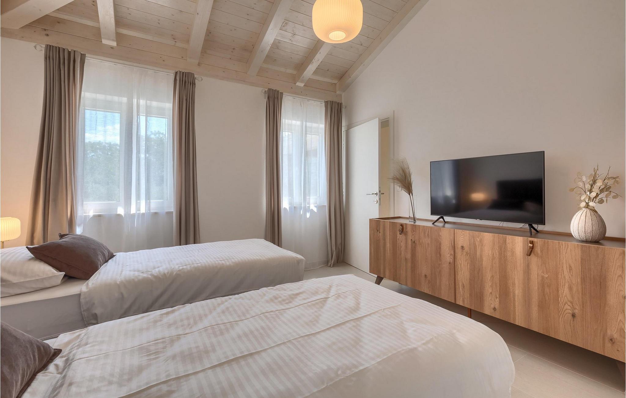 Im geräumigen Erdgeschoss befinden sich das Wohnzimmer, das Esszimmer, eine voll ausgestattete Küche, ein Badezimmer und zwei Schlafzimmer. Im ersten Stock befinden sich zwei weitere komfortable Schlafzimmer mit einem Badezimmer. Villa Leon ist die richtige Wahl für einen idyllischen Urlaub inmitten unberührter Natur!.Villa Leon befindet sich in dem kleinen Dorf Brtonigla. Der Ort ist bekannt für sein ausgezeichnetes gastronomisches Angebot, aber auch für Olivenöl. Wenn Sie sich entscheiden, Öl zu kaufen, besuchen Sie private Ölmühlen, in denen Ihnen die Gastgeber gerne die Herstellung des Öls zeigen und Sie bei der Wahl des Öls beraten. Für Liebhaber von Adrenalin und Spaß ist der Aquapark Istralandia der ideale Ort. Ein Ort, der Spaß für "Groß" und "Klein" garantiert. Nur 15 Minuten Autofahrt trennen Sie von Novigrad oder Porec. Beliebte Touristenziele, die Sie auf dem Persten blick verzaubern werden. Das schöne Porec mit der weltberühmten Euphrasius-Basilika ist eine gute Wahl für einen Tagesausflug. Machen Sie einen Spaziergang durch die Straßen der Stadt, kaufen Sie traditionelle Souvenirs, erfrischen Sie sich im klaren Meer und wählen Sie am Ende des Tages eines der Top-Restaurants, das jeden Gaumen zufrieden stellt, der nach mediterranen Köstlichkeiten strebt :)