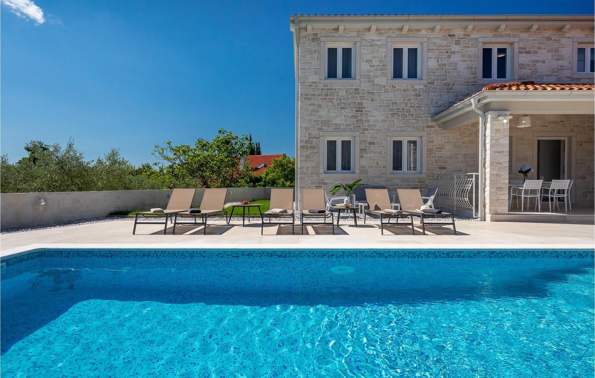 Neben dem Pool auf der Terrasse steht Ihnen ein großer Esstisch und ein Holzkohlegrill zur Verfügung, auf dem Sie Ihre Lieblingsgerichte zubereiten können, während Sie mit Familie und Freunden die sommerliche Atmosphäre genießen. Das Interieur der Villa ist elegant und sehr gemütlich.