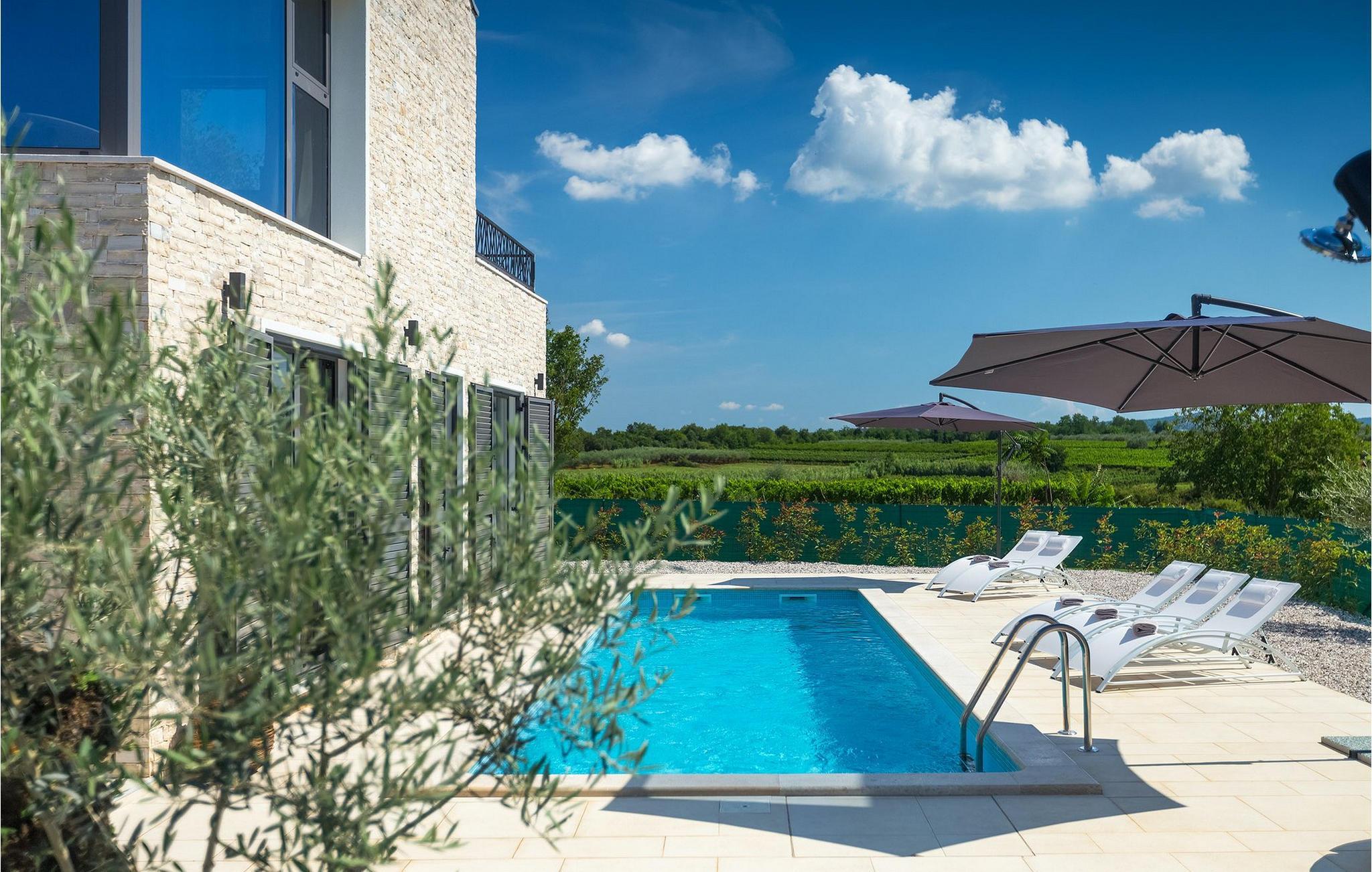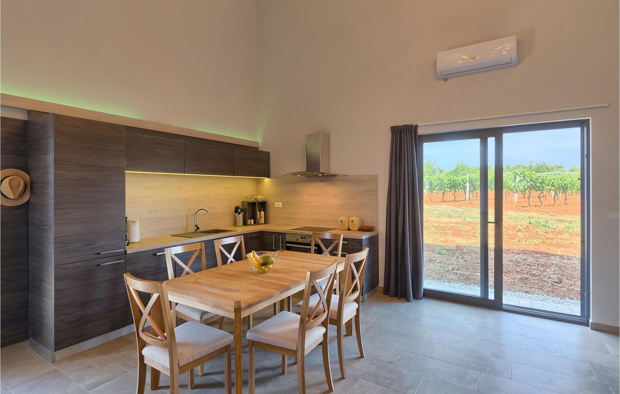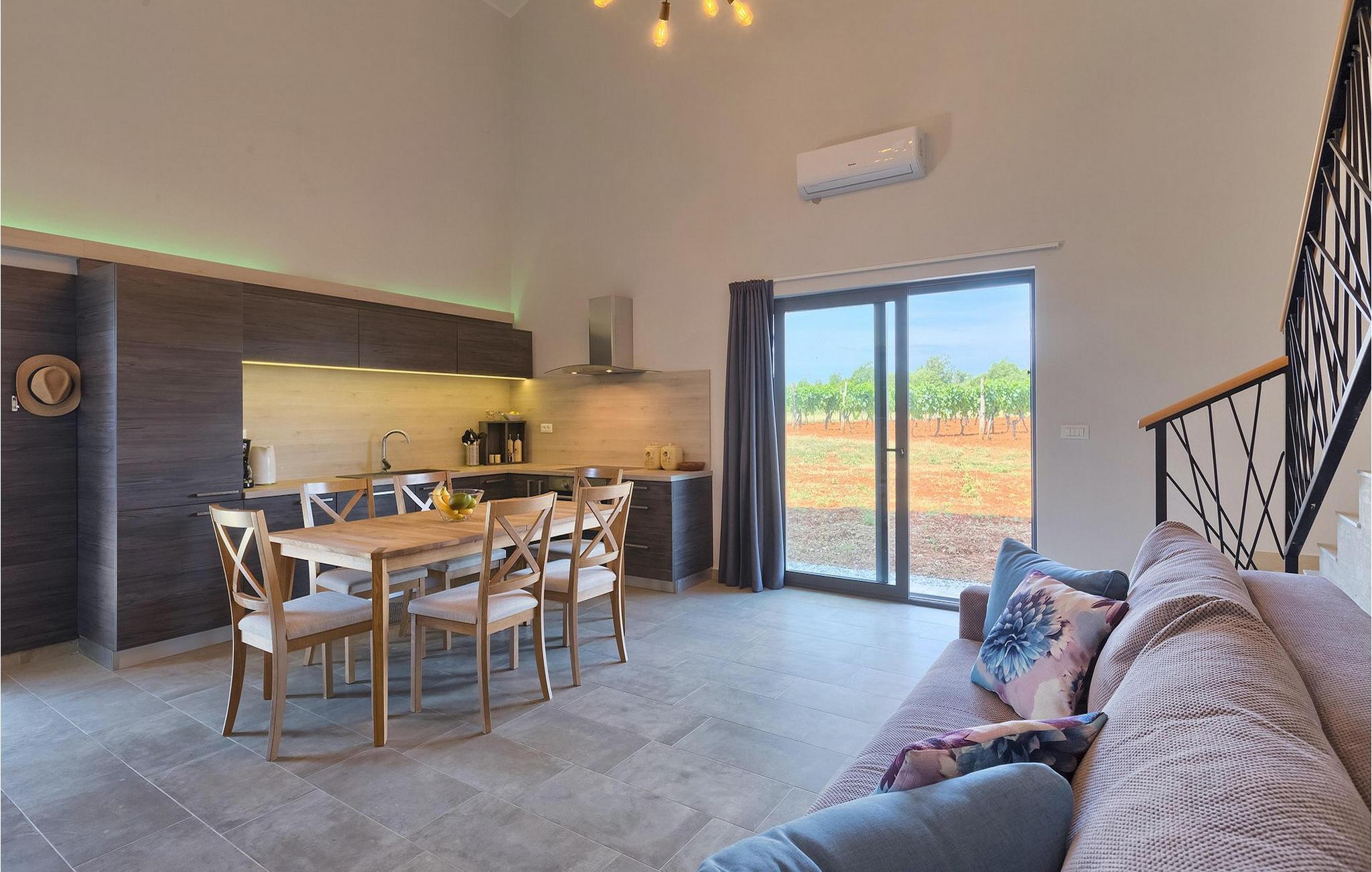 Villa Libra ist eine moderne Villa, die perfekt auf zwischen den Feldern im Hinterland von Novigrad gelegen ist. Es gibt keine anderen Häuser in der unmittelbaren Nachbarschaft, so dass Sie Ihre Privatsphäre haben werden. Der Innenbereich ist in zwei Etagen aufgeteilt. Das Erdgeschoss besteht aus dem Wohn-Essbereich und der Küche. Dieser Bereich hat eine hohe Decke, was eine großzügige Atmosphäre schafft.