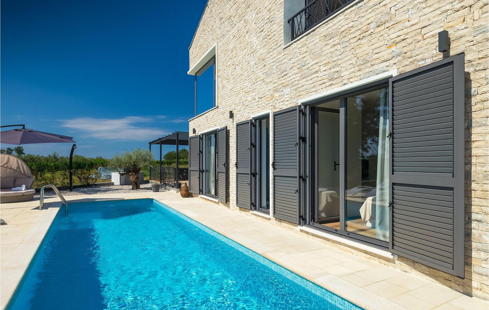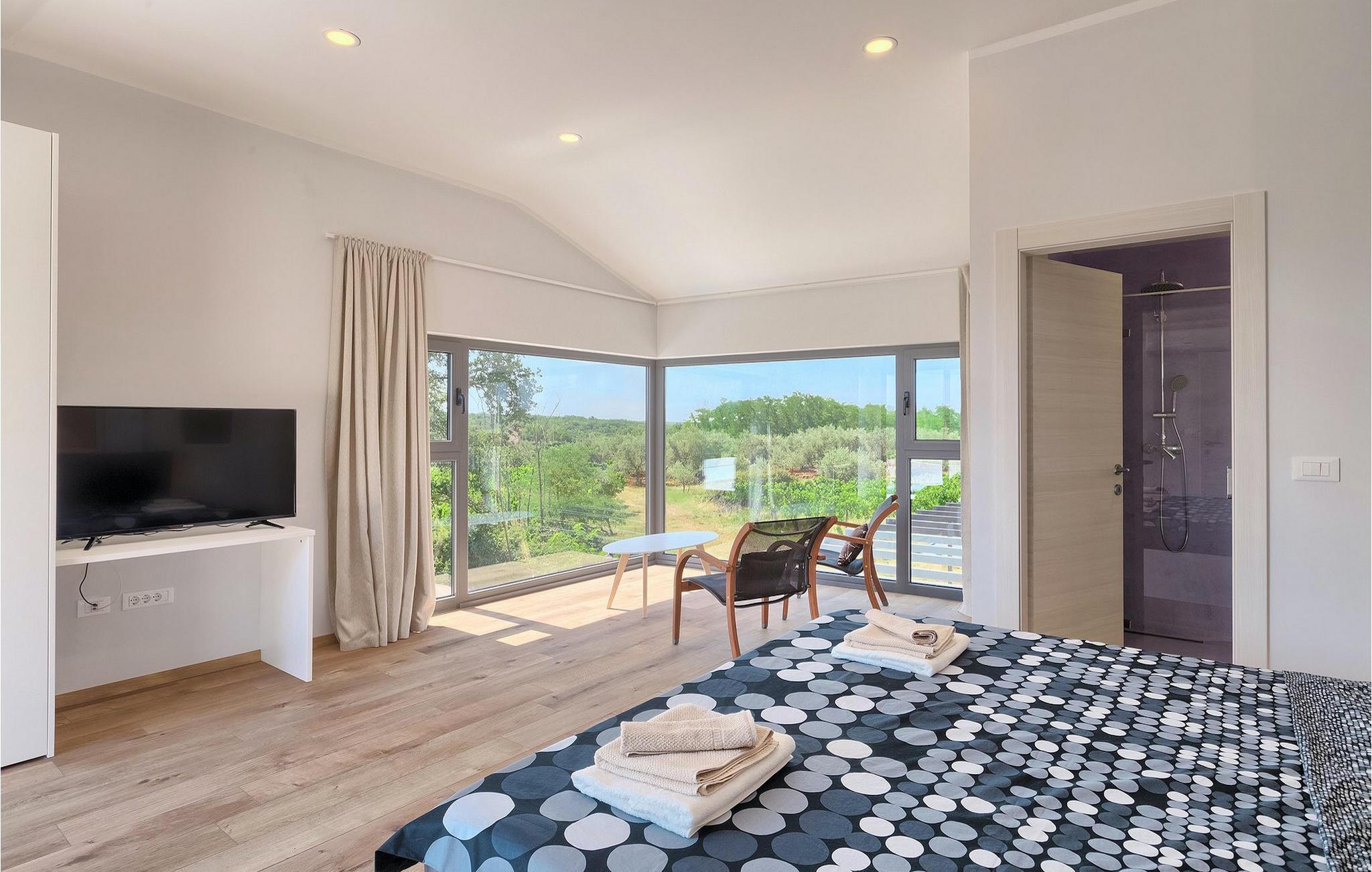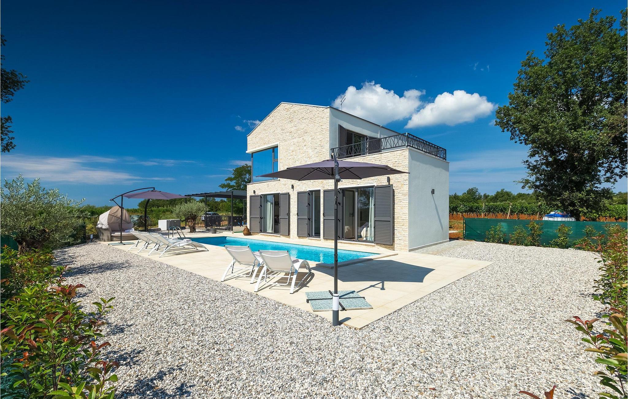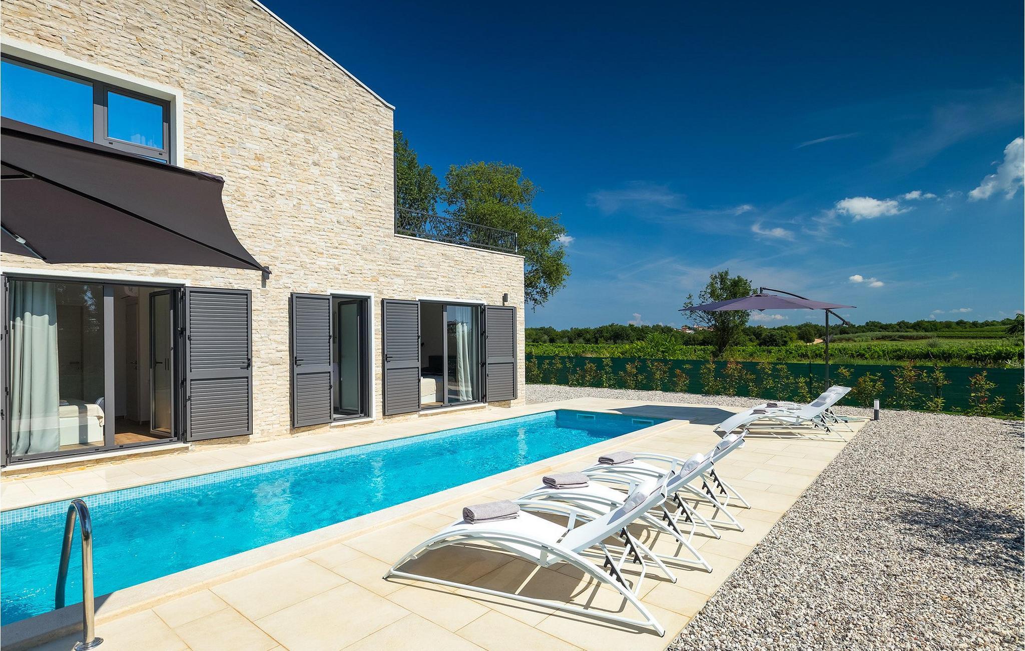 Villa Libra ist eine moderne Villa, die perfekt auf zwischen den Feldern im Hinterland von Novigrad gelegen ist. Es gibt keine anderen Häuser in der unmittelbaren Nachbarschaft, so dass Sie Ihre Privatsphäre haben werden. Der Innenbereich ist in zwei Etagen aufgeteilt. Das Erdgeschoss besteht aus dem Wohn-Essbereich und der Küche. Dieser Bereich hat eine hohe Decke, was eine großzügige Atmosphäre schafft.