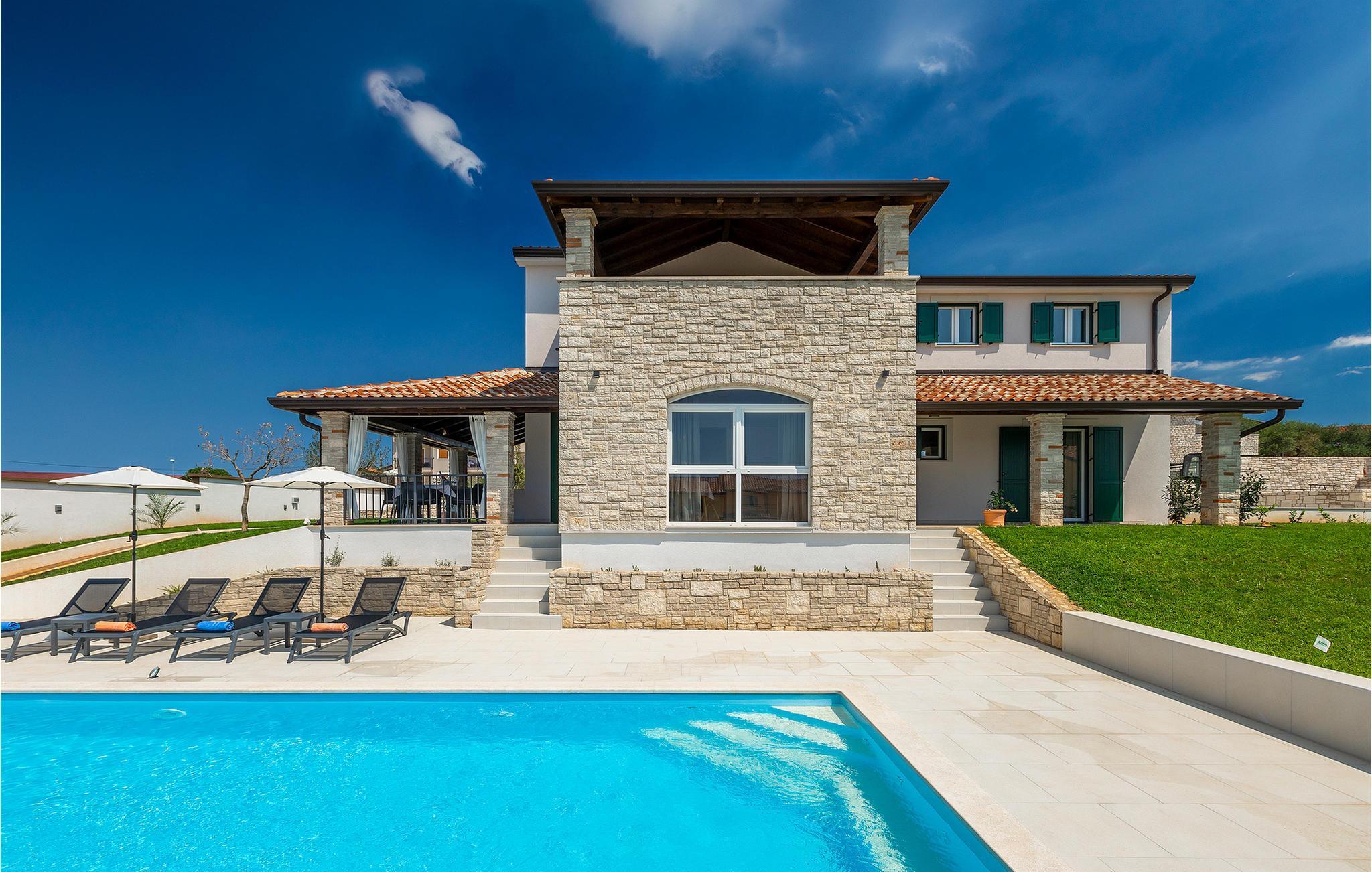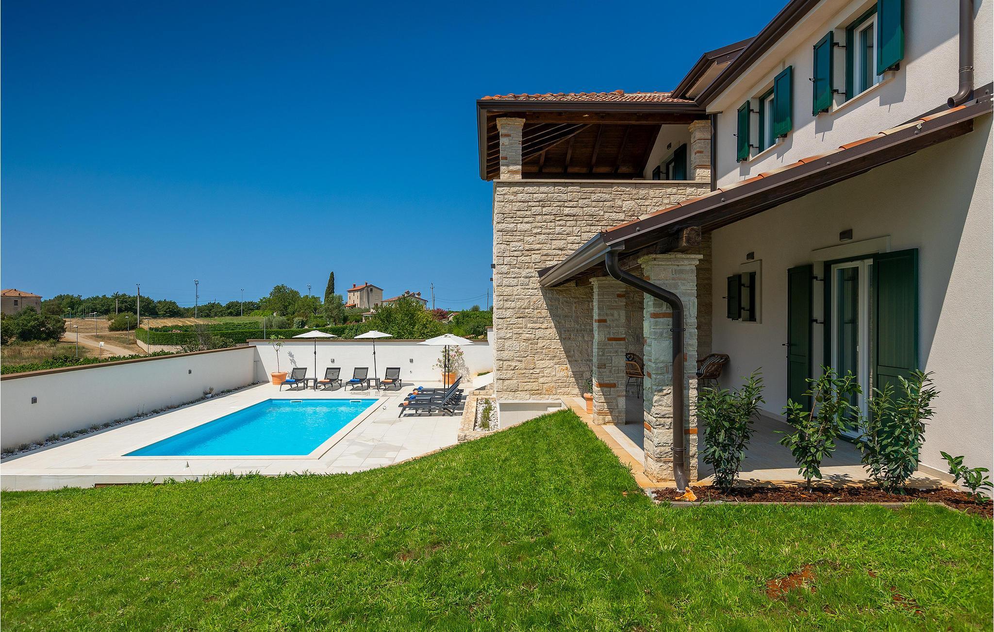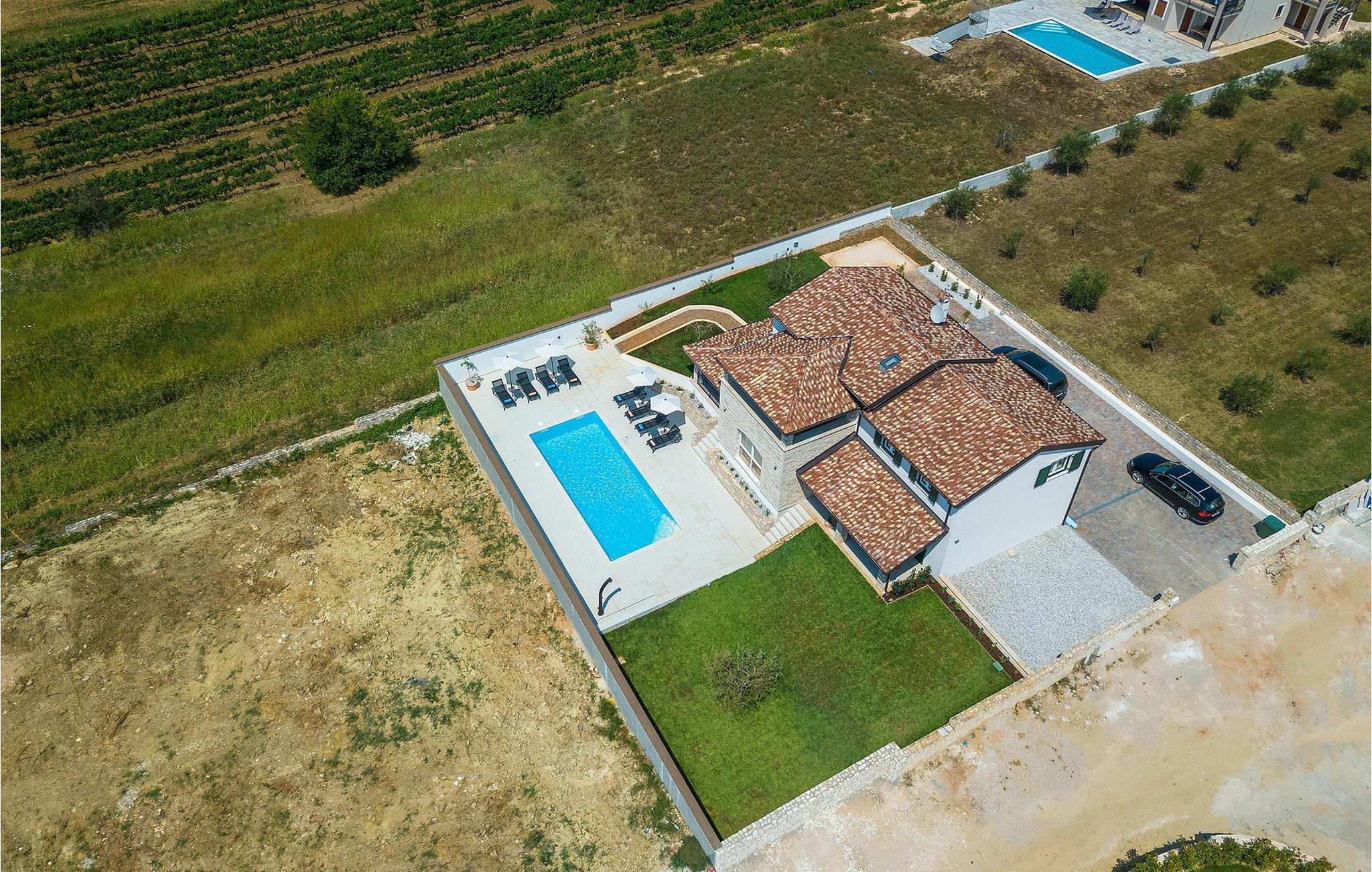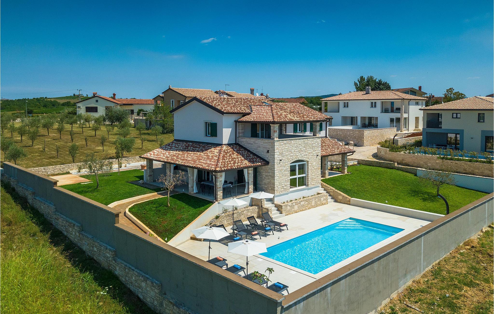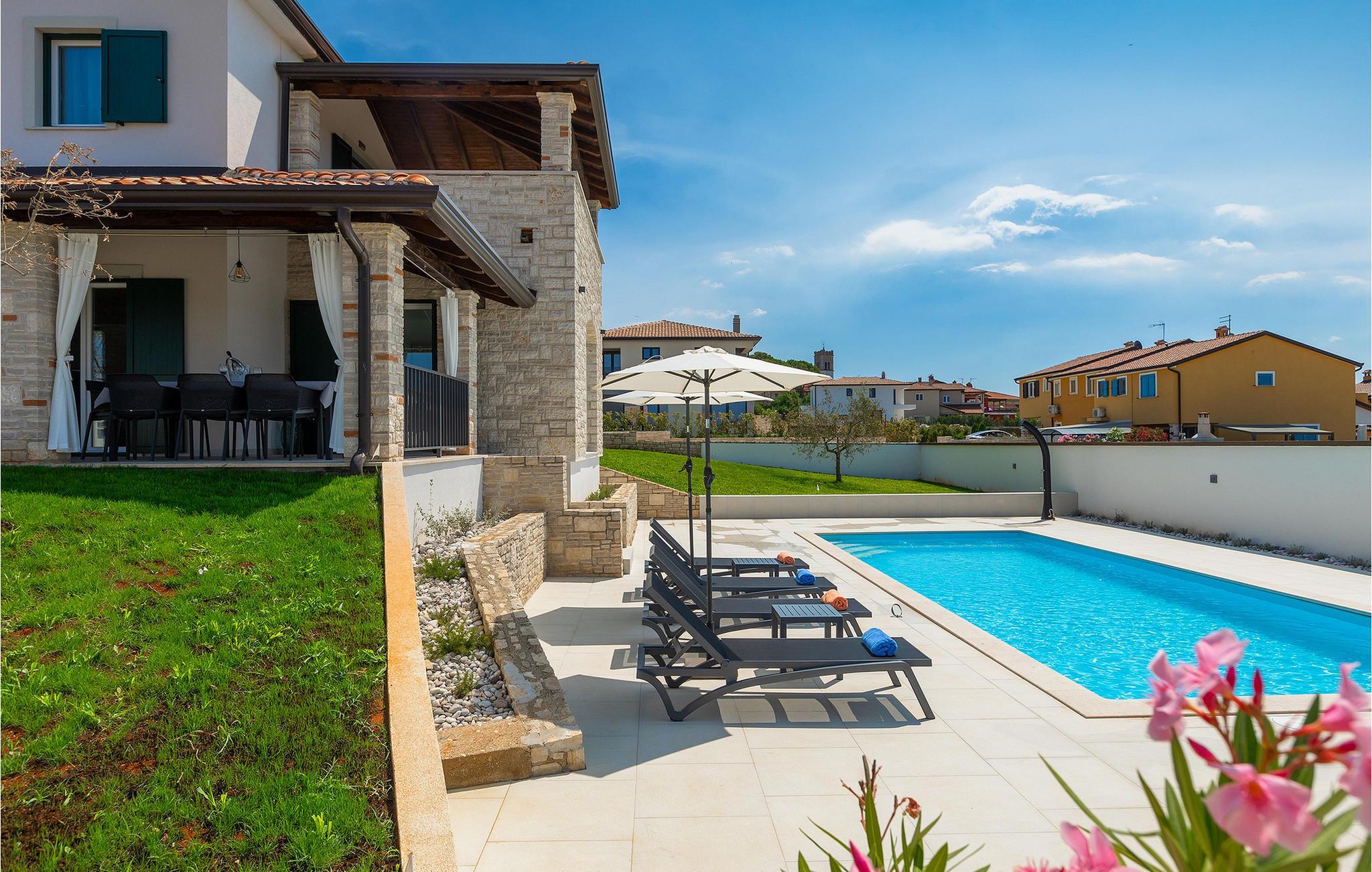 Die traumhafte Villa Victoria Brtonigla ist eine wahre Oase, in der Sie Ruhe und Entspannung fernab des stressigen Alltags finden. Der 40m2 große erfrischende Pool wird Ihnen gleich bei Ankunft an der Villa ins Auge fallen. Sie werden der Verlockung nur schwer widerstehen können, gleich ins kühle Wasser zu springen. Der Pool ist umgeben von bequemen Sonnenliegen, auf denen Sie die istrische Sonne genießen werden, während Sie den Kindern beim Spielen im Garten zusehen oder in Ihrer Lieblingszeitschrift blättern. Im Exterieur des Hauses wird jeder seinen Lieblingsplatz finden. Die überdachte Terrasse mit Sommerküche und großem Esstisch wird wahrscheinlich der Ort sein, an dem Sie beim Essen der frisch am Grill zubereiteten Gerichte Ihre Ausflüge in die Region planen werden. Von der Terrasse aus gelangen Sie direkt in den offenen, klimatisierten Wohnbereich mit Wohn- und Essbereich sowie einer voll ausgestatteten Küche. Eines der Schlafzimmer finden Sie ebenfalls im Erdgeschoss. Dieses Schlafzimmer mit Doppelbett hat ein eigenes Badezimmer und Zugang zu einer eigenen kleinen Terrasse. Eine separate Gästetoilette und ein Waschraum mit Waschmaschine und Trockner vervollständigen diese Ebene. Auf der oderen Etage versprechen 3 weitere komfortable Schlafzimmer erholsame Nächte. Eines der Schlafzimmer verfügt über ein eigenes Badezimmer, die anderen beiden Schlafzimmer teilen sich ein separates Bad. Eines dieser Schlafzimmer hat zwei Einzelbetten, die anderen Zimmer haben Doppelbetten.