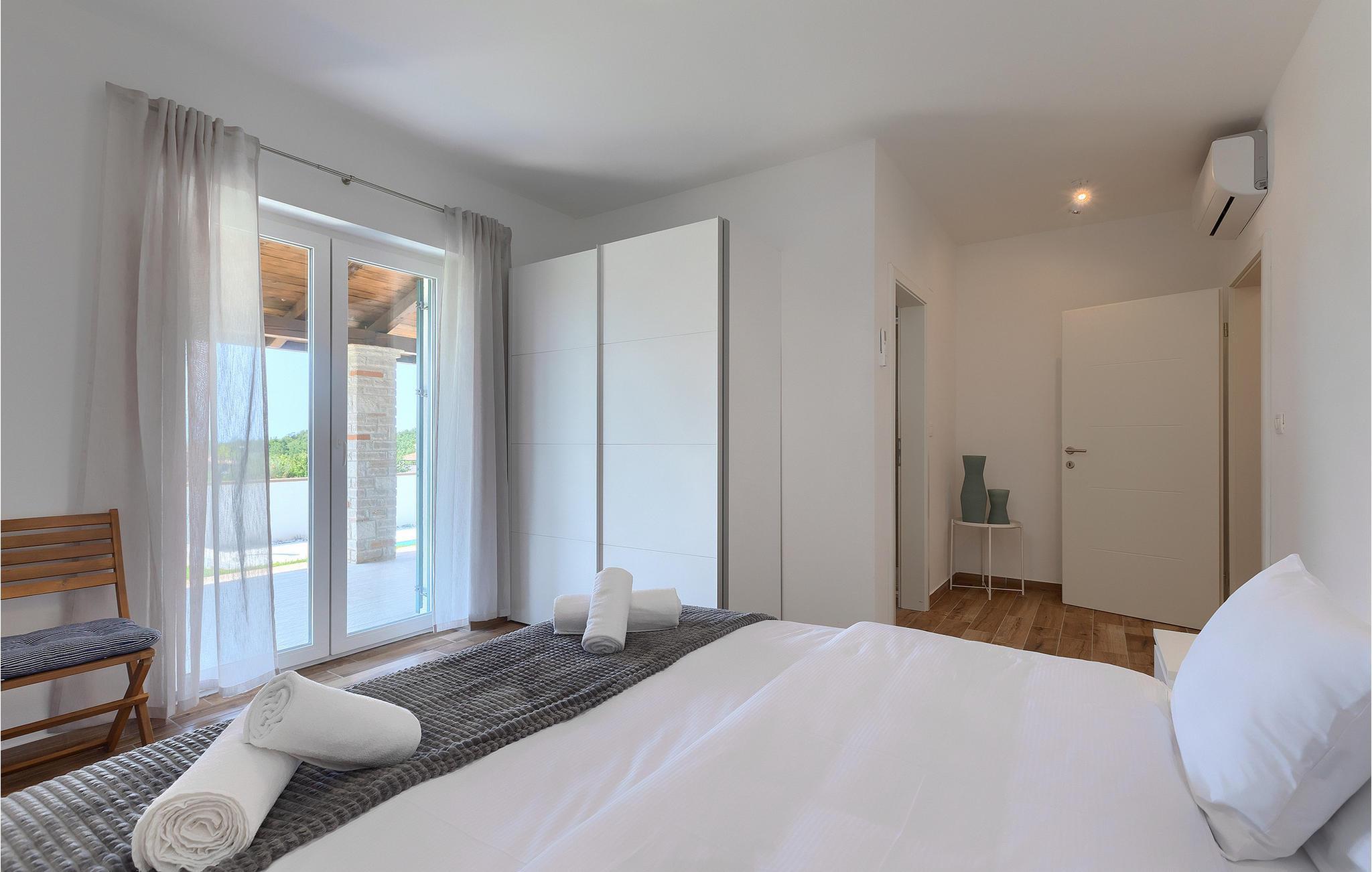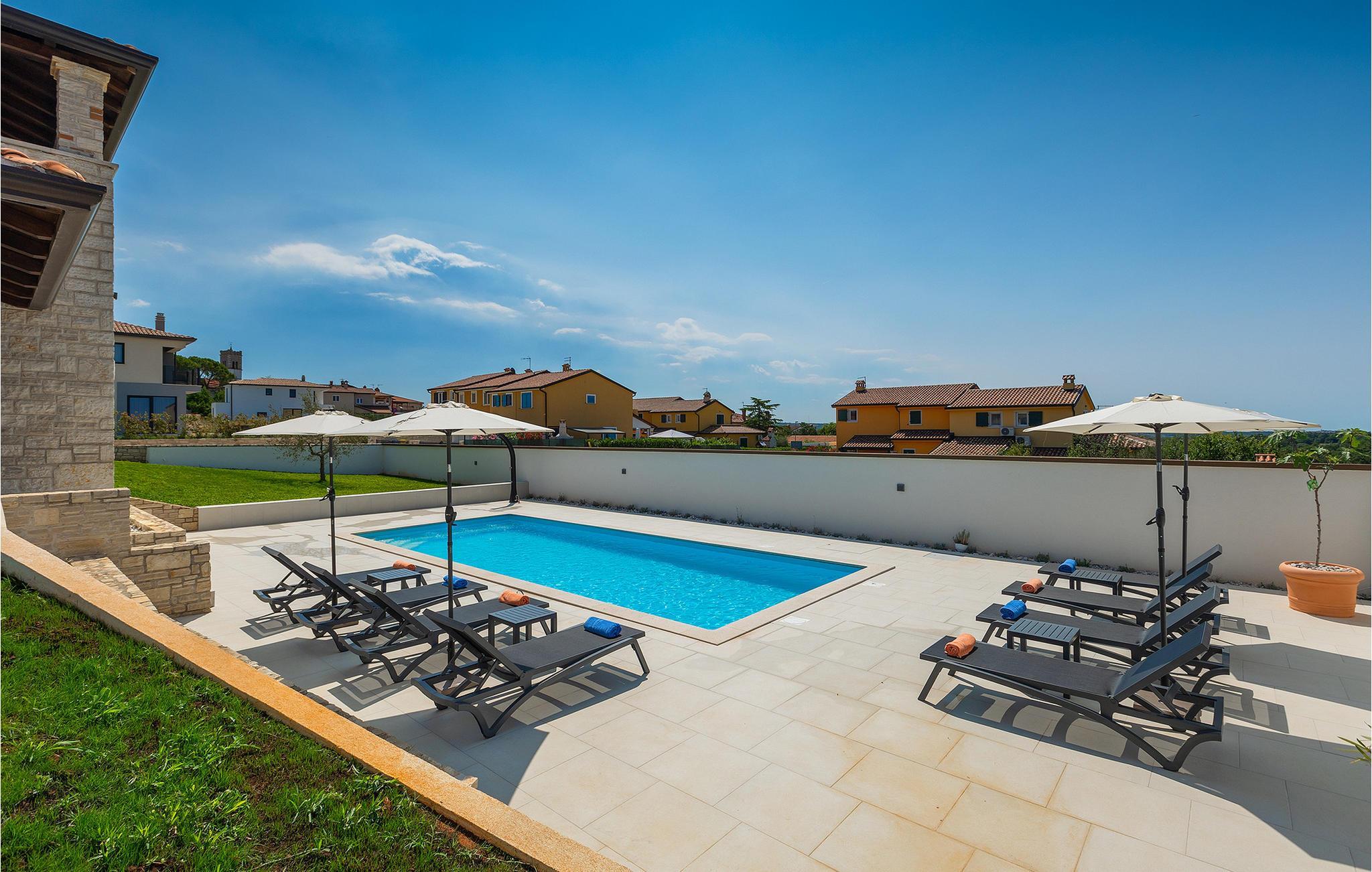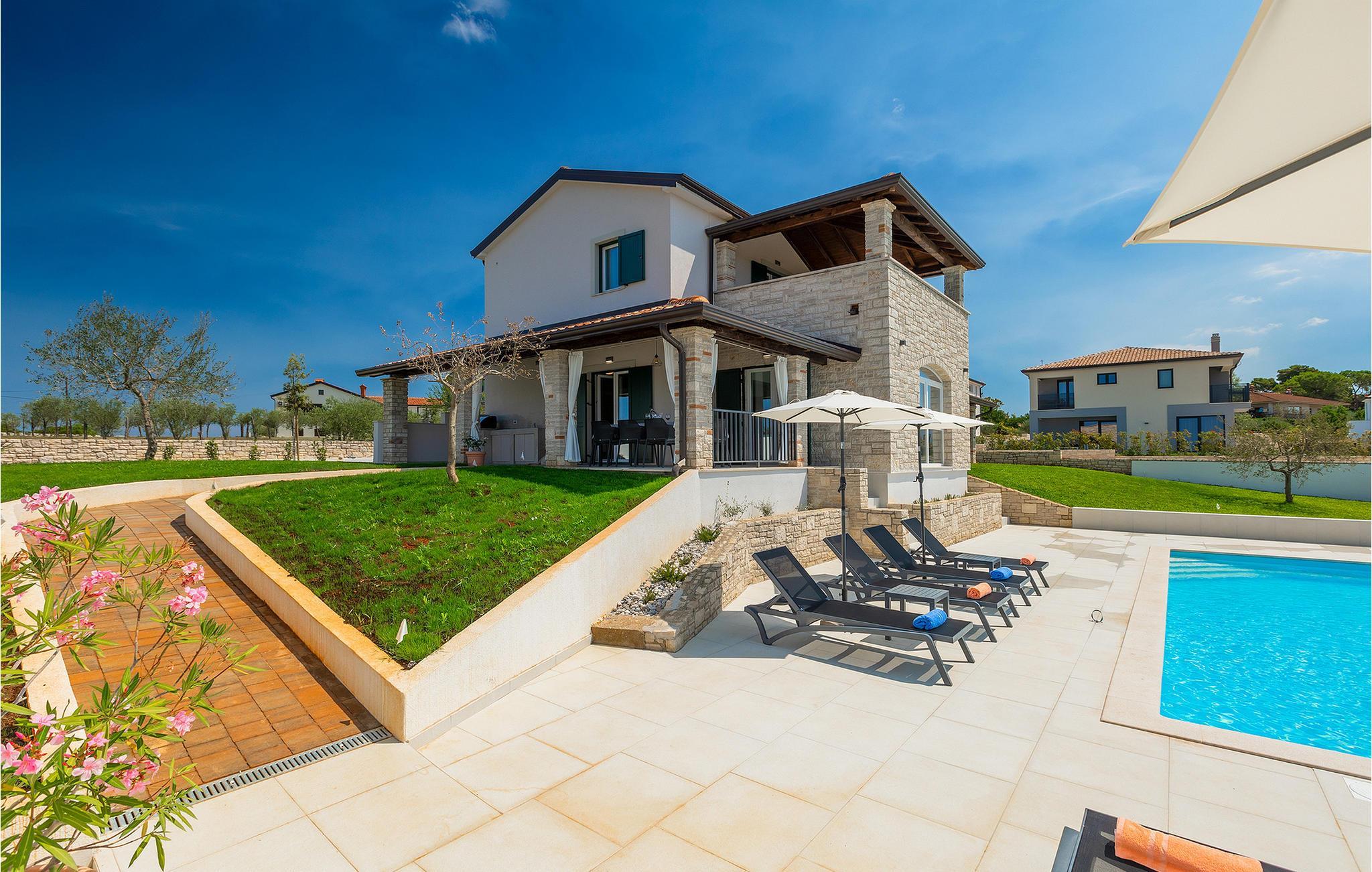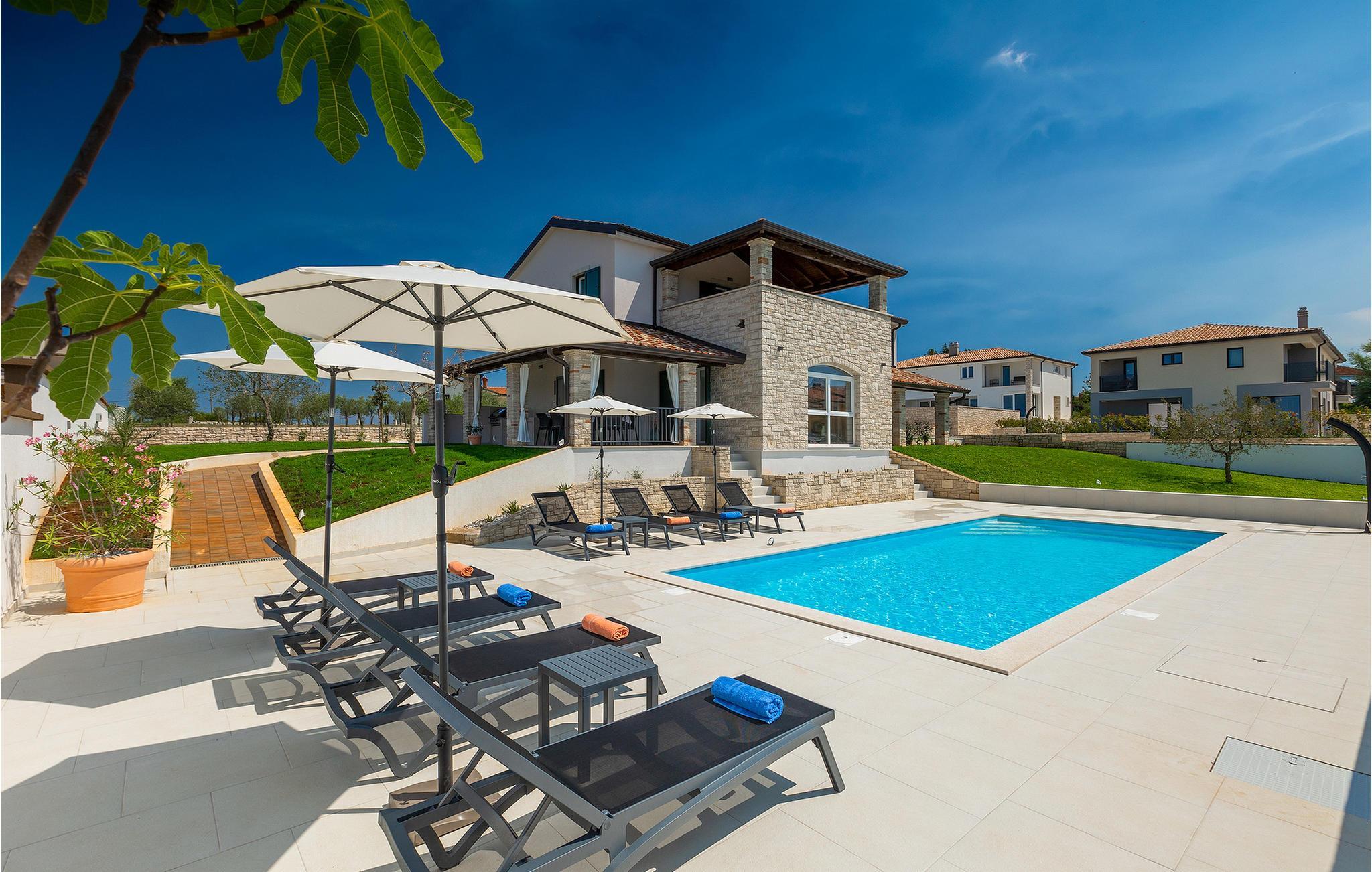 Die traumhafte Villa Victoria Brtonigla ist eine wahre Oase, in der Sie Ruhe und Entspannung fernab des stressigen Alltags finden. Der 40m2 große erfrischende Pool wird Ihnen gleich bei Ankunft an der Villa ins Auge fallen. Sie werden der Verlockung nur schwer widerstehen können, gleich ins kühle Wasser zu springen. Der Pool ist umgeben von bequemen Sonnenliegen, auf denen Sie die istrische Sonne genießen werden, während Sie den Kindern beim Spielen im Garten zusehen oder in Ihrer Lieblingszeitschrift blättern. Im Exterieur des Hauses wird jeder seinen Lieblingsplatz finden. Die überdachte Terrasse mit Sommerküche und großem Esstisch wird wahrscheinlich der Ort sein, an dem Sie beim Essen der frisch am Grill zubereiteten Gerichte Ihre Ausflüge in die Region planen werden. Von der Terrasse aus gelangen Sie direkt in den offenen, klimatisierten Wohnbereich mit Wohn- und Essbereich sowie einer voll ausgestatteten Küche. Eines der Schlafzimmer finden Sie ebenfalls im Erdgeschoss. Dieses Schlafzimmer mit Doppelbett hat ein eigenes Badezimmer und Zugang zu einer eigenen kleinen Terrasse. Eine separate Gästetoilette und ein Waschraum mit Waschmaschine und Trockner vervollständigen diese Ebene. Auf der oderen Etage versprechen 3 weitere komfortable Schlafzimmer erholsame Nächte. Eines der Schlafzimmer verfügt über ein eigenes Badezimmer, die anderen beiden Schlafzimmer teilen sich ein separates Bad. Eines dieser Schlafzimmer hat zwei Einzelbetten, die anderen Zimmer haben Doppelbetten.