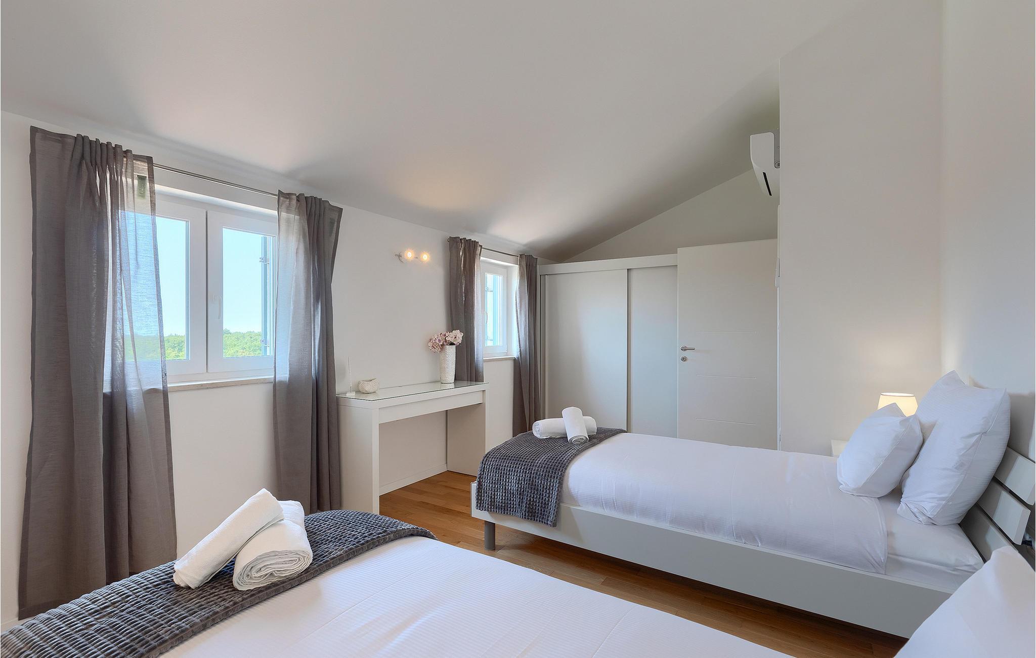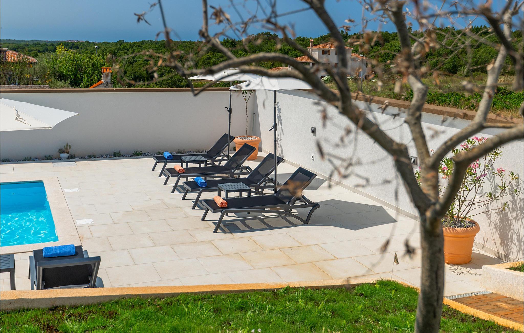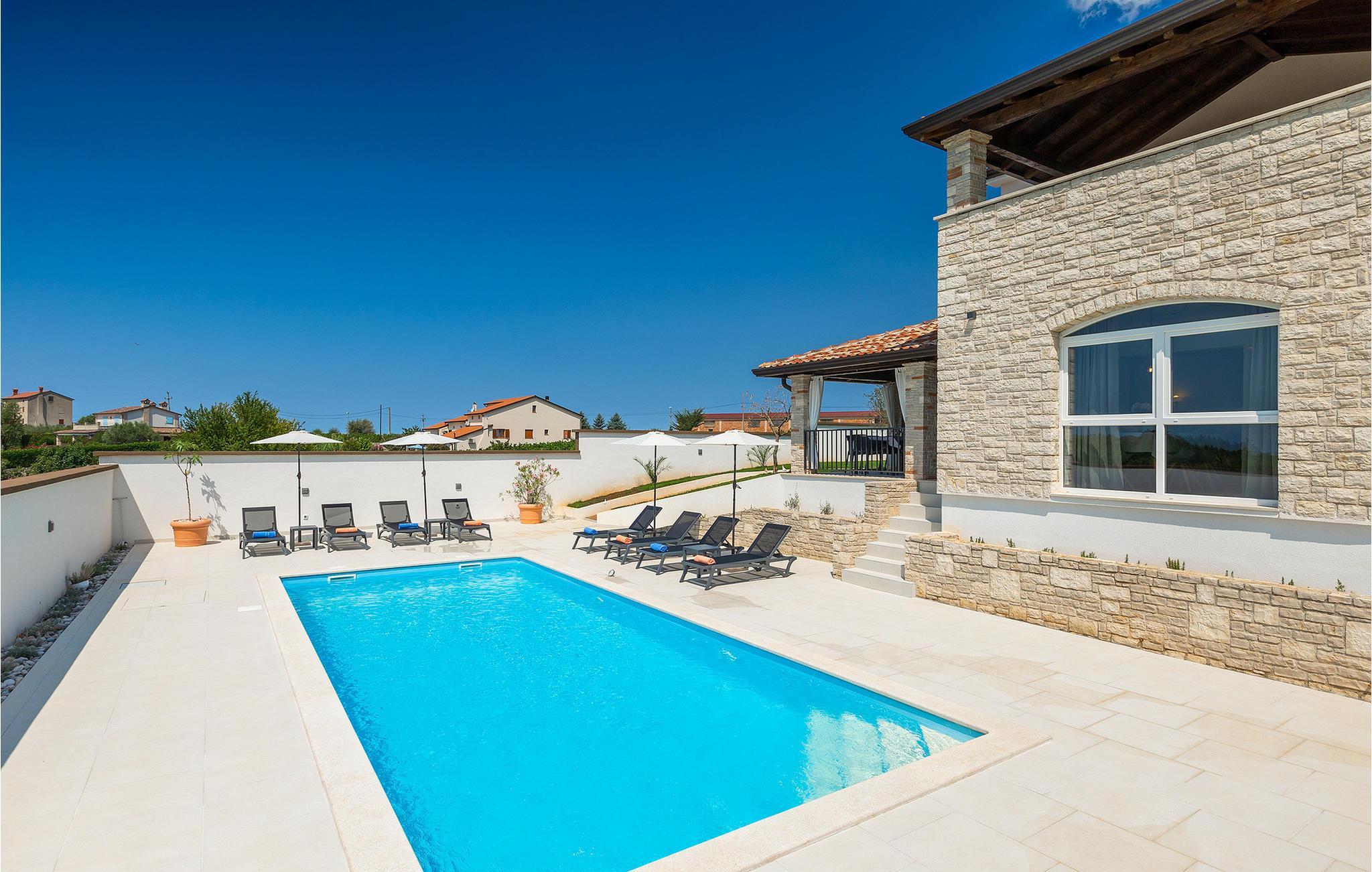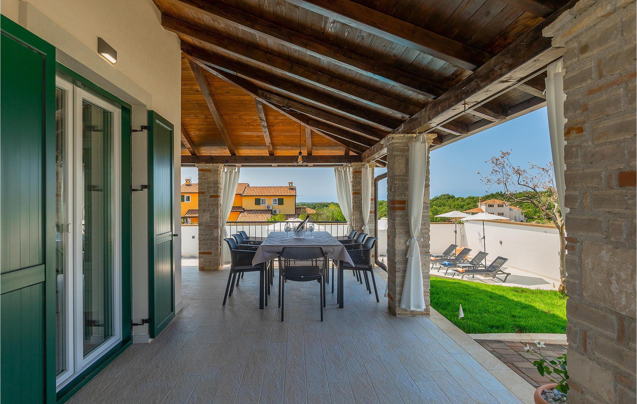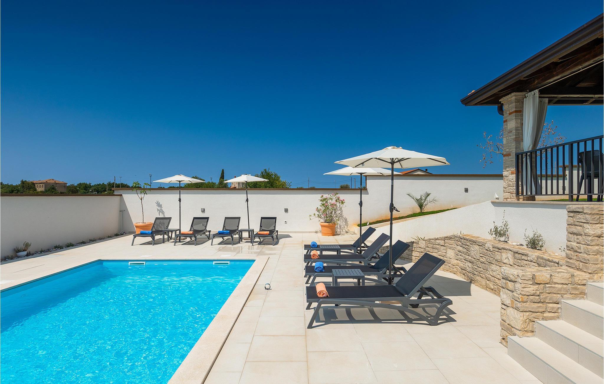 Die traumhafte Villa Victoria Brtonigla ist eine wahre Oase, in der Sie Ruhe und Entspannung fernab des stressigen Alltags finden. Der 40m2 große erfrischende Pool wird Ihnen gleich bei Ankunft an der Villa ins Auge fallen. Sie werden der Verlockung nur schwer widerstehen können, gleich ins kühle Wasser zu springen. Der Pool ist umgeben von bequemen Sonnenliegen, auf denen Sie die istrische Sonne genießen werden, während Sie den Kindern beim Spielen im Garten zusehen oder in Ihrer Lieblingszeitschrift blättern. Im Exterieur des Hauses wird jeder seinen Lieblingsplatz finden. Die überdachte Terrasse mit Sommerküche und großem Esstisch wird wahrscheinlich der Ort sein, an dem Sie beim Essen der frisch am Grill zubereiteten Gerichte Ihre Ausflüge in die Region planen werden. Von der Terrasse aus gelangen Sie direkt in den offenen, klimatisierten Wohnbereich mit Wohn- und Essbereich sowie einer voll ausgestatteten Küche. Eines der Schlafzimmer finden Sie ebenfalls im Erdgeschoss. Dieses Schlafzimmer mit Doppelbett hat ein eigenes Badezimmer und Zugang zu einer eigenen kleinen Terrasse. Eine separate Gästetoilette und ein Waschraum mit Waschmaschine und Trockner vervollständigen diese Ebene. Auf der oderen Etage versprechen 3 weitere komfortable Schlafzimmer erholsame Nächte. Eines der Schlafzimmer verfügt über ein eigenes Badezimmer, die anderen beiden Schlafzimmer teilen sich ein separates Bad. Eines dieser Schlafzimmer hat zwei Einzelbetten, die anderen Zimmer haben Doppelbetten.