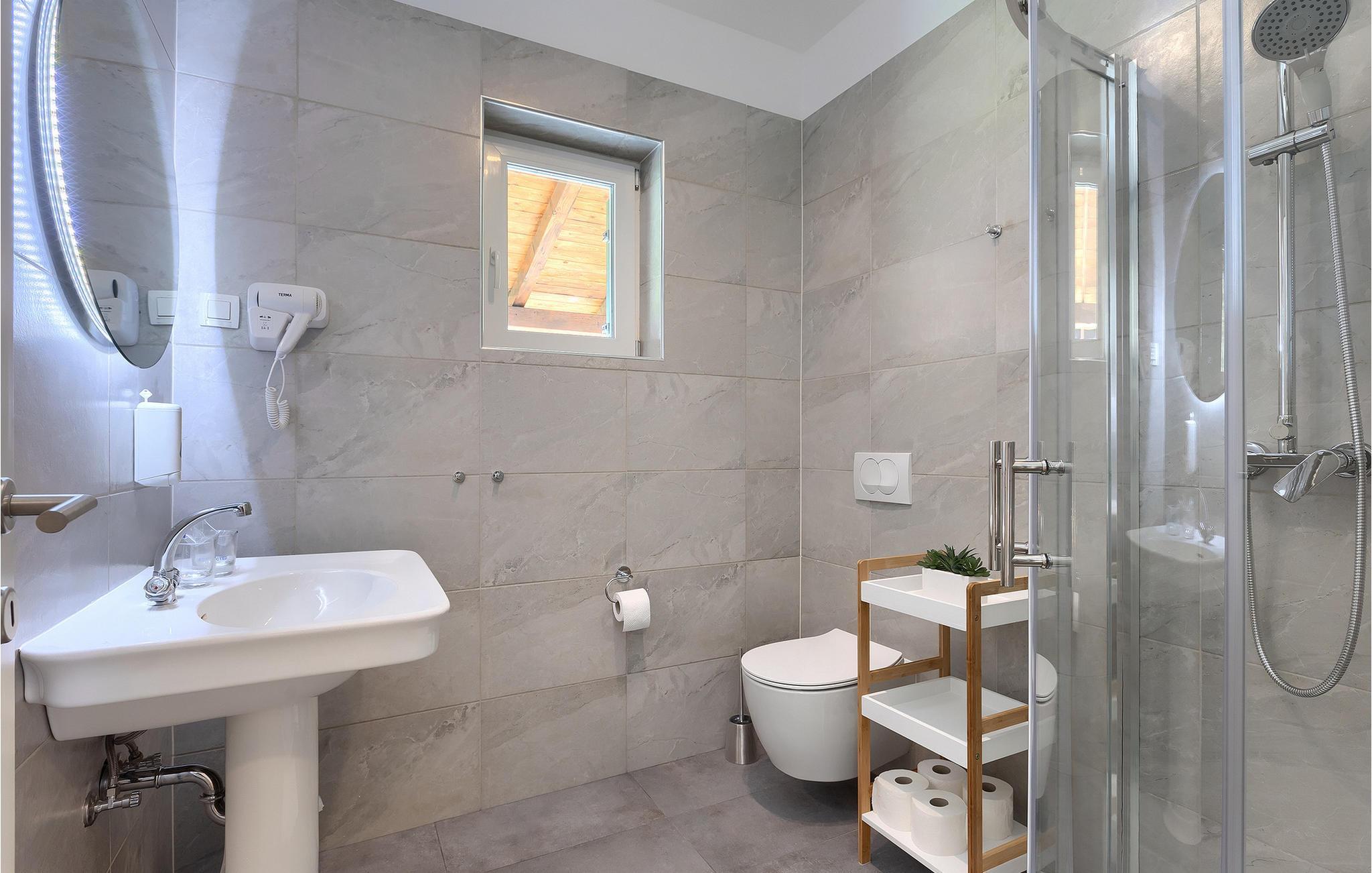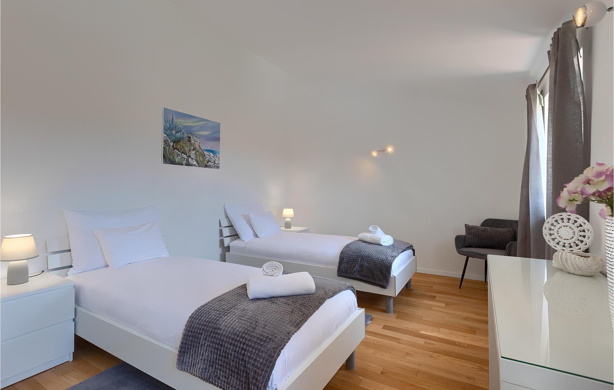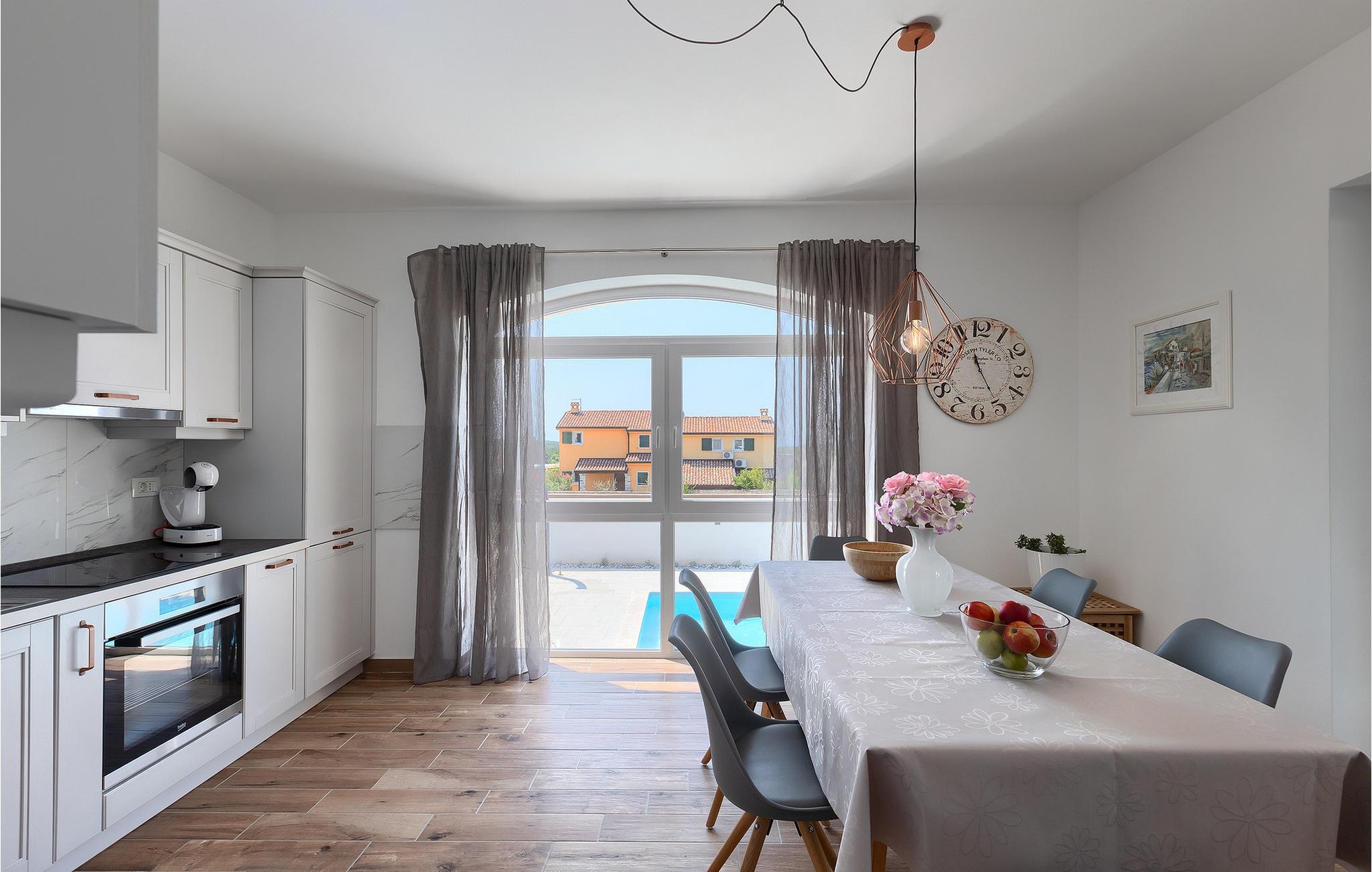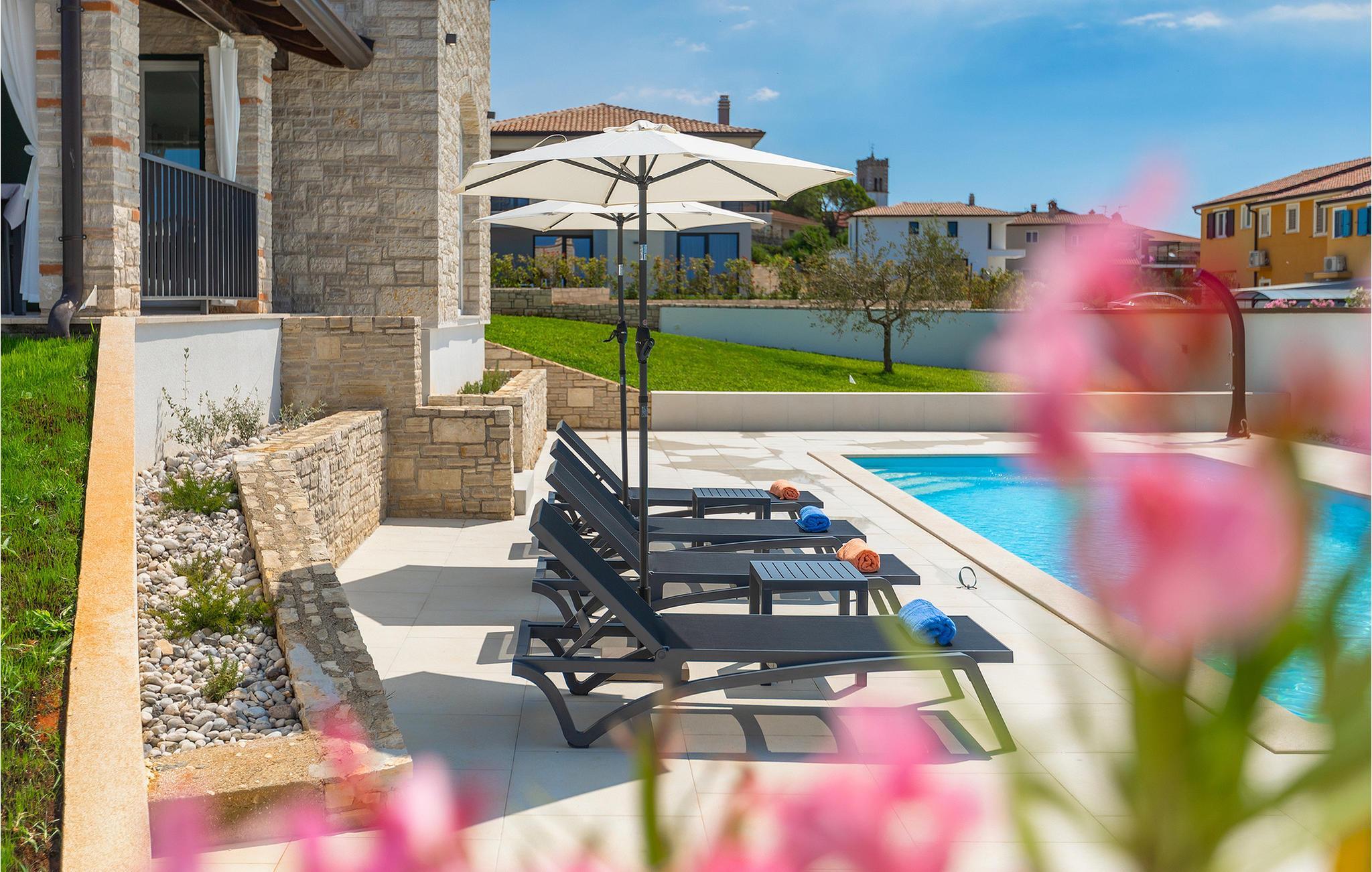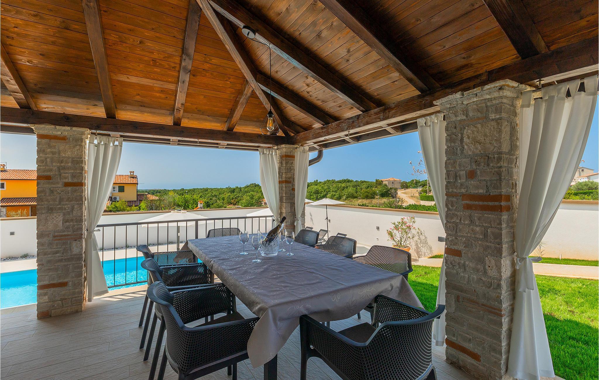 Die traumhafte Villa Victoria Brtonigla ist eine wahre Oase, in der Sie Ruhe und Entspannung fernab des stressigen Alltags finden. Der 40m2 große erfrischende Pool wird Ihnen gleich bei Ankunft an der Villa ins Auge fallen. Sie werden der Verlockung nur schwer widerstehen können, gleich ins kühle Wasser zu springen. Der Pool ist umgeben von bequemen Sonnenliegen, auf denen Sie die istrische Sonne genießen werden, während Sie den Kindern beim Spielen im Garten zusehen oder in Ihrer Lieblingszeitschrift blättern. Im Exterieur des Hauses wird jeder seinen Lieblingsplatz finden. Die überdachte Terrasse mit Sommerküche und großem Esstisch wird wahrscheinlich der Ort sein, an dem Sie beim Essen der frisch am Grill zubereiteten Gerichte Ihre Ausflüge in die Region planen werden. Von der Terrasse aus gelangen Sie direkt in den offenen, klimatisierten Wohnbereich mit Wohn- und Essbereich sowie einer voll ausgestatteten Küche. Eines der Schlafzimmer finden Sie ebenfalls im Erdgeschoss. Dieses Schlafzimmer mit Doppelbett hat ein eigenes Badezimmer und Zugang zu einer eigenen kleinen Terrasse. Eine separate Gästetoilette und ein Waschraum mit Waschmaschine und Trockner vervollständigen diese Ebene. Auf der oderen Etage versprechen 3 weitere komfortable Schlafzimmer erholsame Nächte. Eines der Schlafzimmer verfügt über ein eigenes Badezimmer, die anderen beiden Schlafzimmer teilen sich ein separates Bad. Eines dieser Schlafzimmer hat zwei Einzelbetten, die anderen Zimmer haben Doppelbetten.