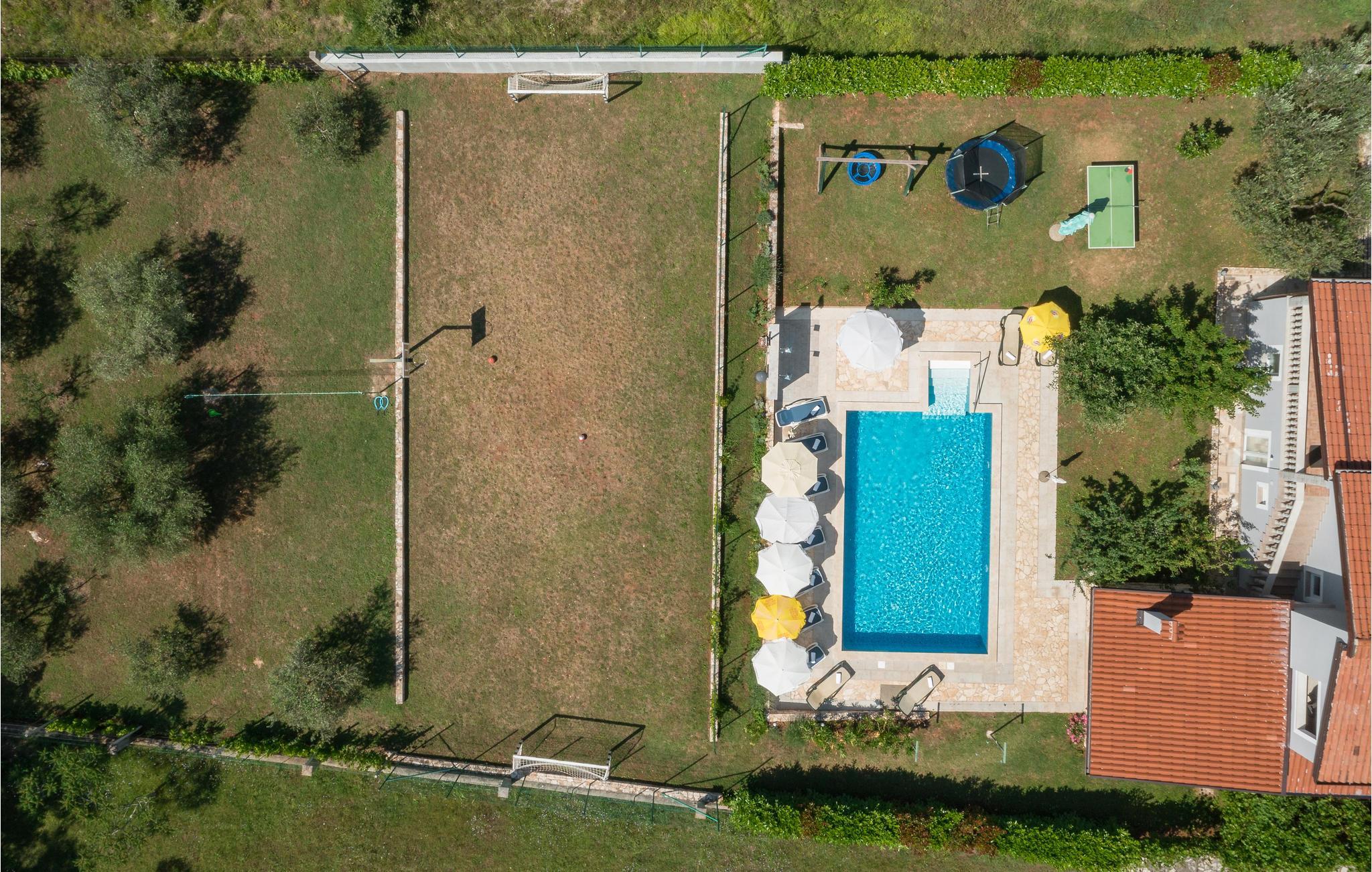 Im Ort Gamboci, nicht weit von der Stadt Buje entfernt, befindet sich diese schöne Haushälfte mit eigenem umzäuntem Garten der besonders für ein unbeschwertes Rumspielen von Kindern geeignet ist. Das Interieur erstreckt sich über das Erdgeschoss und das Obergeschoss. Am zur Verfügung gestellten Grill können Sie leckere Mahlzeiten zubereiten und unvergessliche Augenblicke mit Ihren Liebsten verbringen. Empfehlenswert ist ein Besuch der Küstenstädte Porec, Rovinj und Pula die im Laufe der Sommermonate mit verschiedenen Veranstaltungen für Unterhaltung sorgen. Lernen Sie die Kultur und Mentalität dieser Gegenden kennen und kosten Sie traditionelle Spezialitäten.