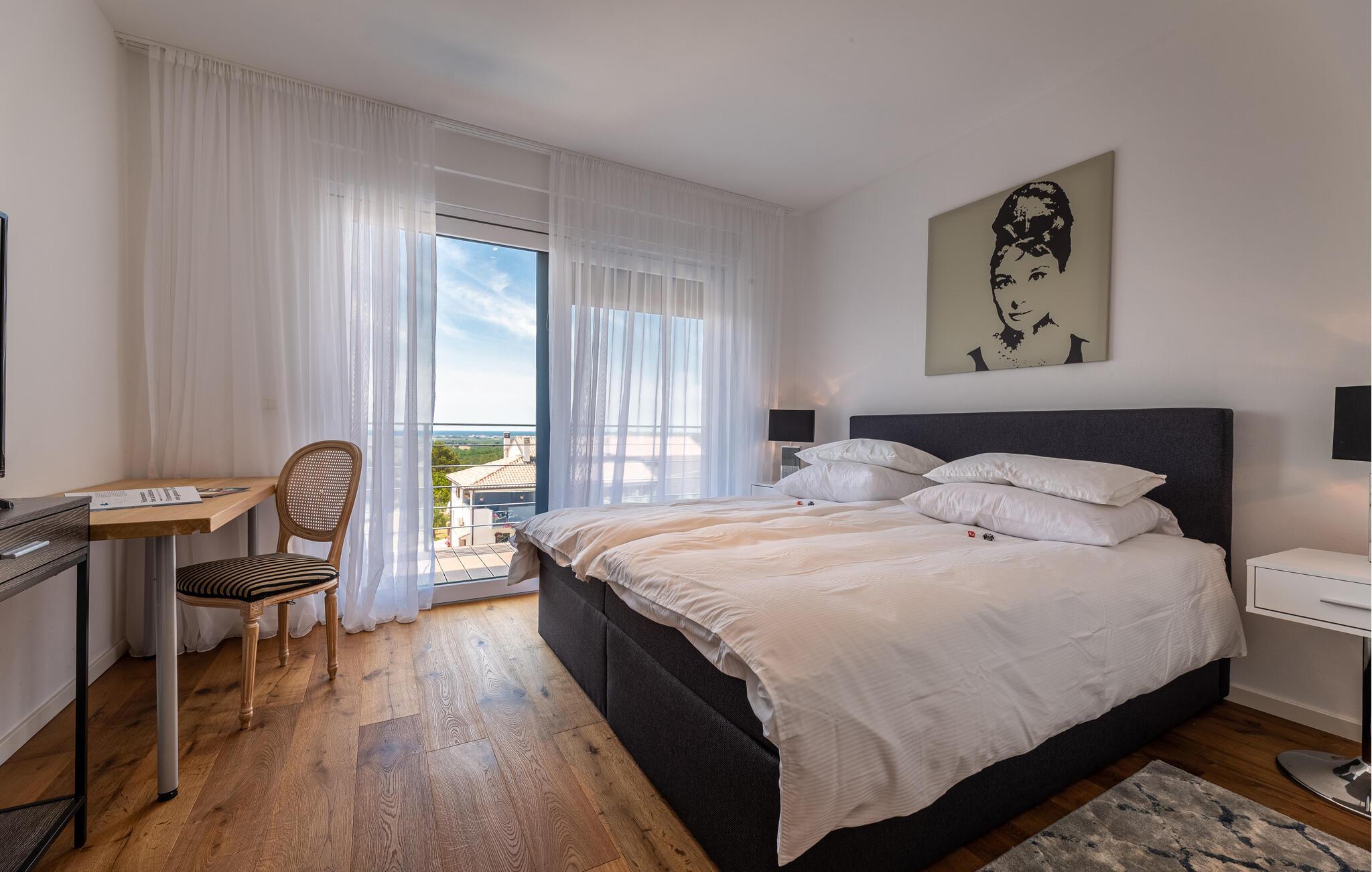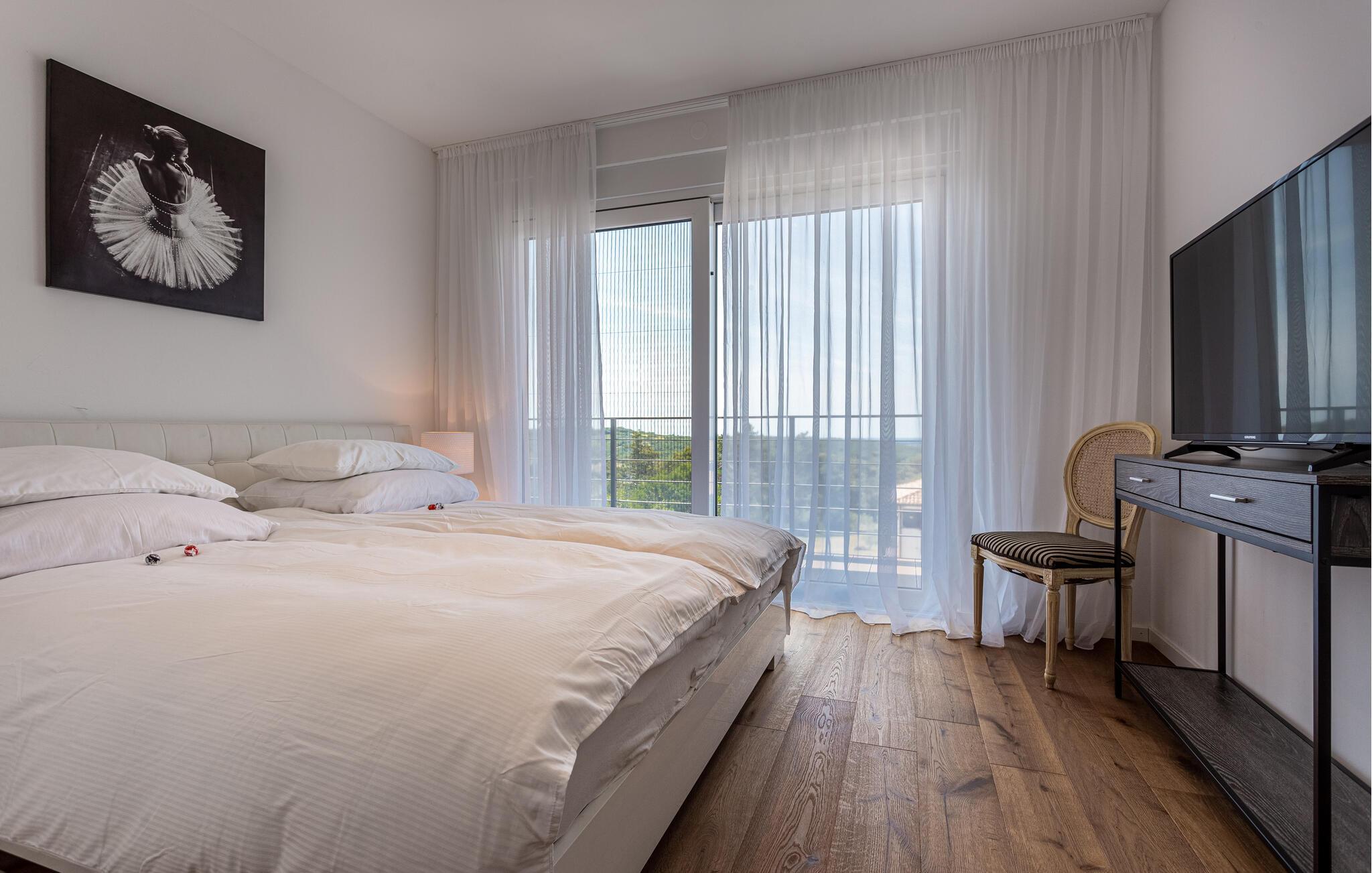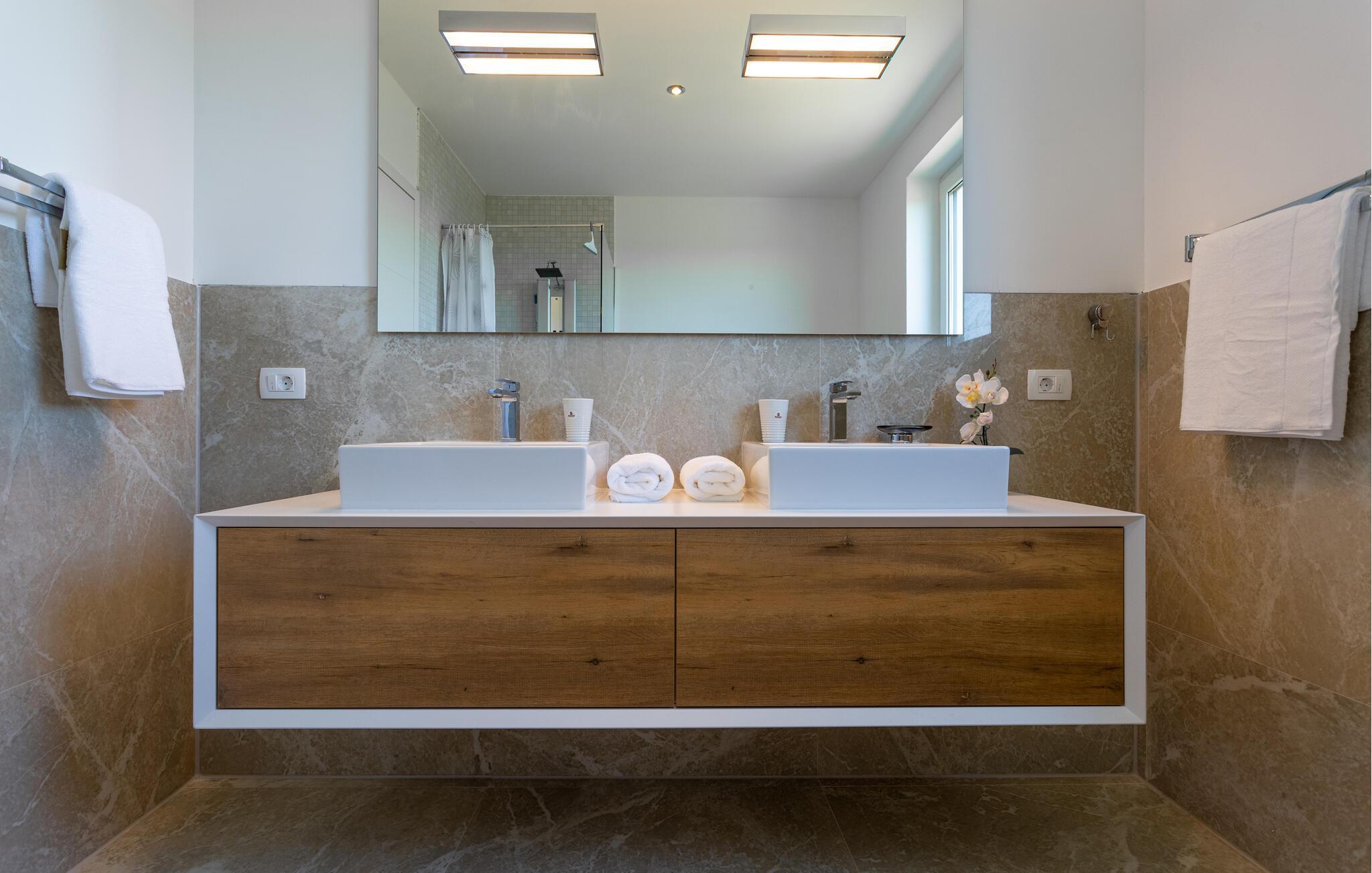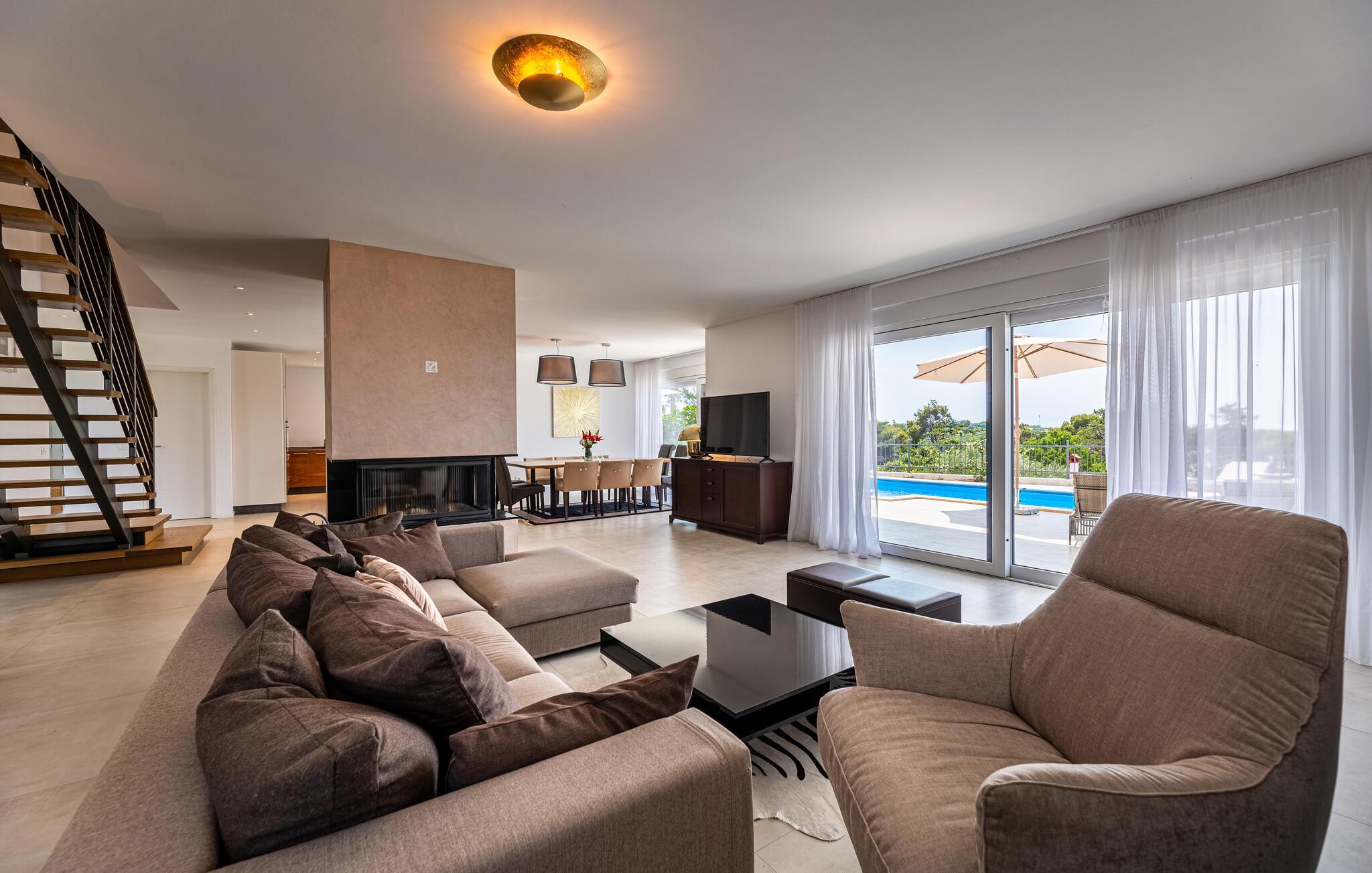 Freuen Sie sich auf Ihren Urlaub in diesem voll ausgestatteten Haus in moderner Bauweise. Das geräumige Ferienhaus bietet Ihnen auf zwei Etagen Komfort, Wohlbefinden und ansprechendes Design und somit eine wahre Wohlfühloase schafft. Das Zusammenspiel aus hellen und dunklen Farben sowie Holz strahlen Eleganz und ein großartiges Wohnambiente aus, in dem Sie zur Ruhe kommen können. Egal ob gemütliche Kaminabende bei einem unterhaltsamen Film oder vielen Sonnenstunden im Garten beim Sonnen und Baden, Sie können hier einfach die Seele baumeln lassen und vom Balkon die Weitsicht über die Landschaft Istriens, bis hin zum Meer.