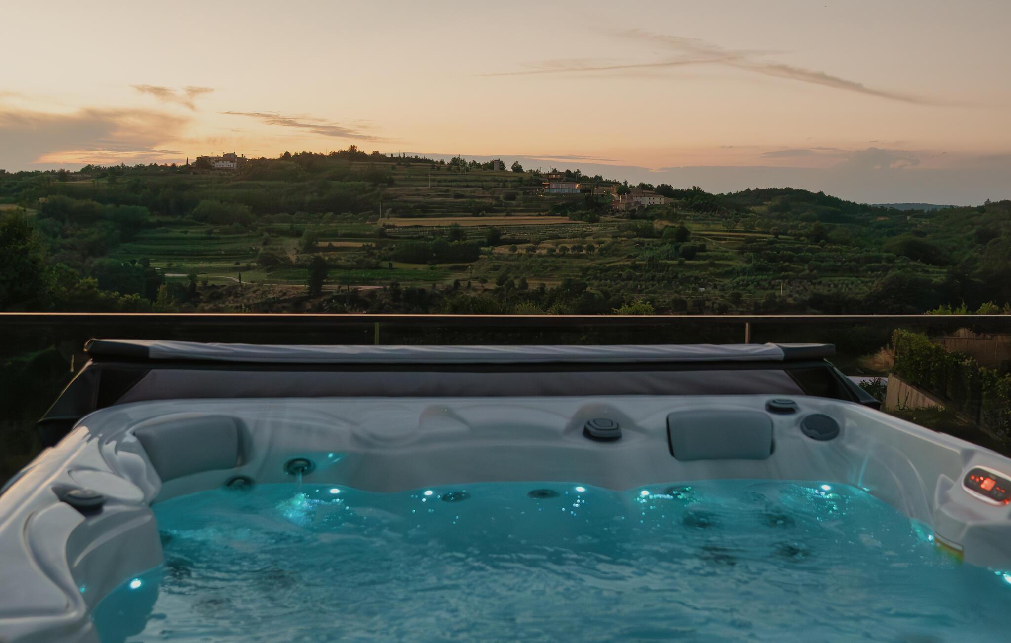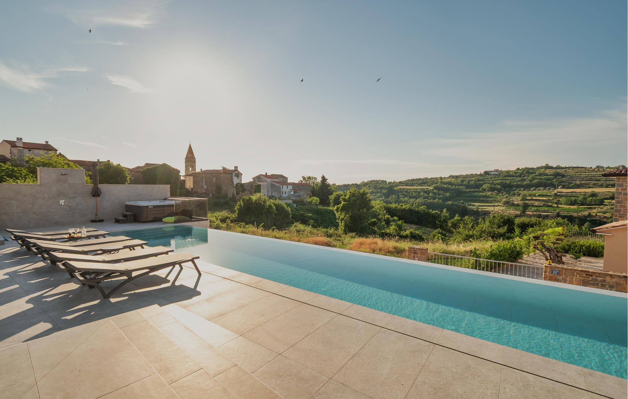 Von Ihrer schönen, weitläufigen Terrasse genießen Sie einen beruhigenden Blick auf die malerische Landschaft, den Sie beim Sonnenbaden am herrlichen Infinity-Pool oder im Whirlpool auf sich wirken lassen können. Entfachen Sie abends den Grill und freuen Sie sich auf eine stimmungsvolle Atmosphäre am beleuchteten Pool.