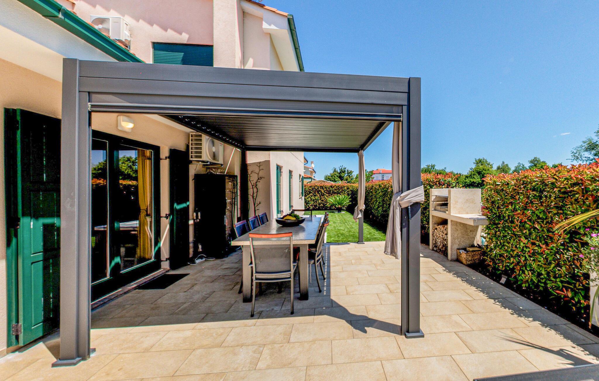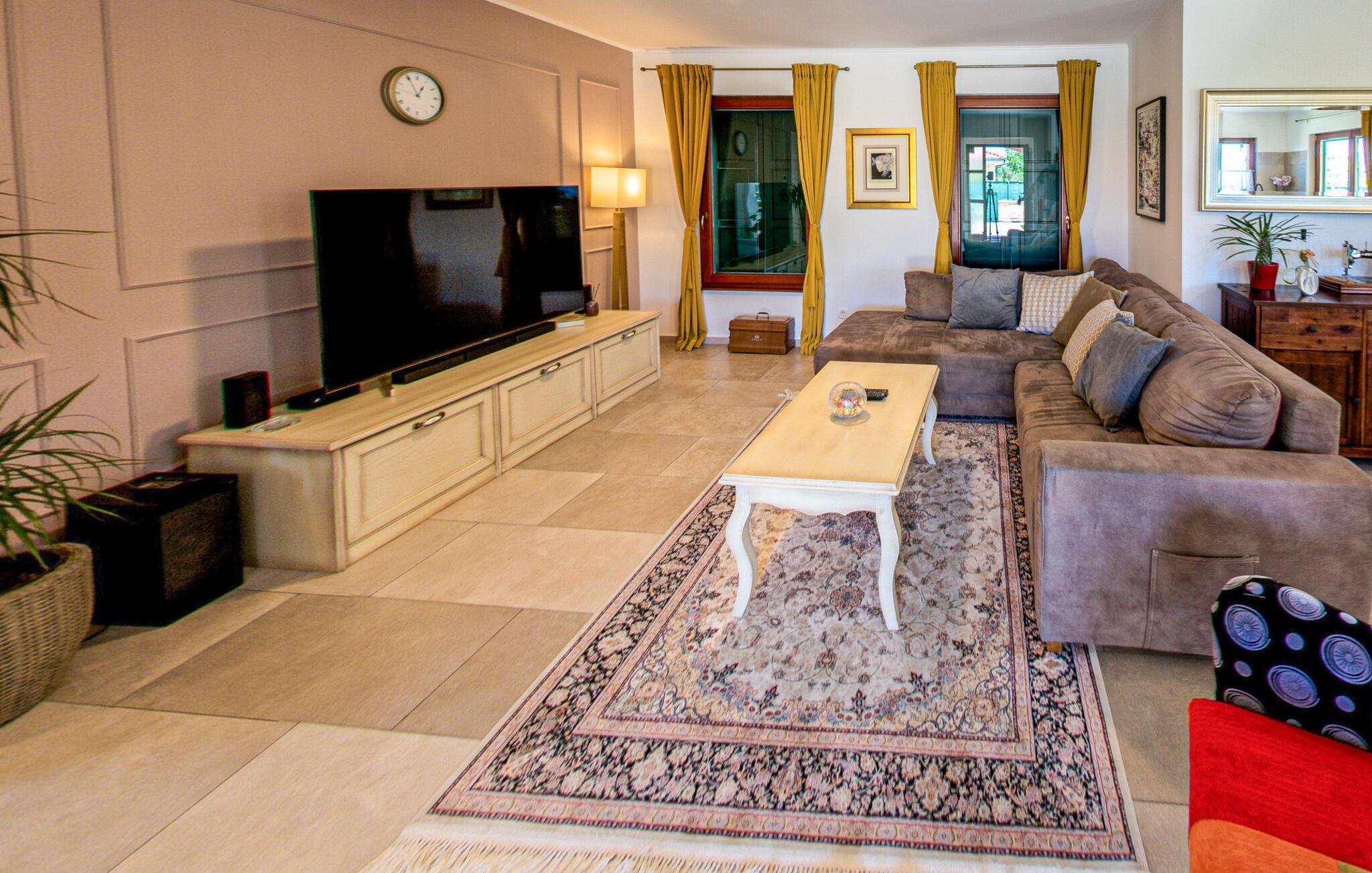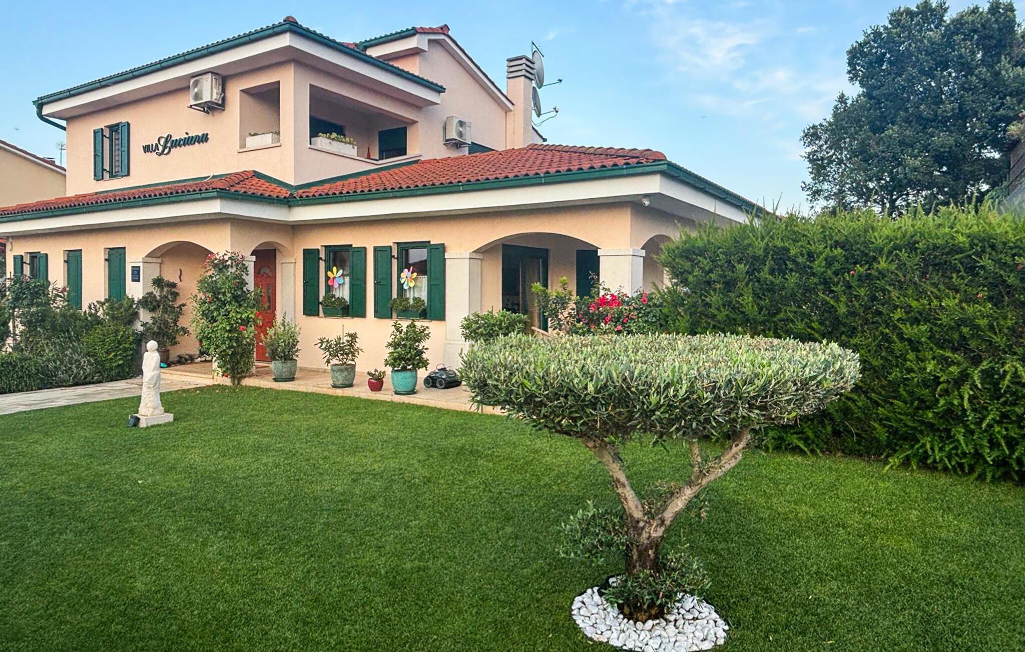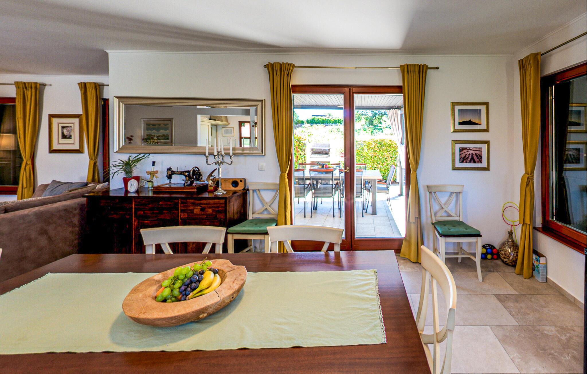 In diesem Ferienhaus schaffen Modernität und Gemütlichkeit eine ebenso einladende wie entspannte Atmosphäre. Helle, großzügige Räume, elegantes Mobiliar und liebevolle Details sorgen für ein Ambiente, in dem Sie schnell zur Ruhe kommen können. Vertiefen Sie sich auf dem bequemen Sofa in ein gutes Buch oder kochen Sie gemeinsam in der modernen Küche und lassen Sie den Abend bei einem Glas Wein ausklingen. Oder genießen Sie einfach den einzigartigen Blick auf das Meer und die Dolomiten sowie auf drei Länder: Kroatien, Slowenien und Italien.