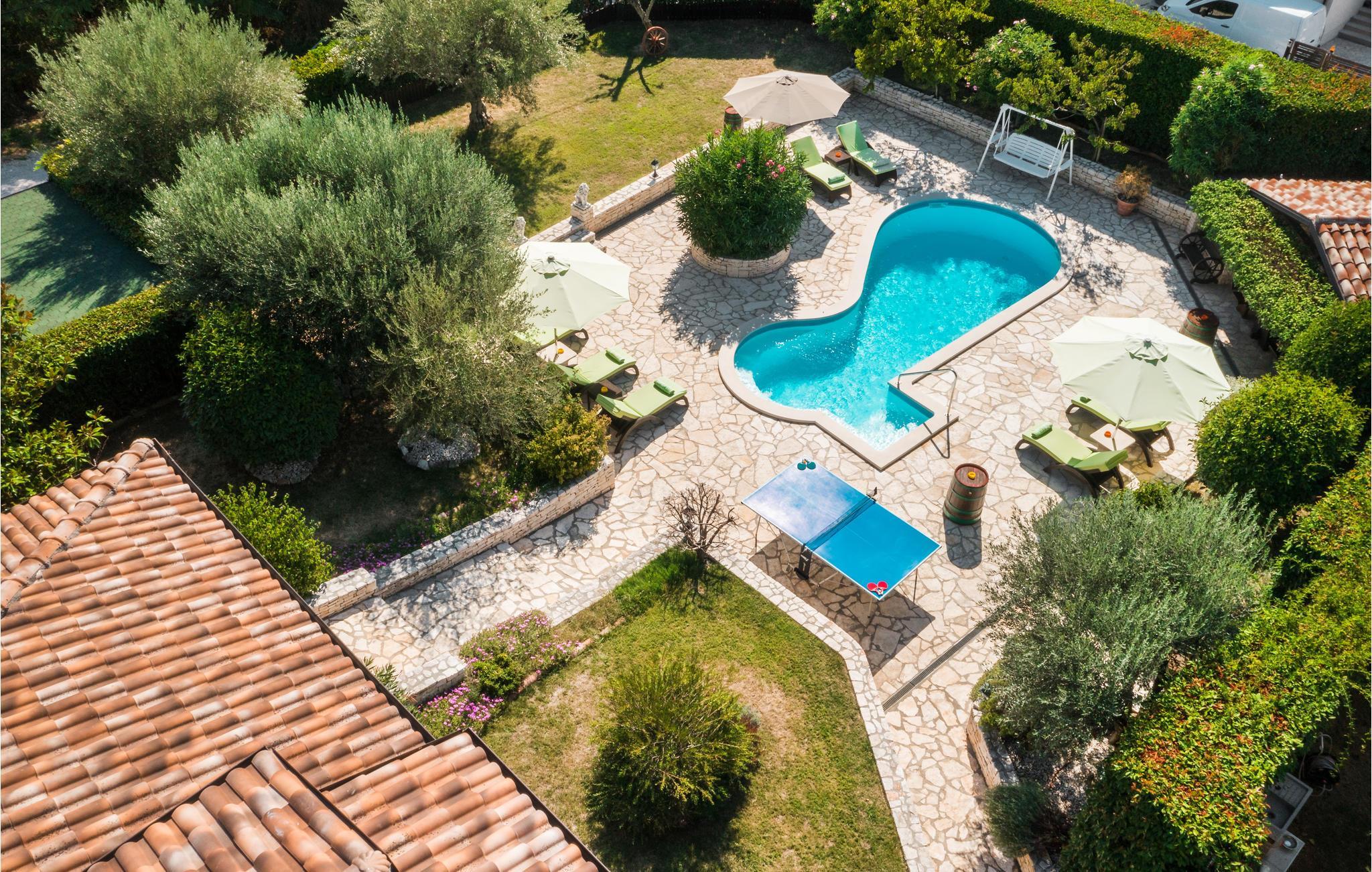 Das schöne Ferienhaus mit vielen rustikalen Bauelemente bietet Ihnen den idealen Ort für Ihren Familienurlaub. Hier können Sie sich gemeinsam entspannen und die unterschiedlichen Räume erkunden. Es wird Ihnen viel geboten, denn Sie können sich sowohl stundenlang im Haus, z.B. in der Bar mit Billardtisch oder im geselligen Raum mit offenem Holzofen aufhalten. Auch schöne Terrassen und Balkone geben Ihnen die Möglichkeit, sich abseits vom Trubel der Familie, mit einem Buch, zurückzuziehen. Der Garten bietet Ihnen, neben einem erfrischenden Bad im Swimmingpool, auch Spielspaß. Eine Tischtennisplatte lädt Sie ein, ein Familienturnier zu veranstalten.