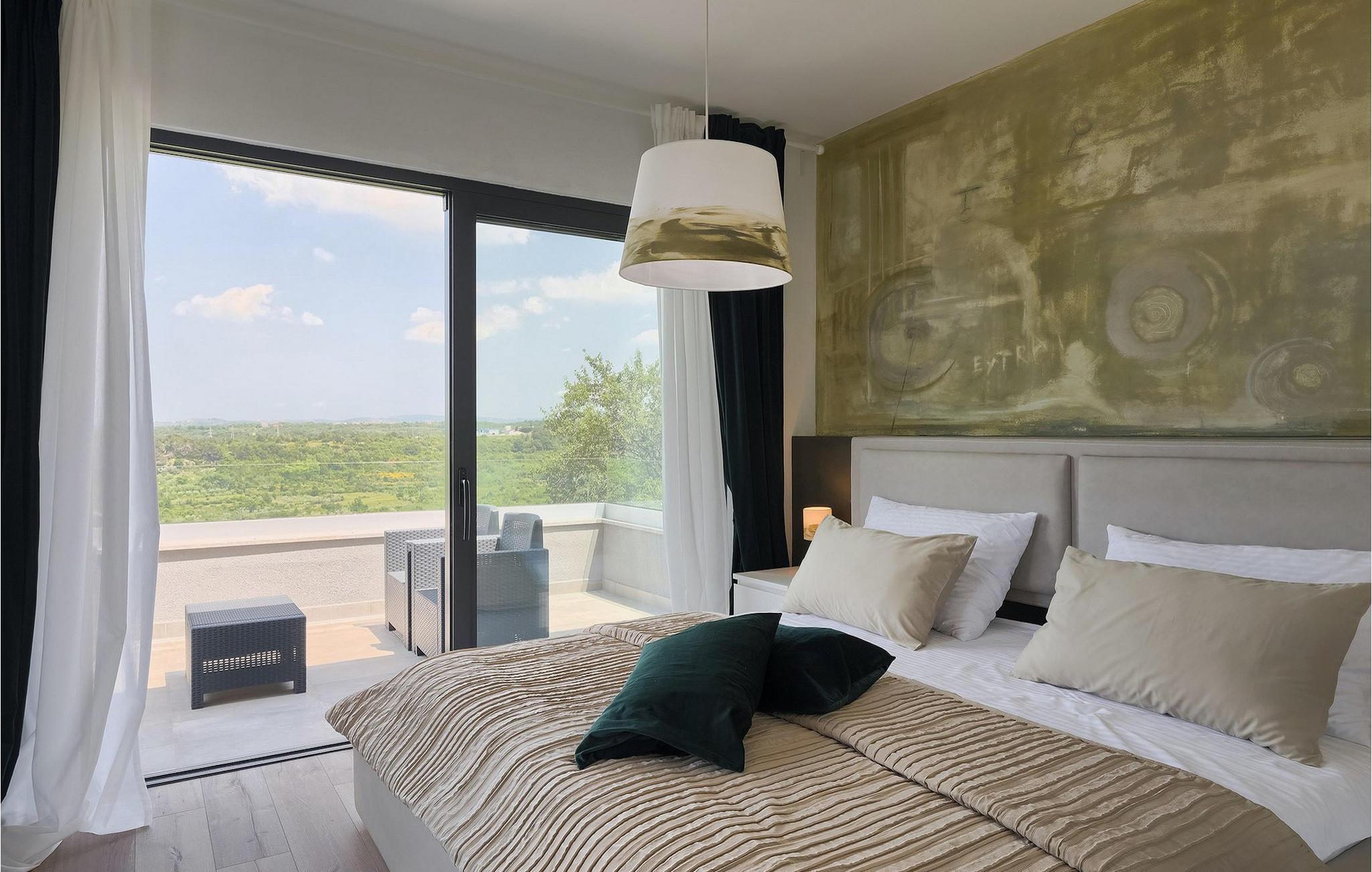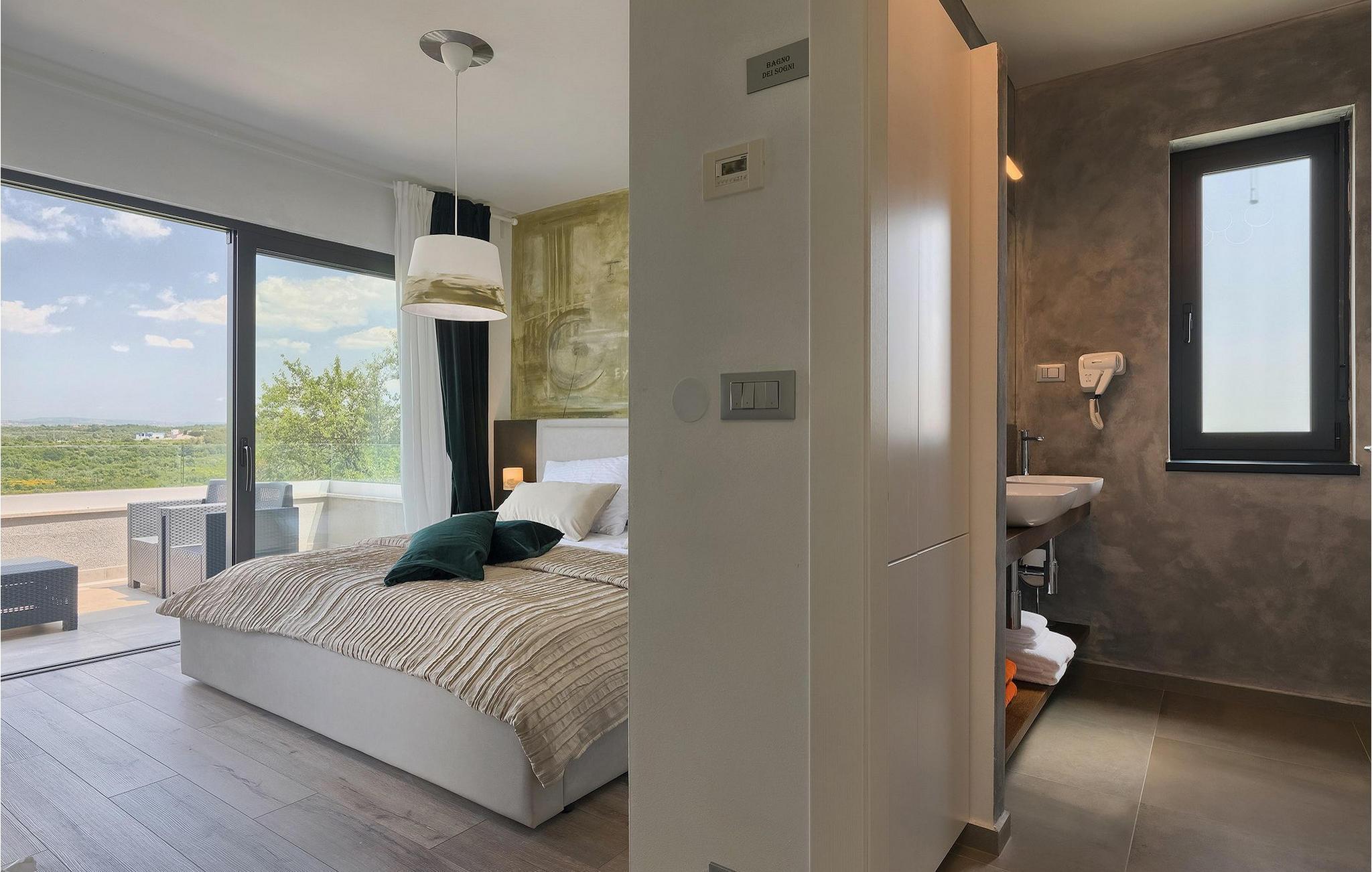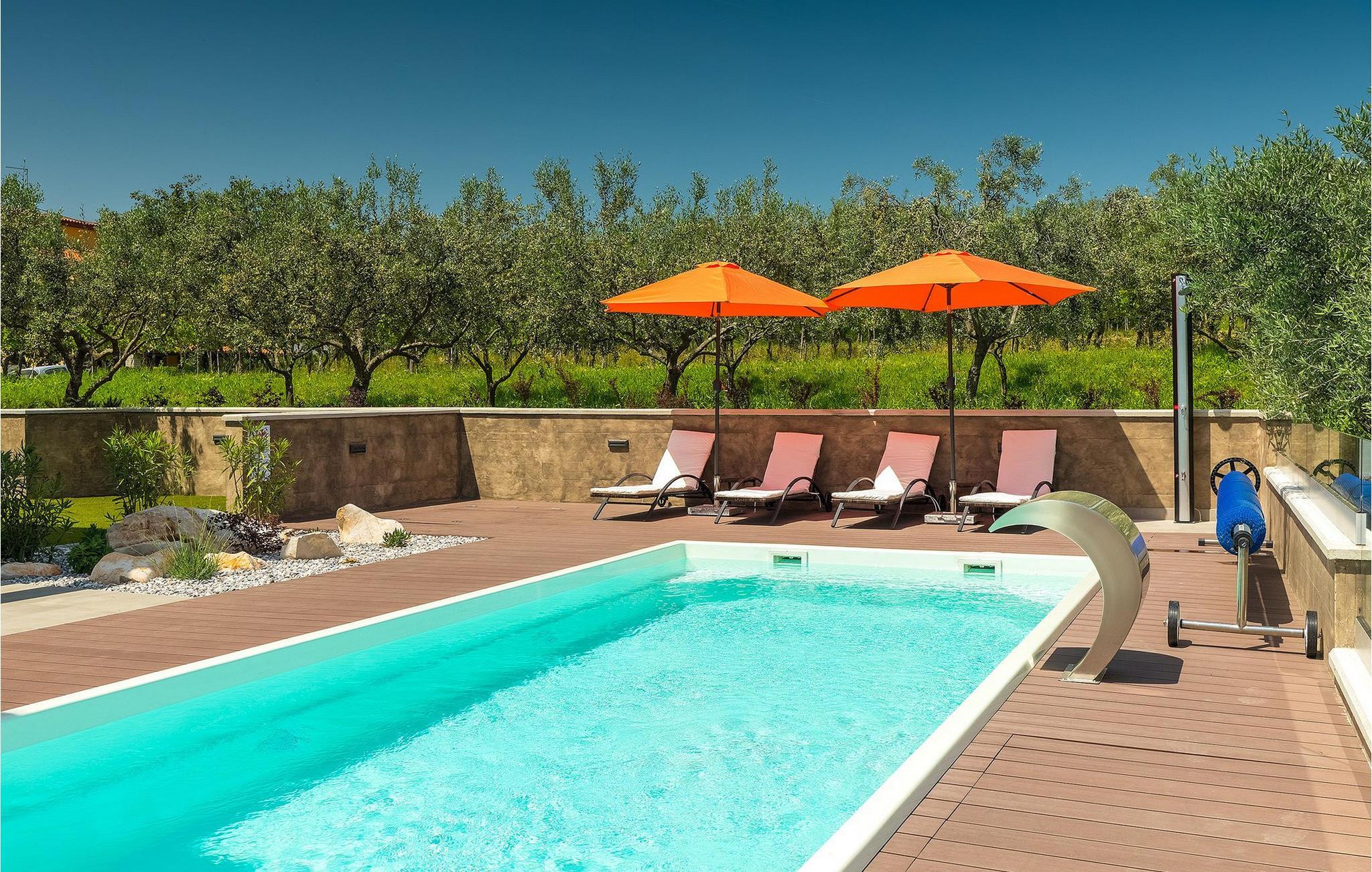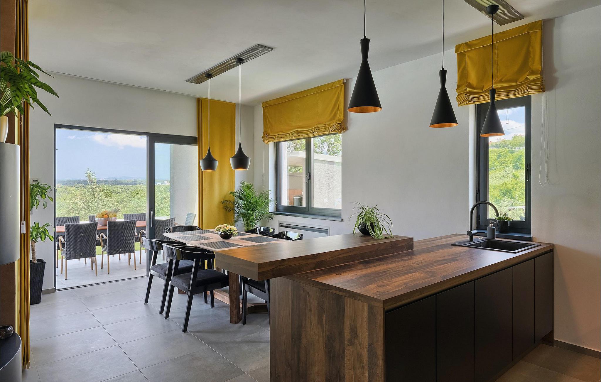 Dieses wunderschöne Anwesen befindet sich am Rande des schönen Buje in Istrien und ist eine moderne Villa mit 4 Schlafzimmern, die perfekt für 8 Personen geeignet ist. Sie befindet sich auf einem 615 m2 großen Grundstück und bietet einen privaten Parkplatz für 3 Autos und einen komplett umzäunten Garten. Im hinteren Teil des Gartens befindet sich der einladende private Pool, in dem Sie sich entspannen und den Blick auf die Altstadt von Buje und die Ruhe der umliegenden Natur genießen können. Im Poolbereich stehen Ihnen Liegestühle, eine Lounge zum Sitzen und Sonnenschirme zur Verfügung. Es gibt auch einen überdachten Teil auf der Terrasse mit einem Esstisch, an dem sich die ganze Gruppe versammeln und die Mahlzeiten auf dem Gasgrill im Freien genießen kann. Von dort haben Sie direkten Zugang zum Inneren der Villa. Hier befindet sich die völlig ausgestattete Küche mit Essbereich und das Wohnzimmer mit einem großen Sofa und Kamin. Ein Schlafzimmer und ein Badezimmer mit Dusche befinden sich im Erdgeschoss. Die restlichen 3 Schlafzimmer und 2 Badezimmer befinden sich in der oberen Etage und haben jeweils Zugang zur Terrasse - der perfekte Ort, um Ihren Tag mit Blick auf die grüne Umgebung zu beginnen! Alle Schlafzimmer sind klimatisiert und verfügen über ein Doppelbett. Die Villa ist in einem interessanten Stil mit viel Liebe zum Detail und einigen künstlerischen Gemälden an den Wänden eingerichtet. Dank der Lage der Villa, kann man Zentralistrien und die Küste Istriens leicht erreichen und erkunden. Kurz beschrieben, eine fablhafte Ferienvilla!Inmitten der bildschönen istrischen Landschaft, umgeben von zauberhafter Natur, befindet sich das historische Städtchen Buje, das schon in der Bronzezeit besiedelt wurde. Bereits vor ewigen Zeiten wurde dieses hügelige Gebiet mit Olivenfeldern bepflanzt, was bis heute unverändert geblieben ist. Die Lage, in der sich die Stadt befindet, garantiert eine ruhige und entspannende Atmosphäre, aber für diejenigen, die Lust haben, die Attraktionen nordwestlichen Istriens zu besichtigen, liegt Umag nur eine kurze Fahrt von Buje entfernt. Zahlreiche historische Sehenswürdigkeiten, 45km lange Küste, venezianische Häuser und barocke Kirchen sind nur ein Beispiel davon, was Umag seinen Besuchern bietet. In der Nähe von Novigrad und nur fünf Kilometer von der Küste entfernt, befindet sich der neueröffnete Aquapark Istralandia, der sowohl für Erwachsene als auch für Kinder geeignet ist. Zu den Highlights des Aquaparks zählen unterschiedliche Wasserrutschen, unter anderem die Free Fall Rutsche und die Familien Rafting Rutsche. Es ist unmöglich, in Istralandia nicht Spaß zu haben, da der Aquapark neben den Wasserrutschen auch Pools, Restaurants und verschiedene Animationsprogramme bietet.