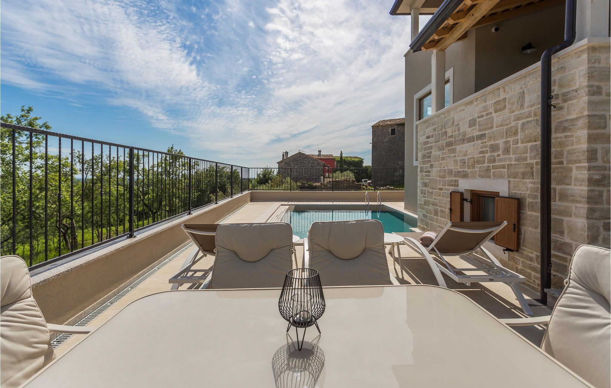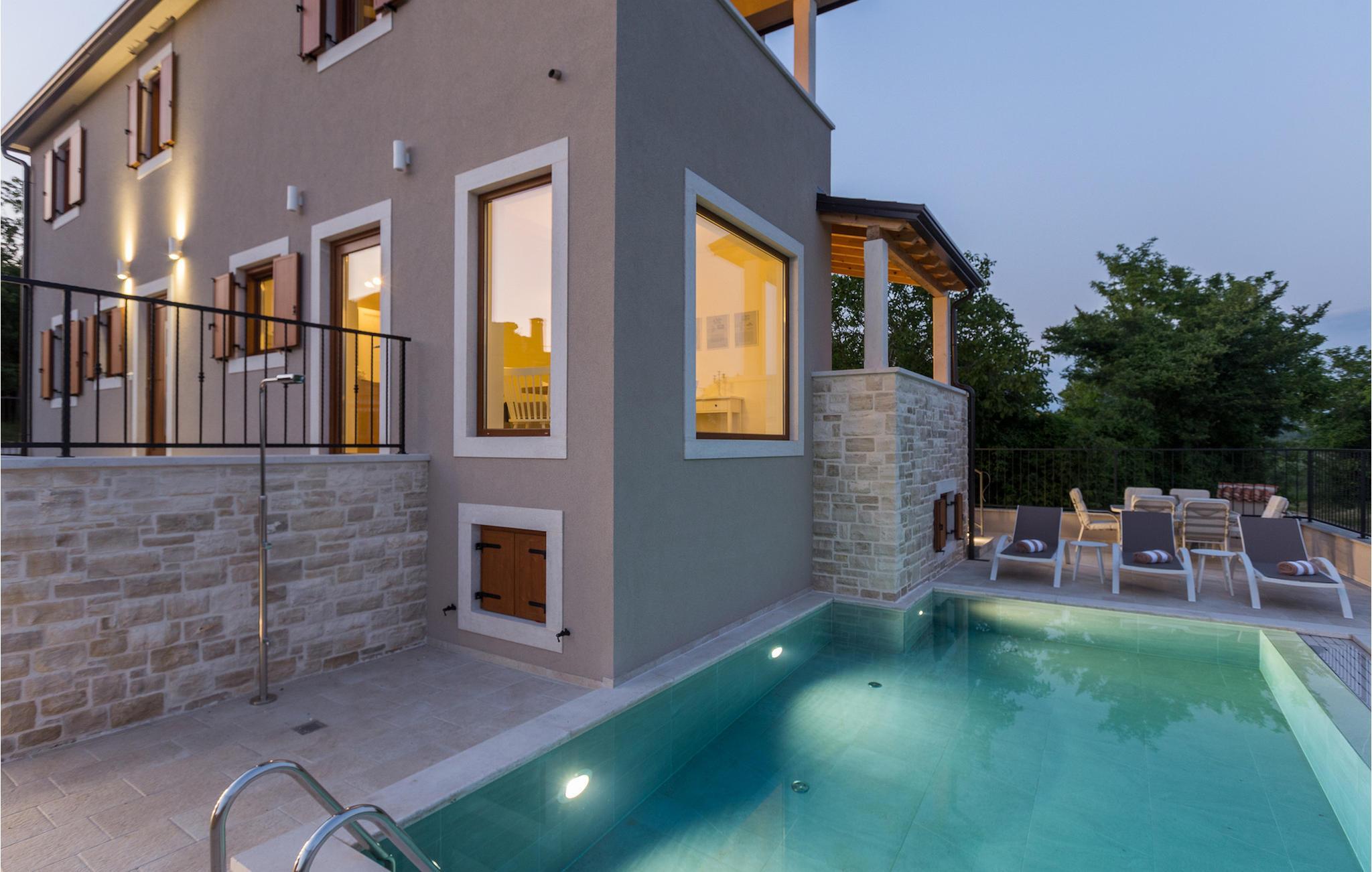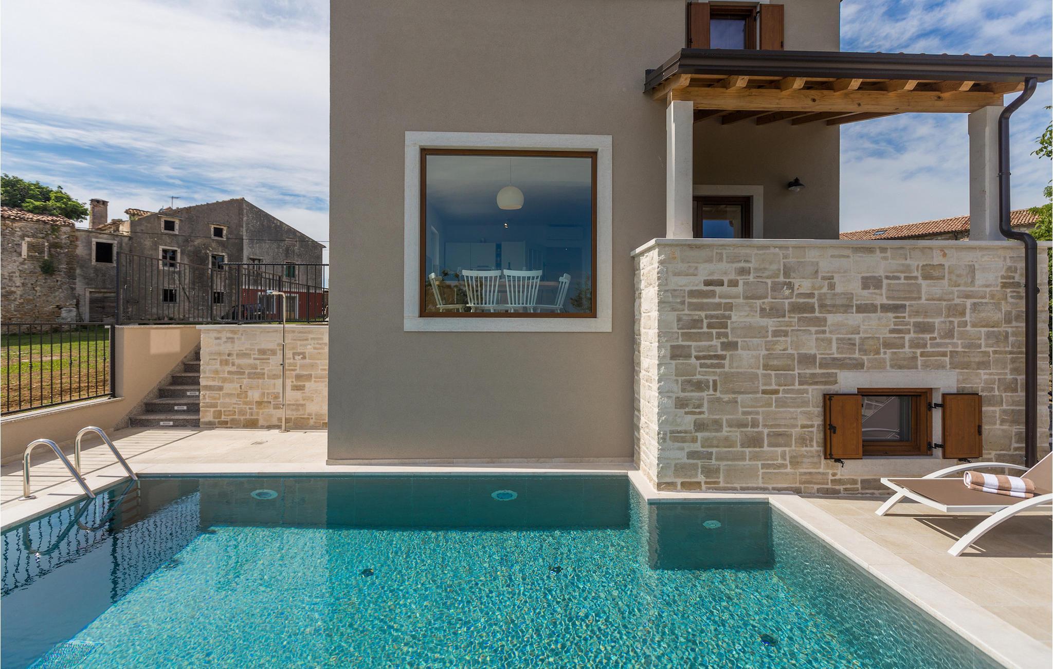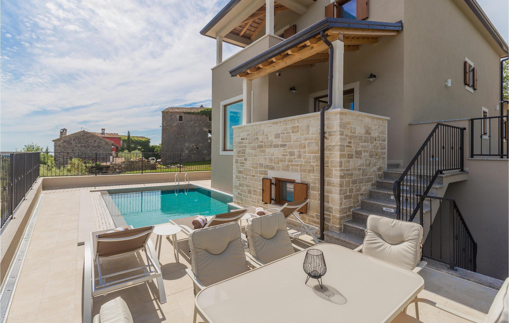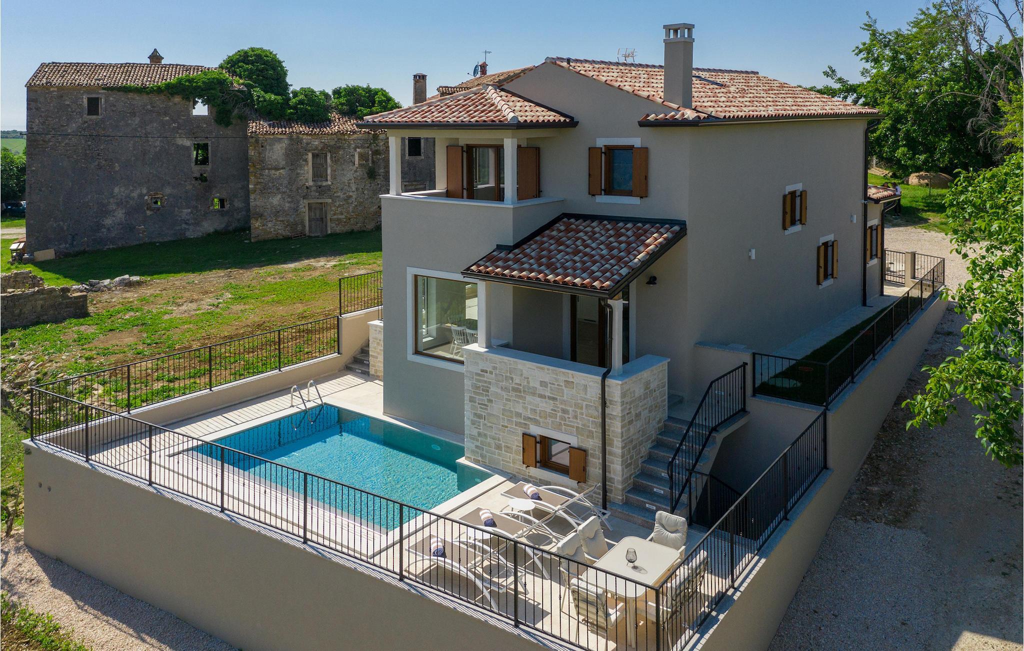 Die außergewöhnliche Villa Skarline befindet sich in dem kleinen Weiler Donje Baredine, in der Nähe der Stadt Buje. Die Villa ist von alten istrischen Häusern umgeben, die einst den Landbesitzern gehörten, was sie zu einem idealen Ort für alle macht, die sich für die istrische Geschichte und Architektur interessieren. Sie können einfach einen Moment anhalten, die Augen schließen und sich vorstellen, wie das Leben damals aussah. Mit einer Gesamtwohnfläche von 140 Quadratmetern bietet es Platz für bis zu 6 Personen in 3 warm eingerichteten Schlafzimmern. Das Erdgeschoss besteht aus einem gemütlichen Wohnzimmer mit Essecke, einer gut ausgestatteten Küche, einer Gästetoilette und einem Schlafzimmer mit Doppelbett und eigenem Bad. Im Obergeschoss befinden sich eine kleine Bibliothek, die als Entspannungsecke dient, und zwei Schlafzimmer mit eigenem Bad. Von einem der Schlafzimmer aus haben Sie Zugang zu einem Balkon, von dem aus Sie die herrliche Aussicht auf das Tal und die umliegenden Hügel genießen können. Vor der Villa befindet sich ein einladender Poolbereich mit Sonnenliegen, wo Sie sich bei einem erfrischenden Getränk entspannen können. Die Villa verfügt über einen Holzkohlegrill, auf dem Sie köstliche Mahlzeiten zubereiten und Ihren Freunden servieren können. Die Villa ist perfekt für einen erholsamen Urlaub mit Ihrer Familie oder Freunden, also verpassen Sie nicht diese Gelegenheit und buchen Sie Villa Skarline mit jetzt.Die Villa Skarline befindet sich in dem kleinen Dorf Donje Baredine, in der Nähe der charmanten Stadt Buje. Das Dorf hat einige der spektakulärsten Landschaften und bietet einen majestätischen Blick auf das Meer, die umliegenden Hügel und das Tal des Flusses Mirna. Die Villa hat ihren Namen vom nahe gelegenen Naturpark Skarline. Die Villa Skarline ist ideal für einen ruhigen und entspannenden Urlaub, aber auch für diejenigen, die aktiv sein wollen. Es gibt viele Wander- und Radwege, die das Dorf mit verschiedenen interessanten Orten verbinden. Wenn Sie Istrien und die Villa Skarline als Ihr nächstes Urlaubsziel wählen, werden Sie es nicht bereuen. Die Villa befindet sich in der Nähe vieler Naturschönheiten und sehenswerter Orte, wie Groznjan, Motovun, Porec, Rovinj und vielen anderen, die Sie mit ihrer Geschichte und Architektur verzaubern werden. Istrien ist bekannt für seine gute Gastronomie, also versäumen Sie nicht, die vielen berühmten Winzer und Olivenölhersteller zu besuchen, die sich in der Nähe der Villa befinden. Probieren Sie die vielen köstlichen traditionellen Gerichte wie handgemachte istrische Pasta mit Trüffeln, istrisches Rindfleisch namens Boskarin und frische Austern aus dem Lim-Fjord.
