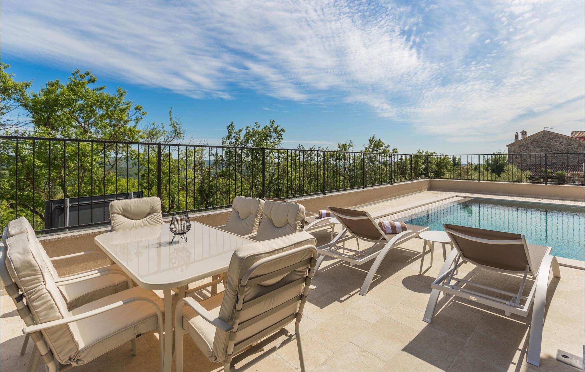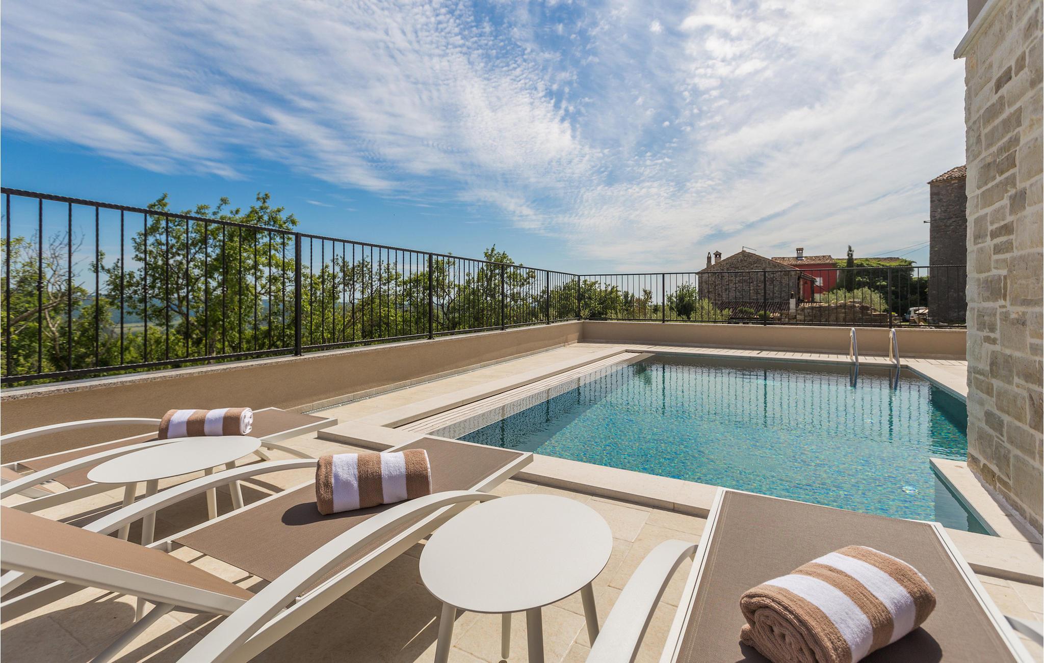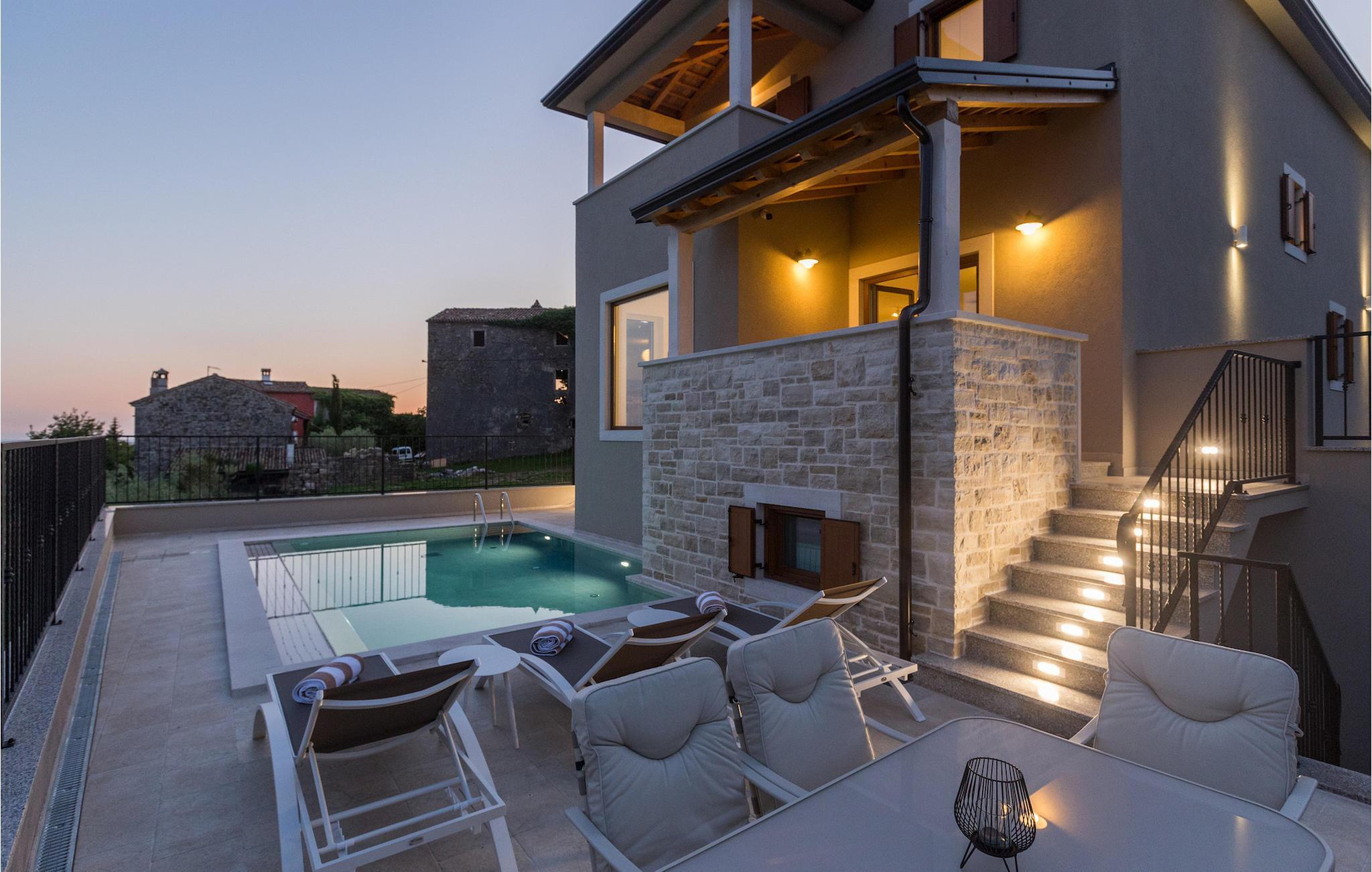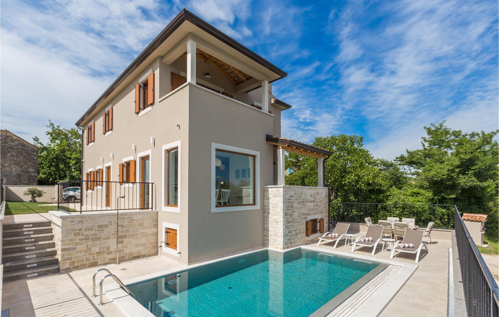 Die außergewöhnliche Villa Skarline befindet sich in dem kleinen Weiler Donje Baredine, in der Nähe der Stadt Buje. Die Villa ist von alten istrischen Häusern umgeben, die einst den Landbesitzern gehörten, was sie zu einem idealen Ort für alle macht, die sich für die istrische Geschichte und Architektur interessieren. Sie können einfach einen Moment anhalten, die Augen schließen und sich vorstellen, wie das Leben damals aussah. Mit einer Gesamtwohnfläche von 140 Quadratmetern bietet es Platz für bis zu 6 Personen in 3 warm eingerichteten Schlafzimmern. Das Erdgeschoss besteht aus einem gemütlichen Wohnzimmer mit Essecke, einer gut ausgestatteten Küche, einer Gästetoilette und einem Schlafzimmer mit Doppelbett und eigenem Bad. Im Obergeschoss befinden sich eine kleine Bibliothek, die als Entspannungsecke dient, und zwei Schlafzimmer mit eigenem Bad. Von einem der Schlafzimmer aus haben Sie Zugang zu einem Balkon, von dem aus Sie die herrliche Aussicht auf das Tal und die umliegenden Hügel genießen können. Vor der Villa befindet sich ein einladender Poolbereich mit Sonnenliegen, wo Sie sich bei einem erfrischenden Getränk entspannen können. Die Villa verfügt über einen Holzkohlegrill, auf dem Sie köstliche Mahlzeiten zubereiten und Ihren Freunden servieren können. Die Villa ist perfekt für einen erholsamen Urlaub mit Ihrer Familie oder Freunden, also verpassen Sie nicht diese Gelegenheit und buchen Sie Villa Skarline mit jetzt.Die Villa Skarline befindet sich in dem kleinen Dorf Donje Baredine, in der Nähe der charmanten Stadt Buje. Das Dorf hat einige der spektakulärsten Landschaften und bietet einen majestätischen Blick auf das Meer, die umliegenden Hügel und das Tal des Flusses Mirna. Die Villa hat ihren Namen vom nahe gelegenen Naturpark Skarline. Die Villa Skarline ist ideal für einen ruhigen und entspannenden Urlaub, aber auch für diejenigen, die aktiv sein wollen. Es gibt viele Wander- und Radwege, die das Dorf mit verschiedenen interessanten Orten verbinden. Wenn Sie Istrien und die Villa Skarline als Ihr nächstes Urlaubsziel wählen, werden Sie es nicht bereuen. Die Villa befindet sich in der Nähe vieler Naturschönheiten und sehenswerter Orte, wie Groznjan, Motovun, Porec, Rovinj und vielen anderen, die Sie mit ihrer Geschichte und Architektur verzaubern werden. Istrien ist bekannt für seine gute Gastronomie, also versäumen Sie nicht, die vielen berühmten Winzer und Olivenölhersteller zu besuchen, die sich in der Nähe der Villa befinden. Probieren Sie die vielen köstlichen traditionellen Gerichte wie handgemachte istrische Pasta mit Trüffeln, istrisches Rindfleisch namens Boskarin und frische Austern aus dem Lim-Fjord.