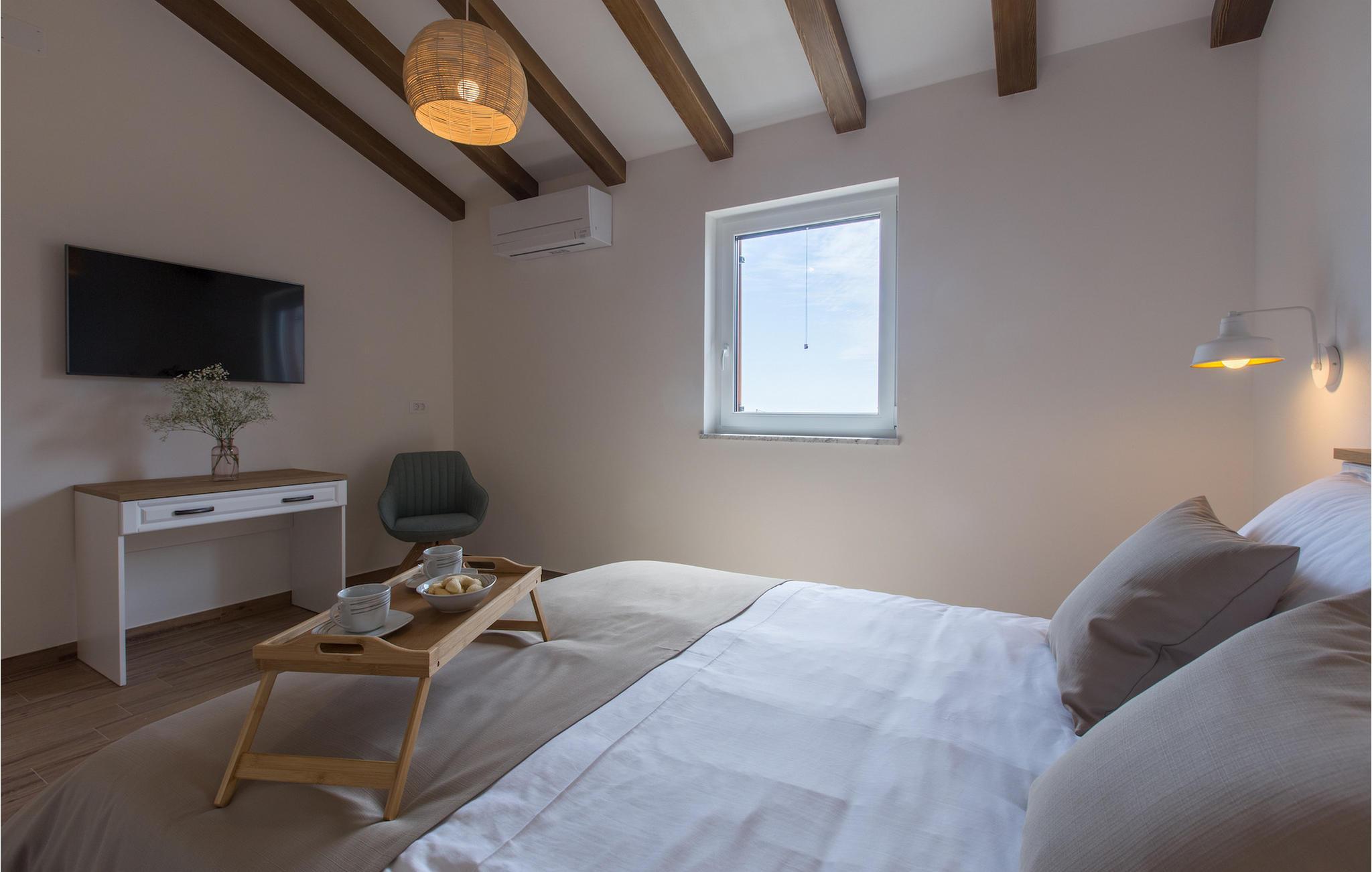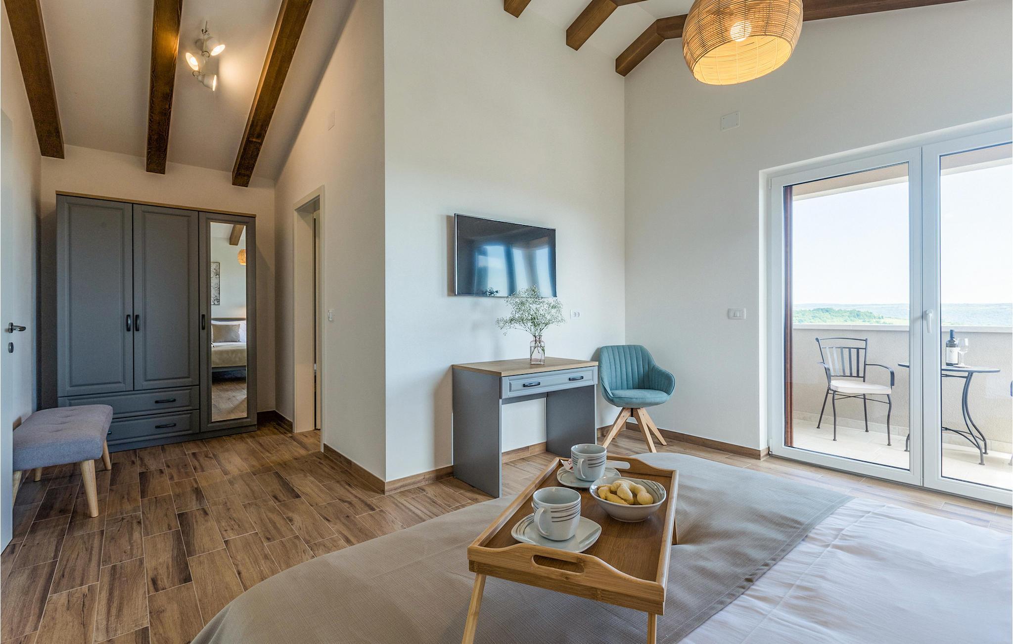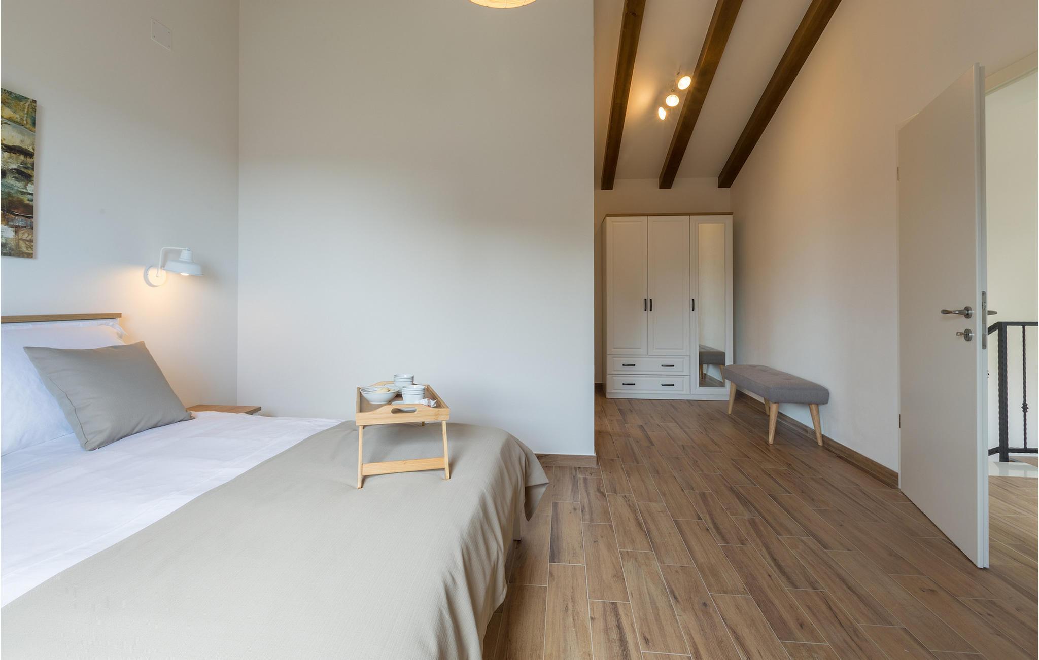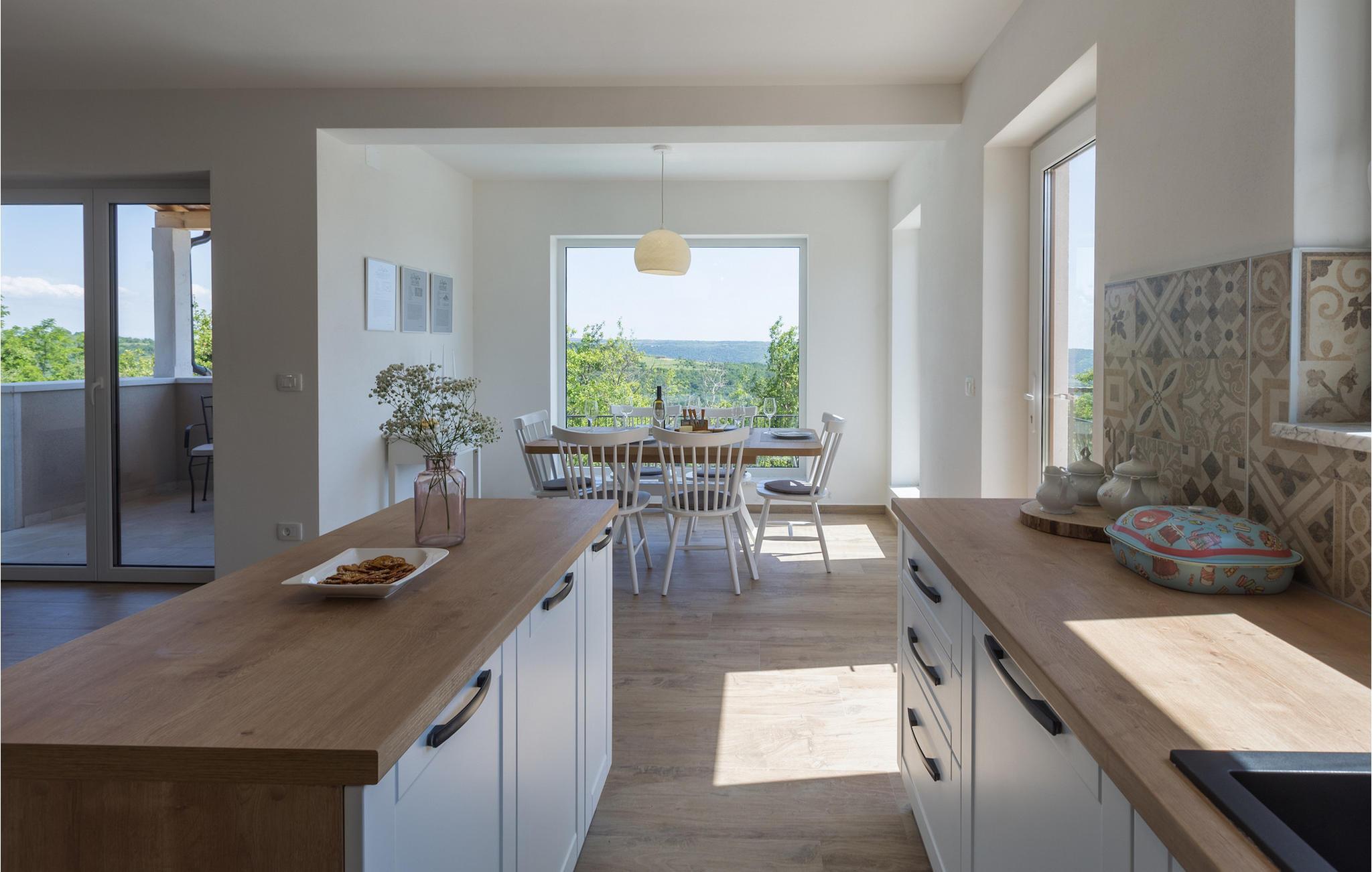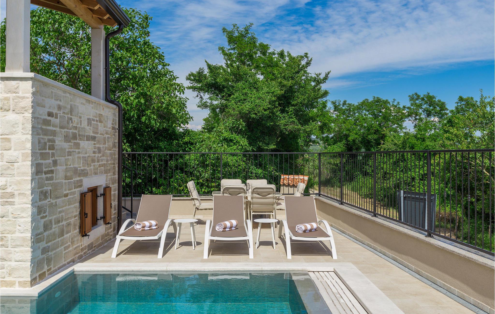 Die außergewöhnliche Villa Skarline befindet sich in dem kleinen Weiler Donje Baredine, in der Nähe der Stadt Buje. Die Villa ist von alten istrischen Häusern umgeben, die einst den Landbesitzern gehörten, was sie zu einem idealen Ort für alle macht, die sich für die istrische Geschichte und Architektur interessieren. Sie können einfach einen Moment anhalten, die Augen schließen und sich vorstellen, wie das Leben damals aussah. Mit einer Gesamtwohnfläche von 140 Quadratmetern bietet es Platz für bis zu 6 Personen in 3 warm eingerichteten Schlafzimmern. Das Erdgeschoss besteht aus einem gemütlichen Wohnzimmer mit Essecke, einer gut ausgestatteten Küche, einer Gästetoilette und einem Schlafzimmer mit Doppelbett und eigenem Bad. Im Obergeschoss befinden sich eine kleine Bibliothek, die als Entspannungsecke dient, und zwei Schlafzimmer mit eigenem Bad. Von einem der Schlafzimmer aus haben Sie Zugang zu einem Balkon, von dem aus Sie die herrliche Aussicht auf das Tal und die umliegenden Hügel genießen können. Vor der Villa befindet sich ein einladender Poolbereich mit Sonnenliegen, wo Sie sich bei einem erfrischenden Getränk entspannen können. Die Villa verfügt über einen Holzkohlegrill, auf dem Sie köstliche Mahlzeiten zubereiten und Ihren Freunden servieren können. Die Villa ist perfekt für einen erholsamen Urlaub mit Ihrer Familie oder Freunden, also verpassen Sie nicht diese Gelegenheit und buchen Sie Villa Skarline mit jetzt.Die Villa Skarline befindet sich in dem kleinen Dorf Donje Baredine, in der Nähe der charmanten Stadt Buje. Das Dorf hat einige der spektakulärsten Landschaften und bietet einen majestätischen Blick auf das Meer, die umliegenden Hügel und das Tal des Flusses Mirna. Die Villa hat ihren Namen vom nahe gelegenen Naturpark Skarline. Die Villa Skarline ist ideal für einen ruhigen und entspannenden Urlaub, aber auch für diejenigen, die aktiv sein wollen. Es gibt viele Wander- und Radwege, die das Dorf mit verschiedenen interessanten Orten verbinden. Wenn Sie Istrien und die Villa Skarline als Ihr nächstes Urlaubsziel wählen, werden Sie es nicht bereuen. Die Villa befindet sich in der Nähe vieler Naturschönheiten und sehenswerter Orte, wie Groznjan, Motovun, Porec, Rovinj und vielen anderen, die Sie mit ihrer Geschichte und Architektur verzaubern werden. Istrien ist bekannt für seine gute Gastronomie, also versäumen Sie nicht, die vielen berühmten Winzer und Olivenölhersteller zu besuchen, die sich in der Nähe der Villa befinden. Probieren Sie die vielen köstlichen traditionellen Gerichte wie handgemachte istrische Pasta mit Trüffeln, istrisches Rindfleisch namens Boskarin und frische Austern aus dem Lim-Fjord.