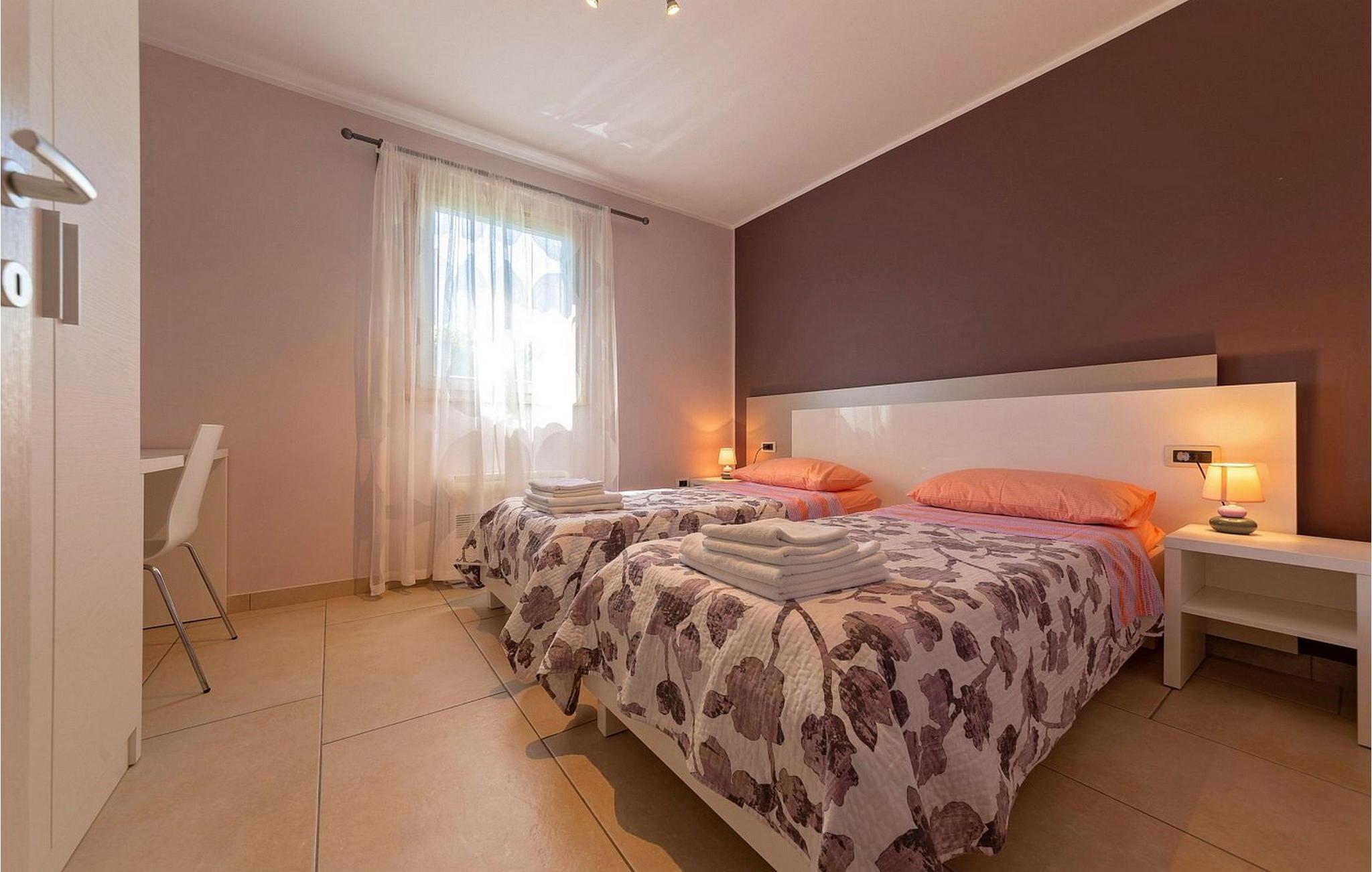 Villa mit Pool für 8 Personen mit einer gesamt Wohnfläche von 150 qm auf zwei komplett klimatisierte Etagen. Im Erdgeschoss des Hauses befindet sich ein geräumiger Wohnraum mit Sitzgarnitur und Esstisch, voll ausgestattete Küche, ein Doppelzimmer mit Einzelbetten und Dusche/WC. Auf dem ersten Stock befinden sich ein Doppelzimmer mit Einzelbetten und Balkon, Dusche/WC im Flur, ein Doppelzimmer mit Doppelbett und Dusche/WC und ein Doppelzimmer mit Doppelbett, Dusche/WC und Balkon.