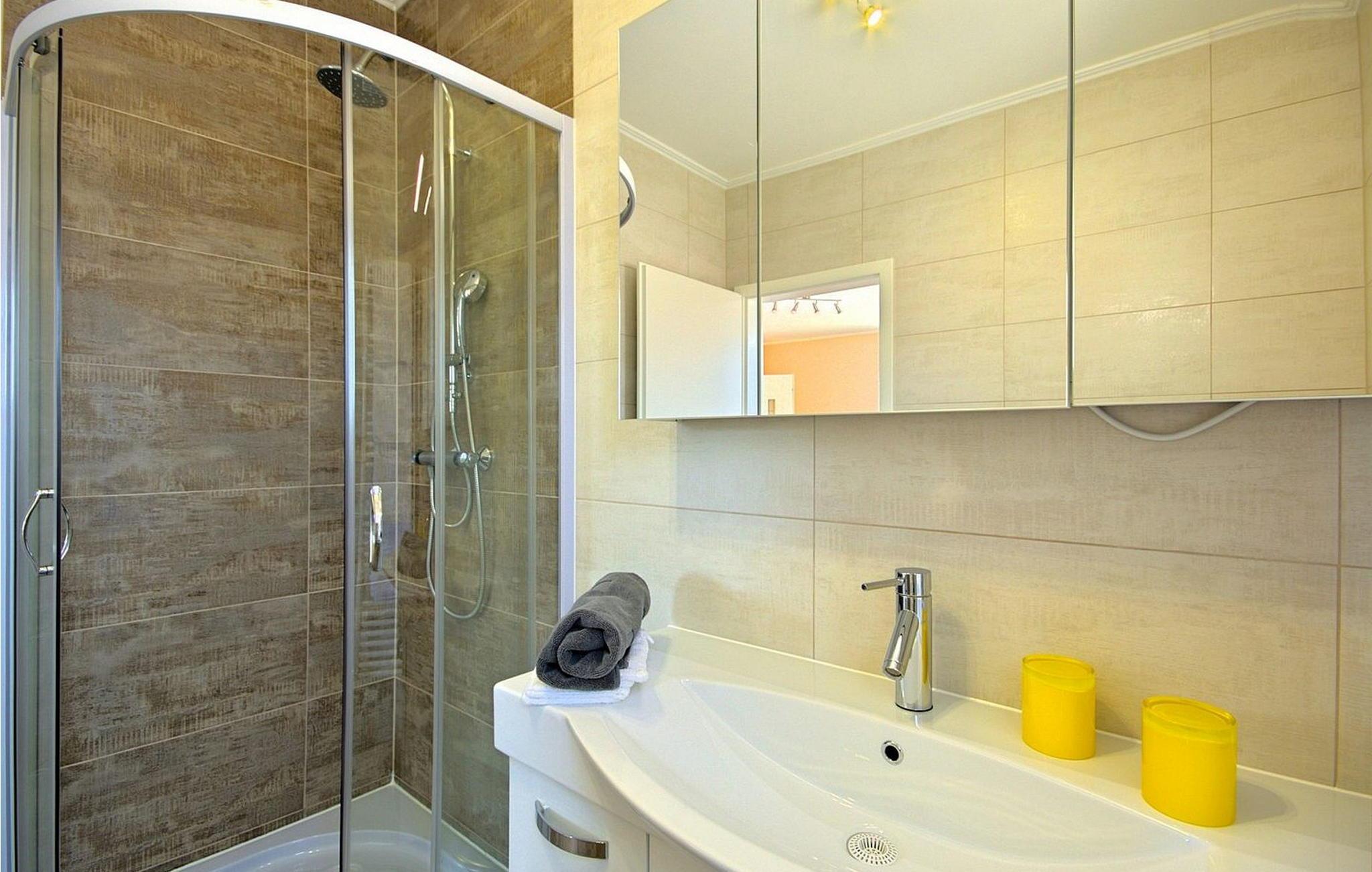 Badezimmer (nr. 1) - WC. Warmes und kaltes Wasser. Dusche