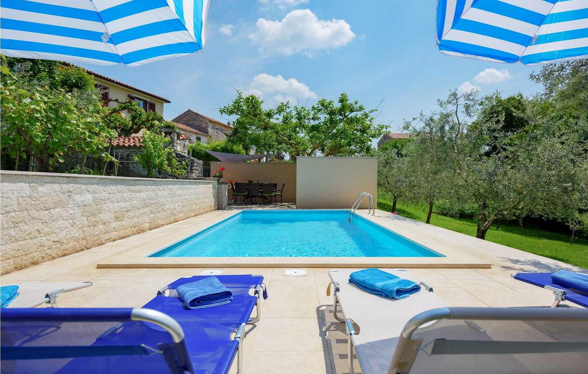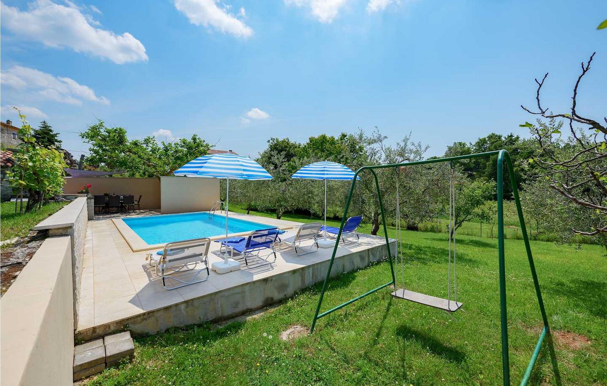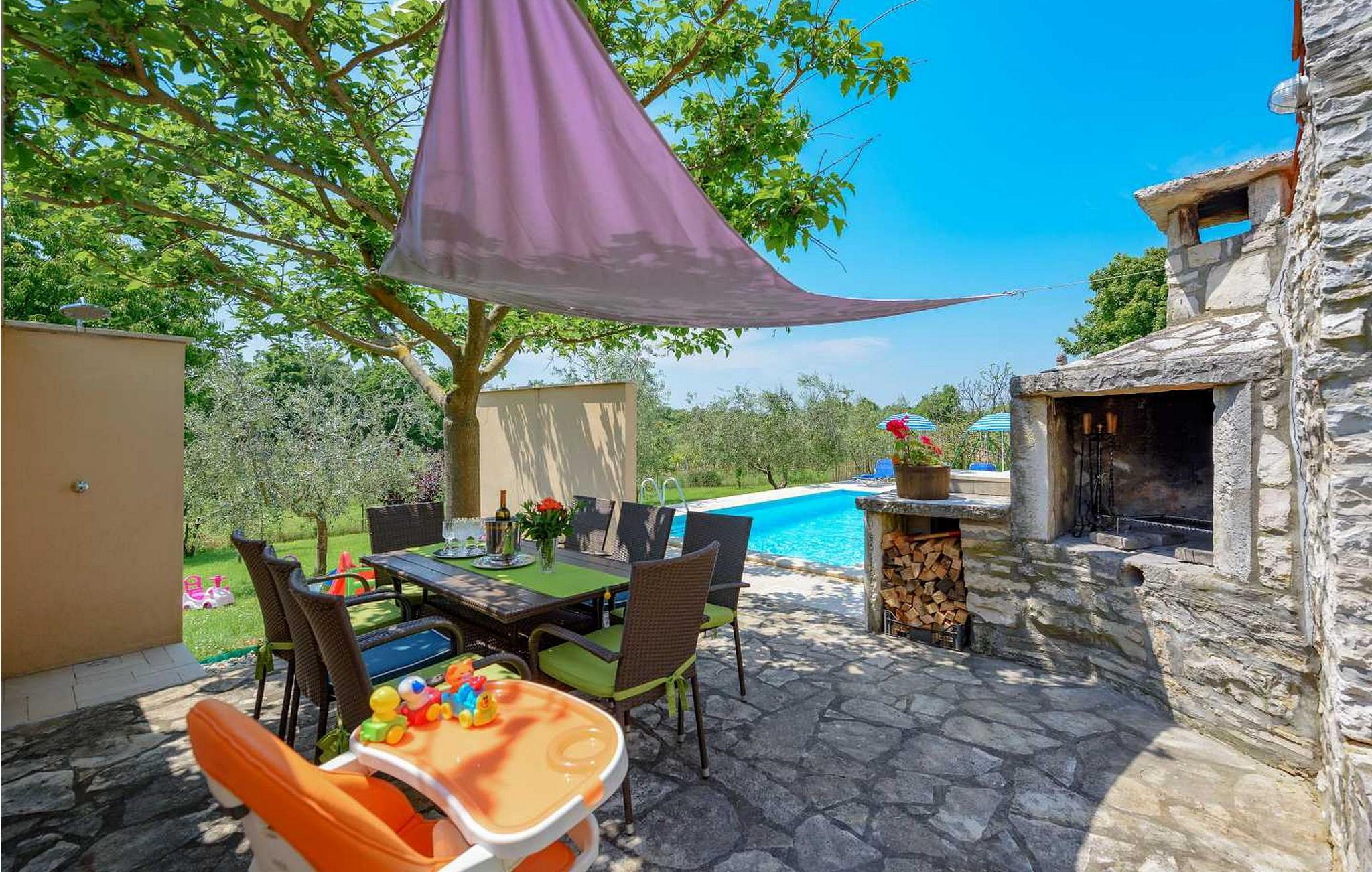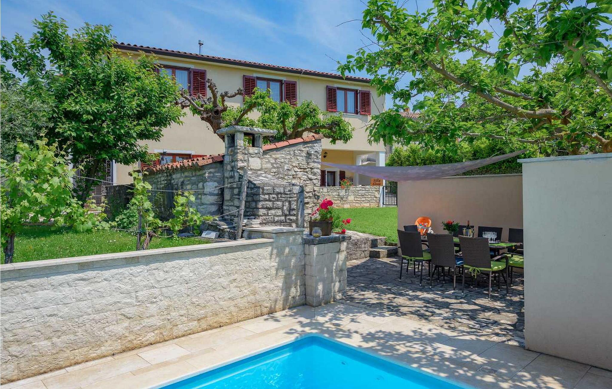 In der Nähe gibt es einige der besten Konobas (typische Tavernen) und Weinkeller Istriens. Das Haus wurde 1920 gebaut und 2005 renoviert. Auf eigenen umzäunten Grundstück von 1500 qm stehen den Gästen ein offener Pool von 24 qm, Terrasse mit Esstisch für Mahlzeiten im Freien, Grill und 2 Parkplätze zur Verfügung.