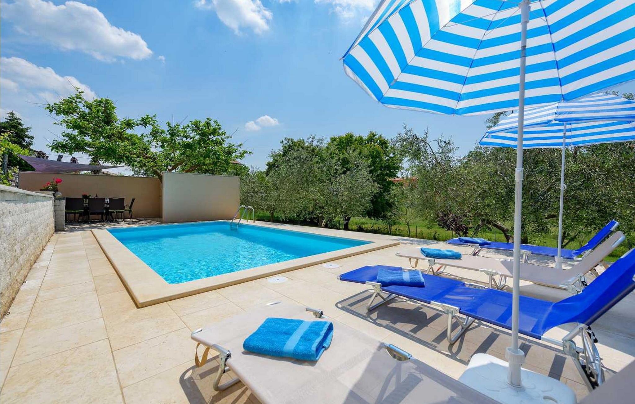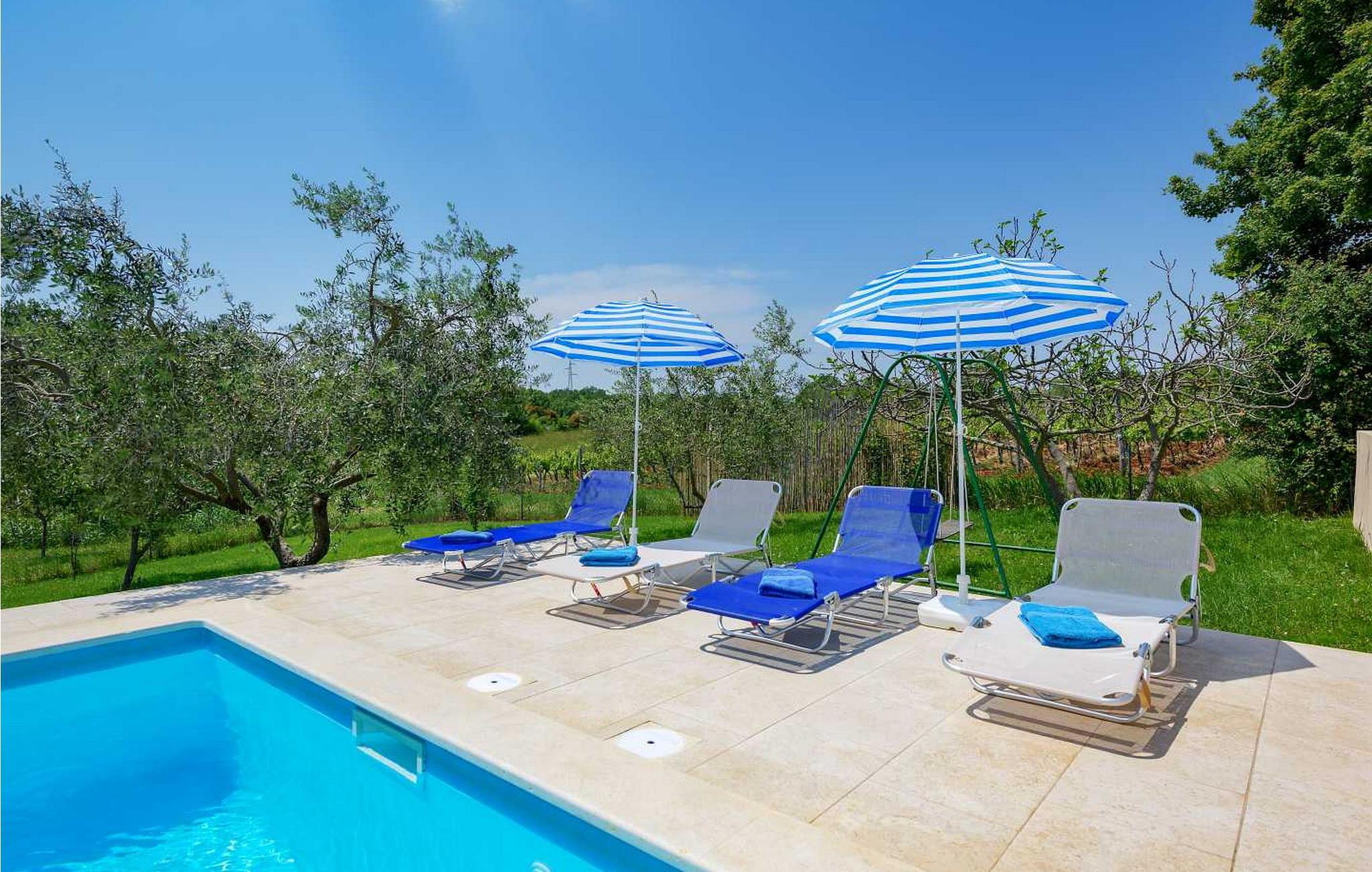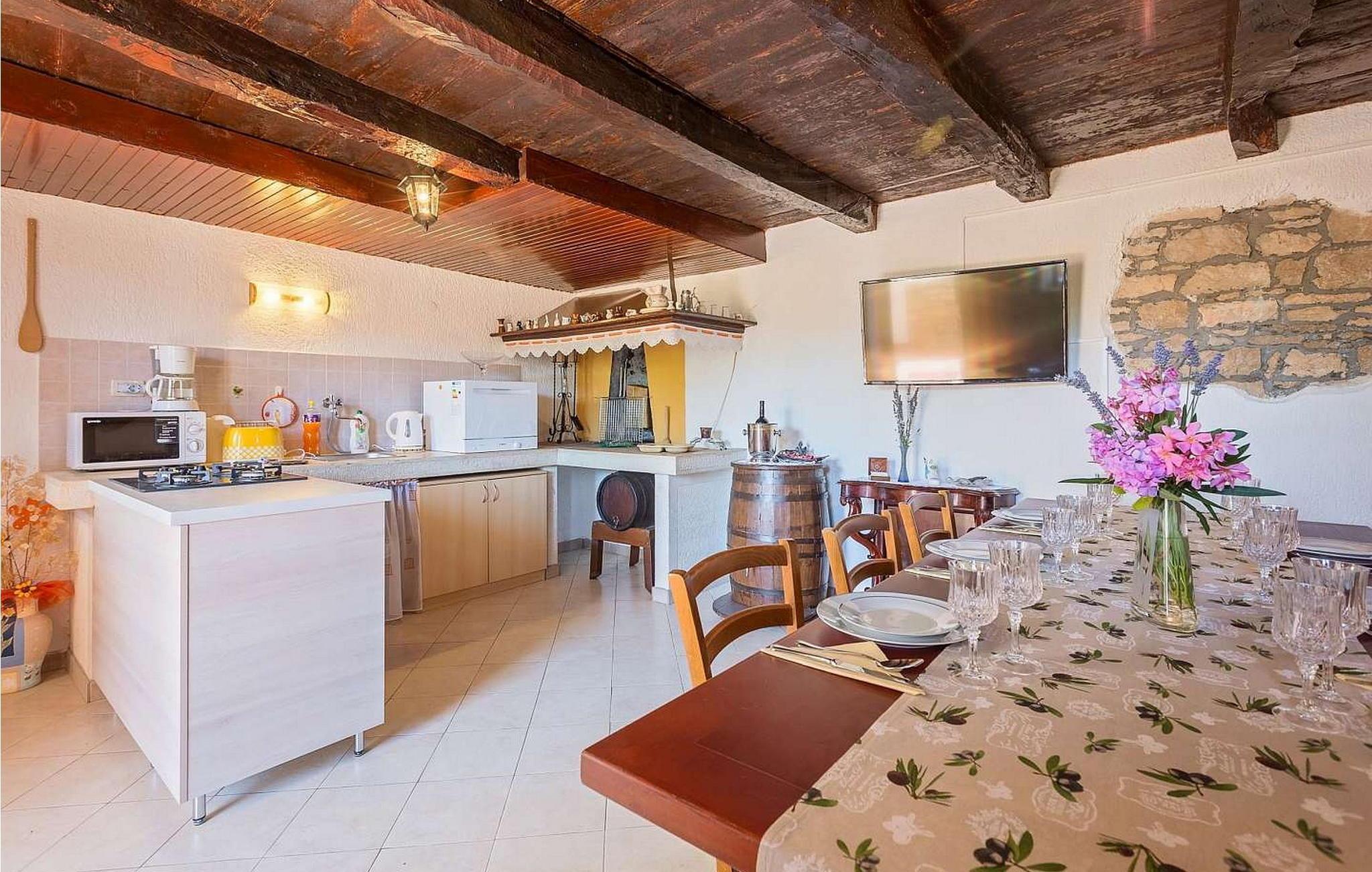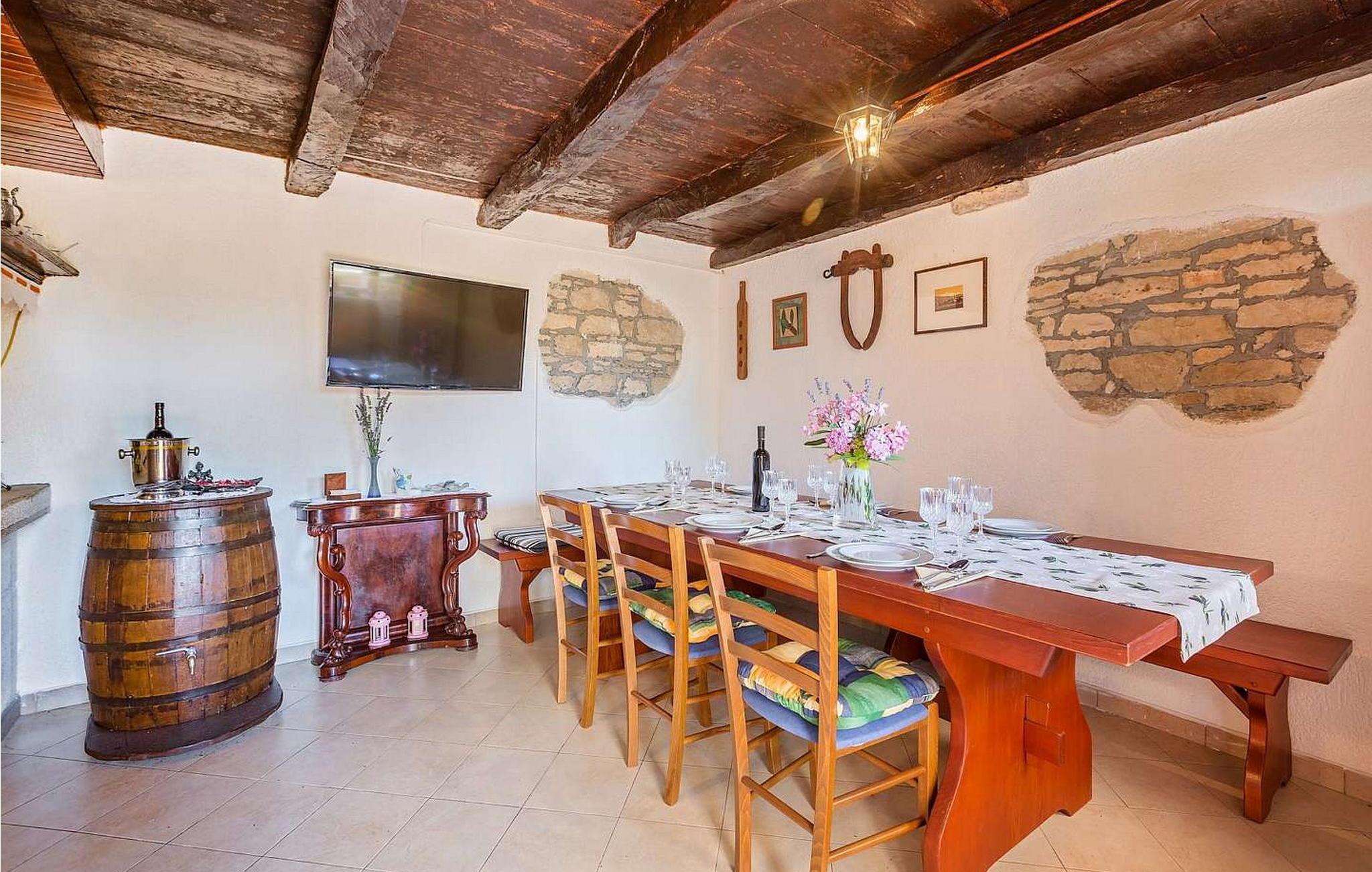 In der Nähe gibt es einige der besten Konobas (typische Tavernen) und Weinkeller Istriens. Das Haus wurde 1920 gebaut und 2005 renoviert. Auf eigenen umzäunten Grundstück von 1500 qm stehen den Gästen ein offener Pool von 24 qm, Terrasse mit Esstisch für Mahlzeiten im Freien, Grill und 2 Parkplätze zur Verfügung.