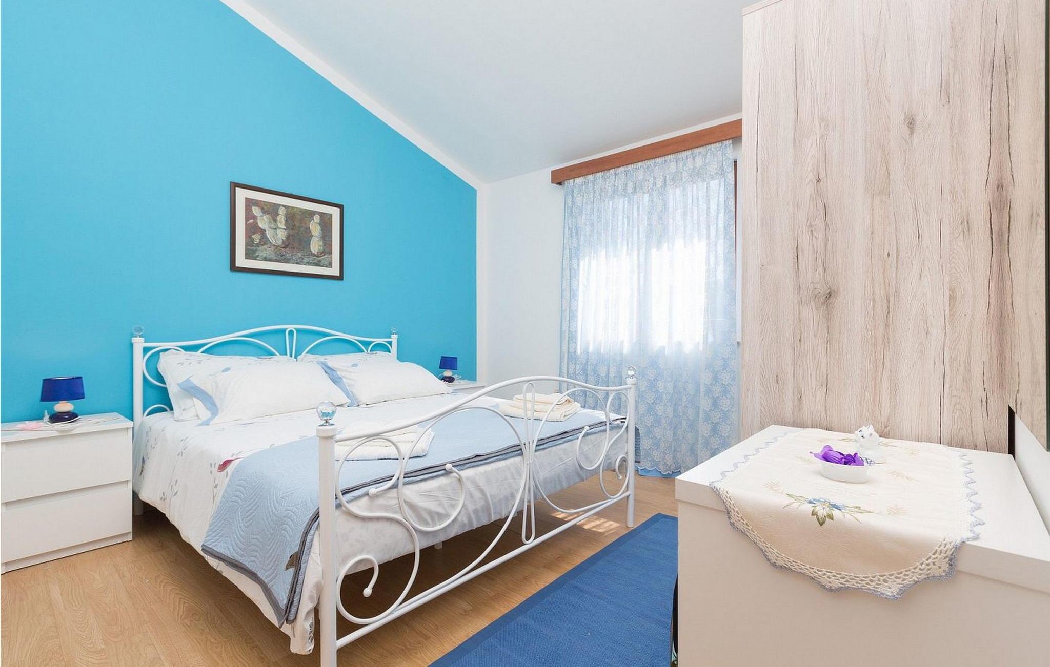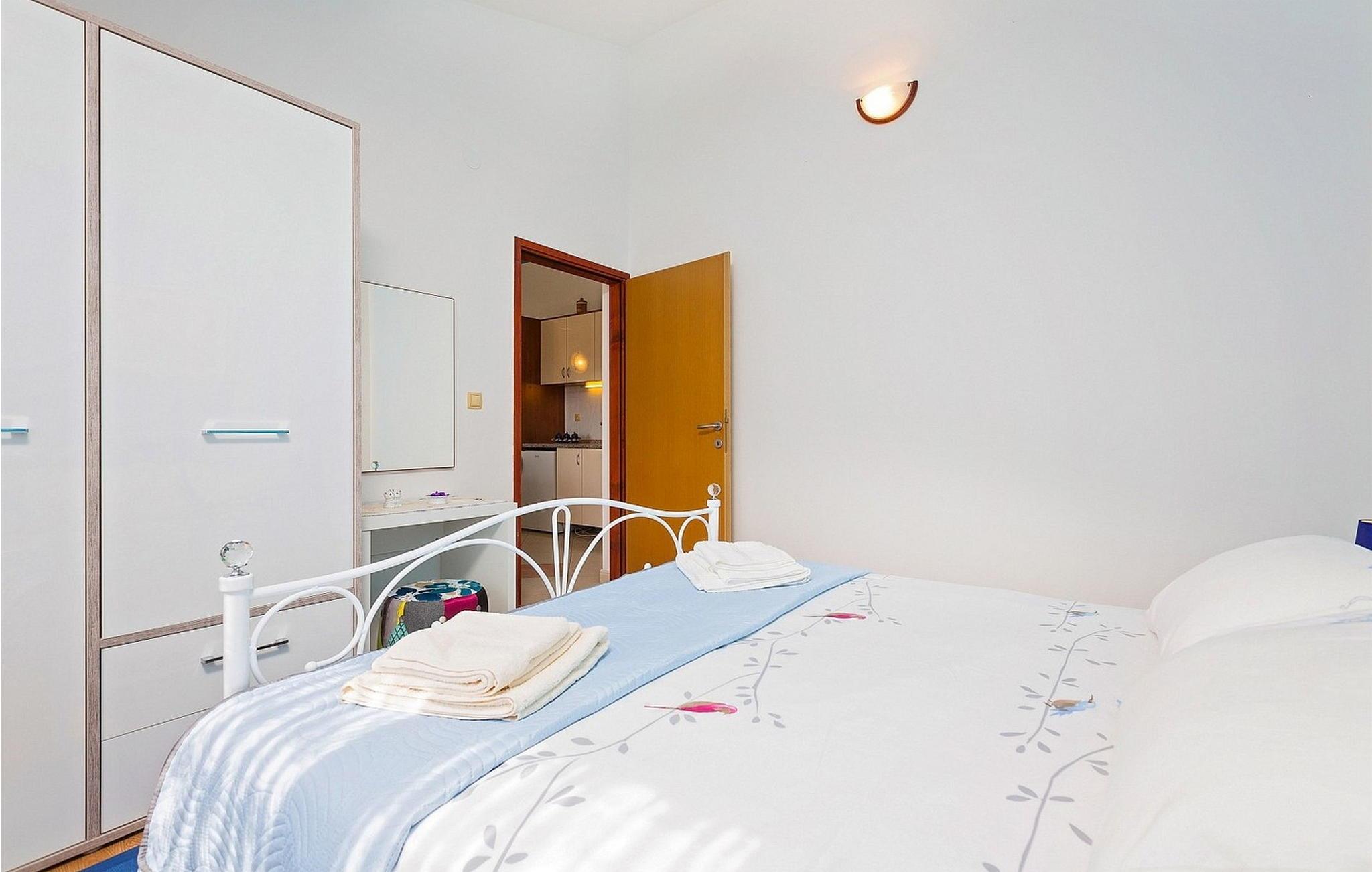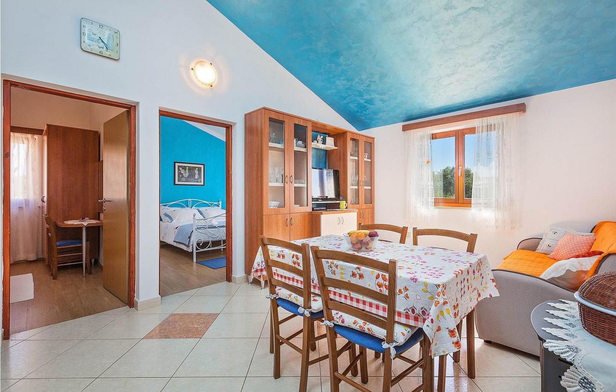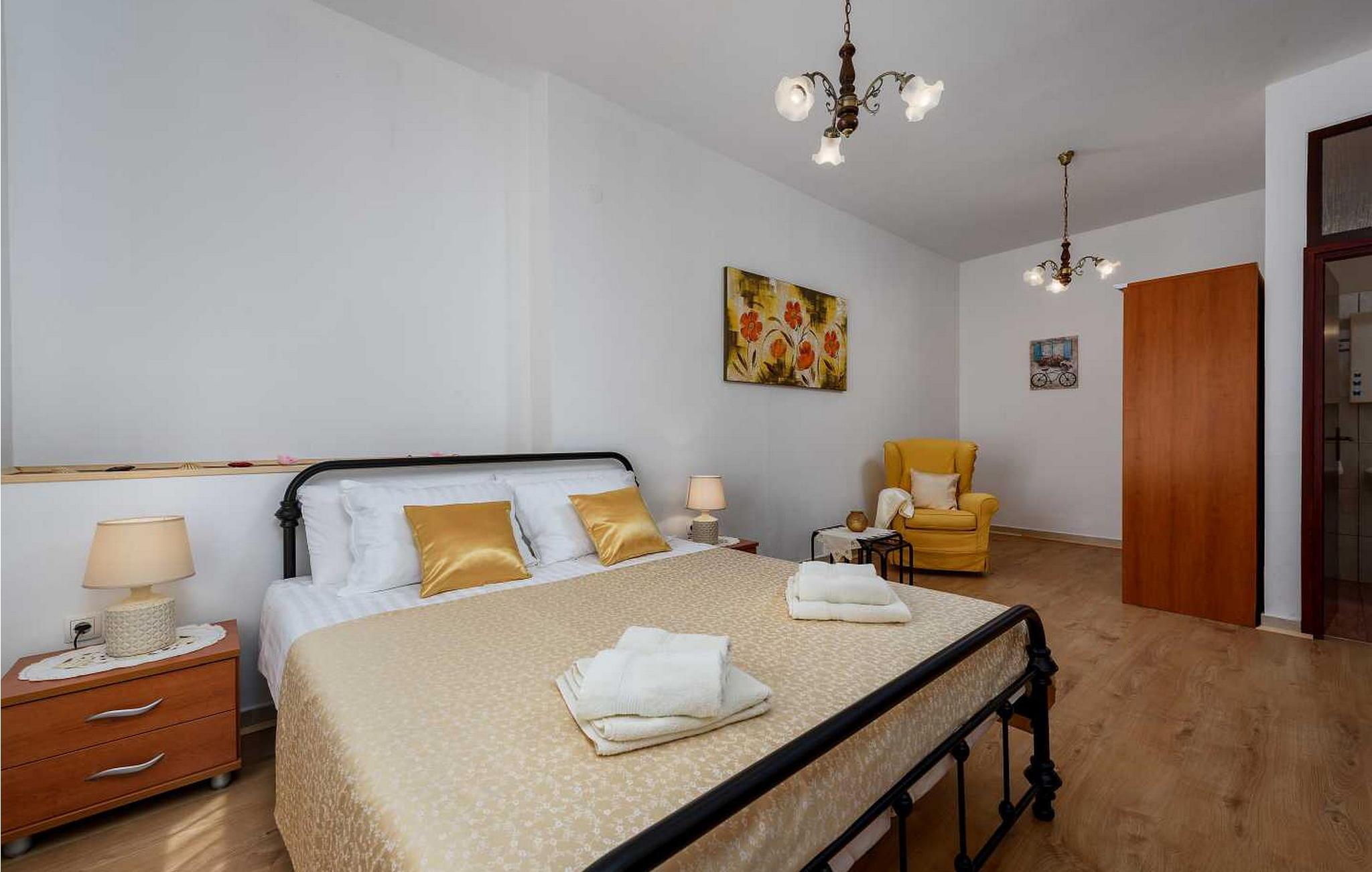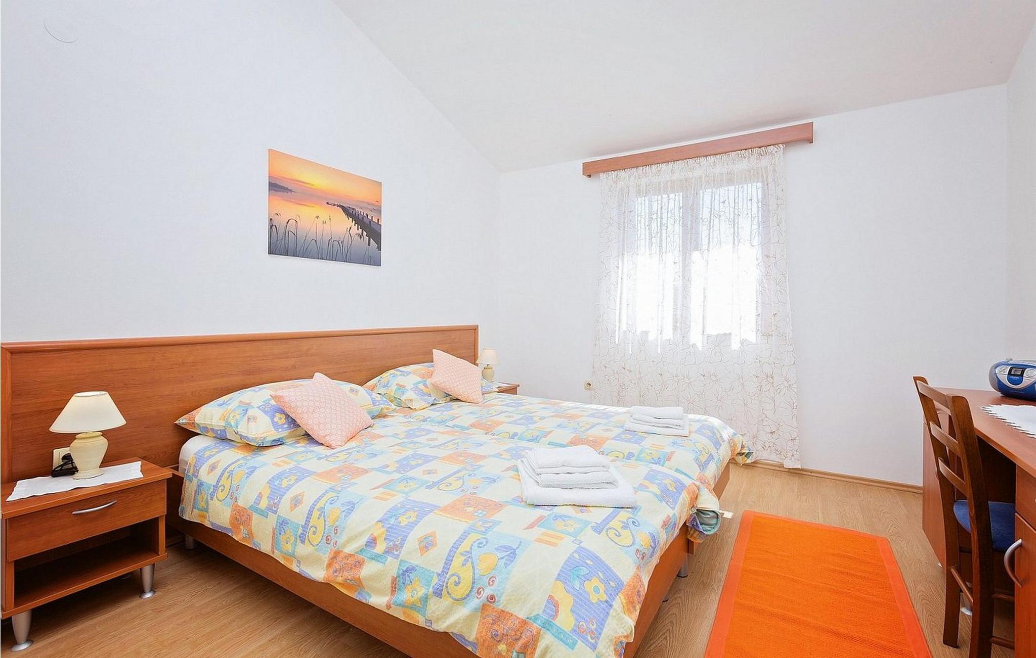 Ferienhaus für 6-8 Personen von 140 qm besteht aus Erdgeschoss mit voll ausgestatteter Konoba, Einzelzimmer mit Schlafsofa für eine Person und eigener Dusche/WC. Auf den ersten Stock, der mit Außentreppen verbunden ist, befindet sich ein kleiner Wohnbereich mit Küche und Esstisch, Schlafzimmer mit zwei Einzelbetten und eigener Dusche/WC, Doppelzimmer, Schlafzimmer mit zwei Einzelbetten, Dusche/WC.