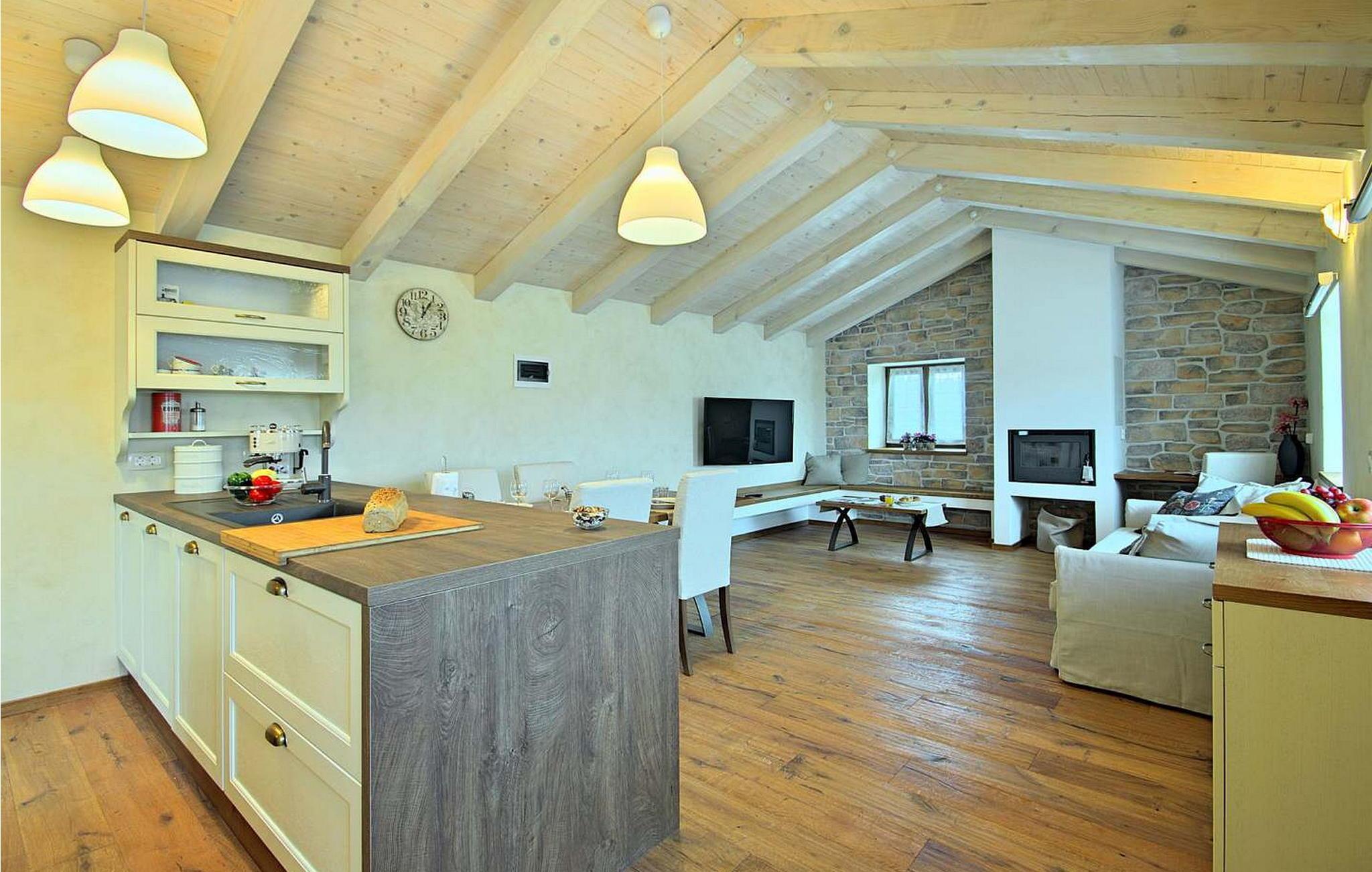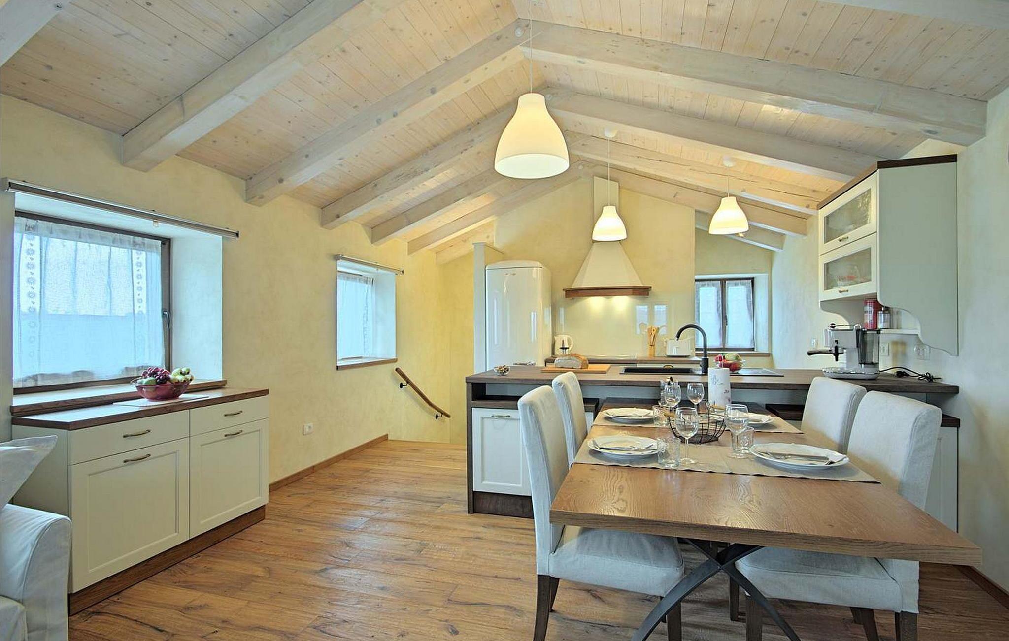 Das Ferienhaus wurde mit viel Liebe und Sorgfalt restauriert und ist eine gute Auswahl für eine Familie mit Kindern, die entschlossen haben den Urlaub im grünen Binnenland Istriens zu verbringen, aber die auch in nur 15 Minuten Autofahrt am Meer sein können.